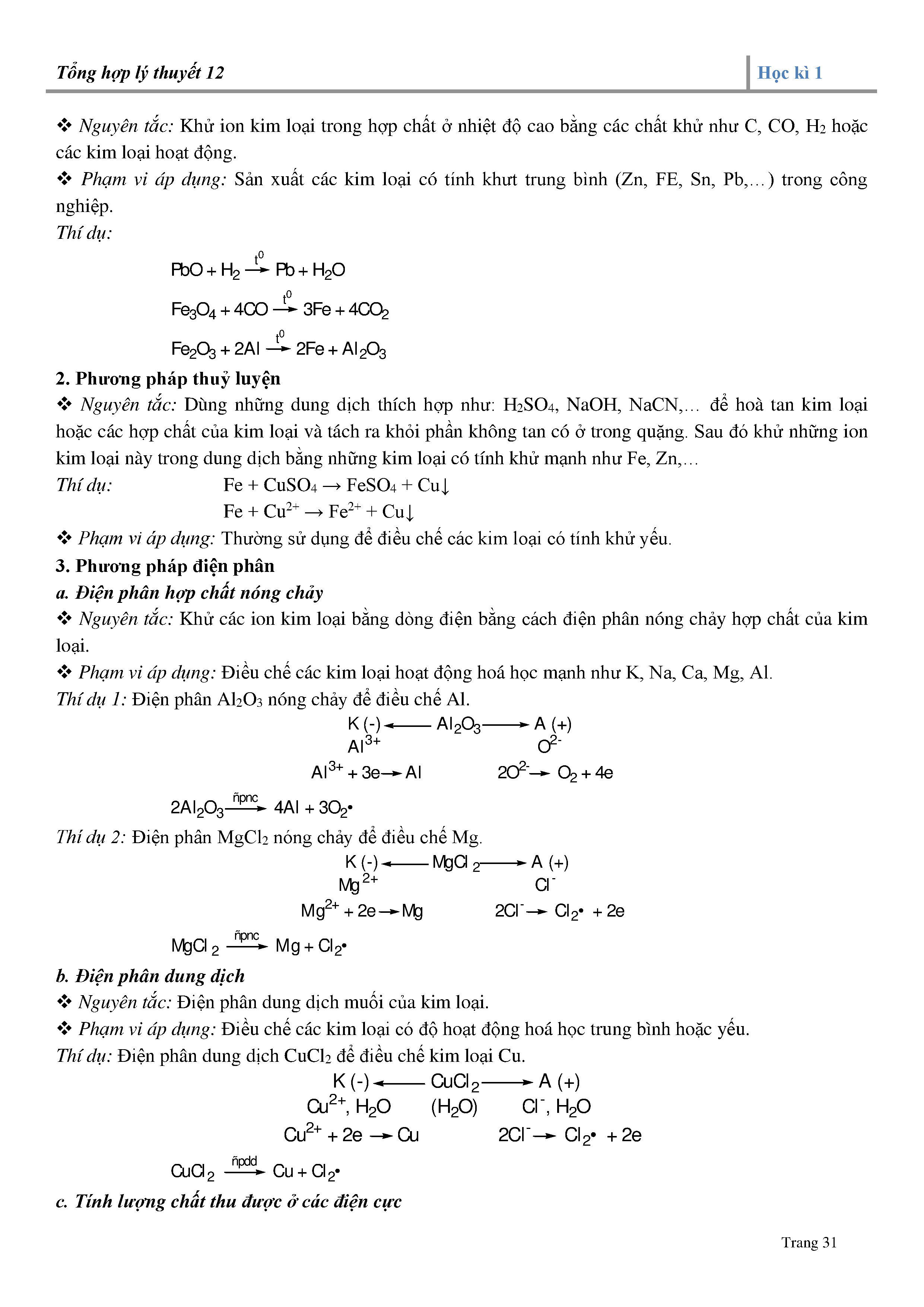 7. Điều chế kim loại