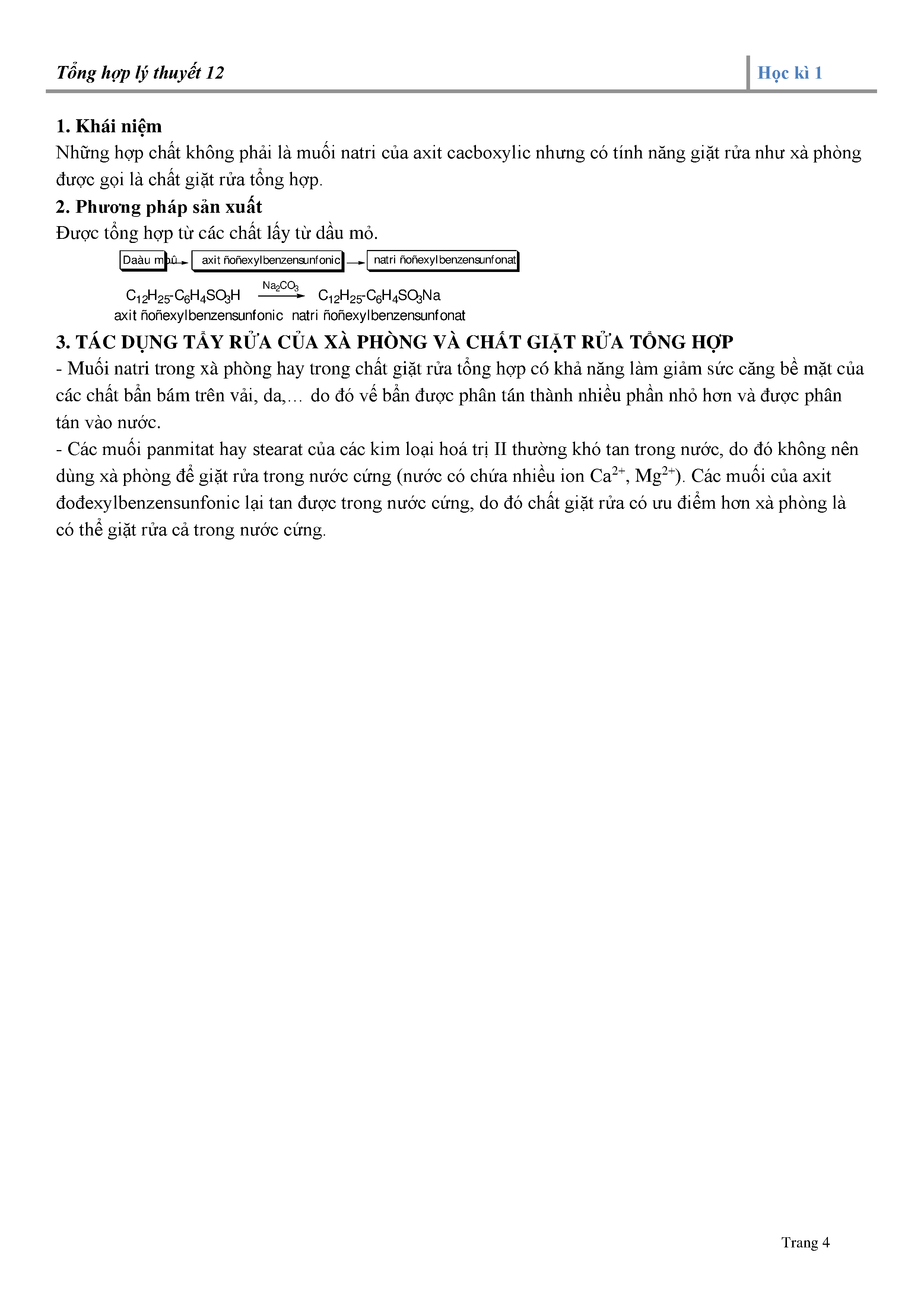 + Chất giặt rửa tổng hợp: Khái niệm, phương pháp sản xuất, tác dụng tẩy rửa của xà phòng và chất giặt rửa tổng hợp.
