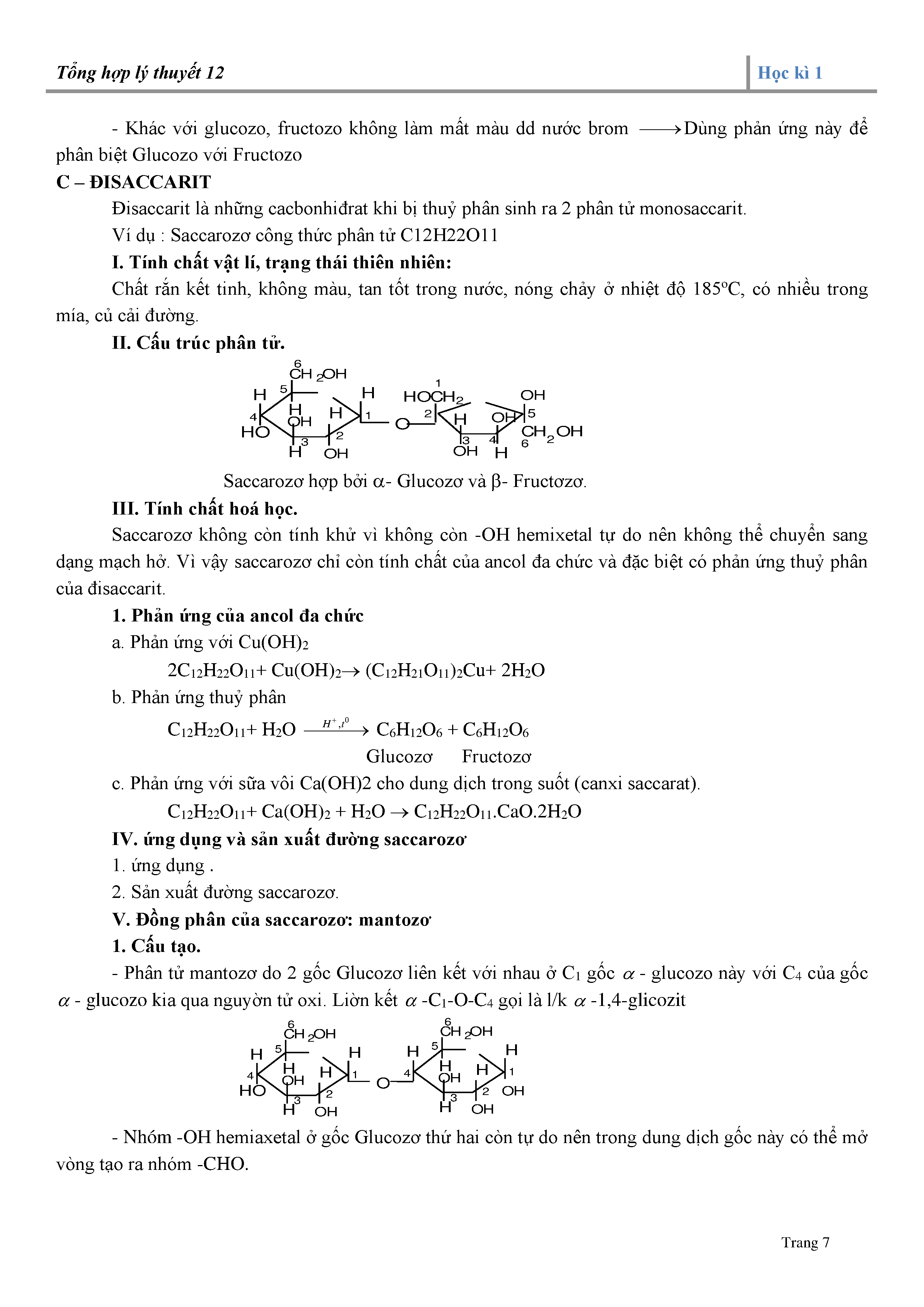 + Đồng phân của Saccarozo: mantozo