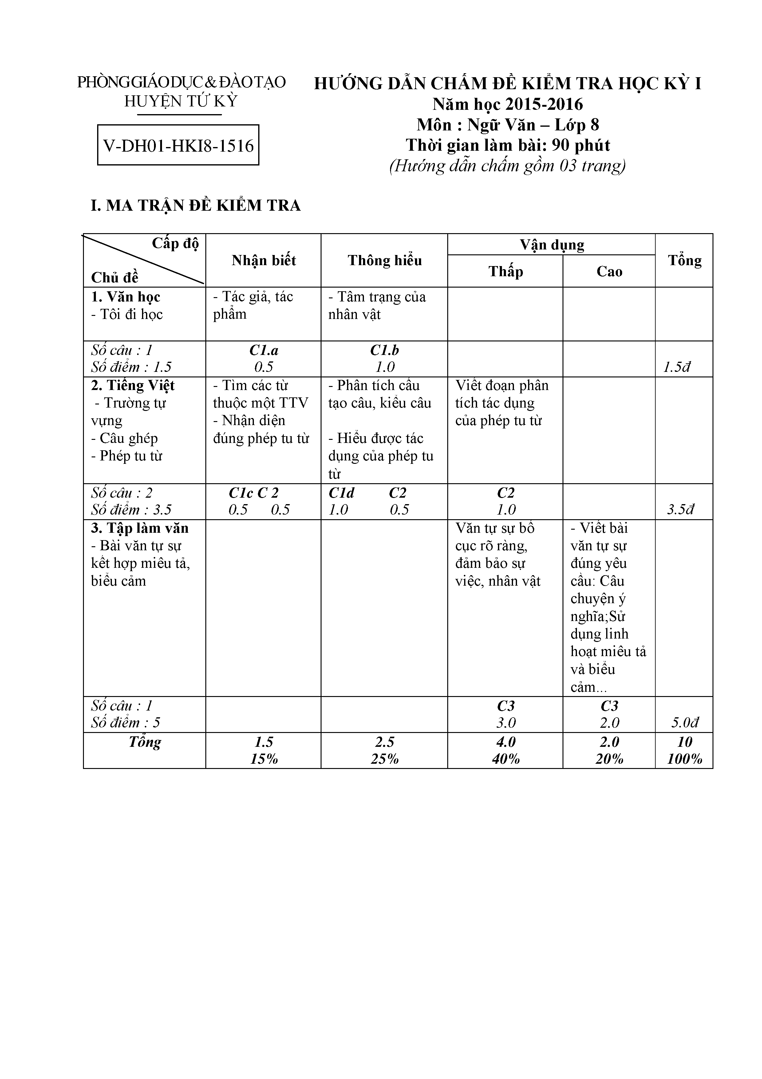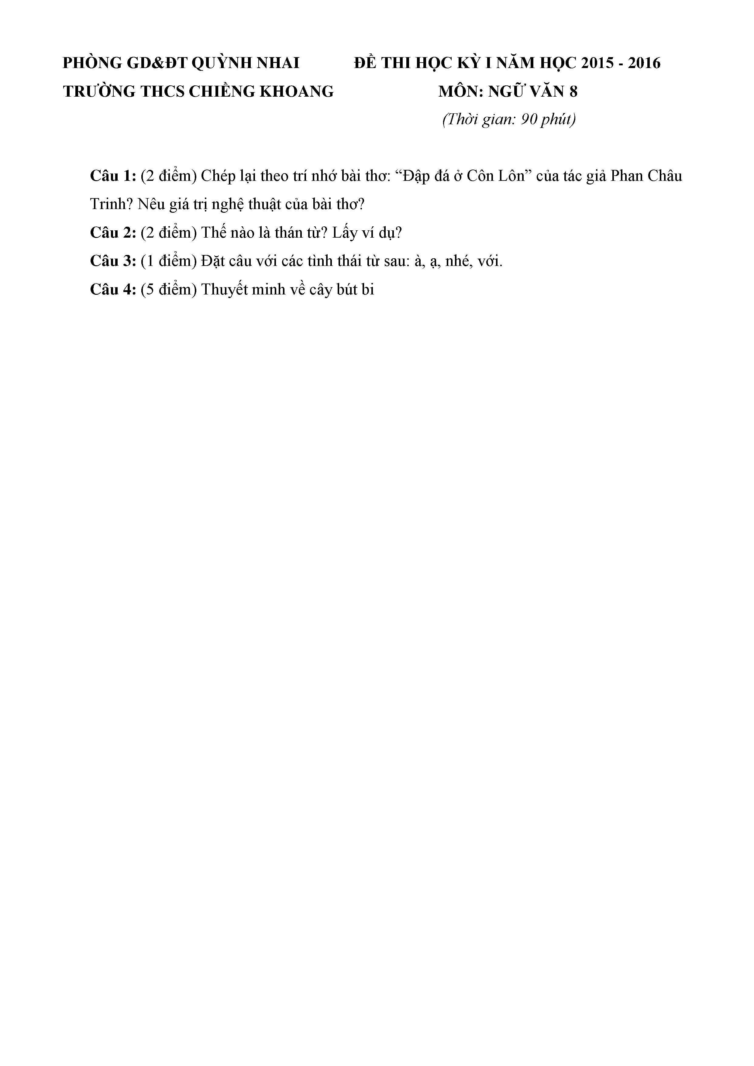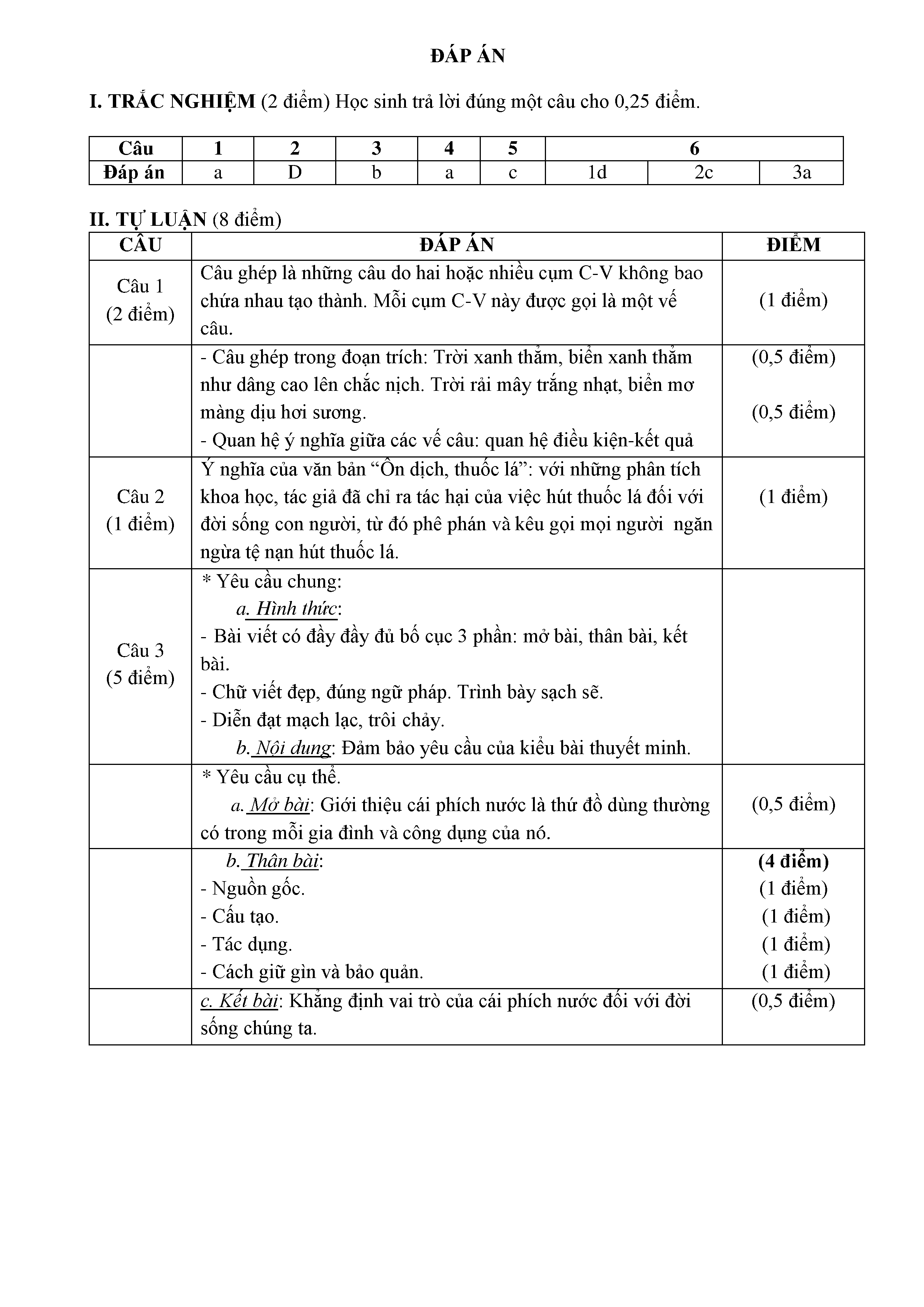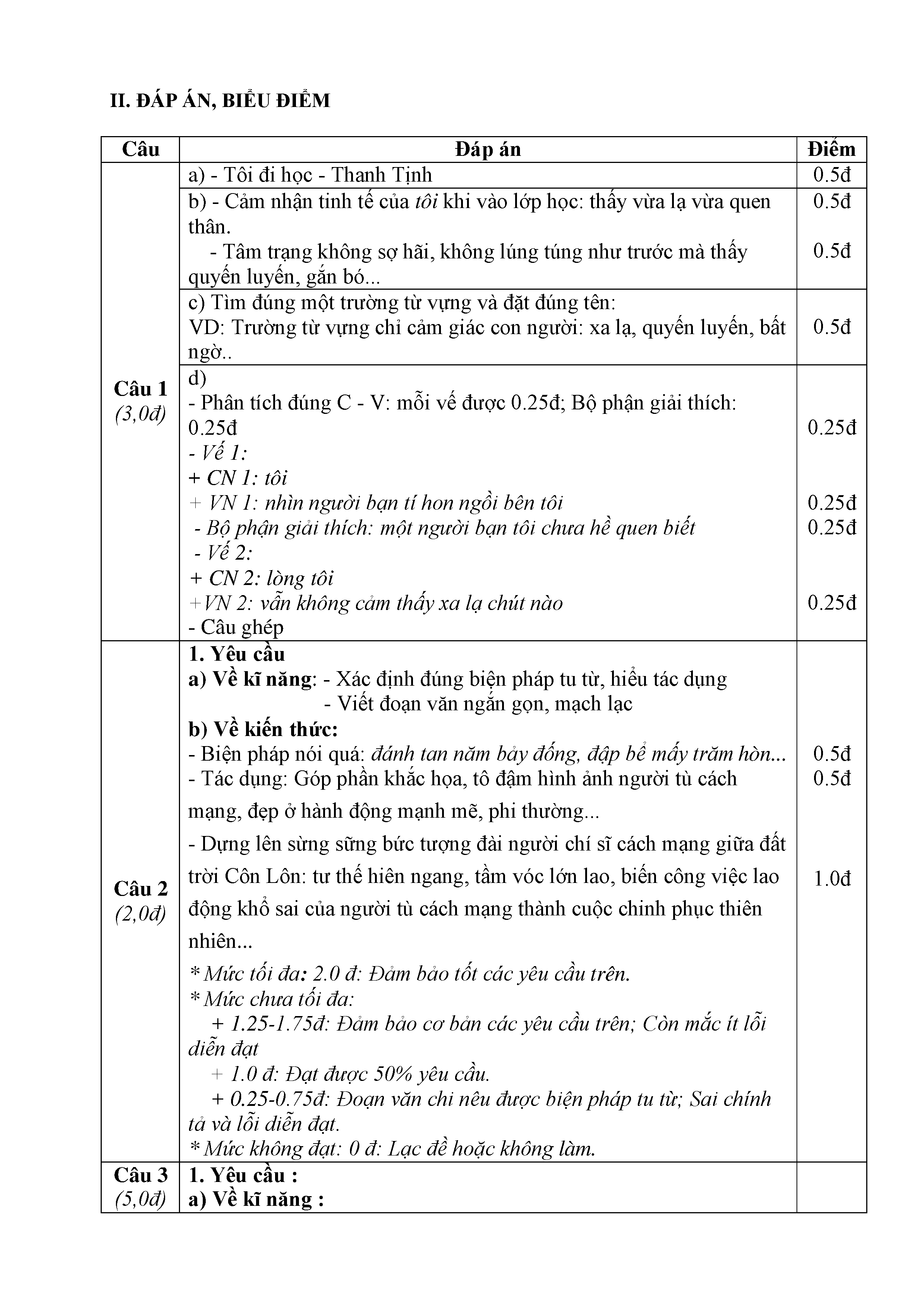 Đề thi học kì 1 lớp 8 môn Ngữ Văn (có đáp án)