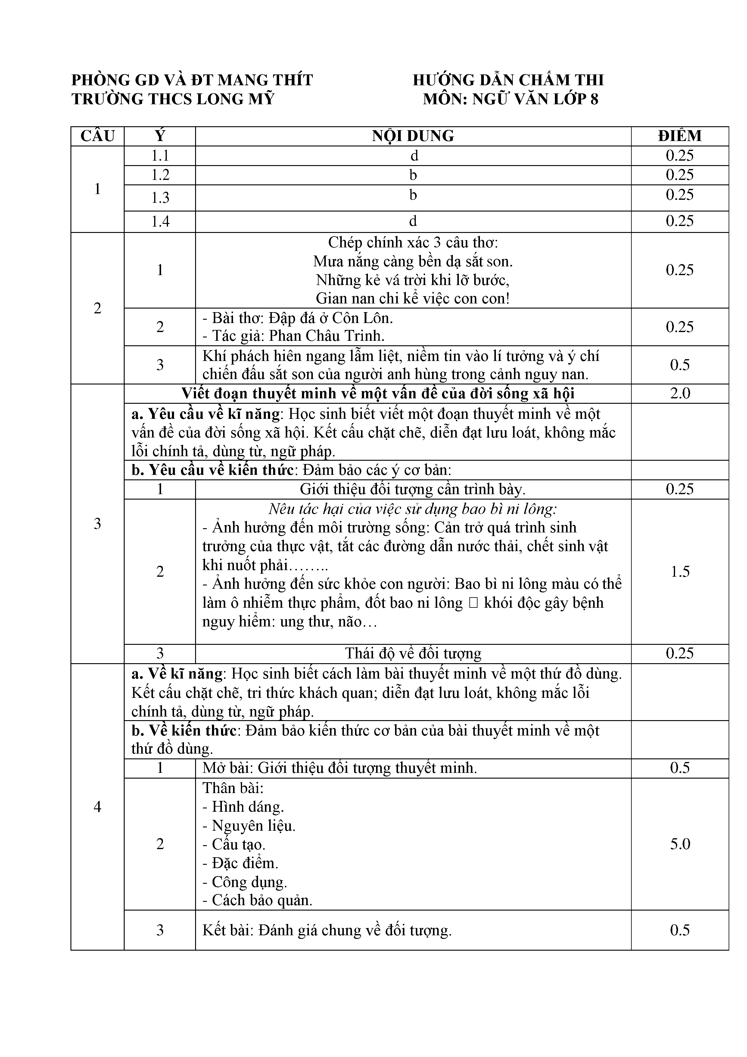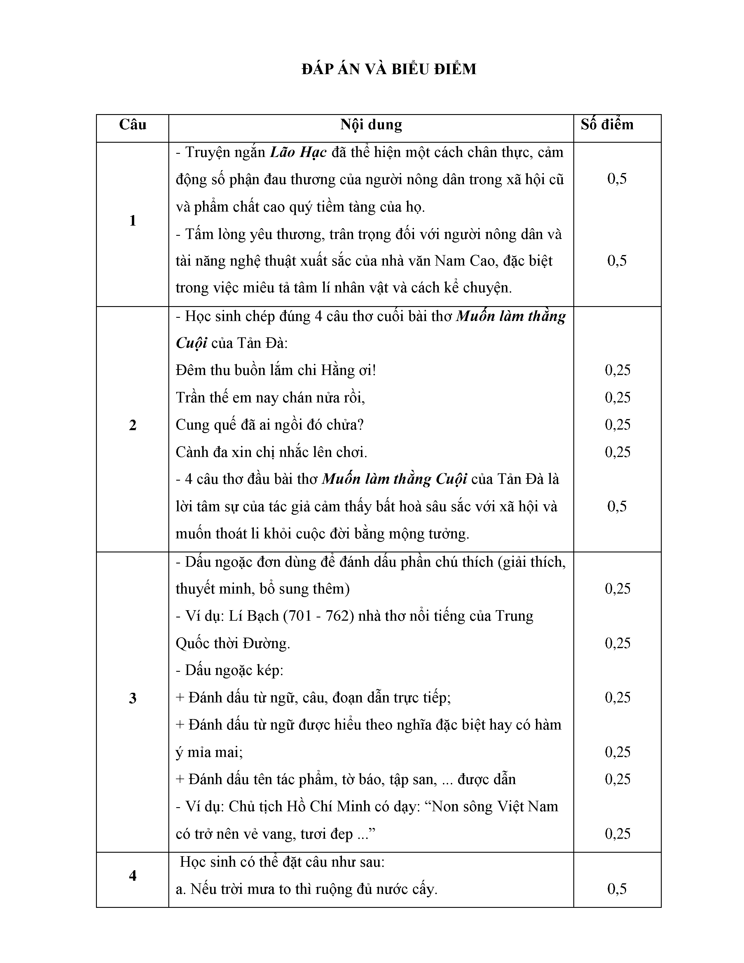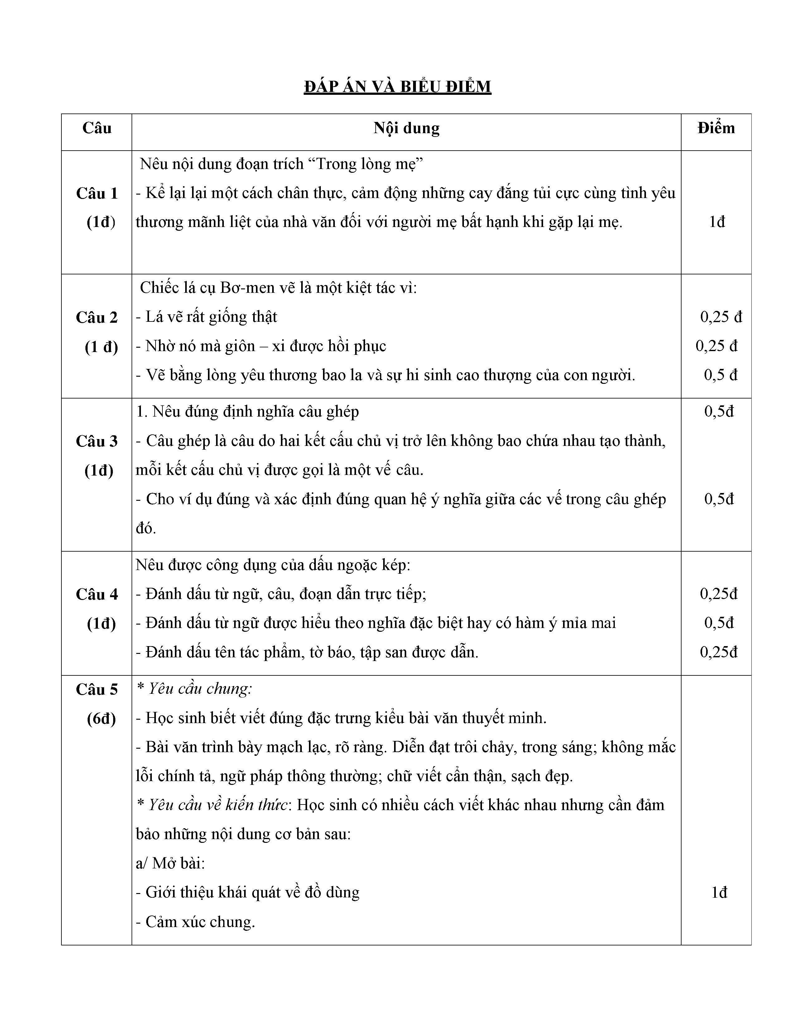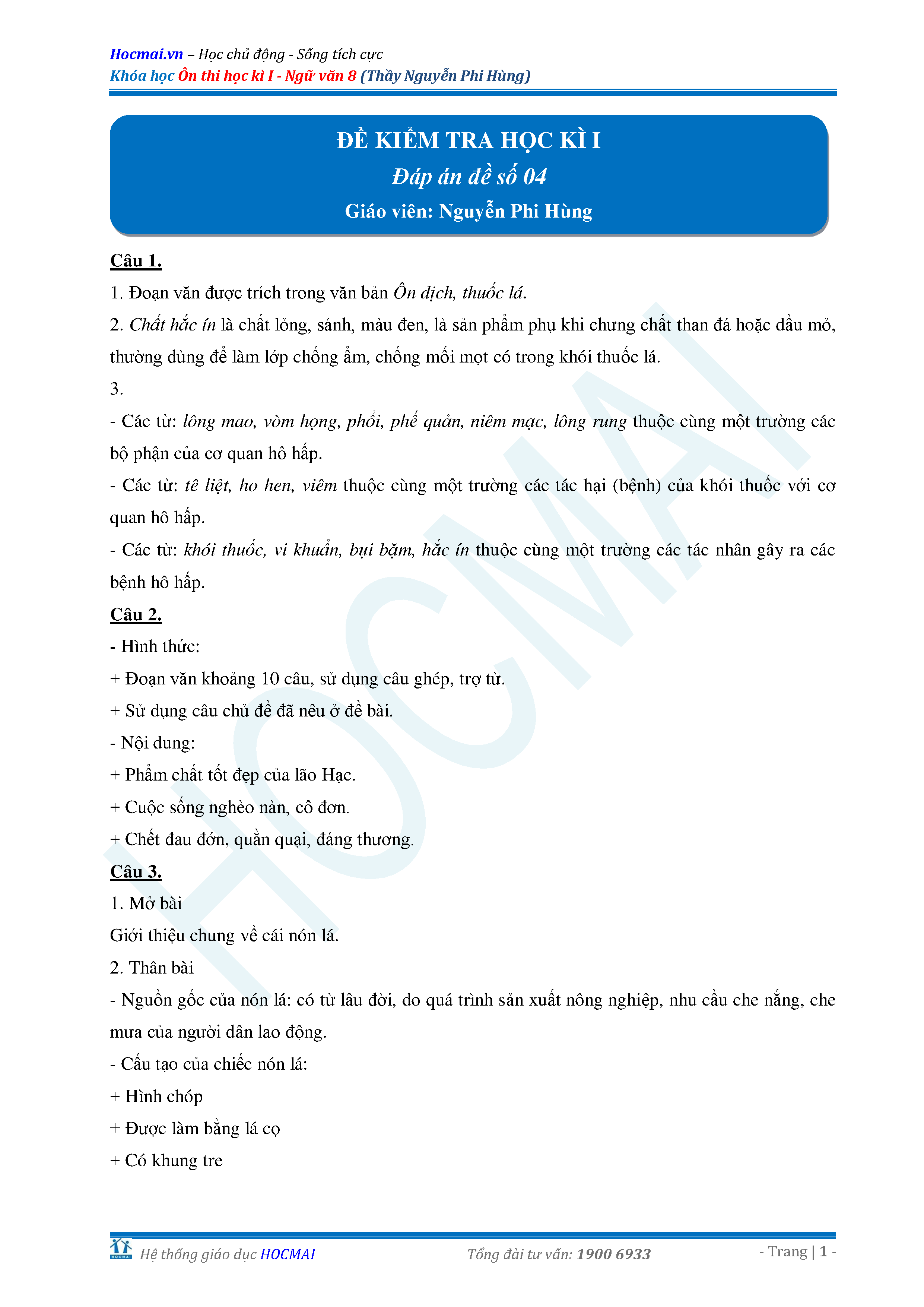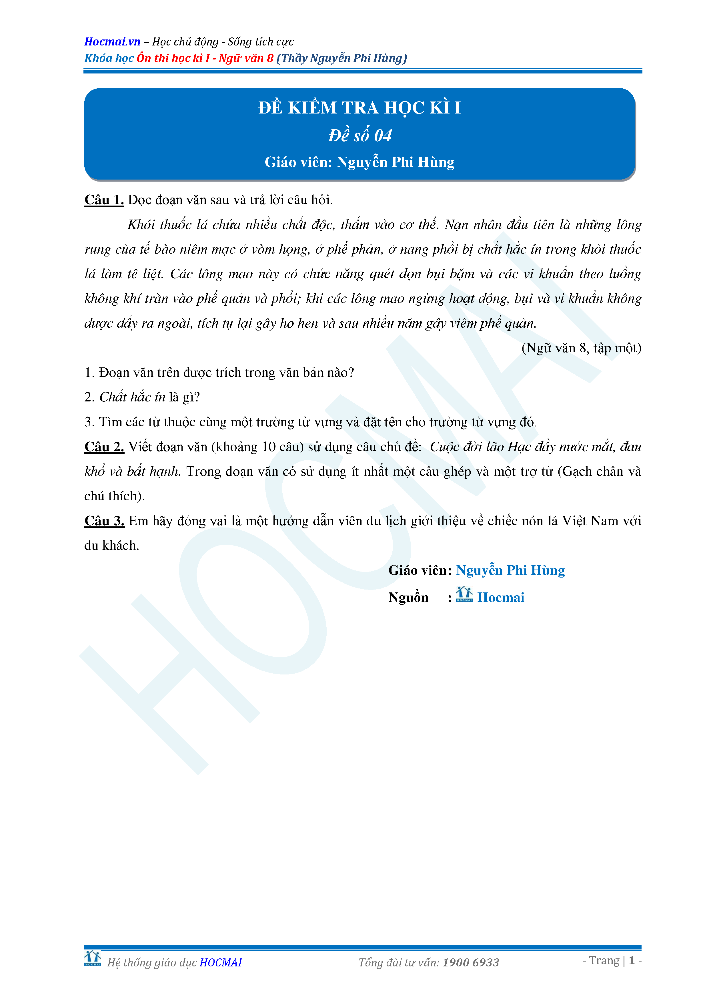 Đề thi học kì 1 lớp 8 môn Ngữ Văn (có đáp án)