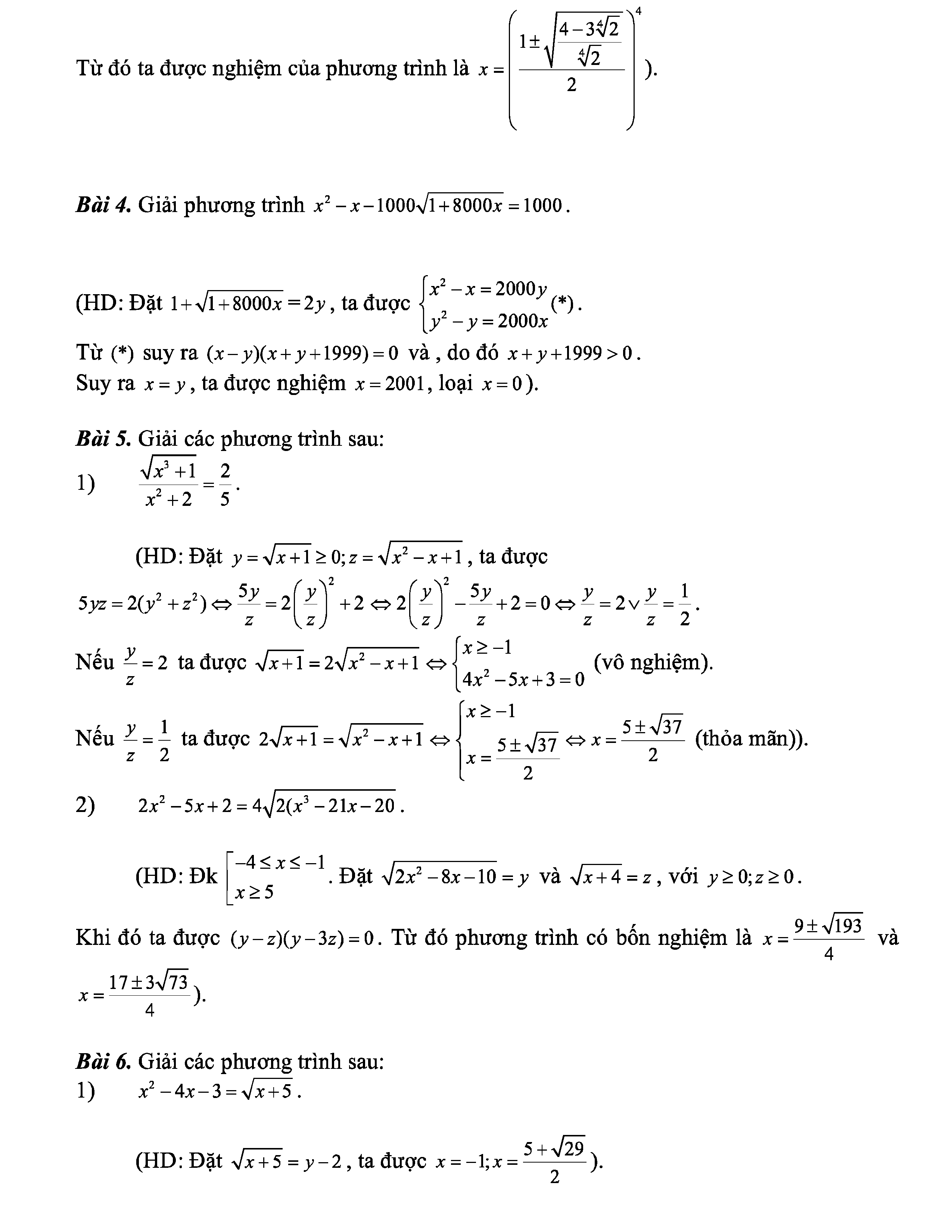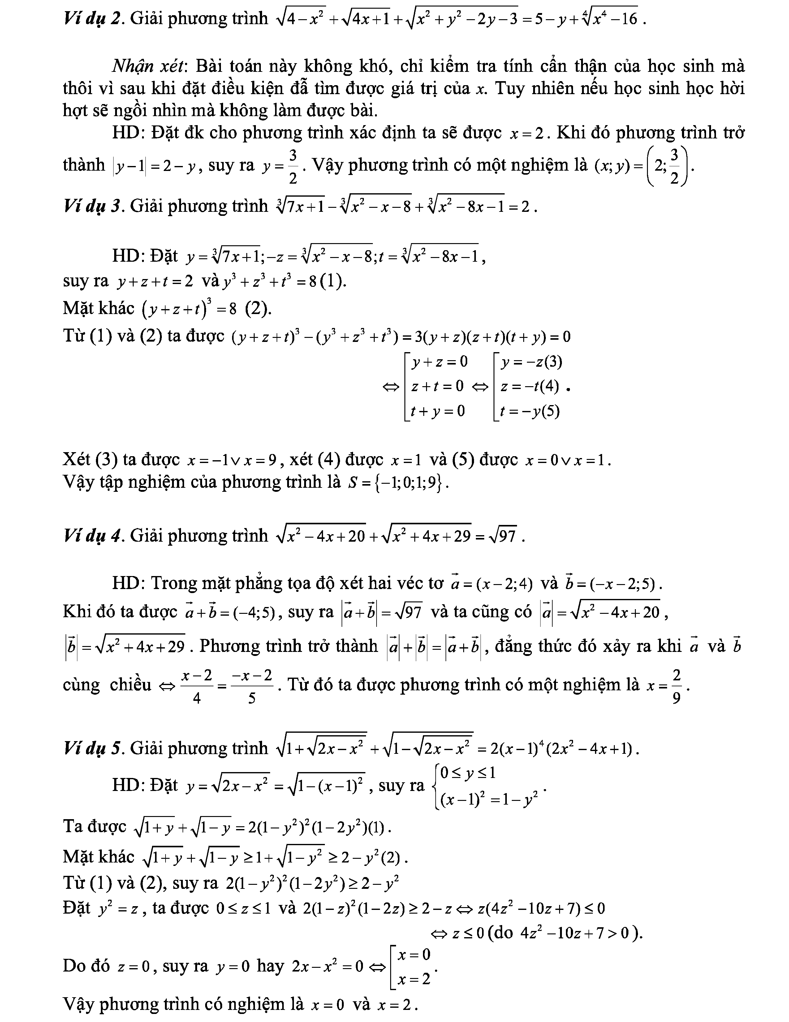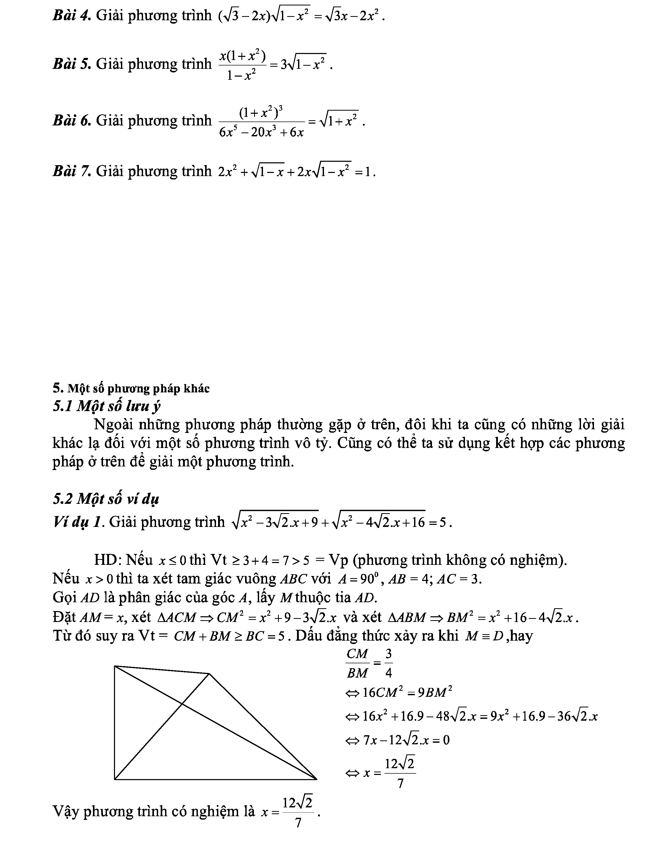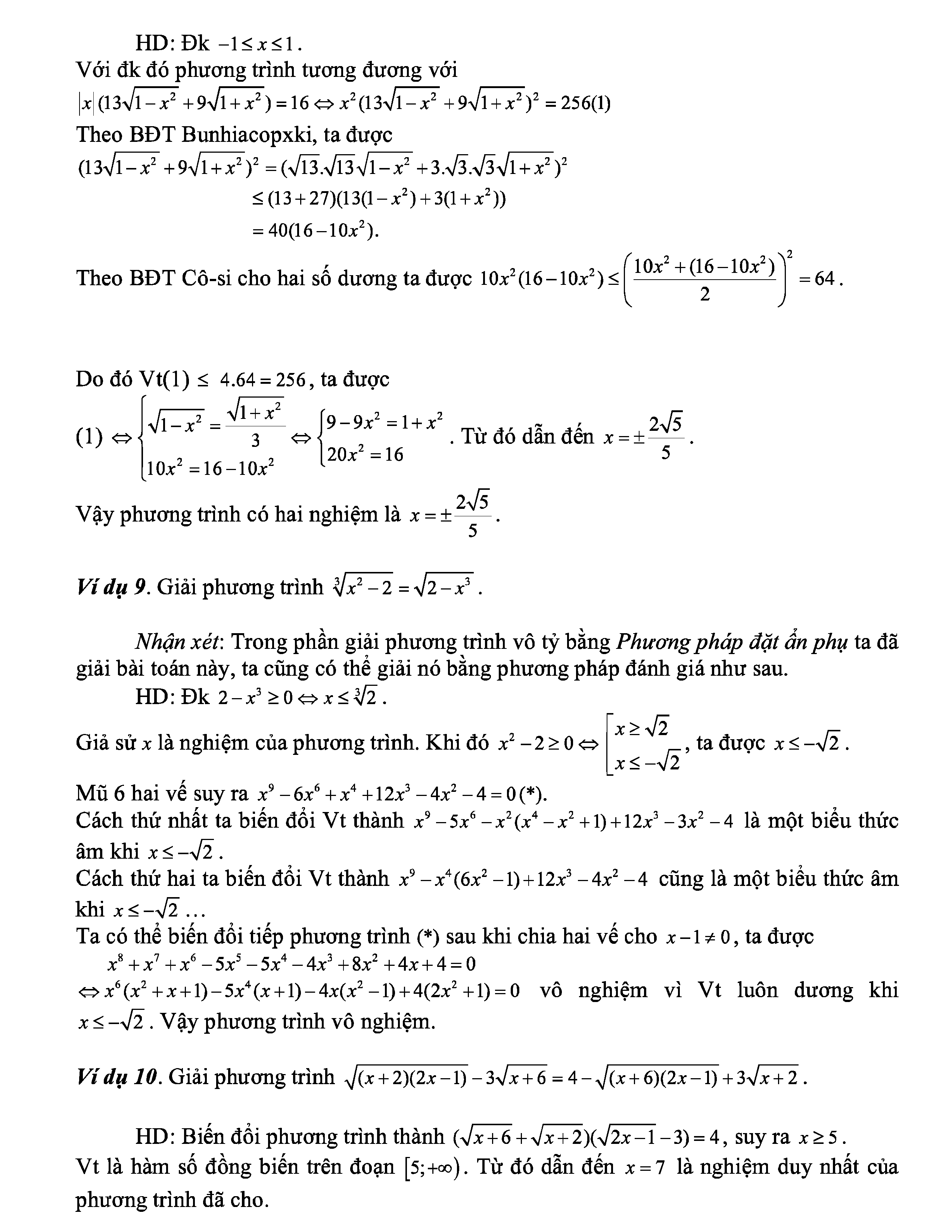 Một số phương pháp giải phương trình vô tỉ (hay và khó) toán 10