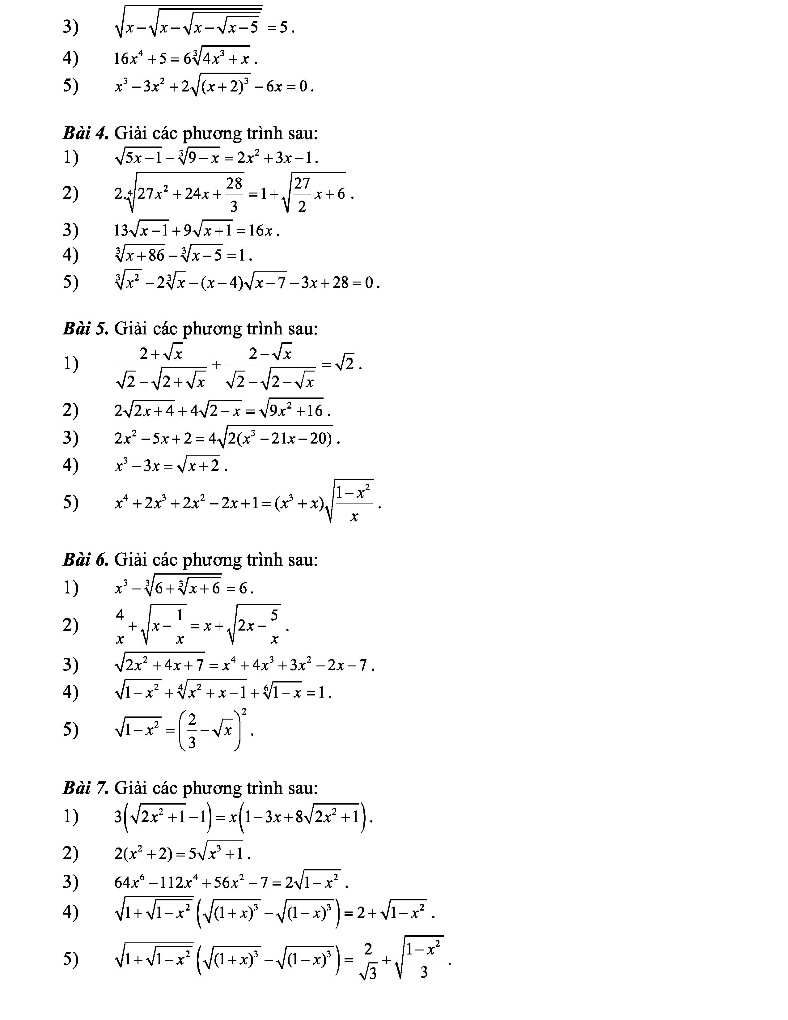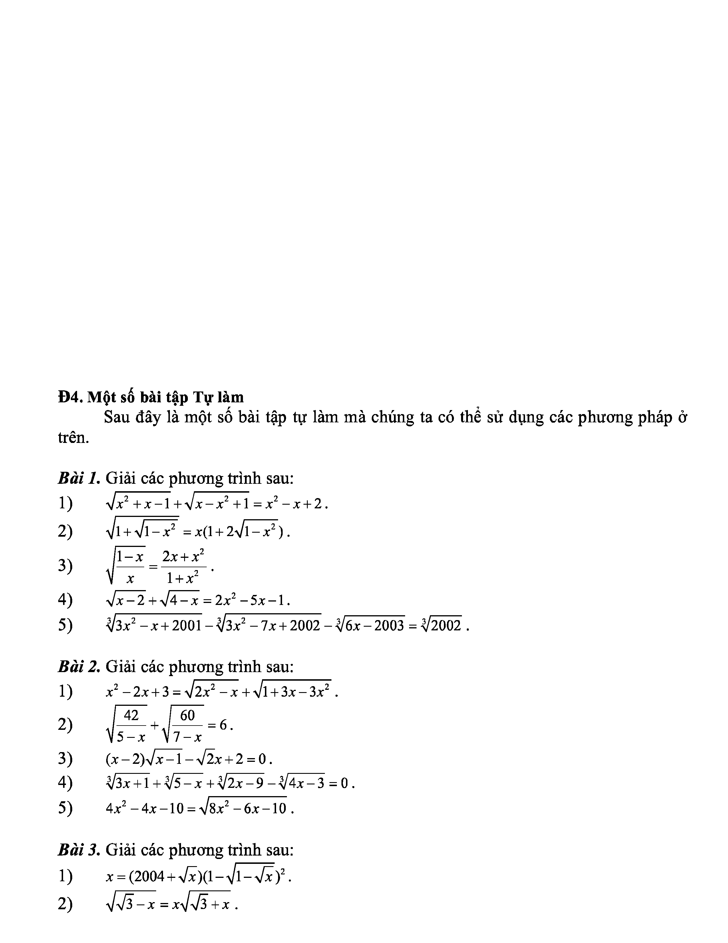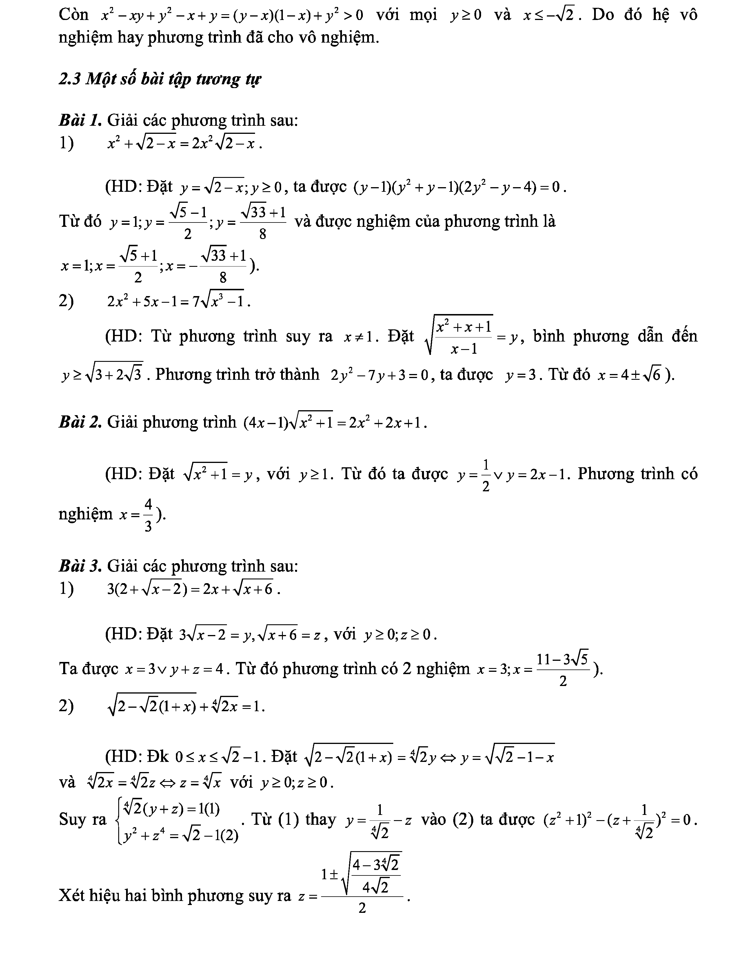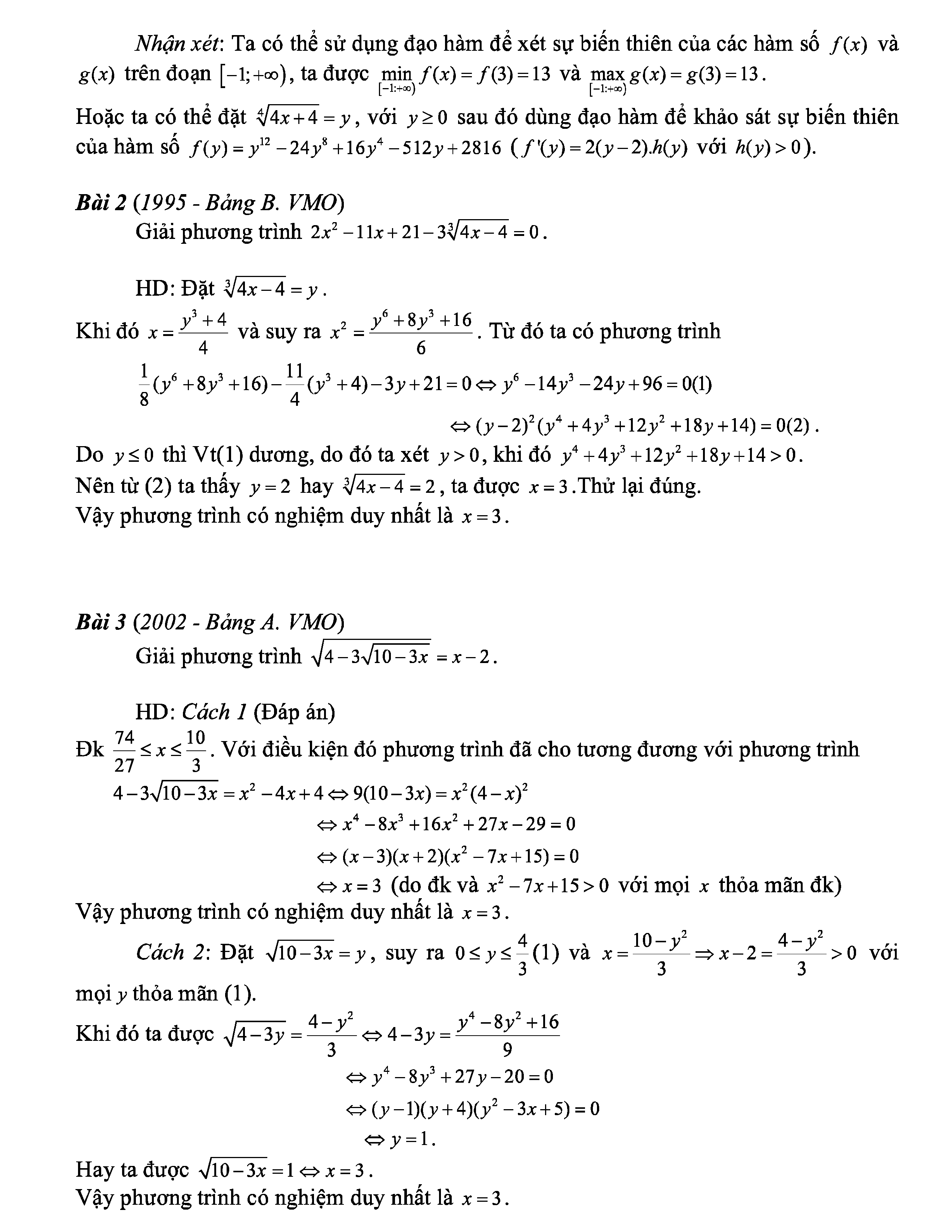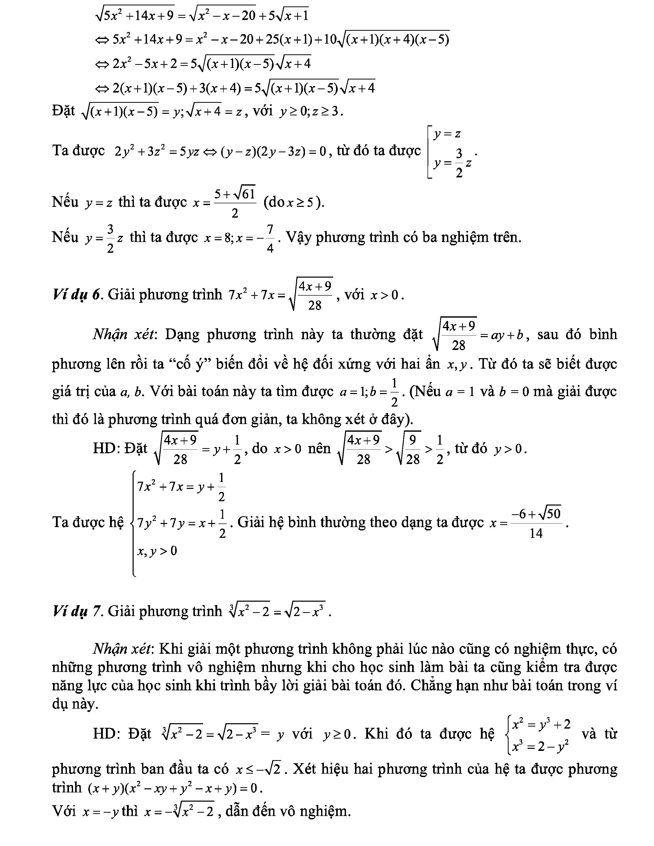 Một số phương pháp giải phương trình vô tỉ (hay và khó) toán 10