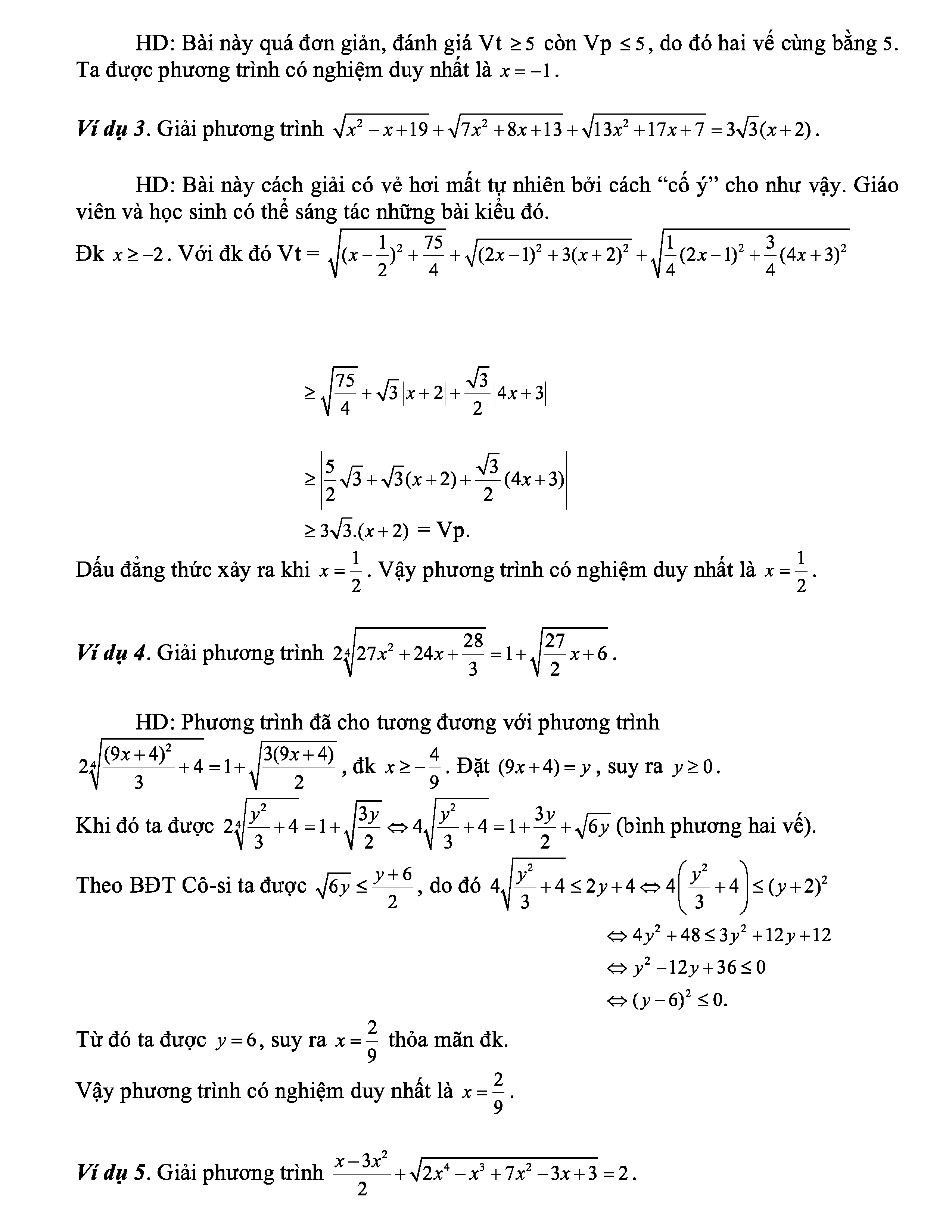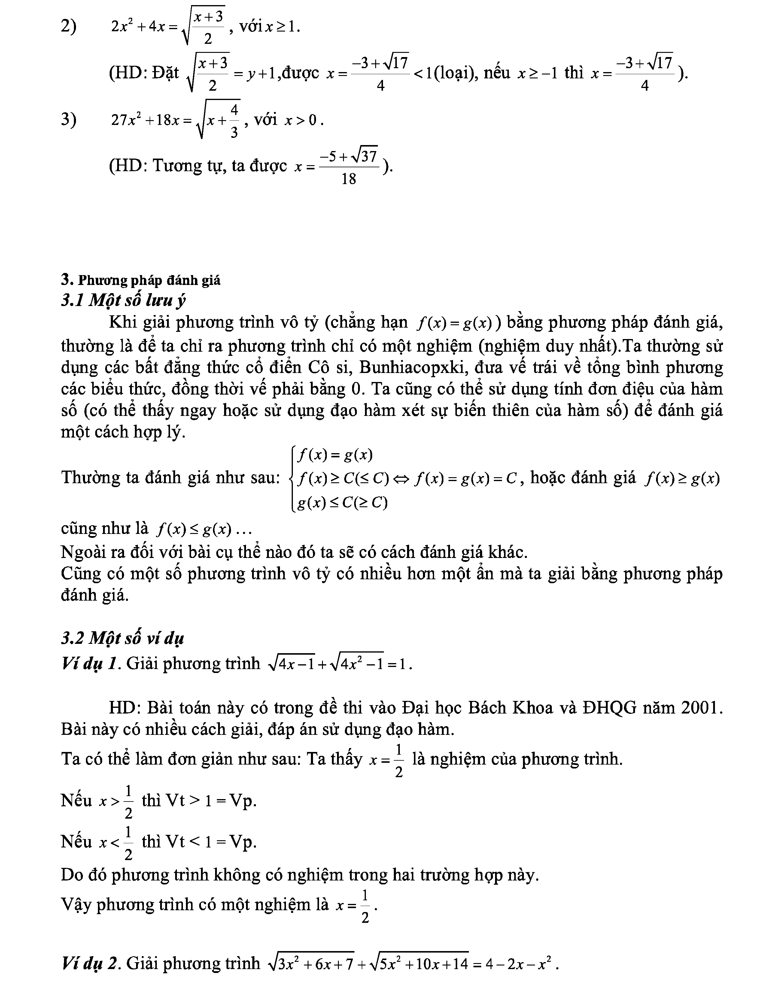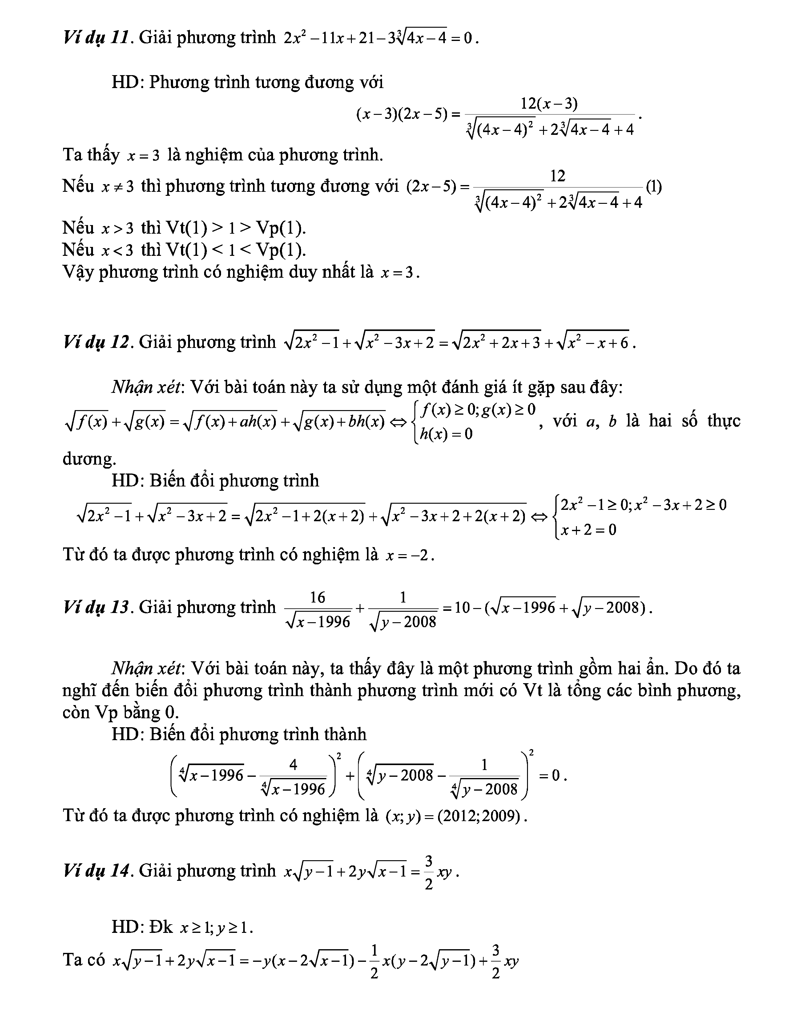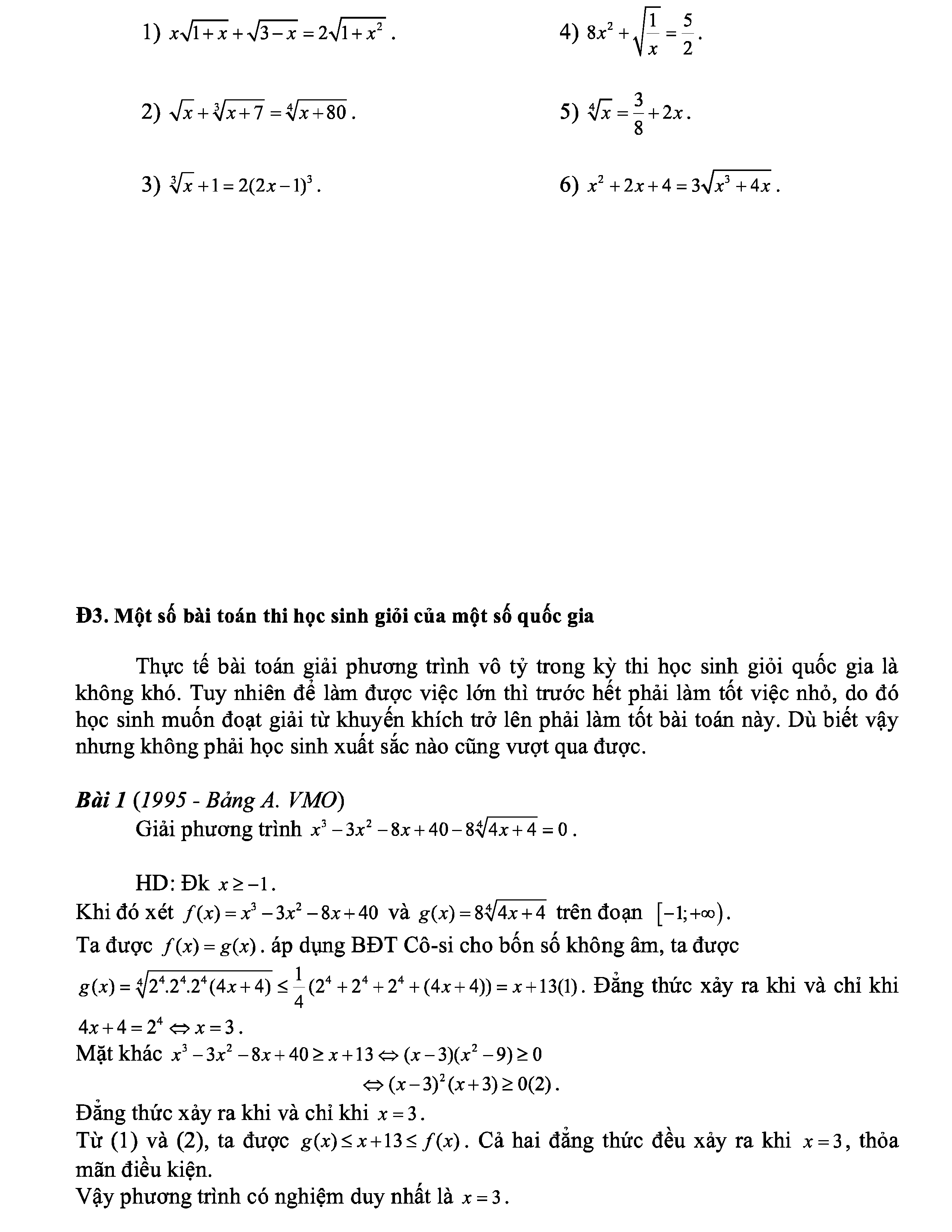 Một số phương pháp giải phương trình vô tỉ (hay và khó) toán 10