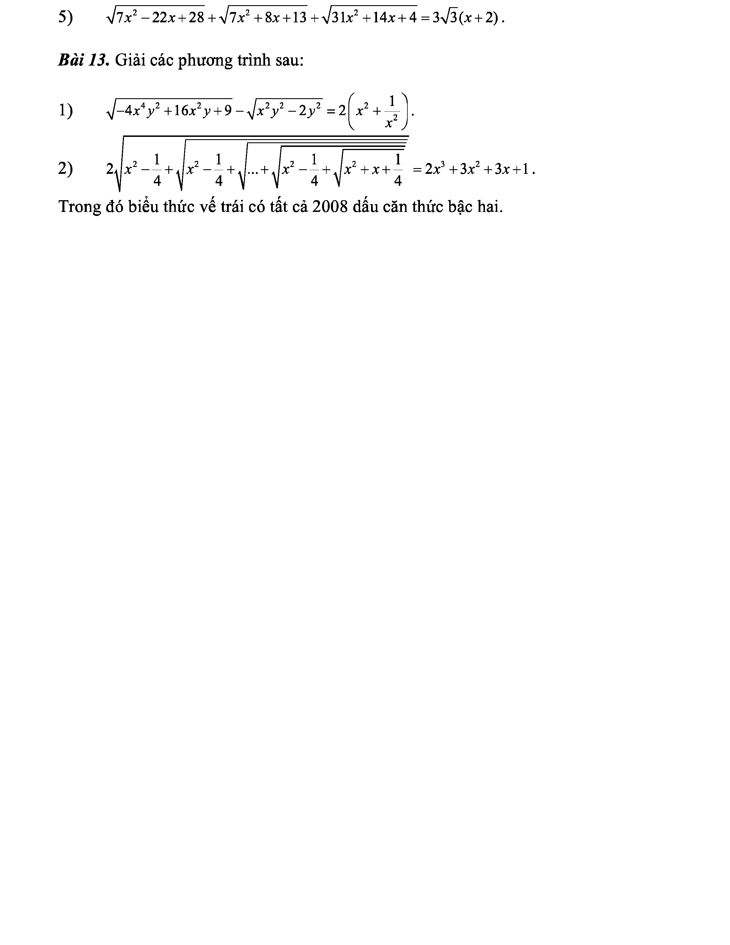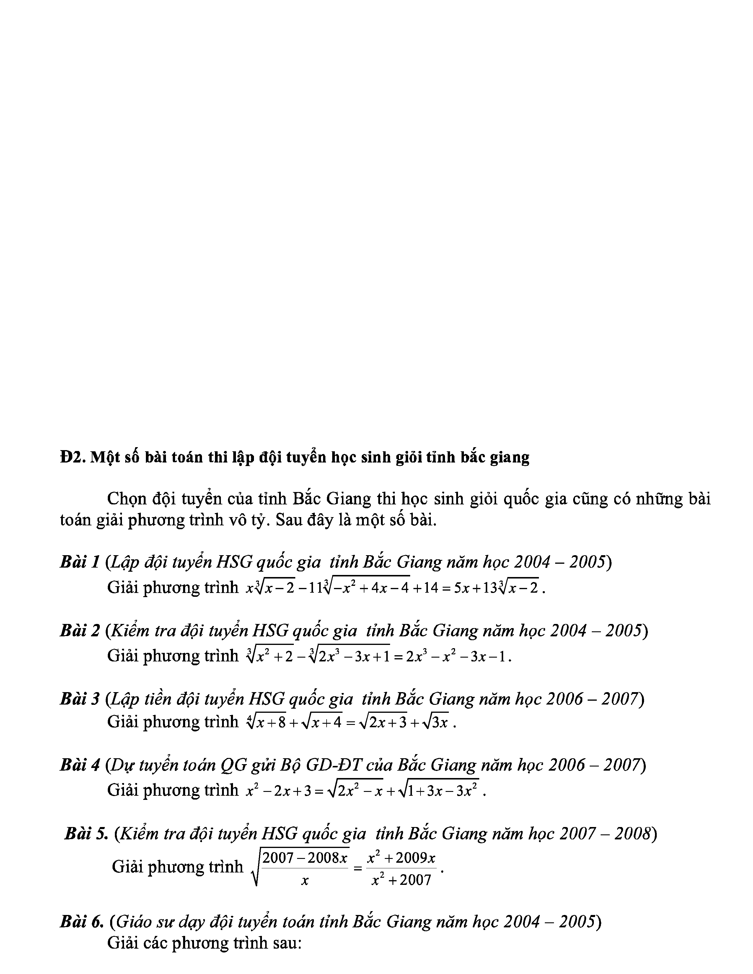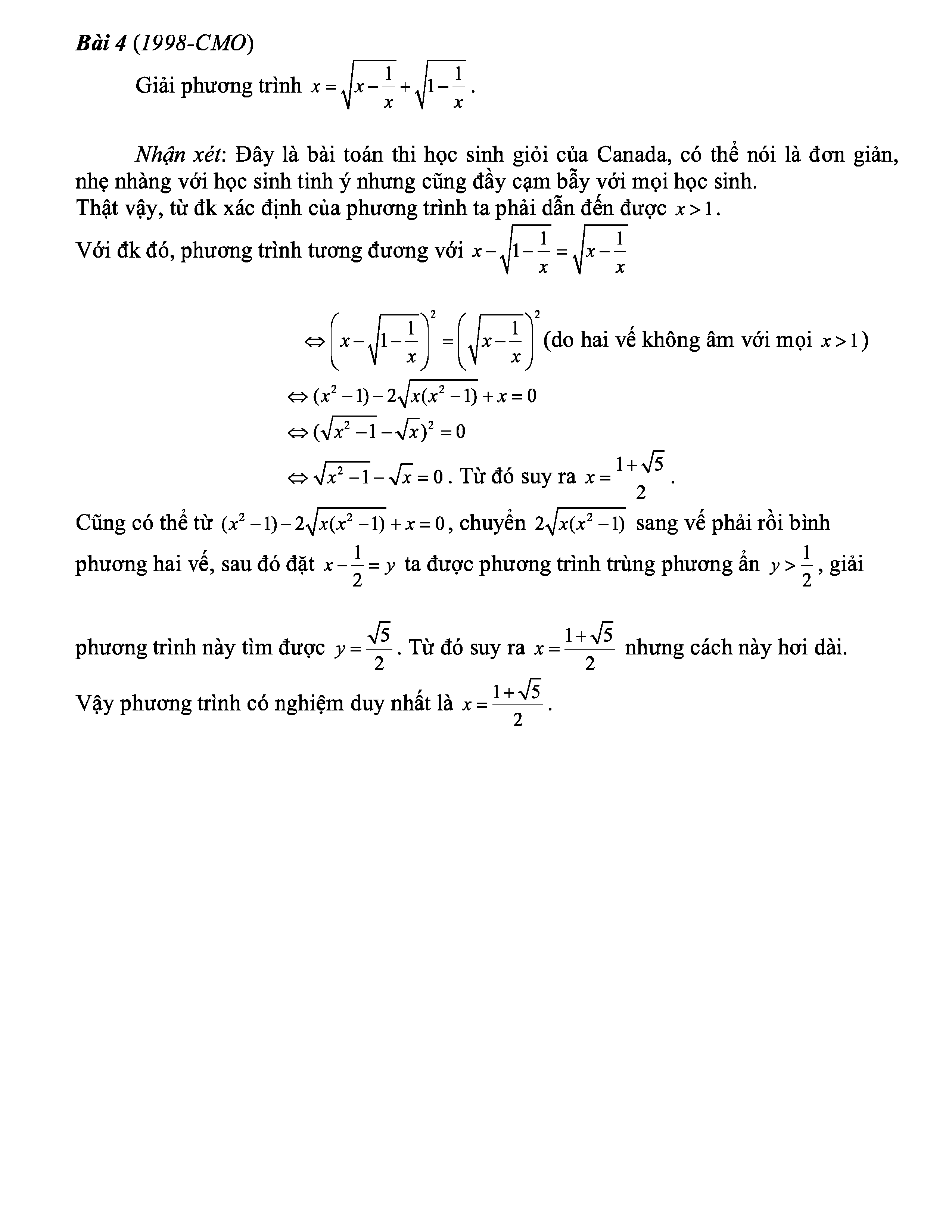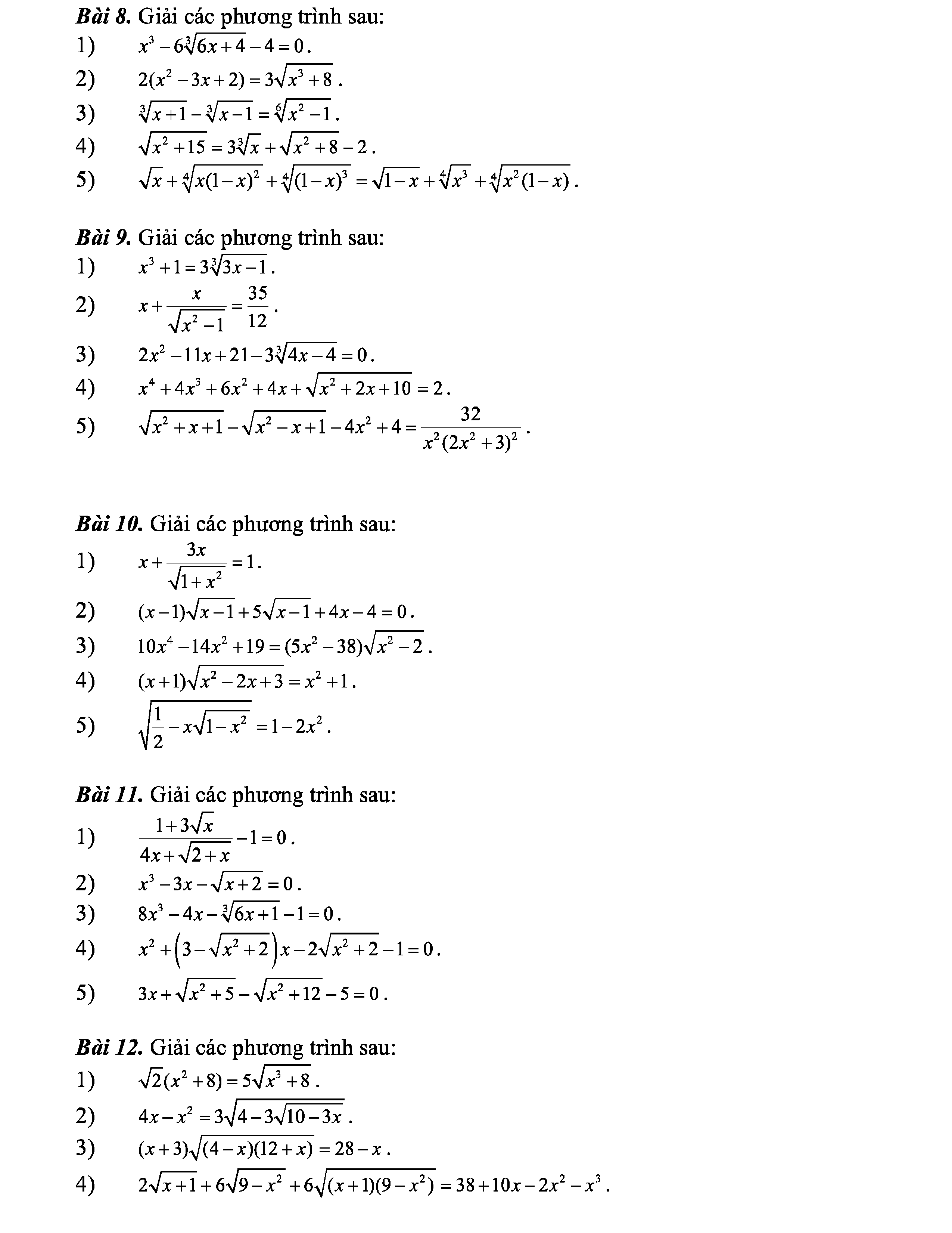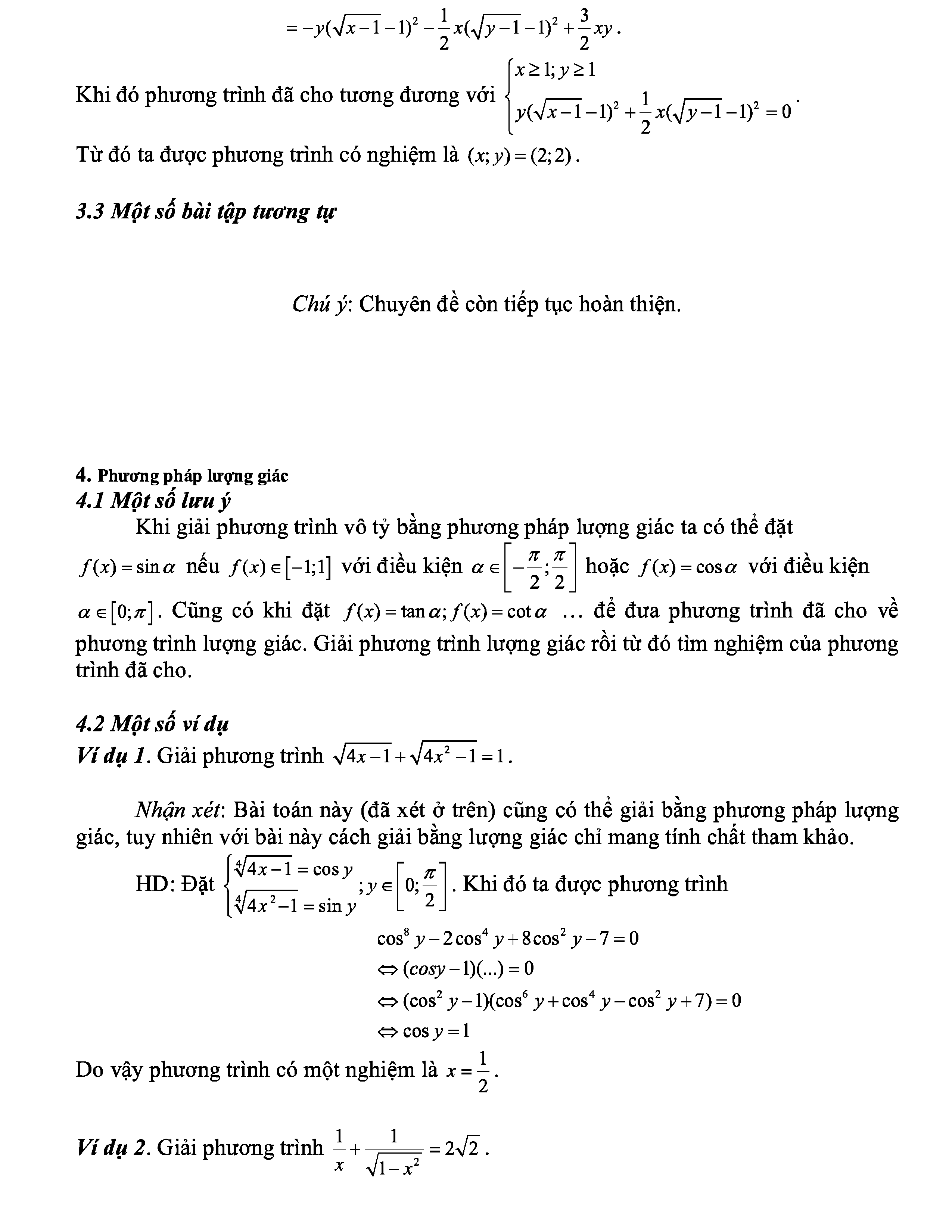 Một số phương pháp giải phương trình vô tỉ (hay và khó) toán 10