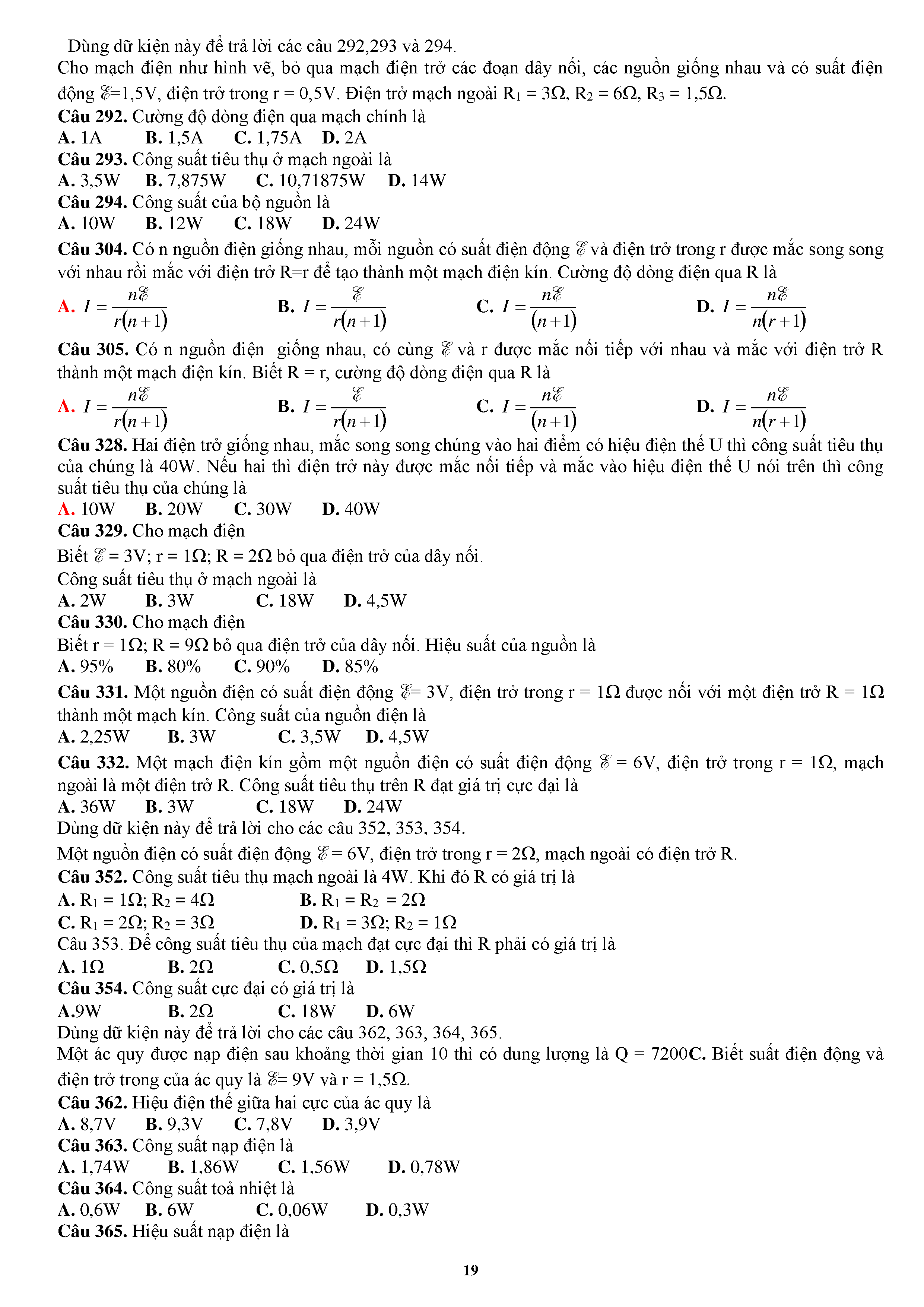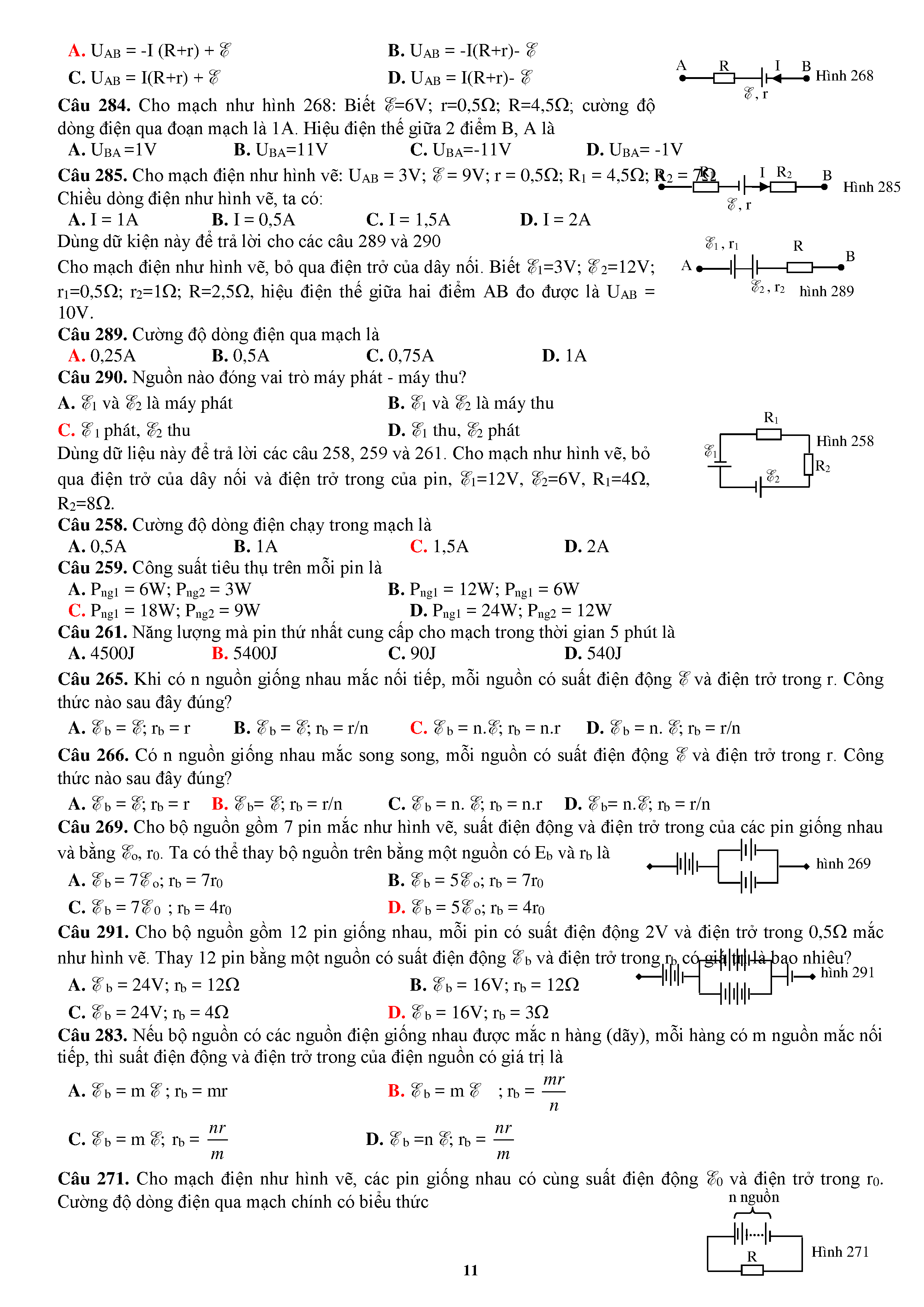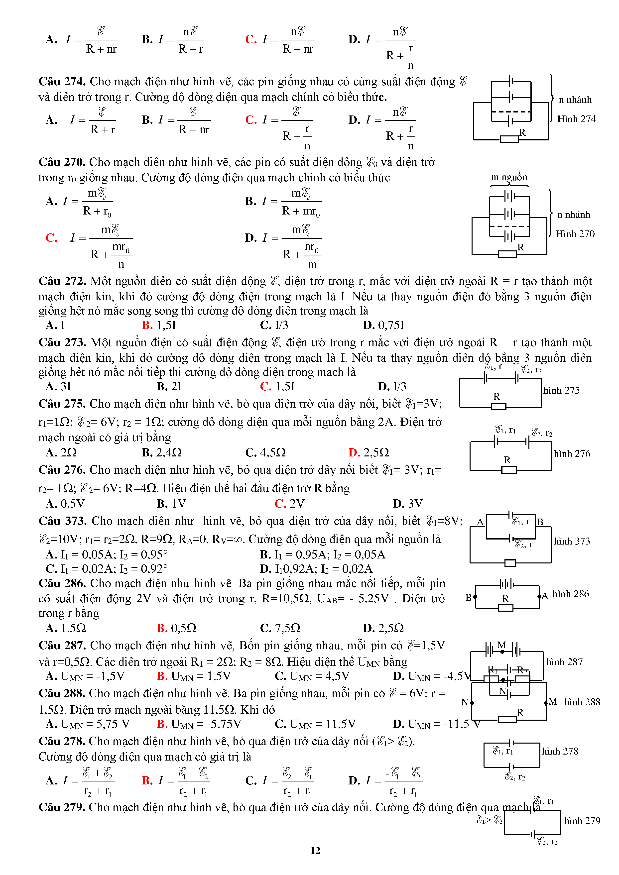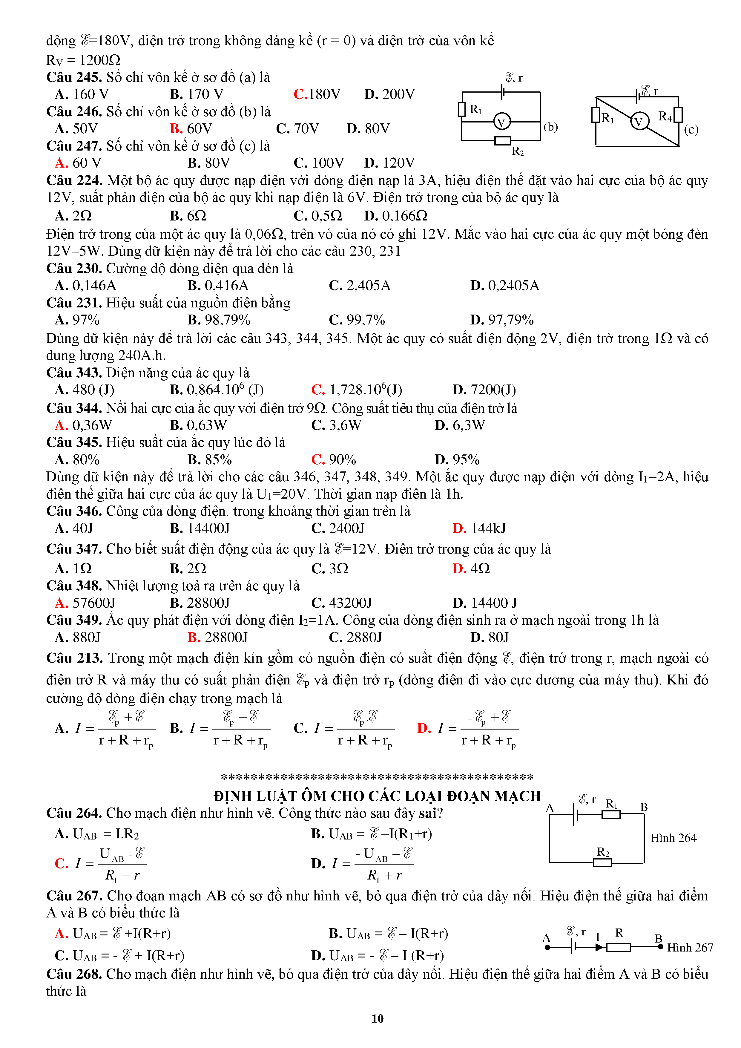 Bộ câu hỏi trắc nghiệm chương DÒNG ĐIỆN KHÔNG ĐỔI (có đáp án)
