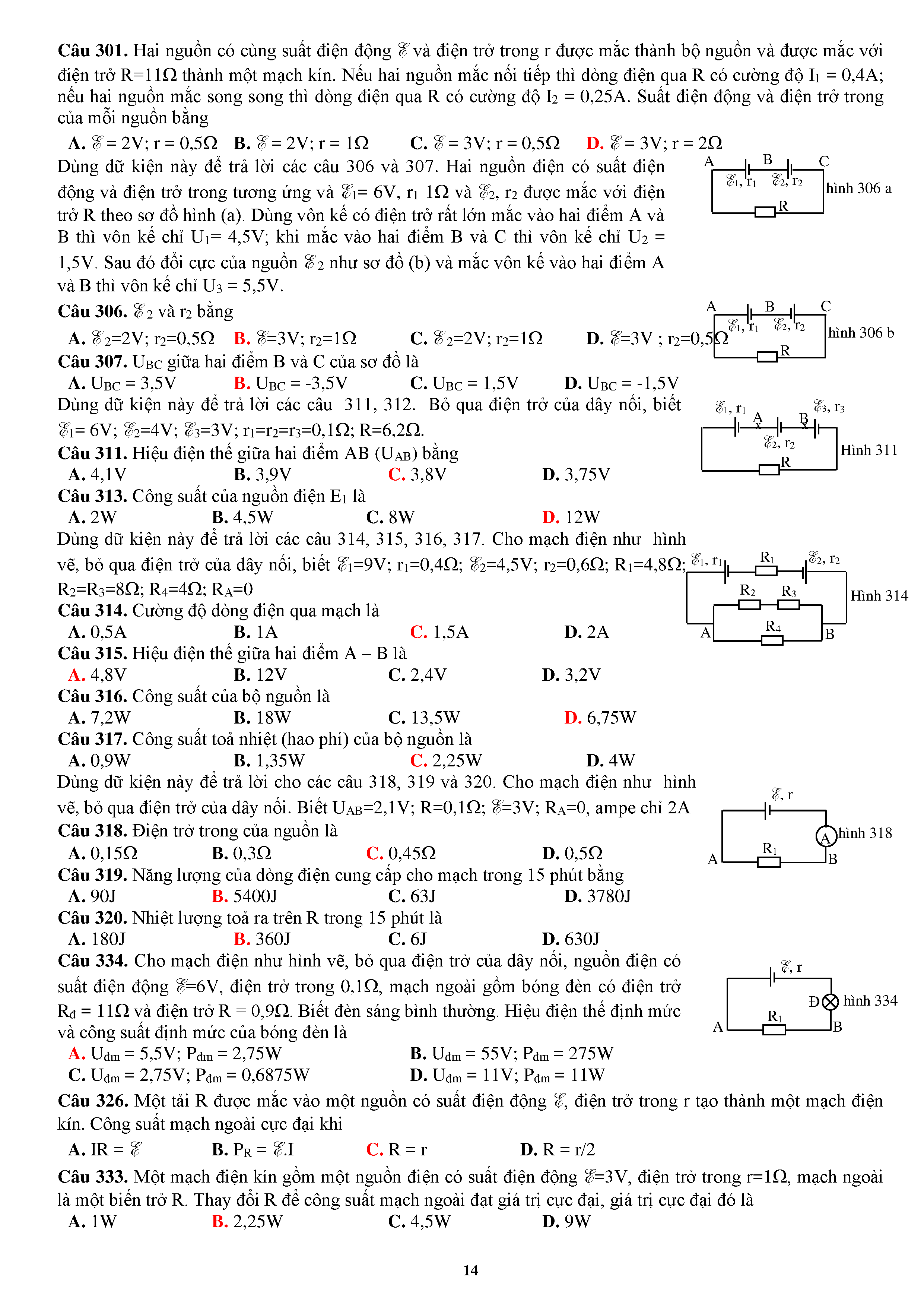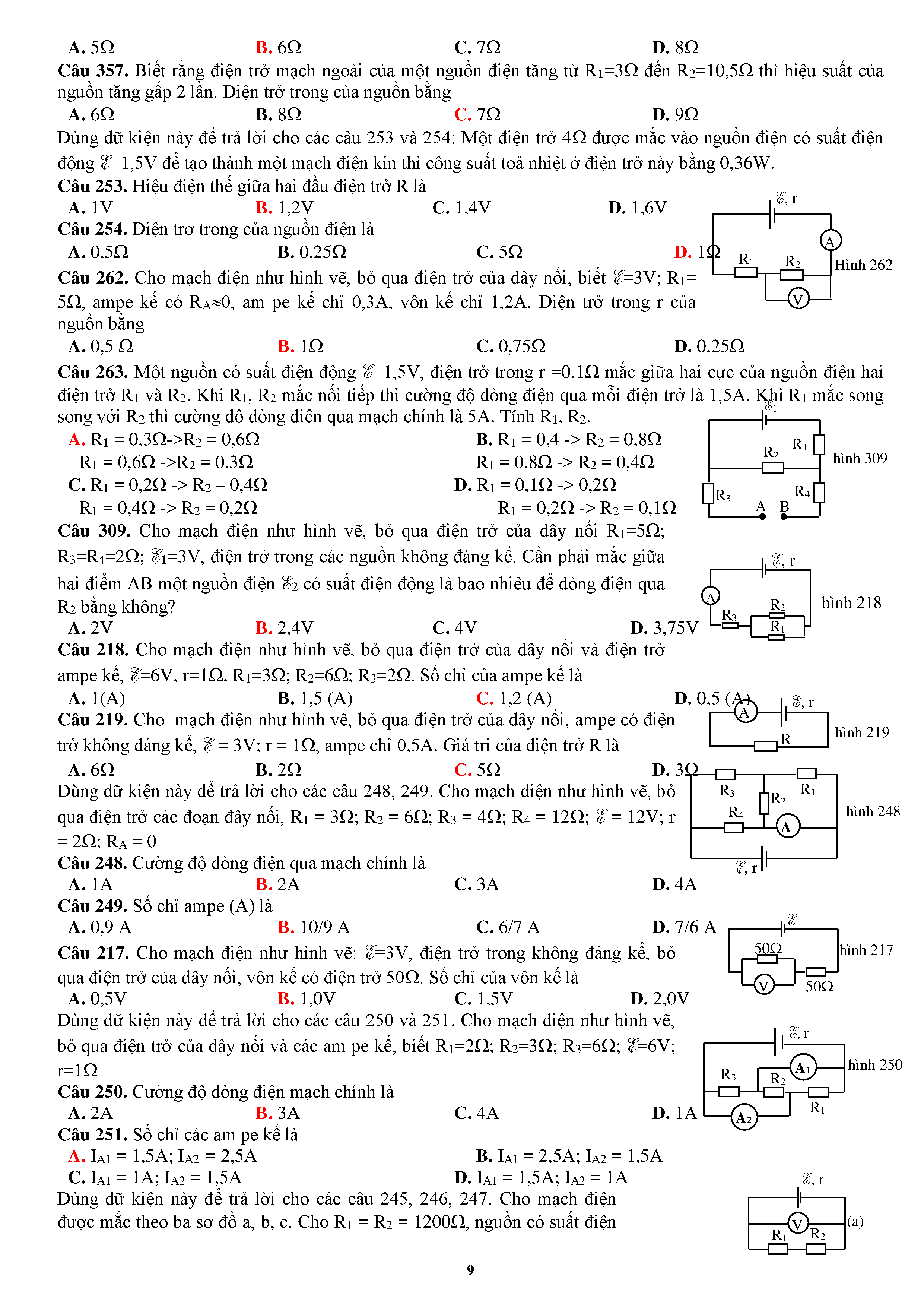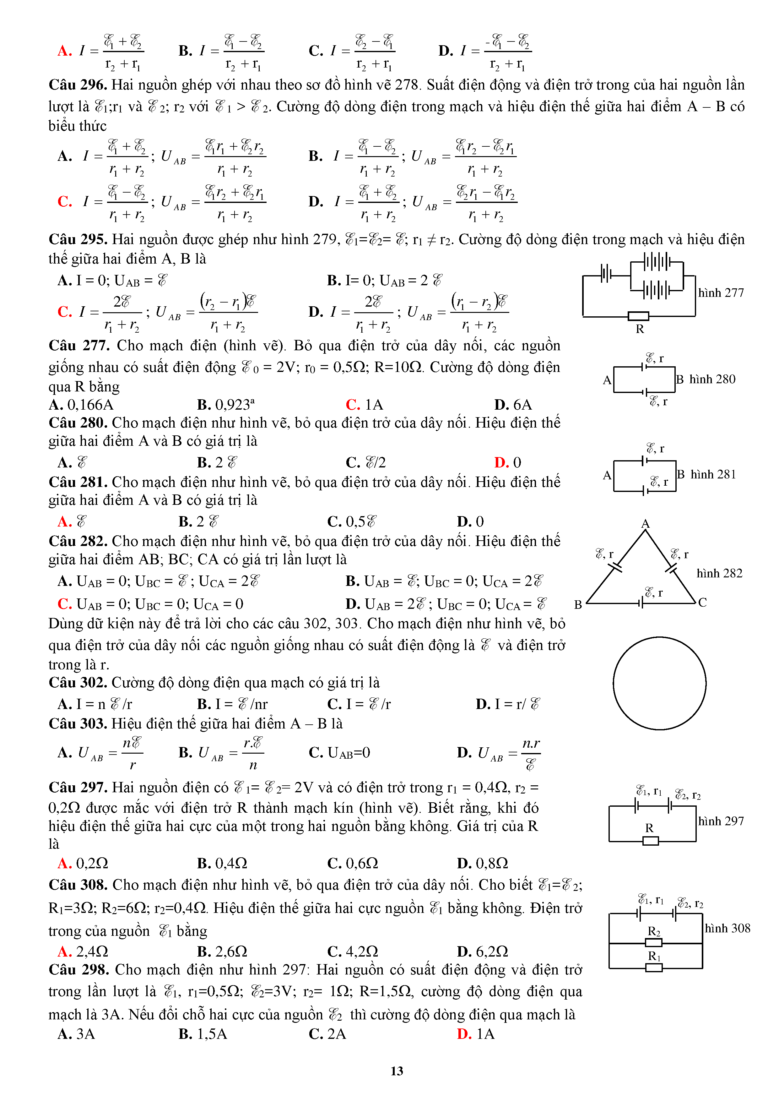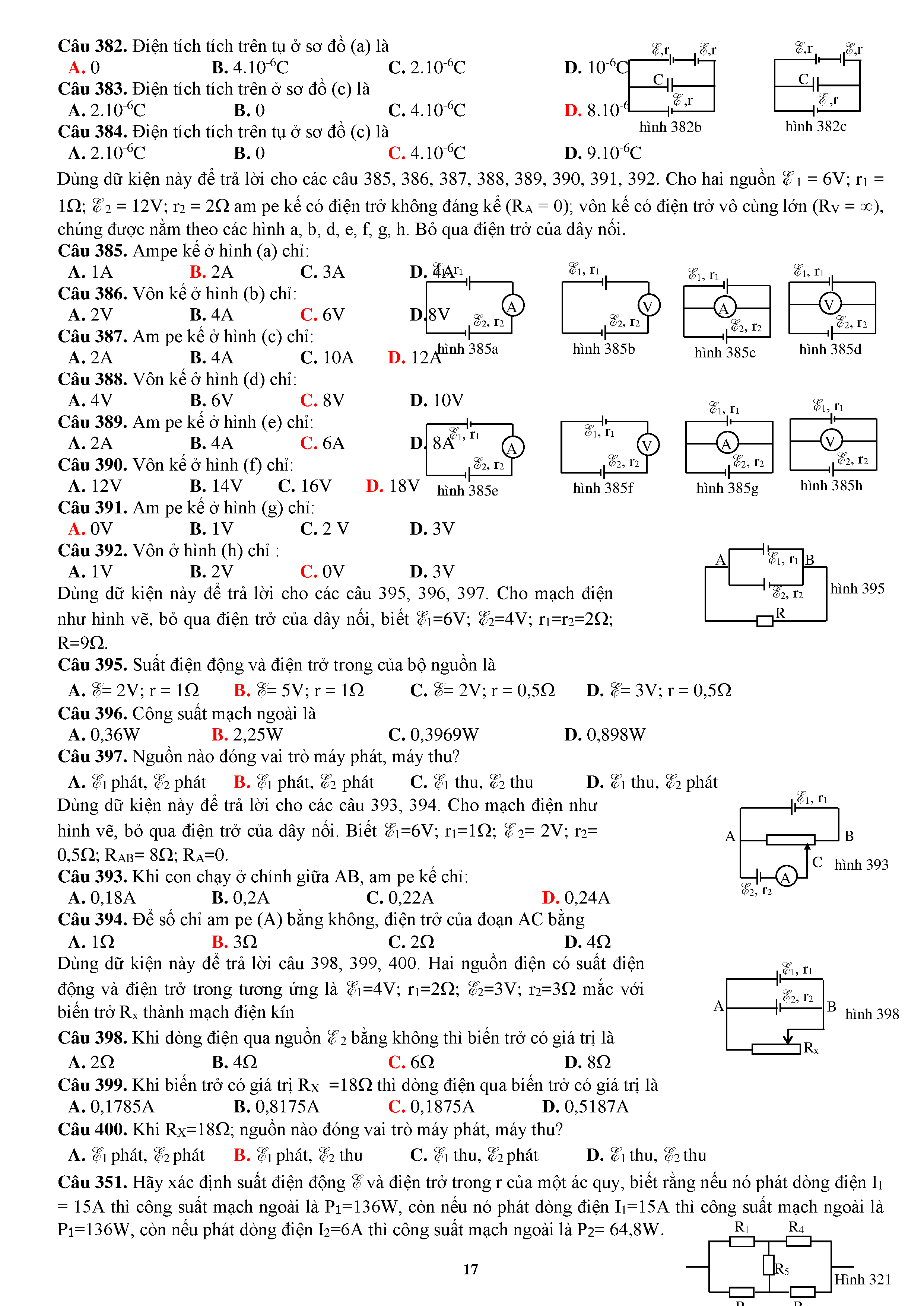 Bộ câu hỏi trắc nghiệm chương DÒNG ĐIỆN KHÔNG ĐỔI (có đáp án)