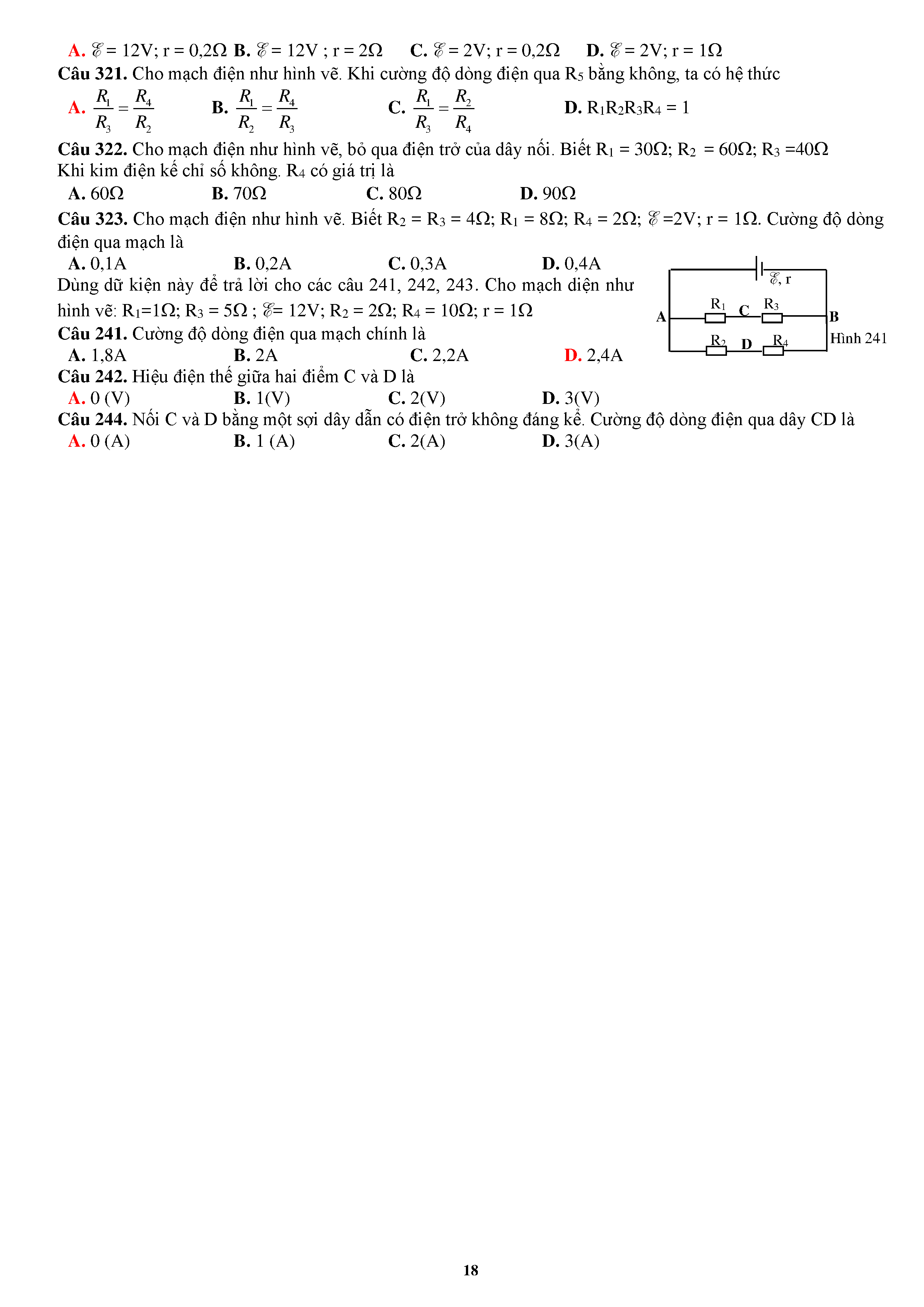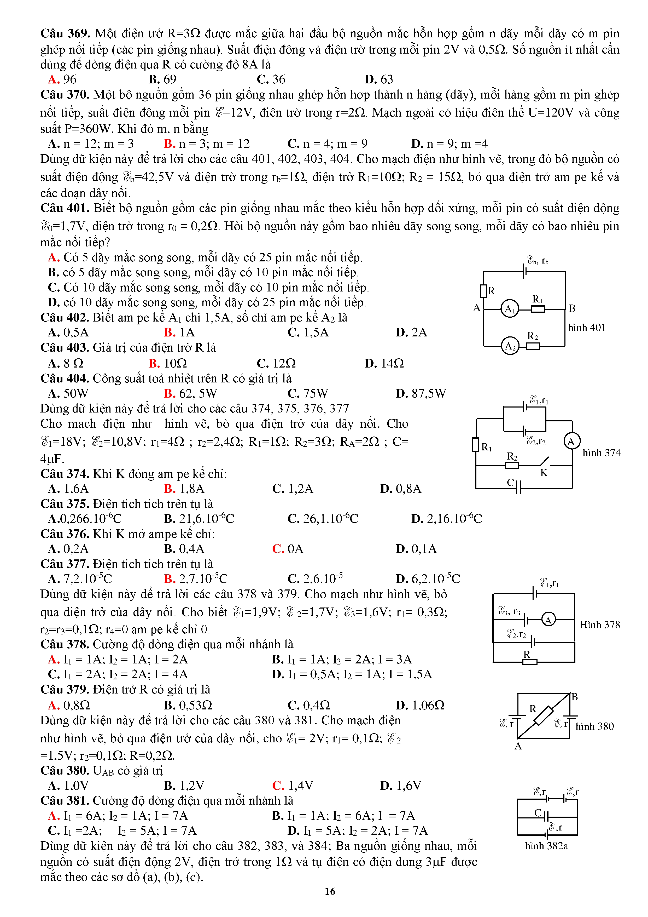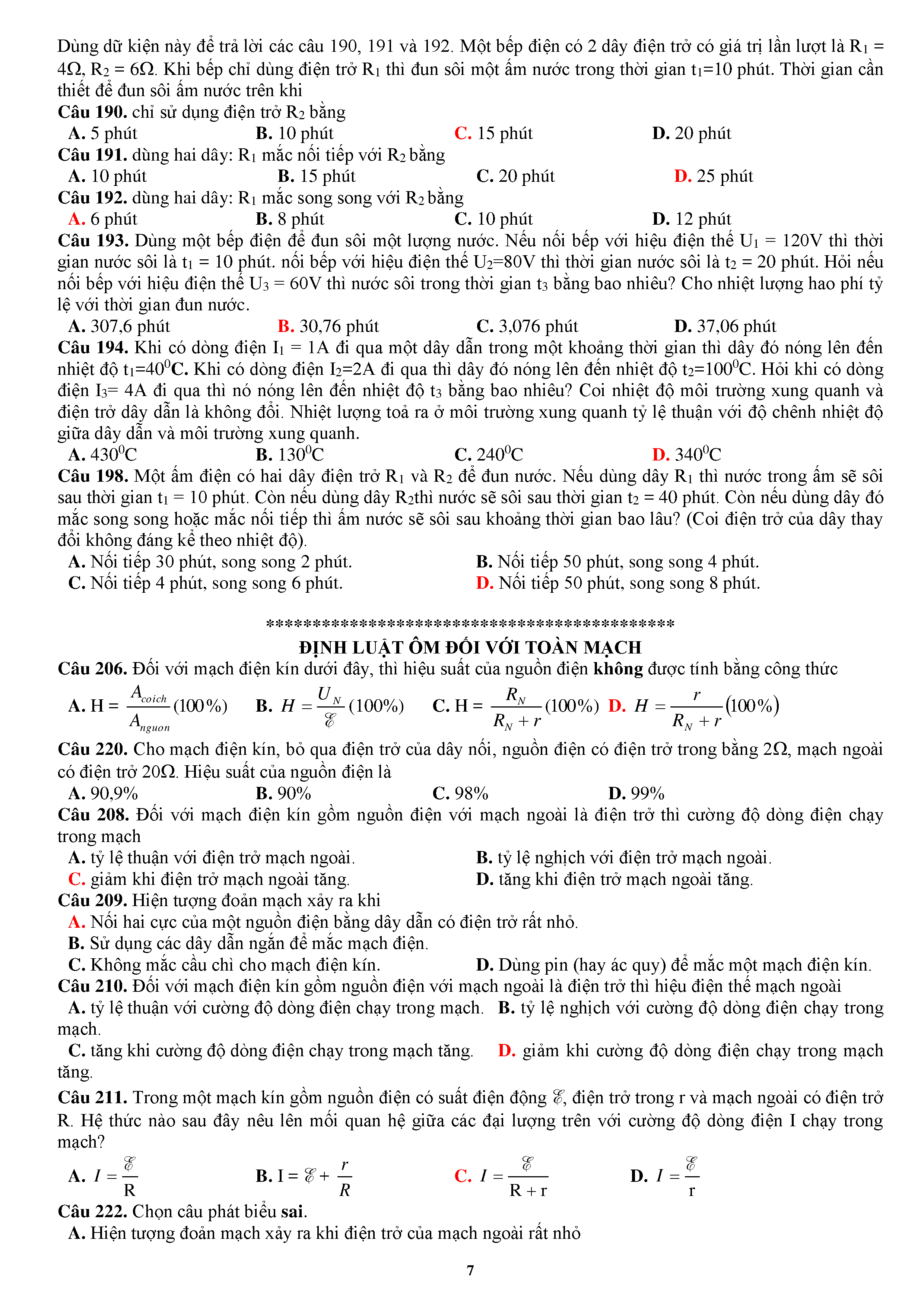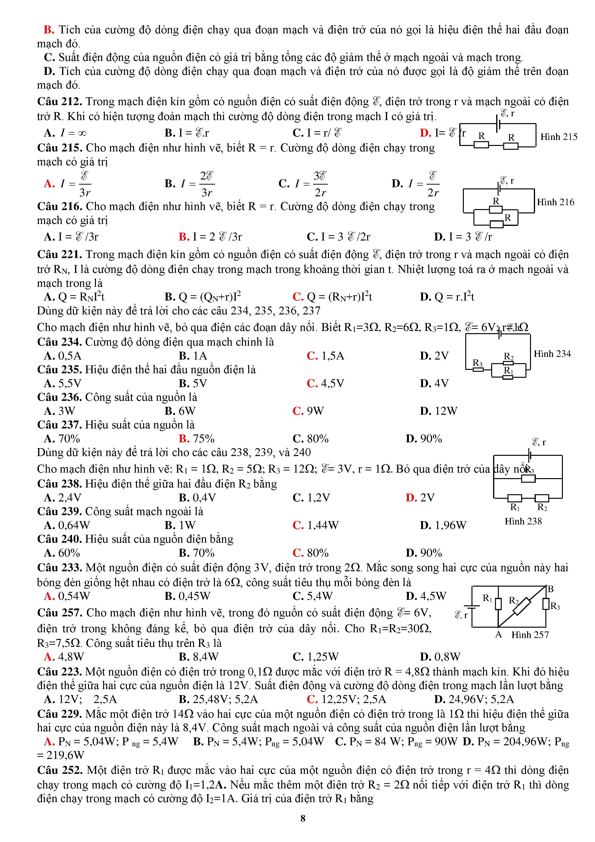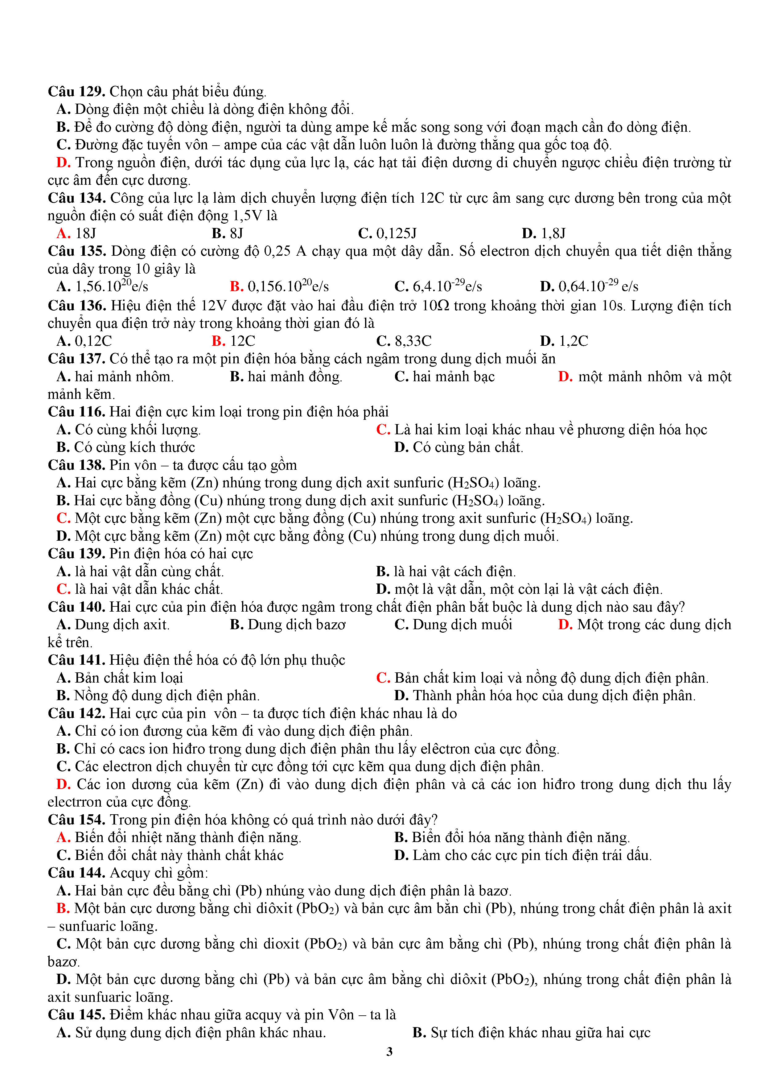 Bộ câu hỏi trắc nghiệm chương DÒNG ĐIỆN KHÔNG ĐỔI (có đáp án)