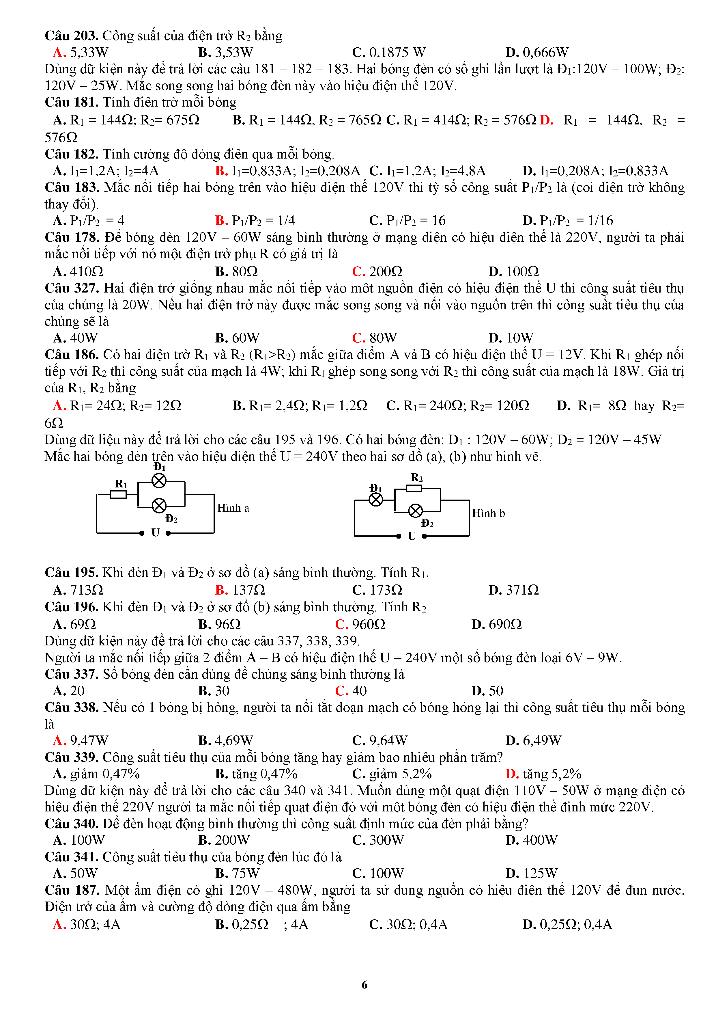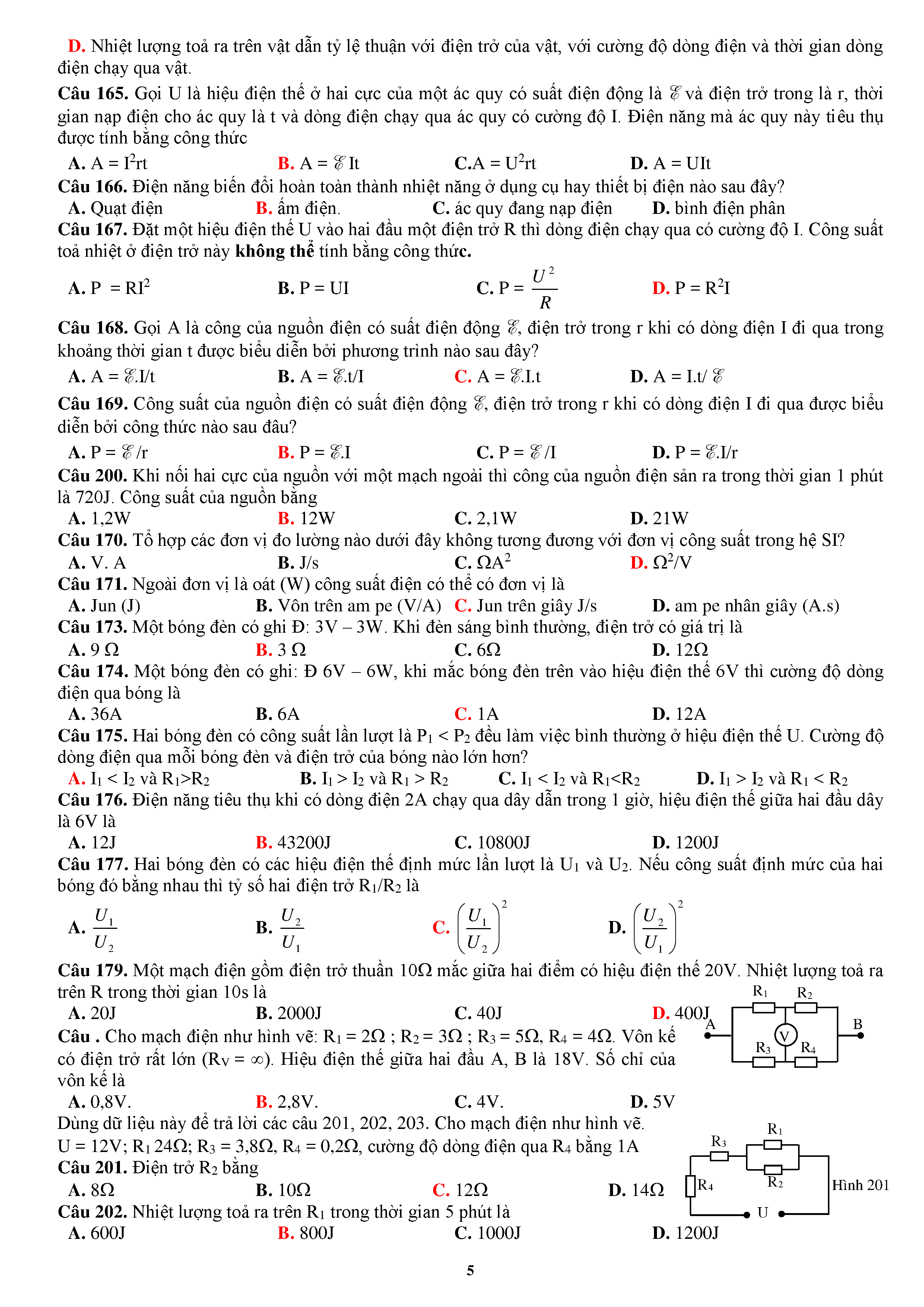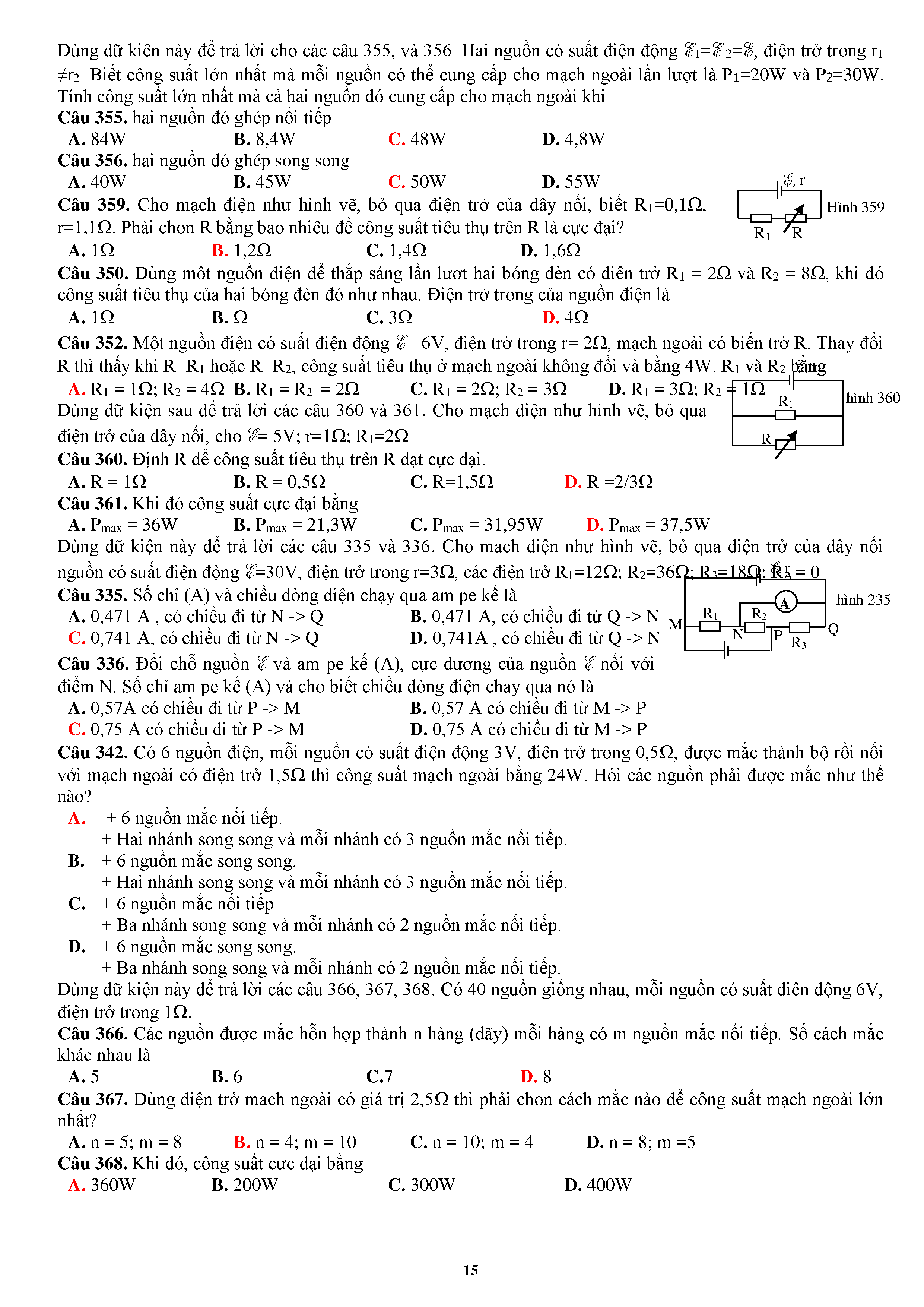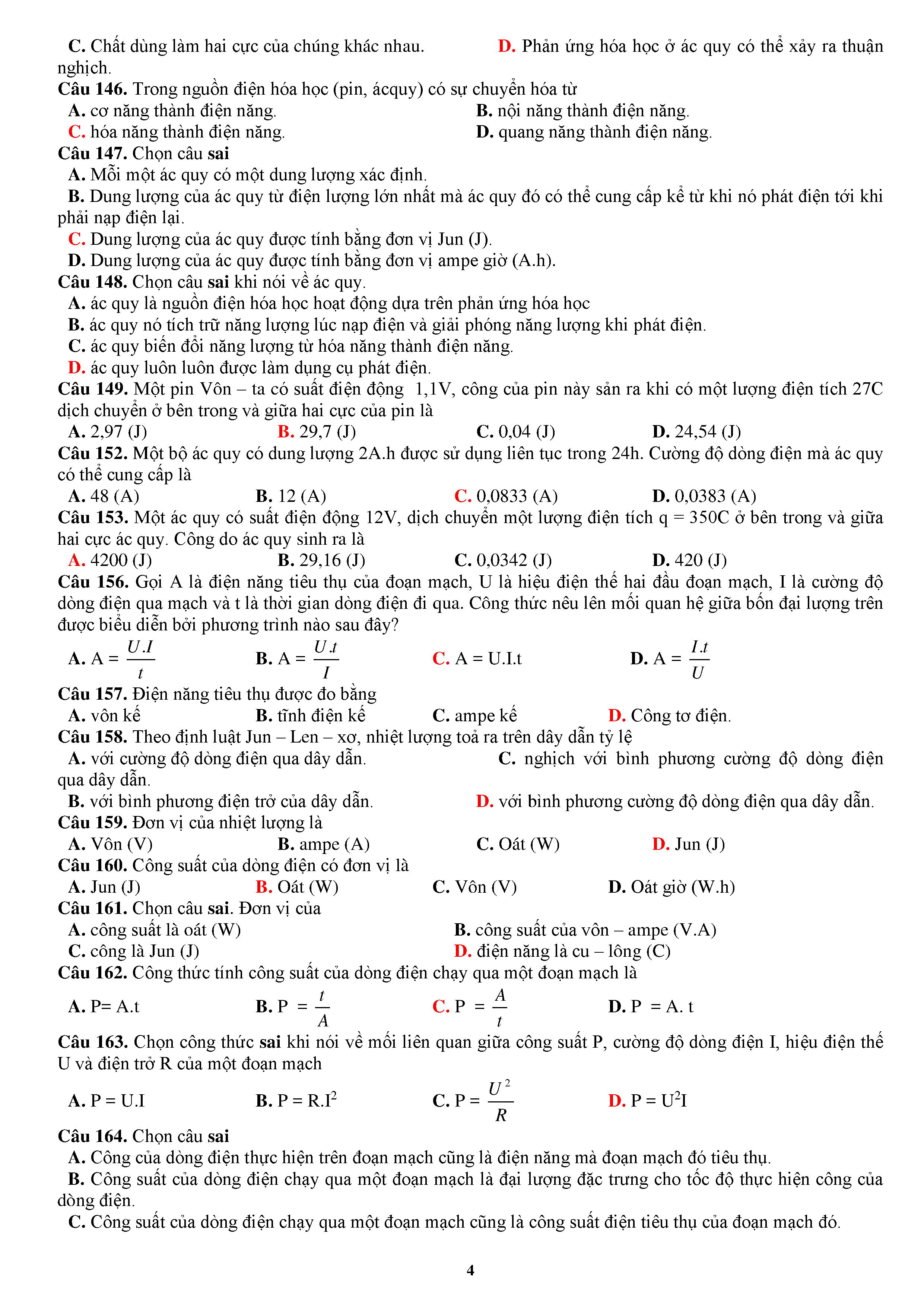 Bộ câu hỏi trắc nghiệm chương DÒNG ĐIỆN KHÔNG ĐỔI (có đáp án)