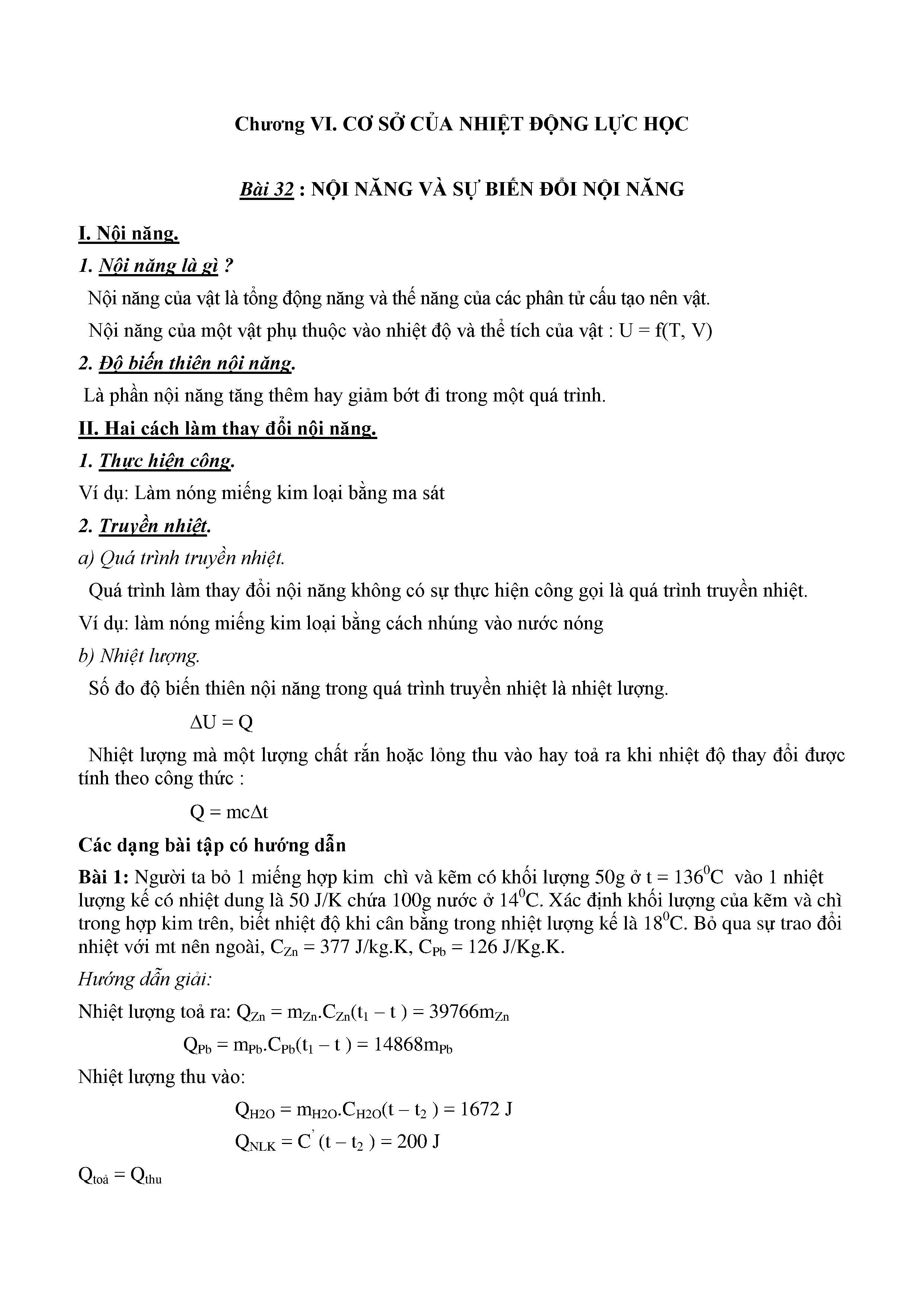 Phần Nhiệt Học -Lý thuyết và các dạng bài tập - Vật lí 10
