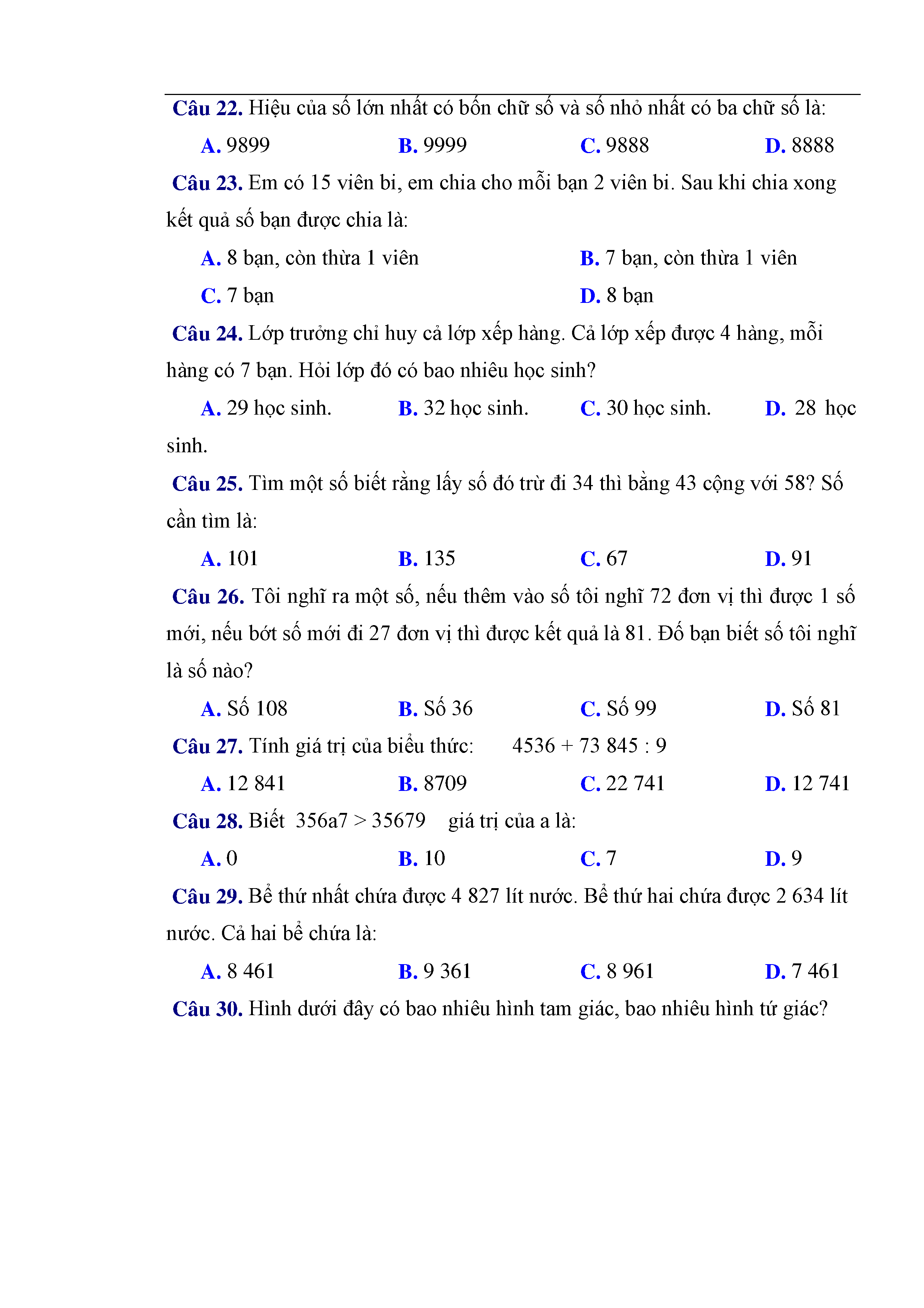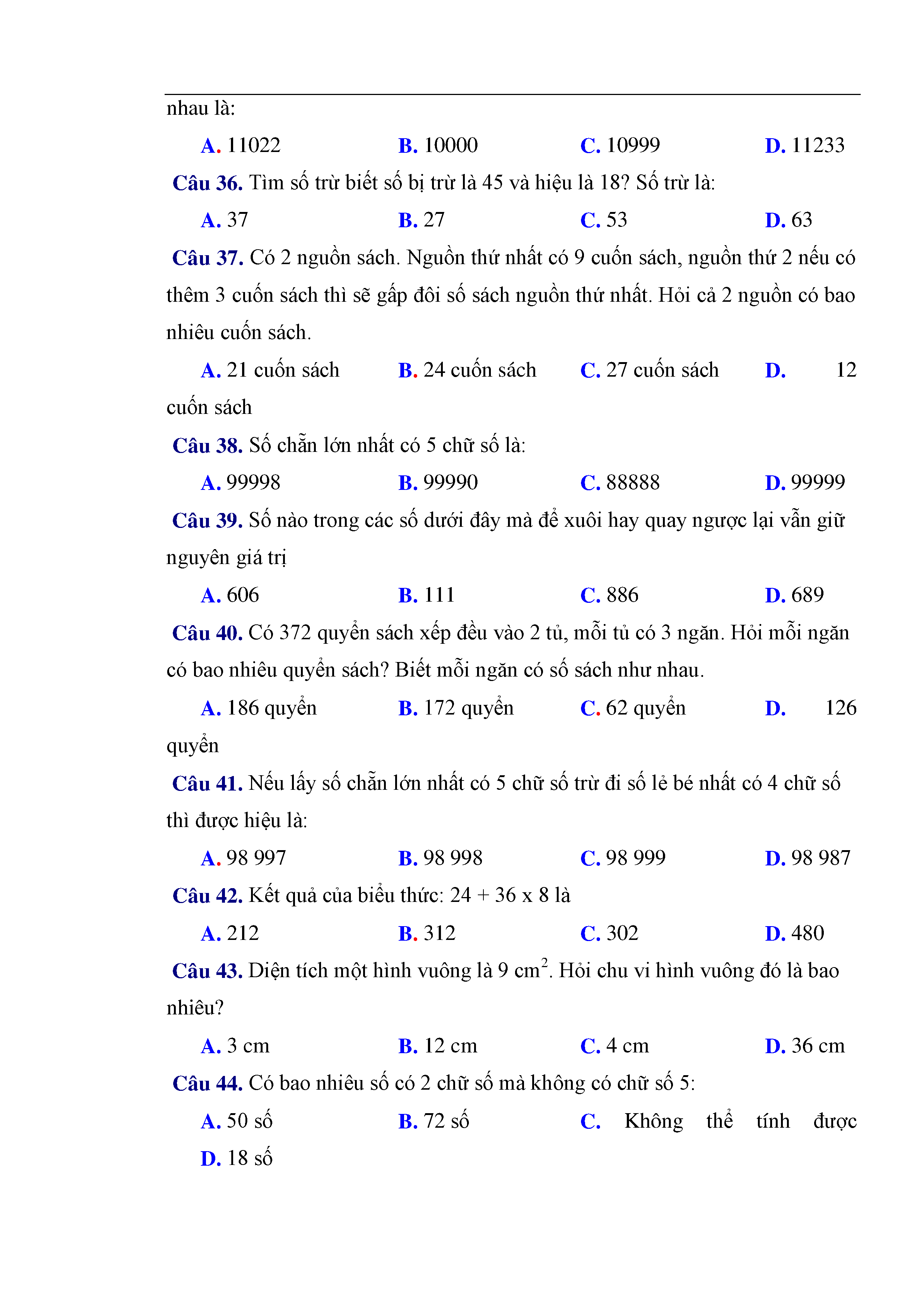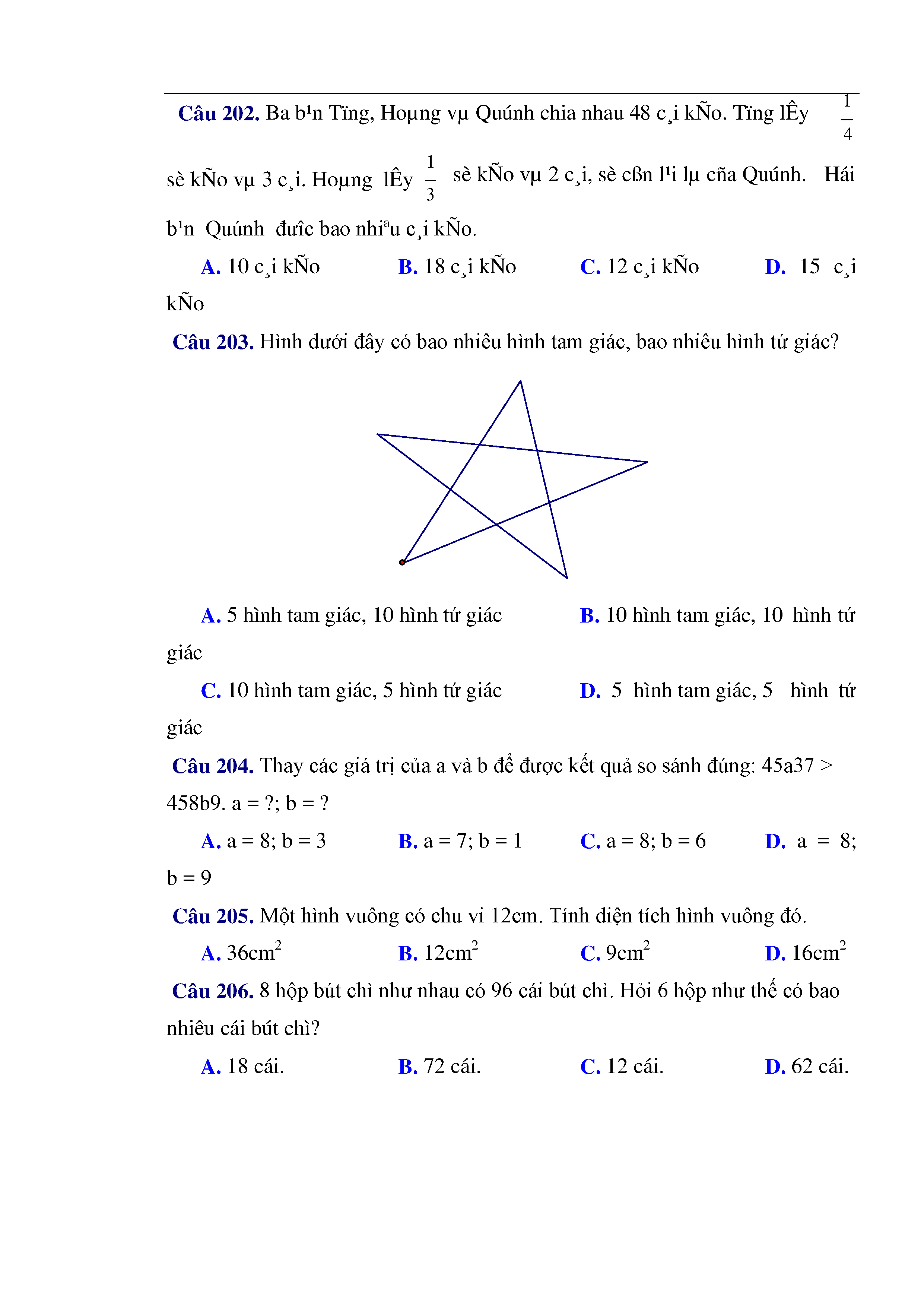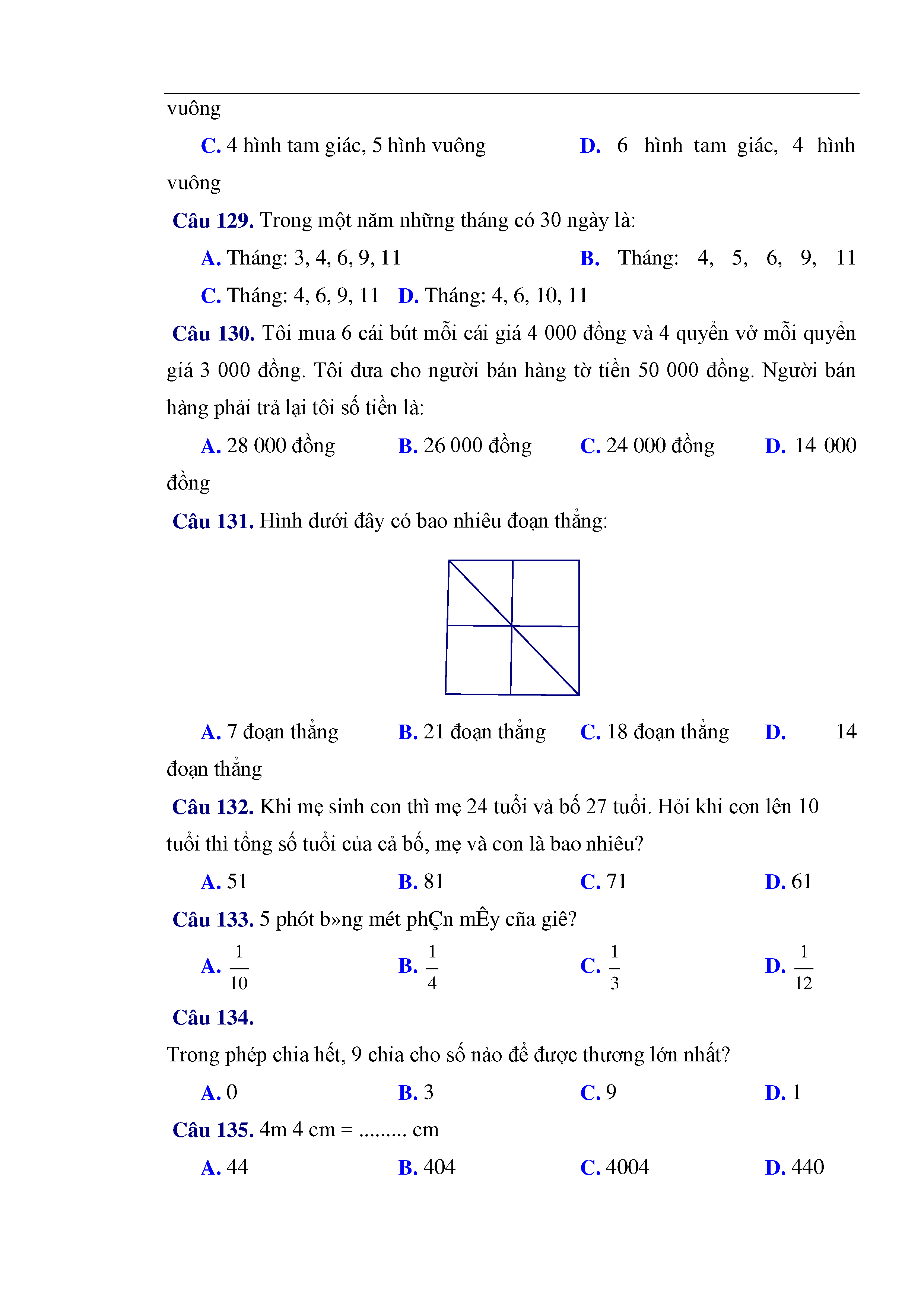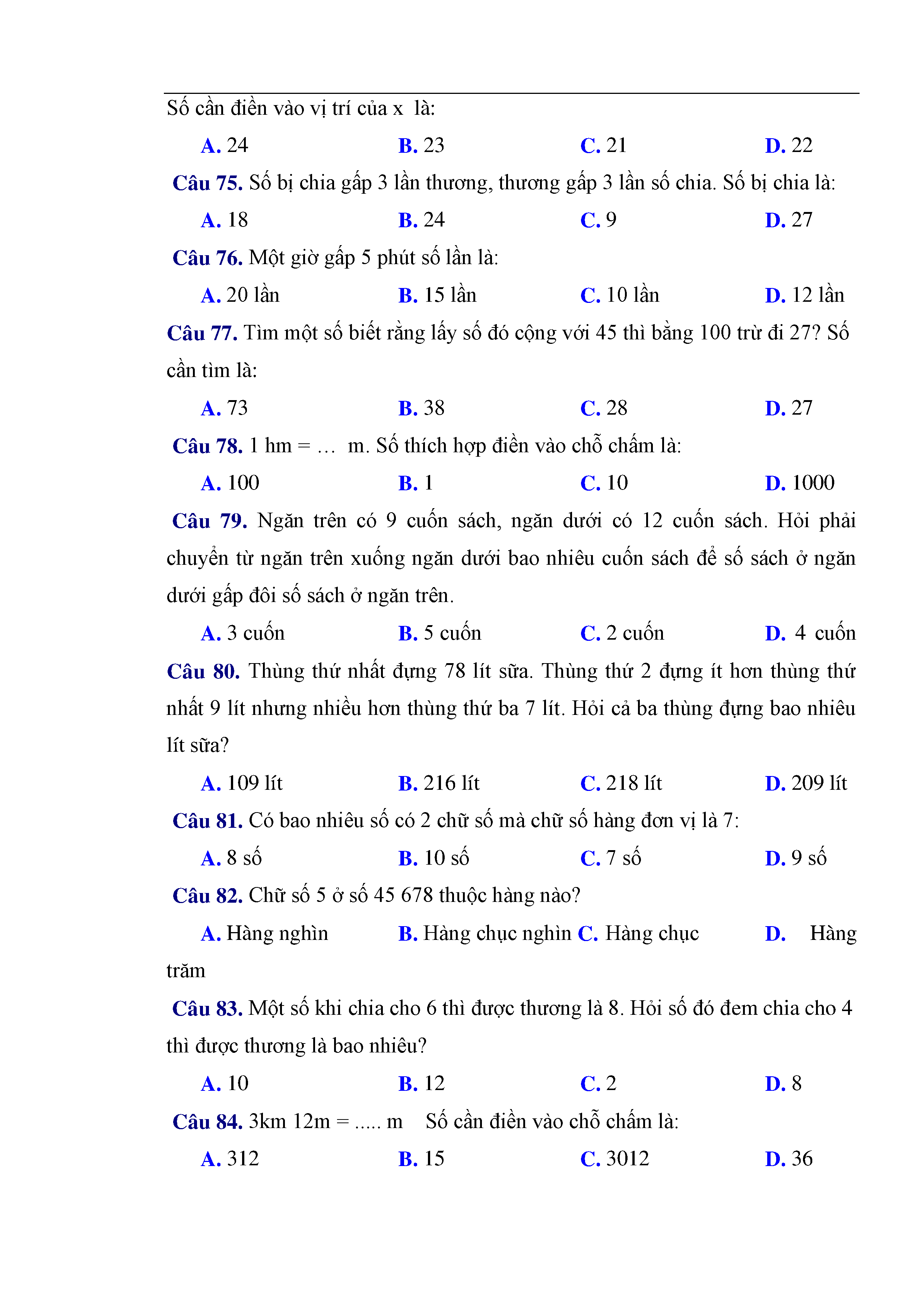 216 câu trắc nghiệm và bài tập toán lớp 3