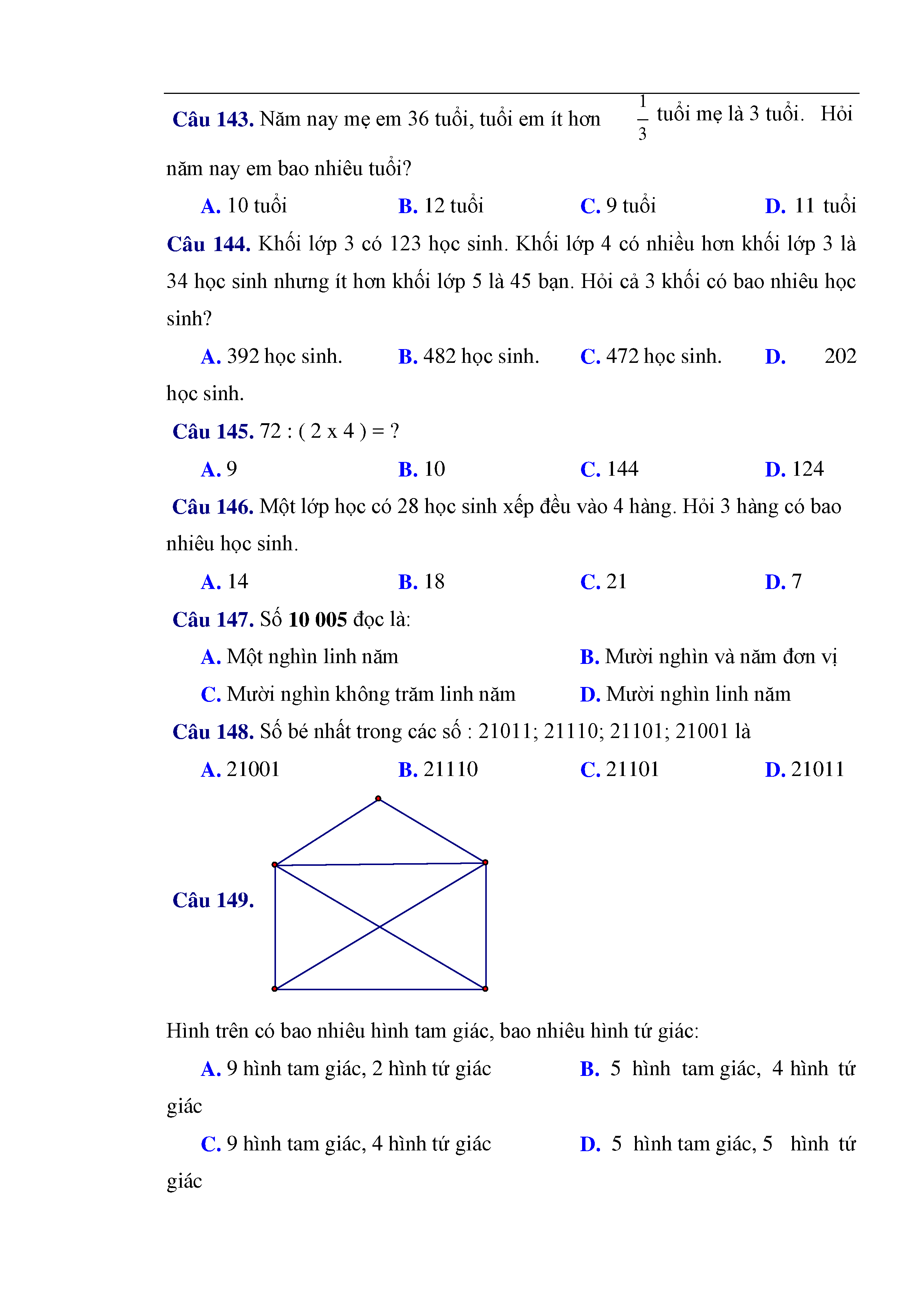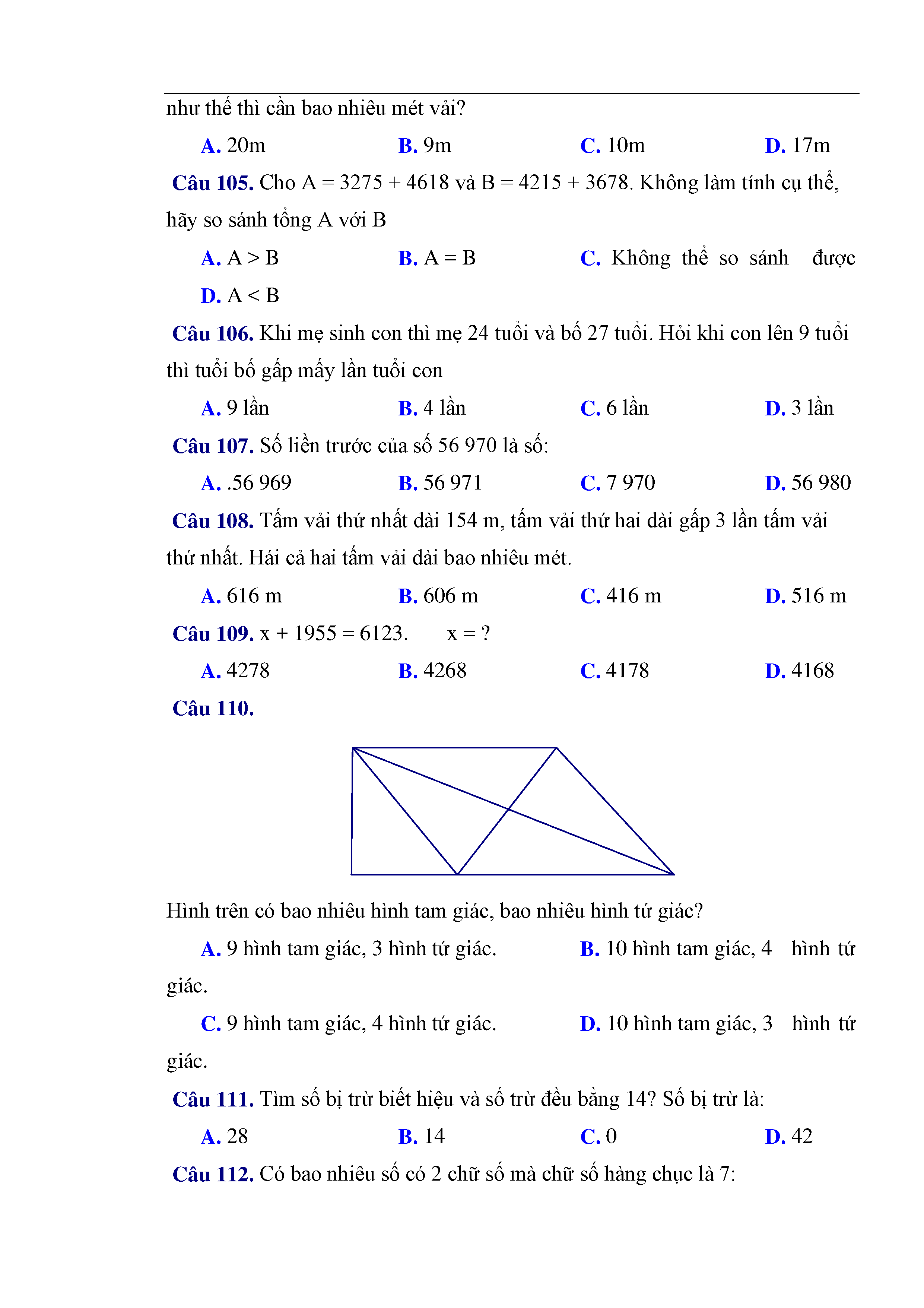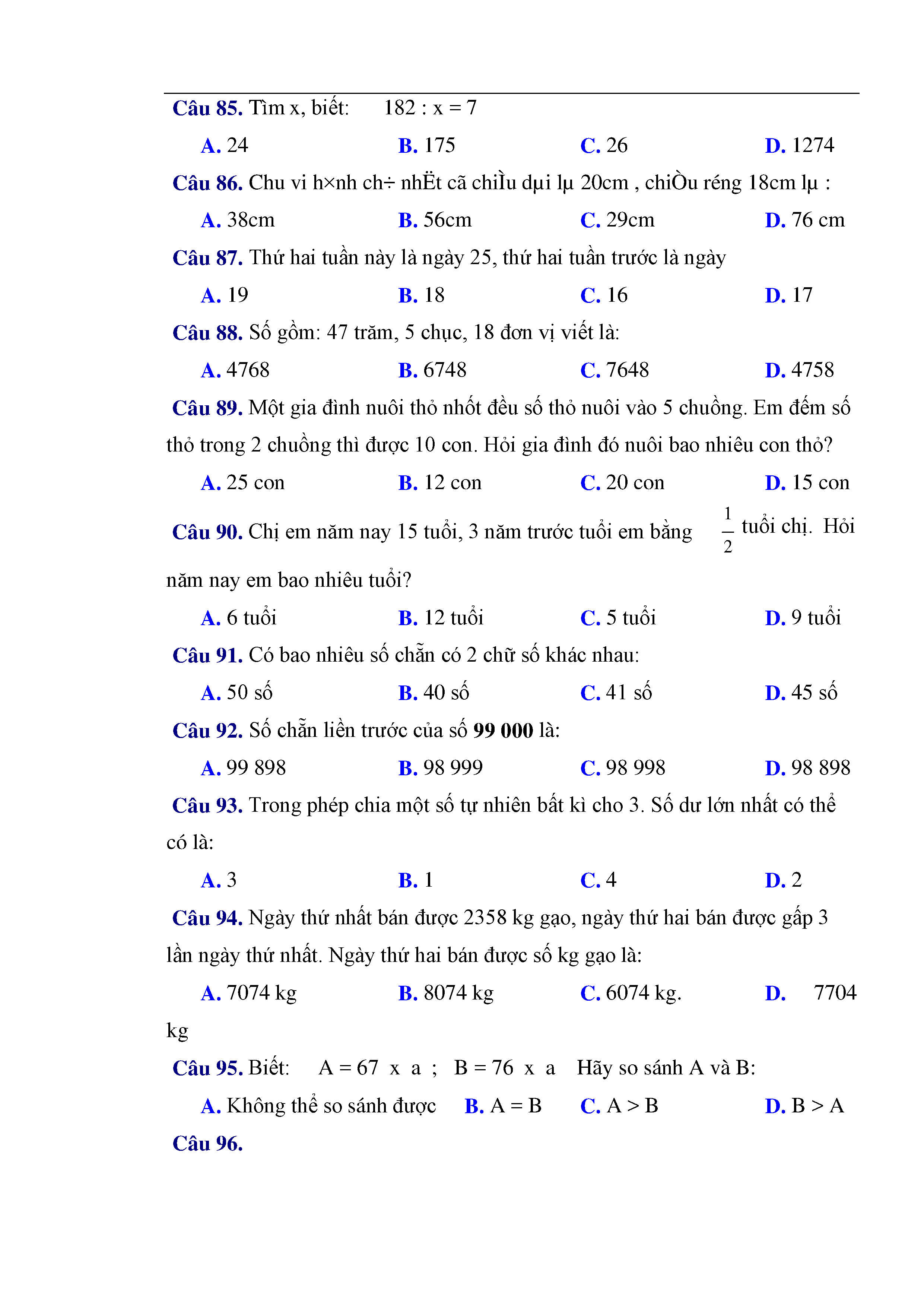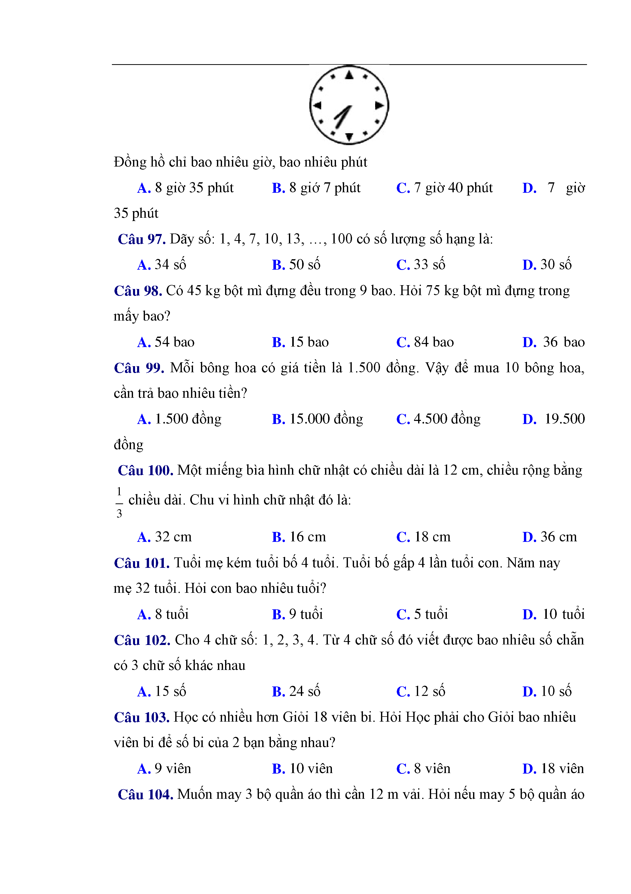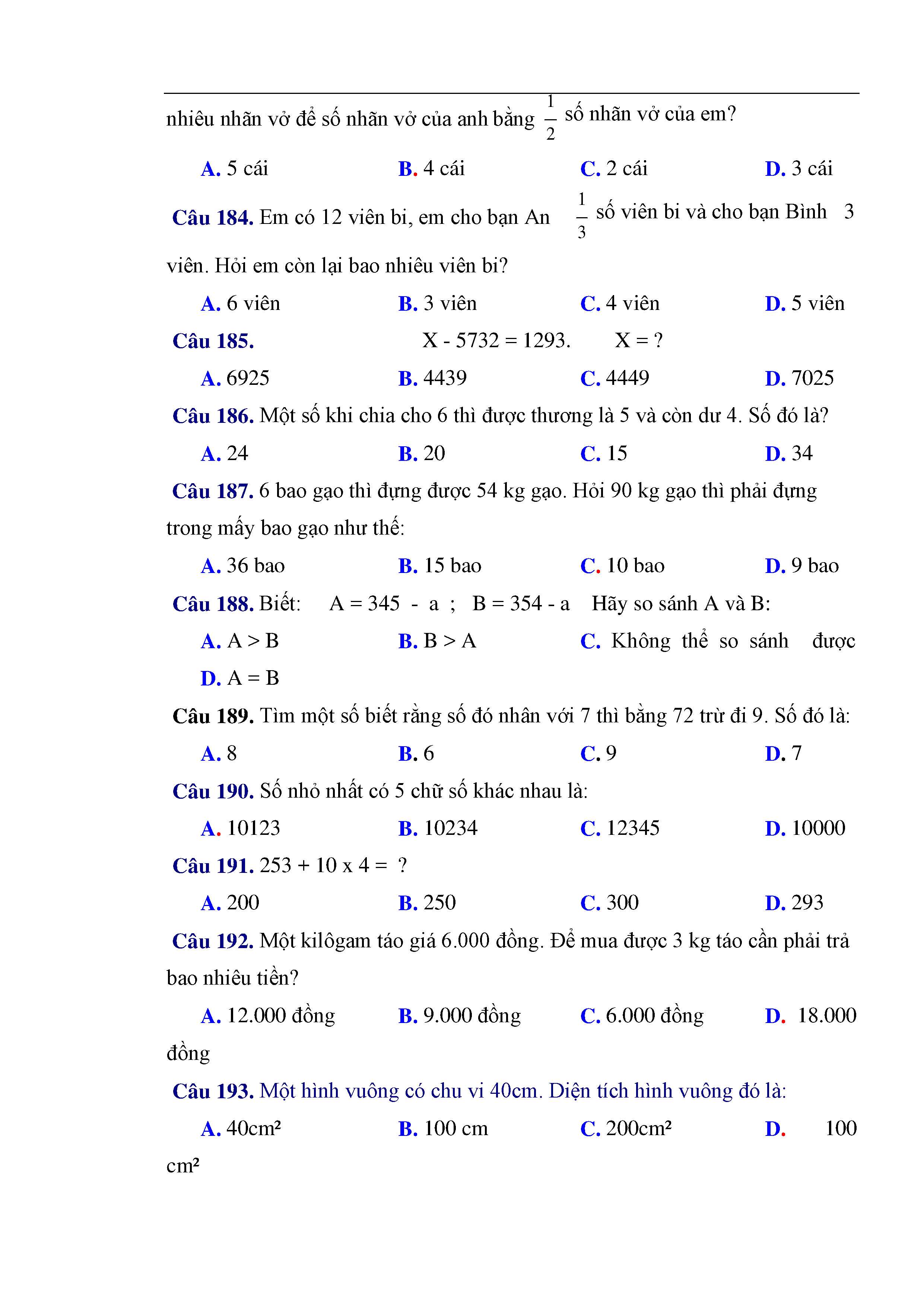216 câu trắc nghiệm và bài tập toán lớp 3