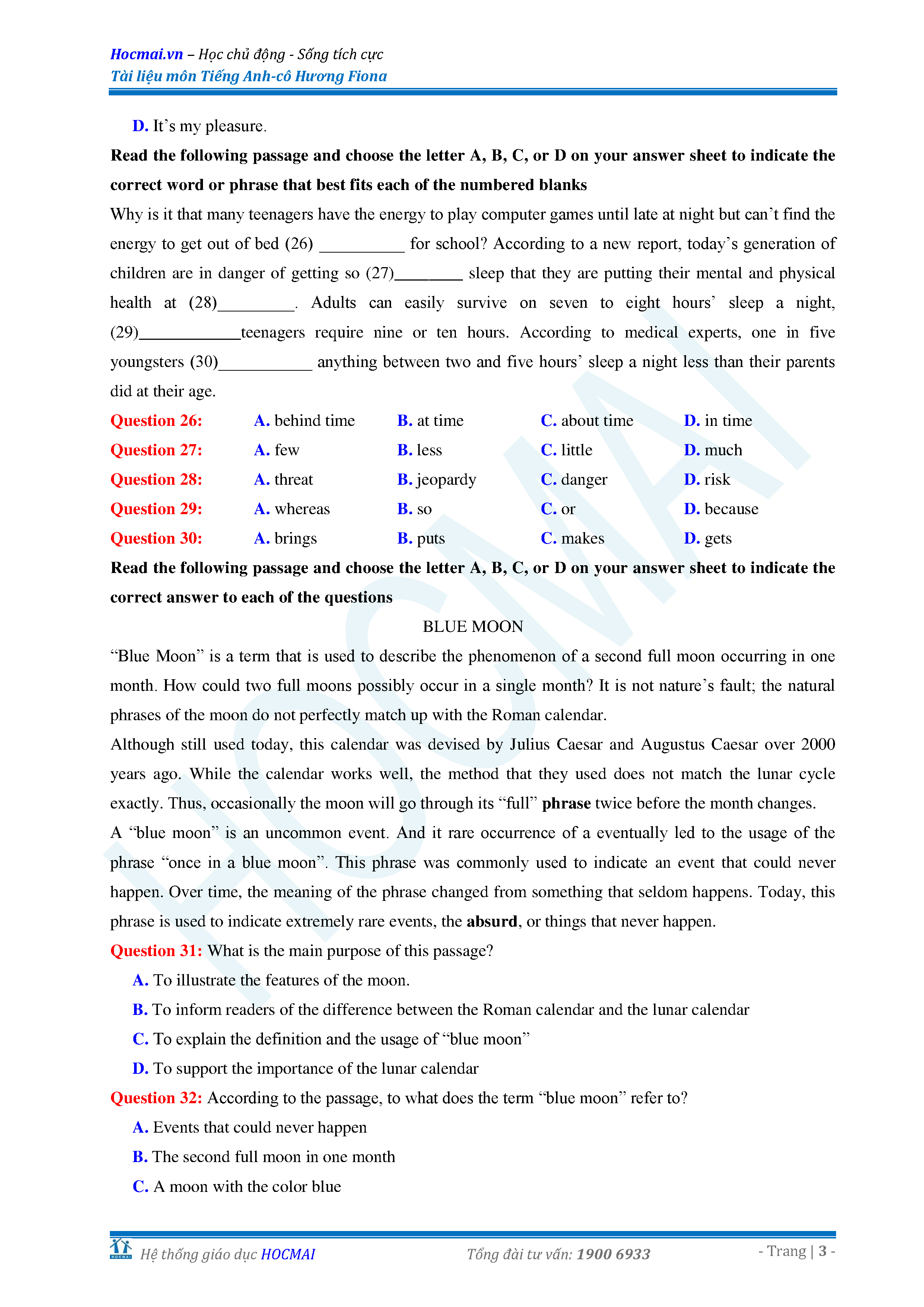 Lại thêm một đề thi hay ho nữa cho các con đây ^^ Nhớ chăm chỉ lên nhé các con