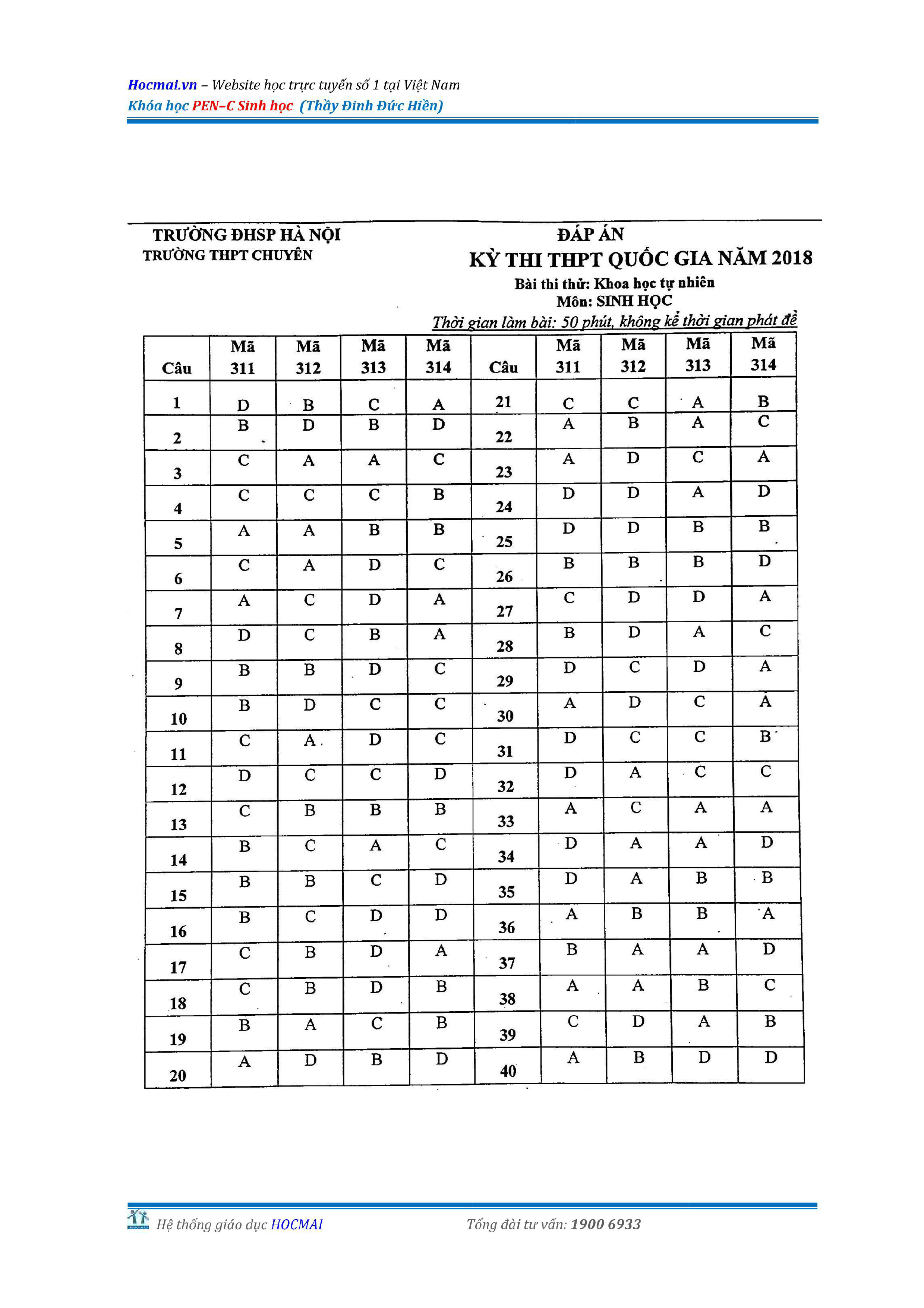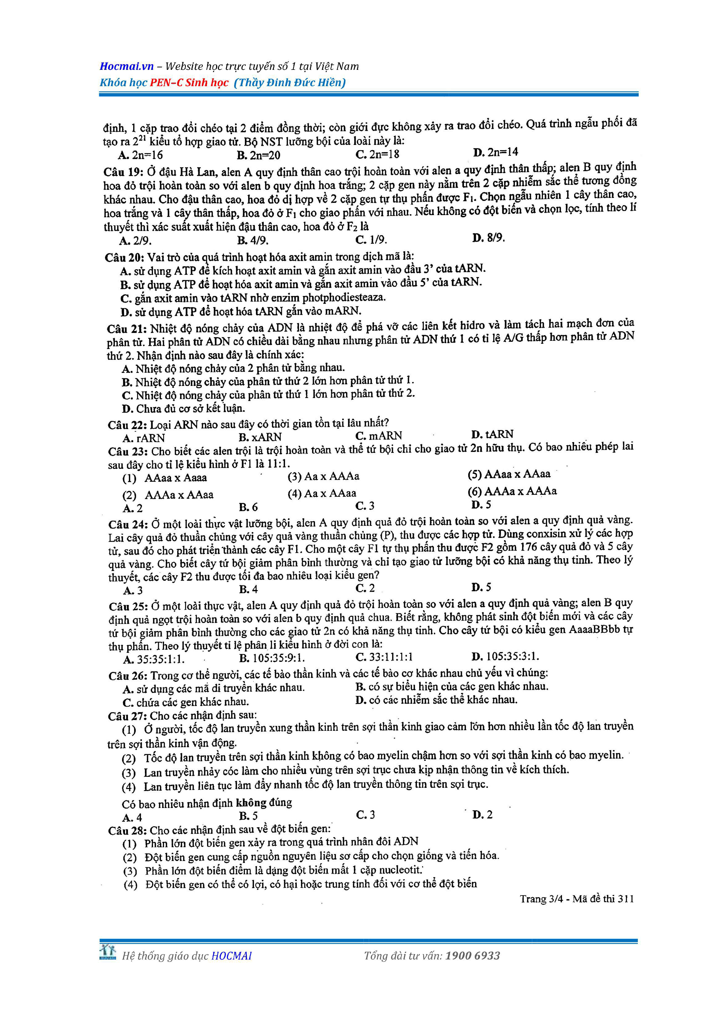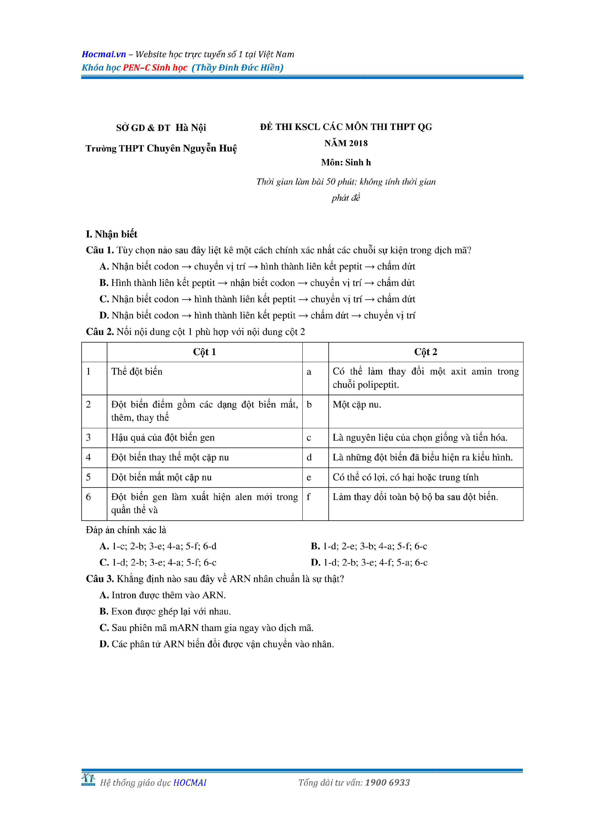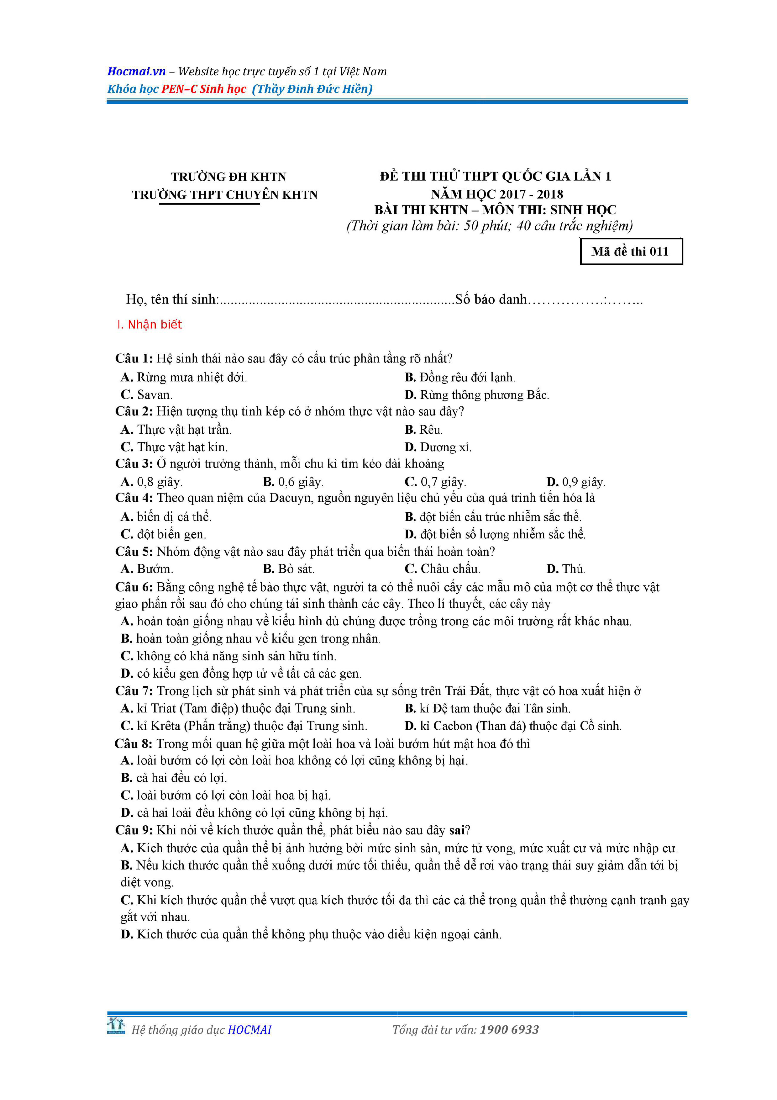 Bộ đề thi thử THPT QG môn Sinh học năm 2018 (có đáp án)