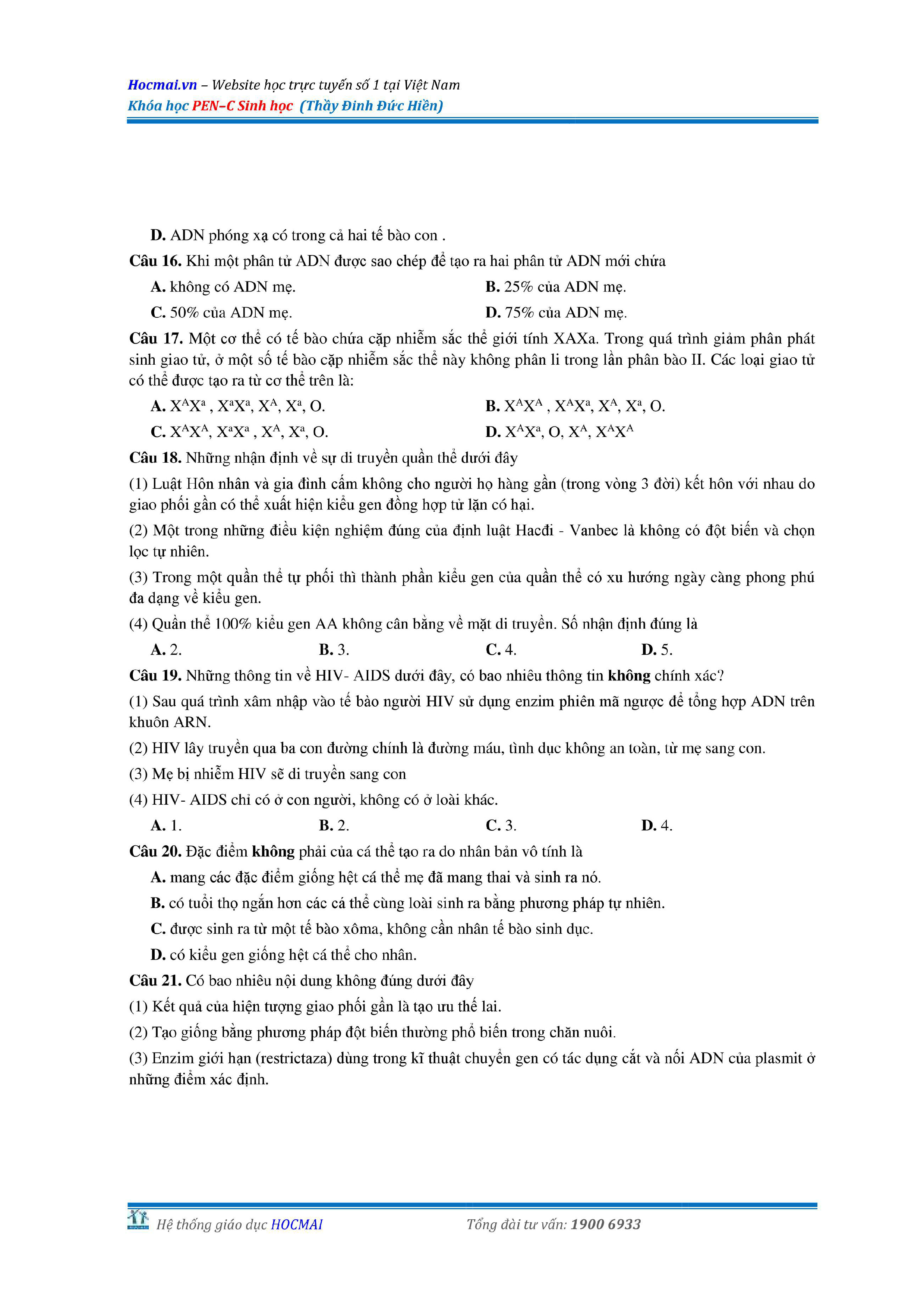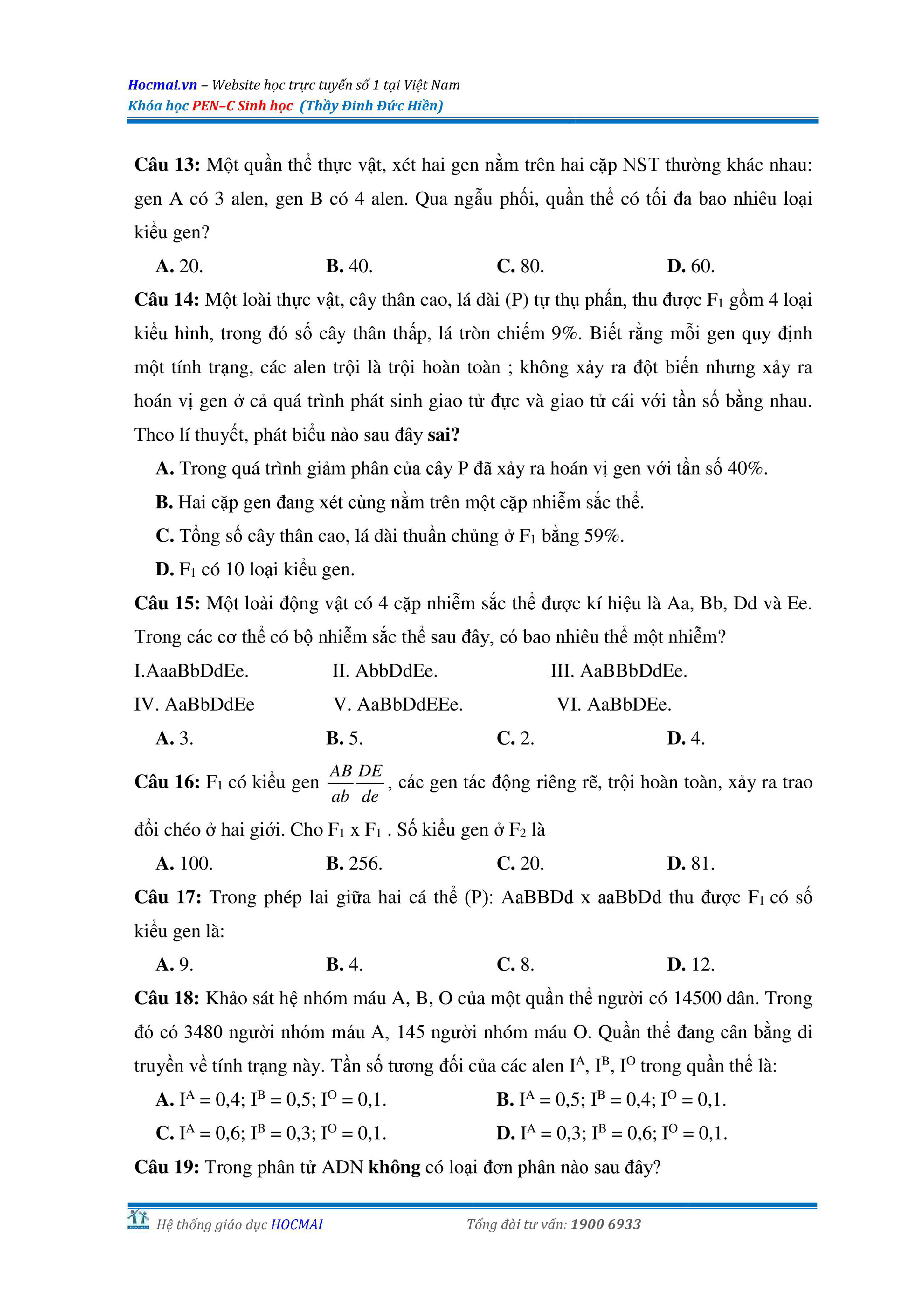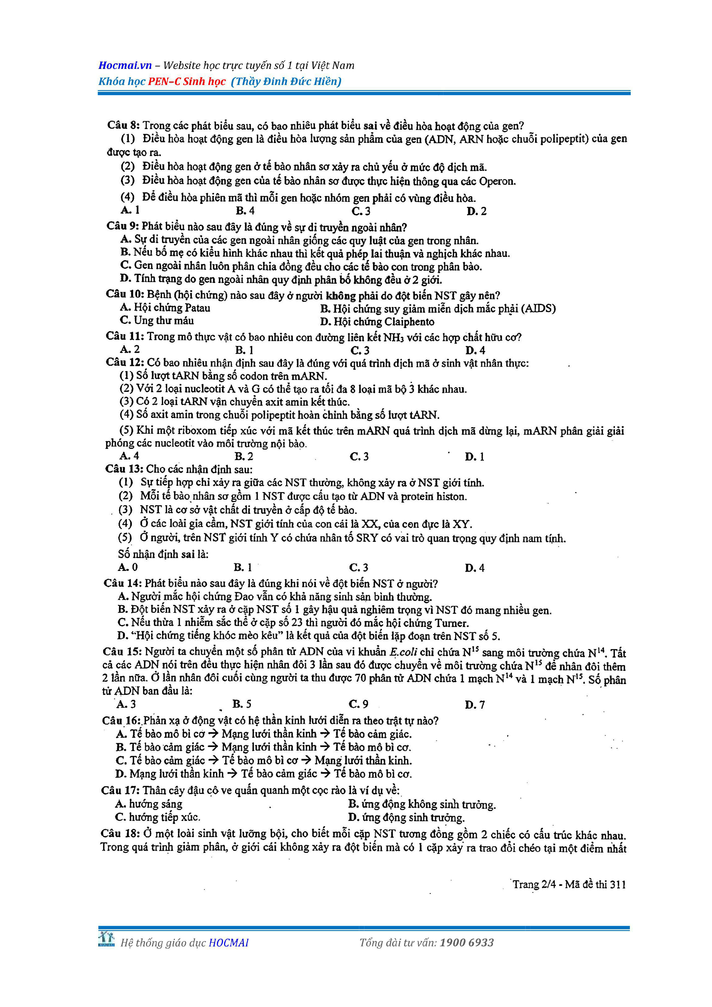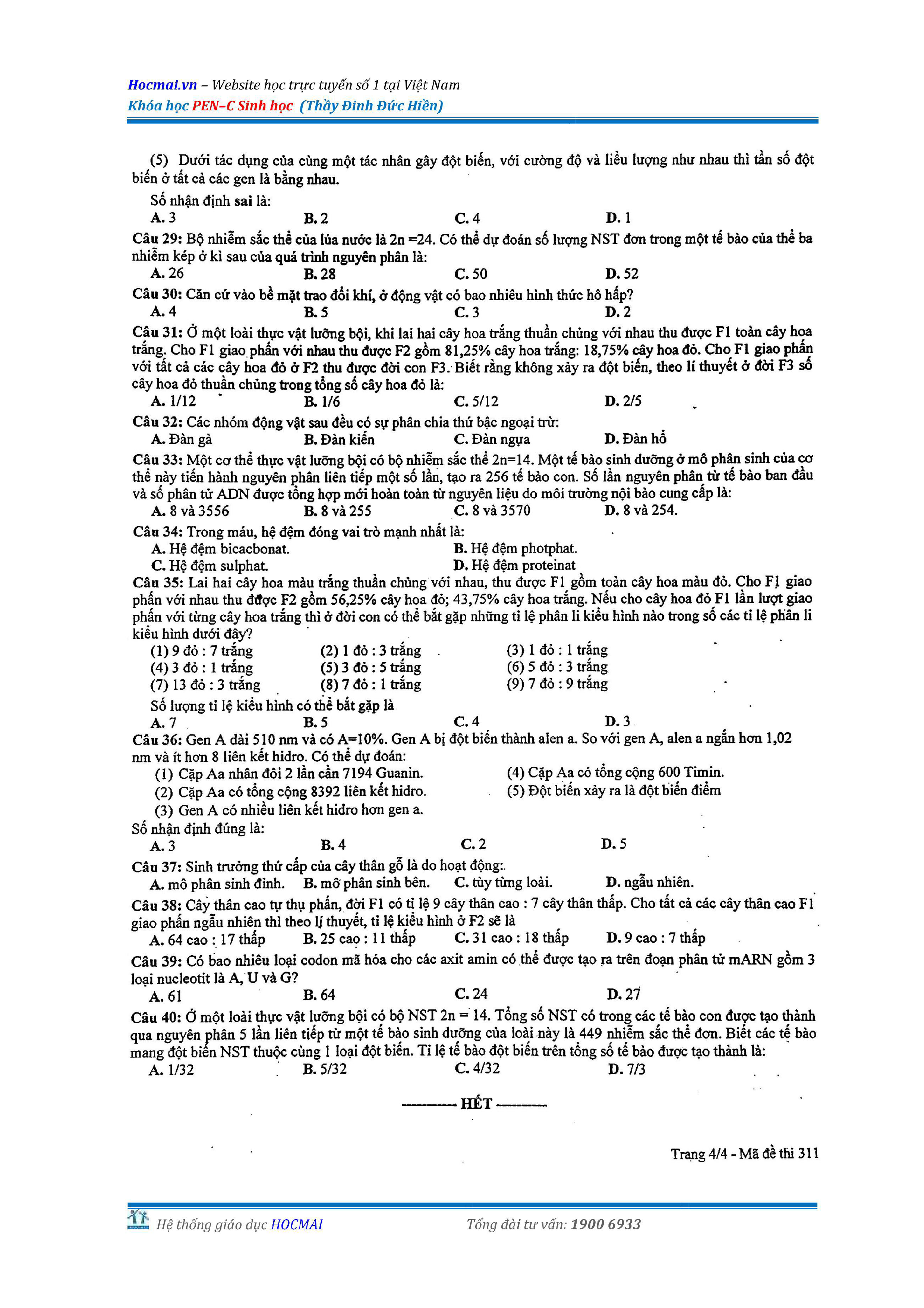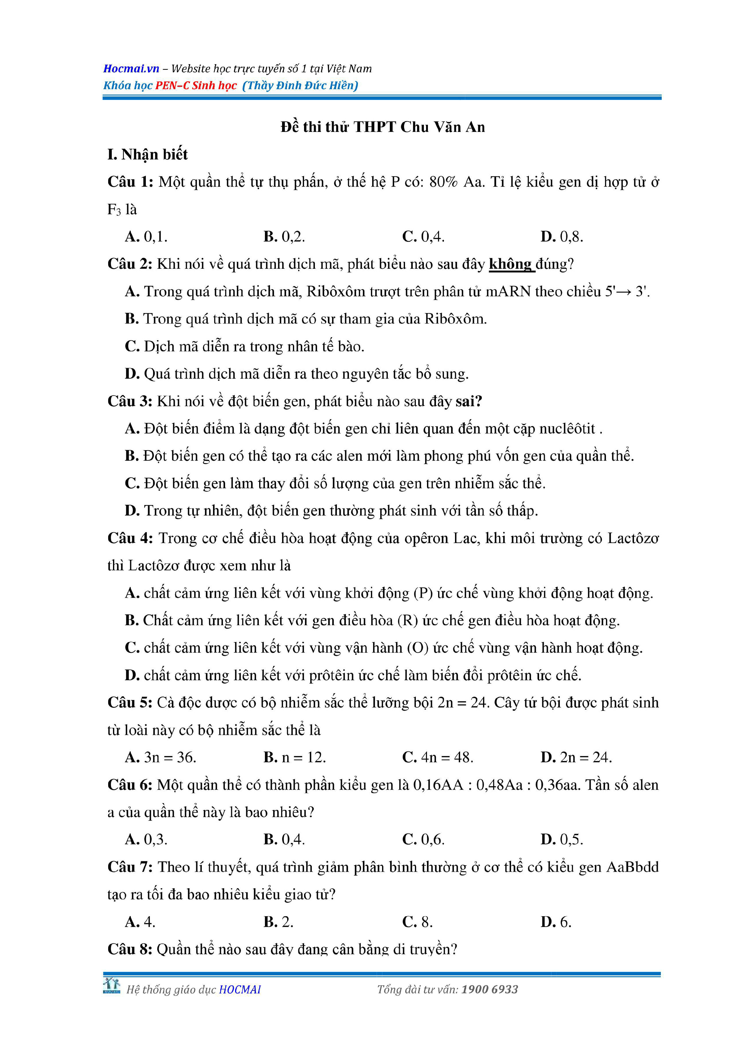 Bộ đề thi thử THPT QG môn Sinh học năm 2018 (có đáp án)
