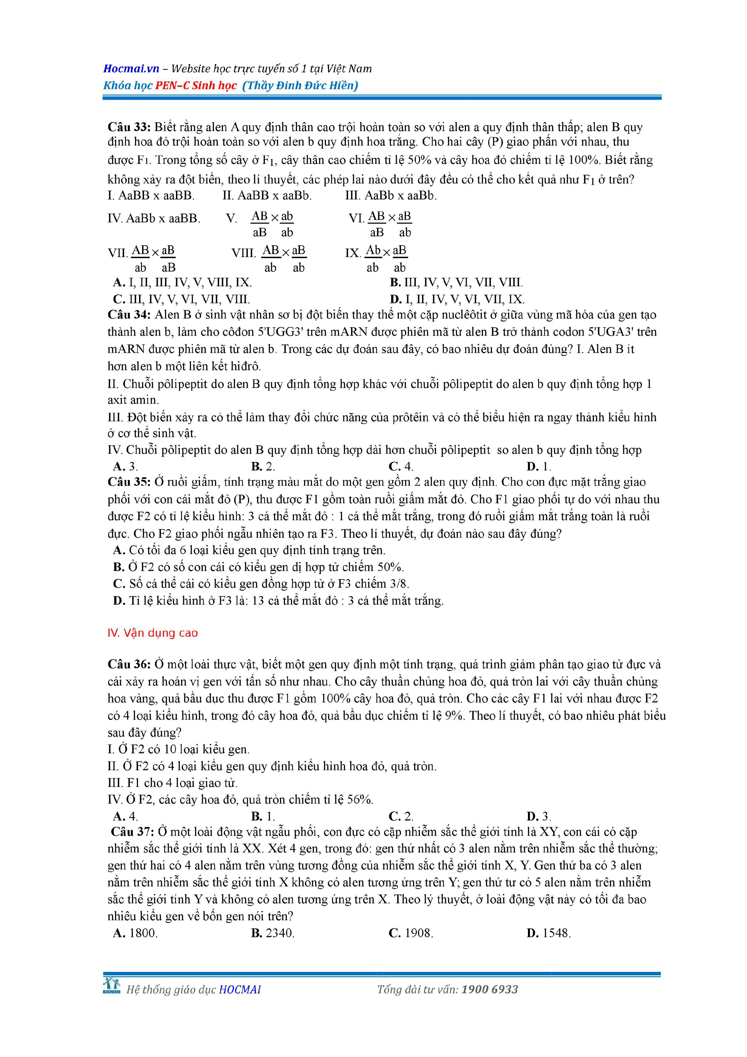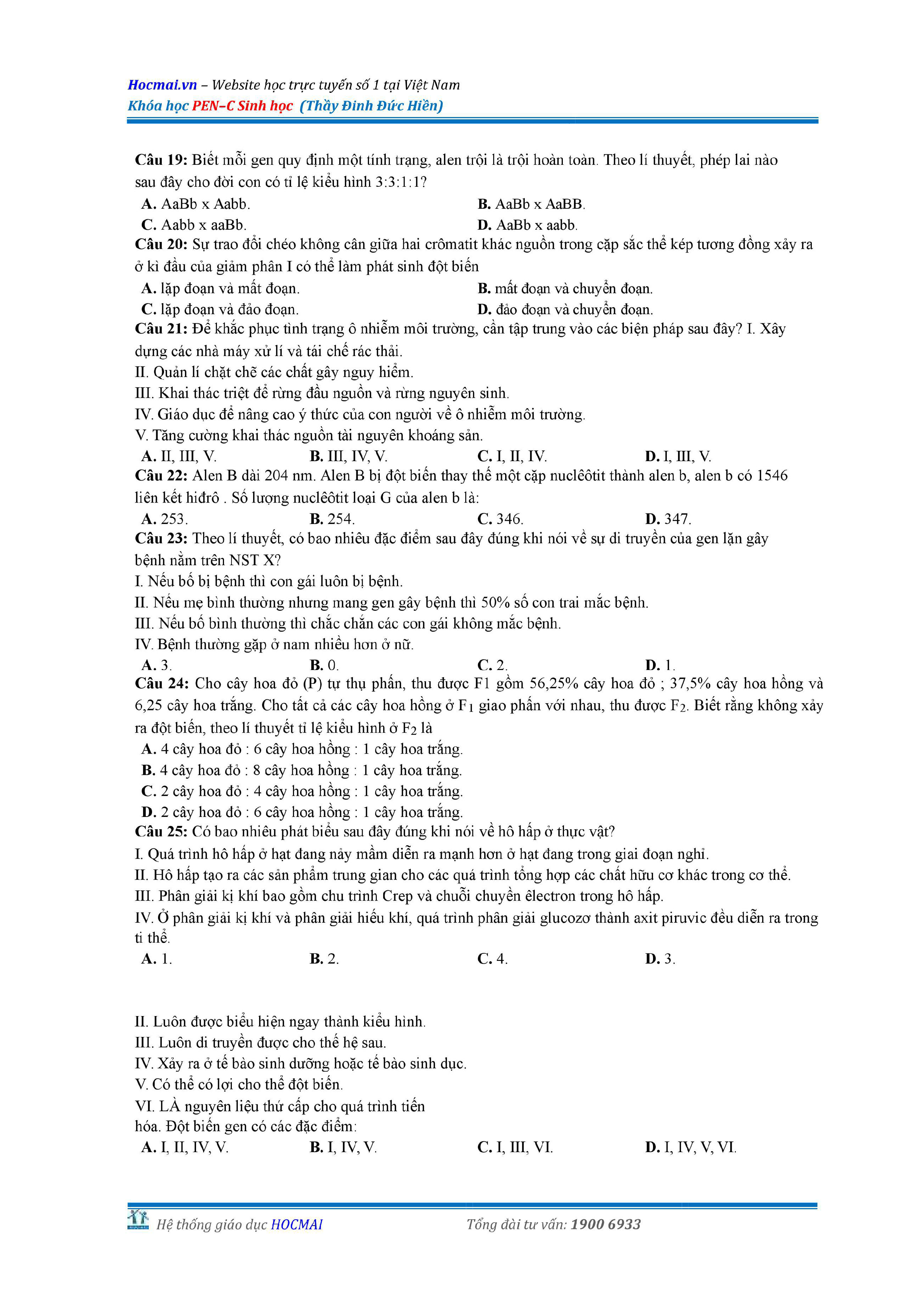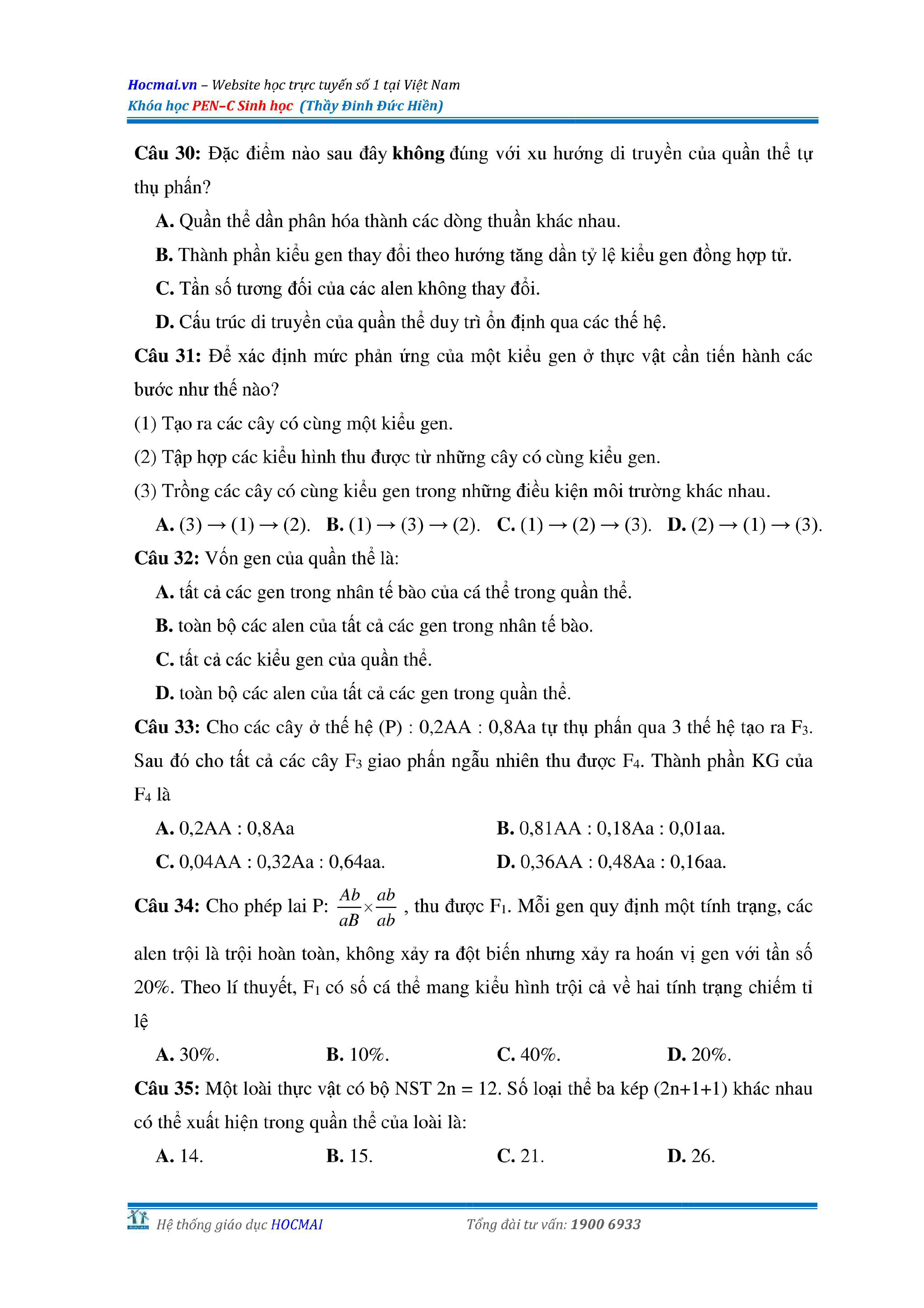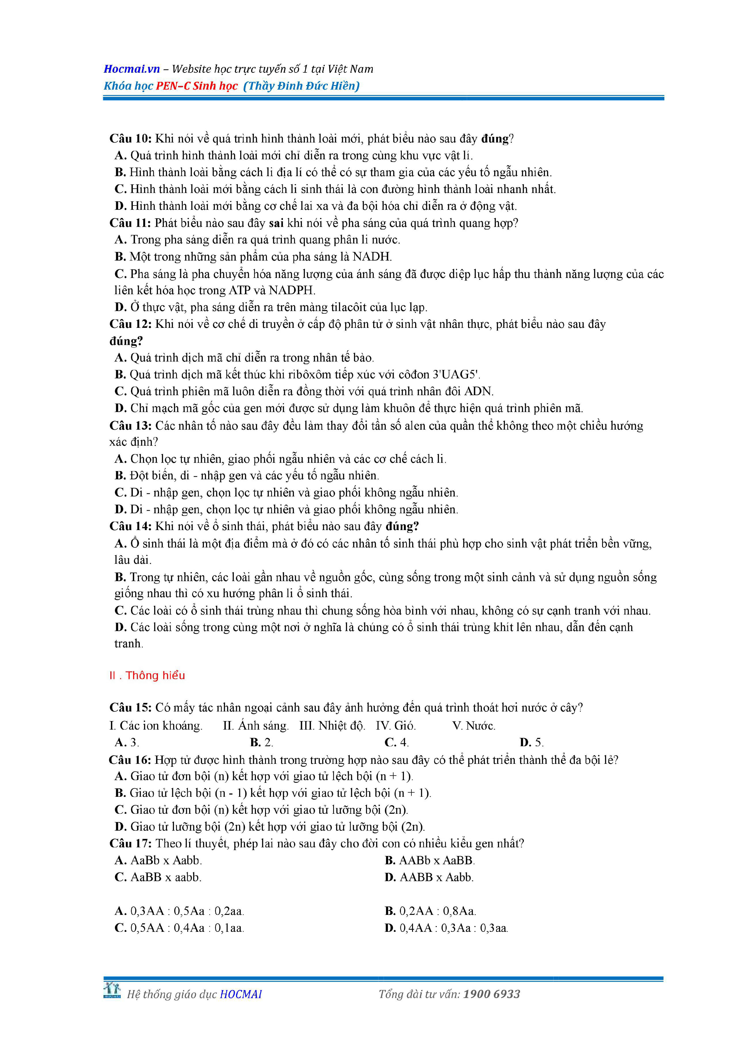 Bộ đề thi thử THPT QG môn Sinh học năm 2018 (có đáp án)