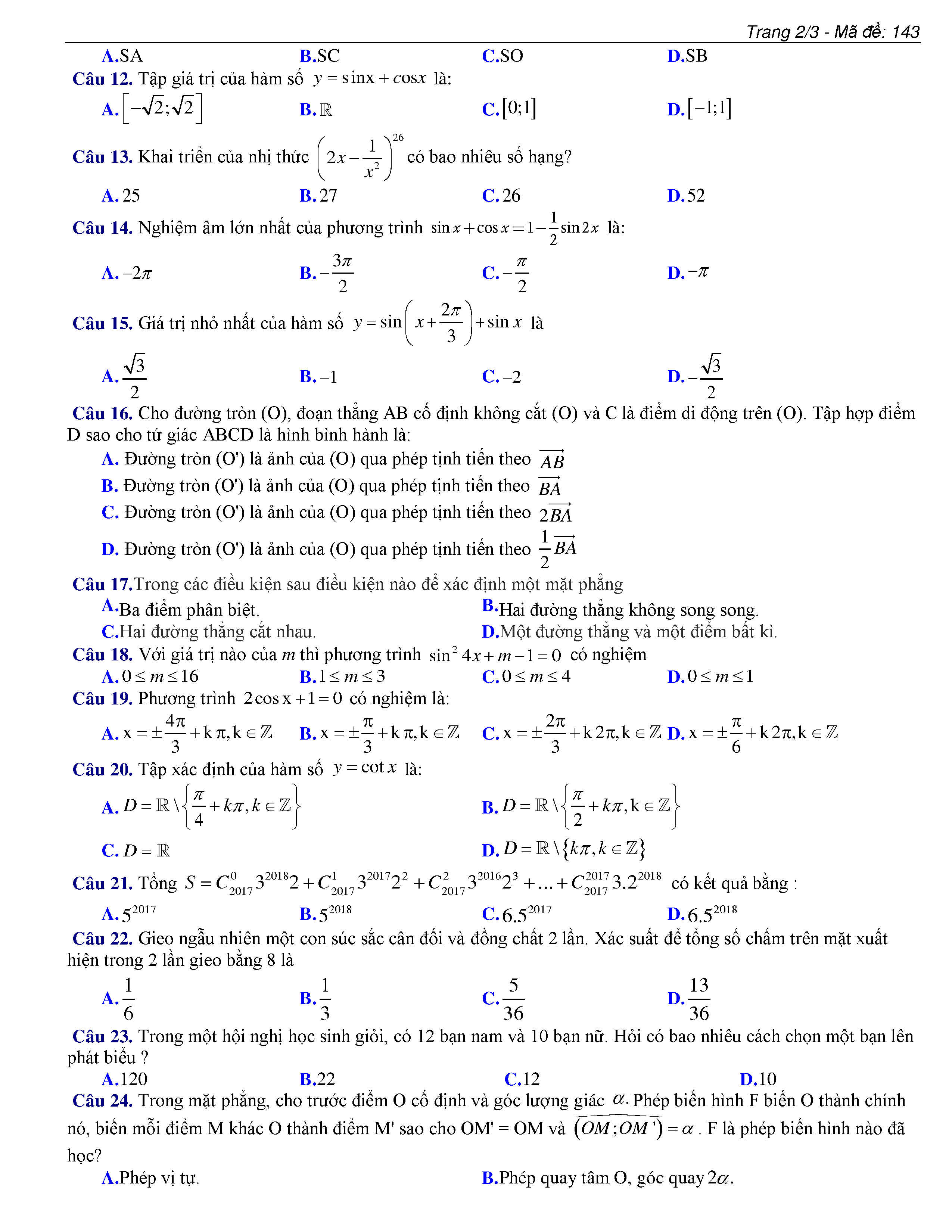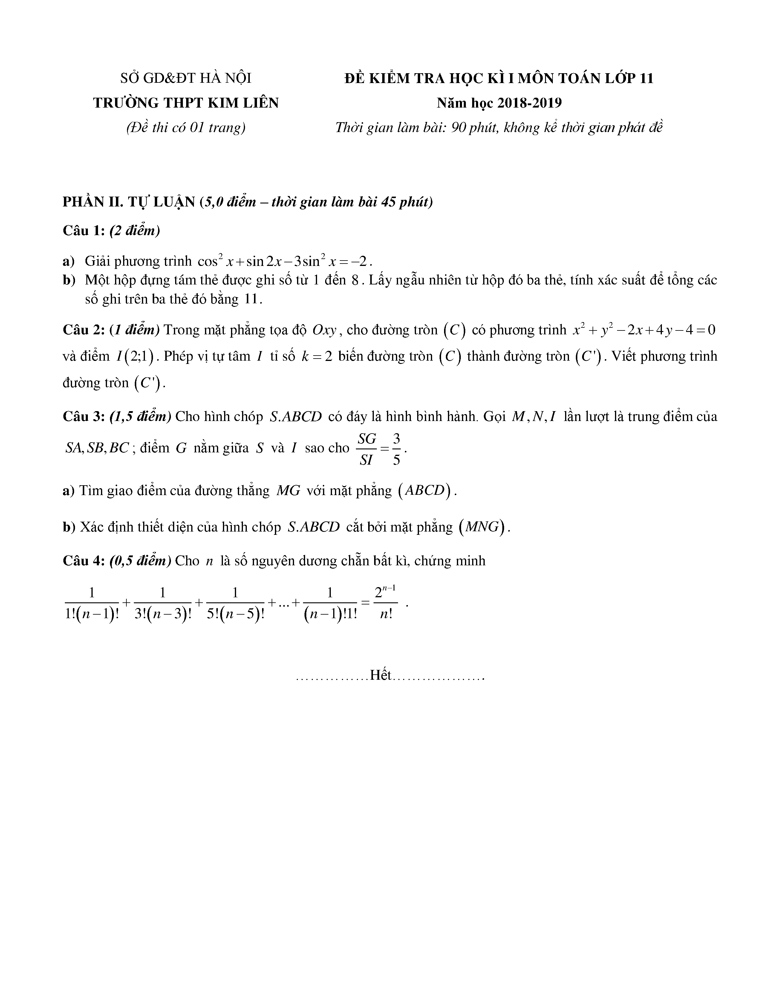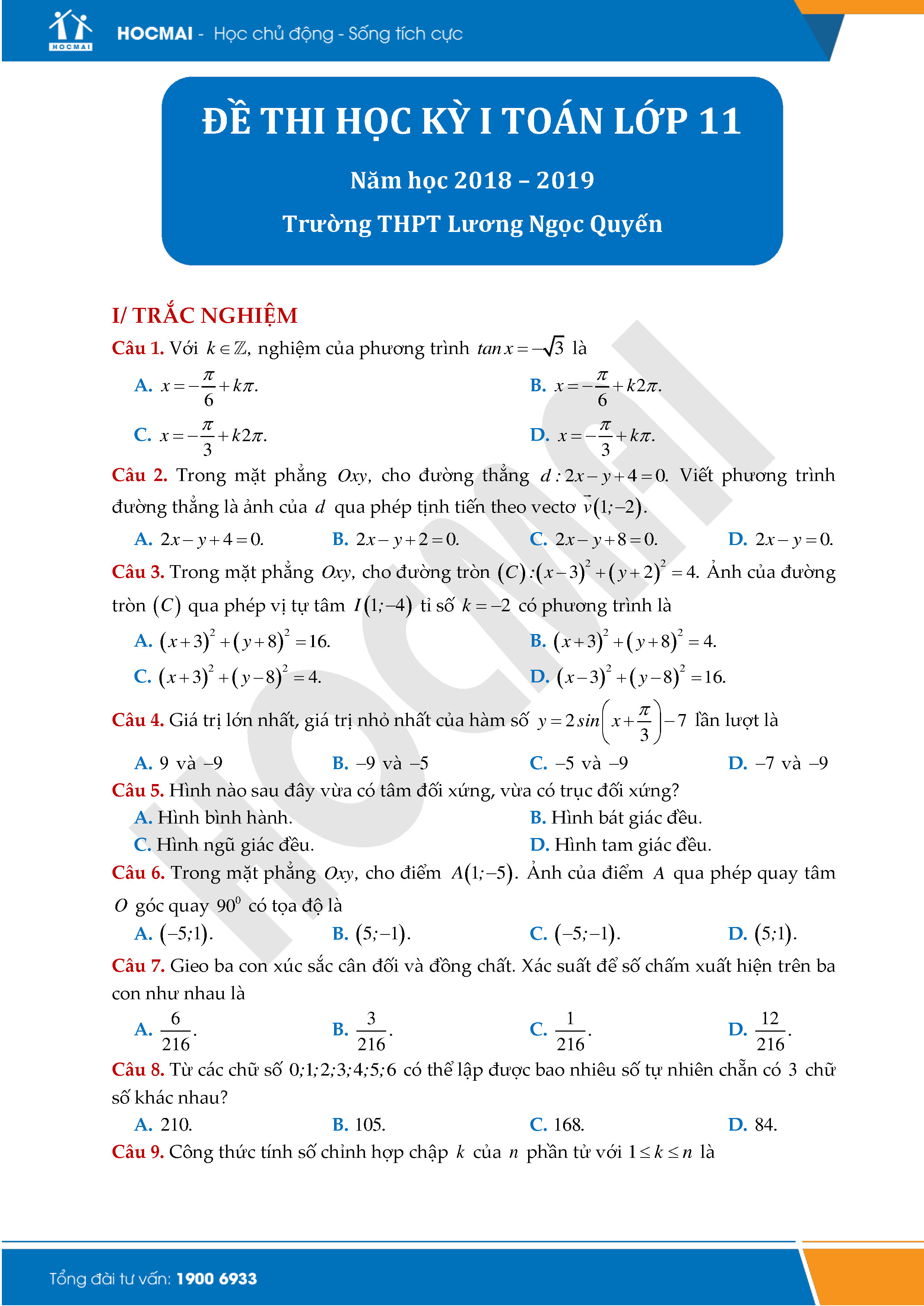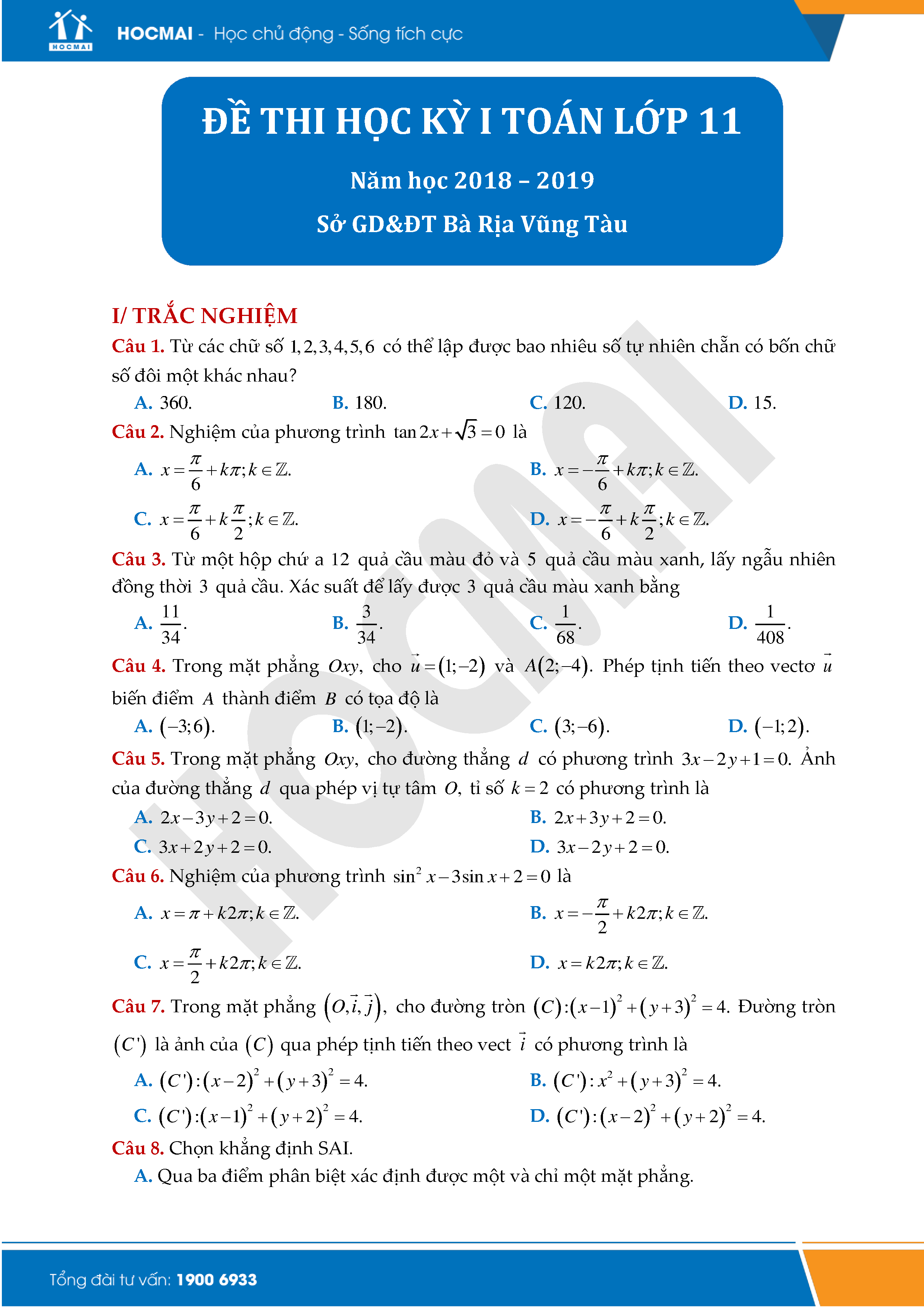 TỔNG HỢP ĐỀ THI HỌC KÌ I MÔN TOÁN NĂM HỌC 2018 - 2019 TỪ CÁC TRƯỜNG THPT TRÊN CẢ NƯỚC