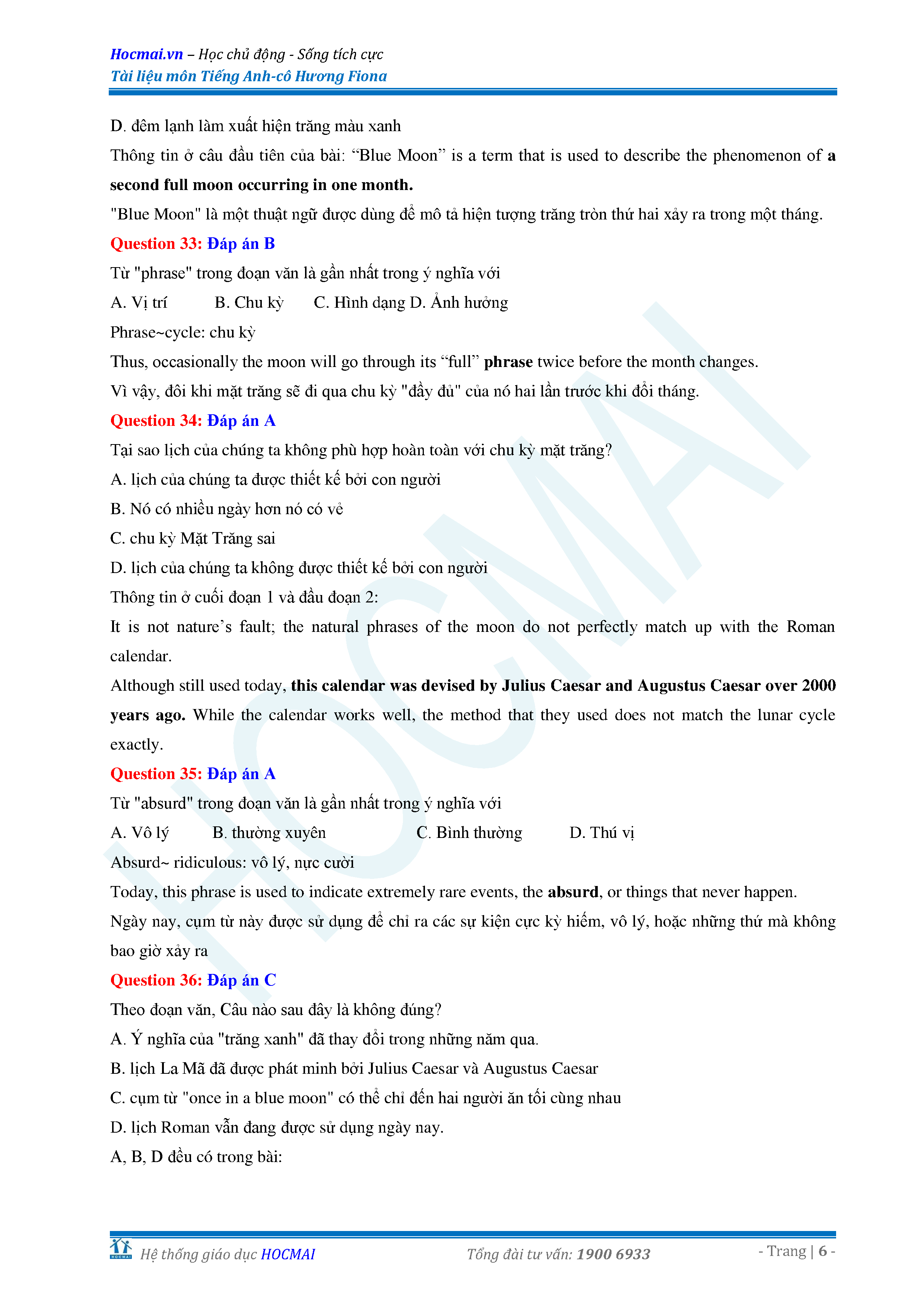 TÀI LIỆU LUYỆN THI - ĐÁP ÁN ĐỀ THI THỬ THPT QG 2018