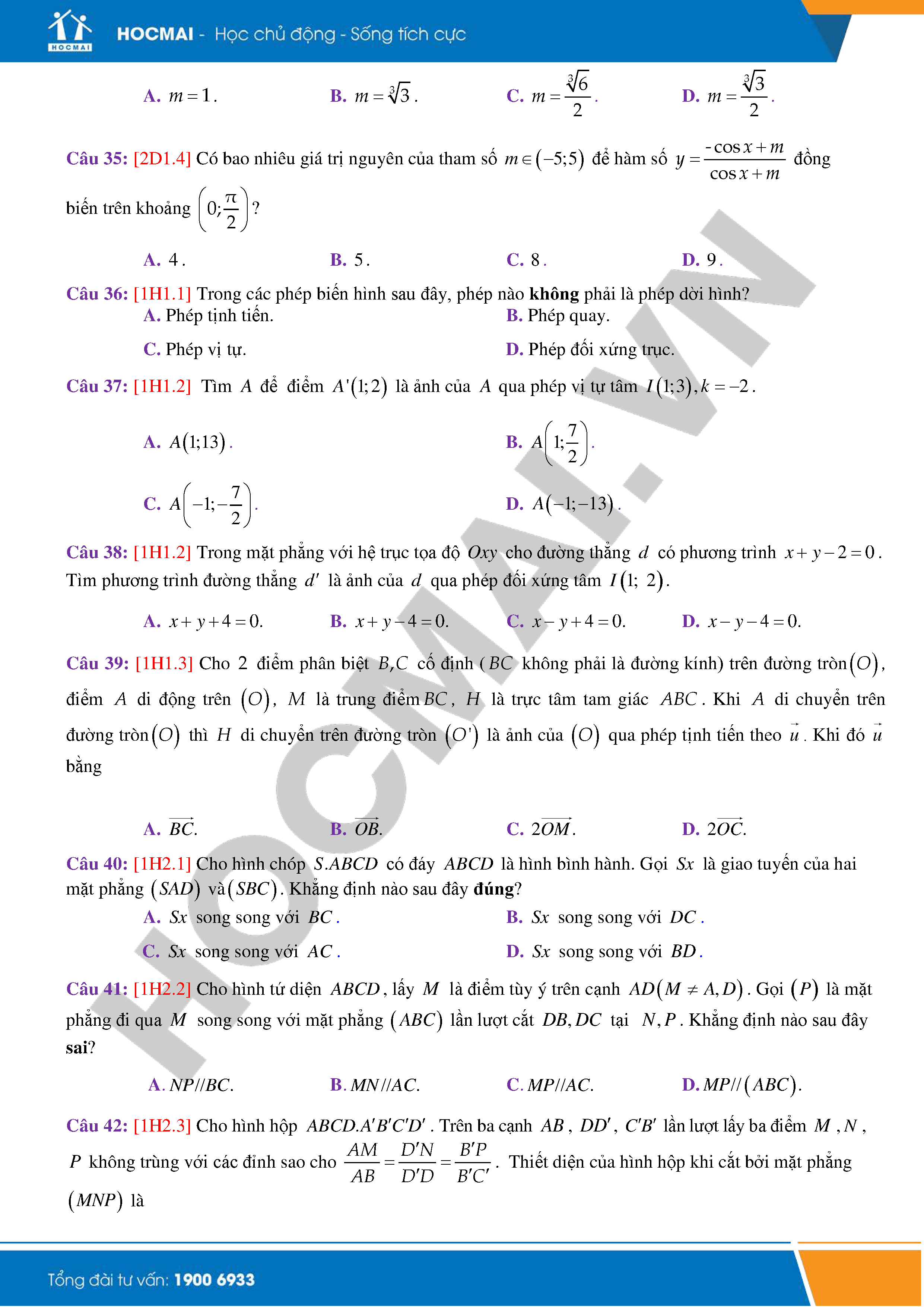 Đề thi thử THPT QG môn Toán năm 2018 là bộ đề do HOCMAI sưu tầm, đề gồm 50 câu hỏi dưới hình thức trắc nghiệm, nội dung xoay quanh những kiến thức ôn tập trong kì thi THPTQG 2018. Cùng tham khảo nhé!