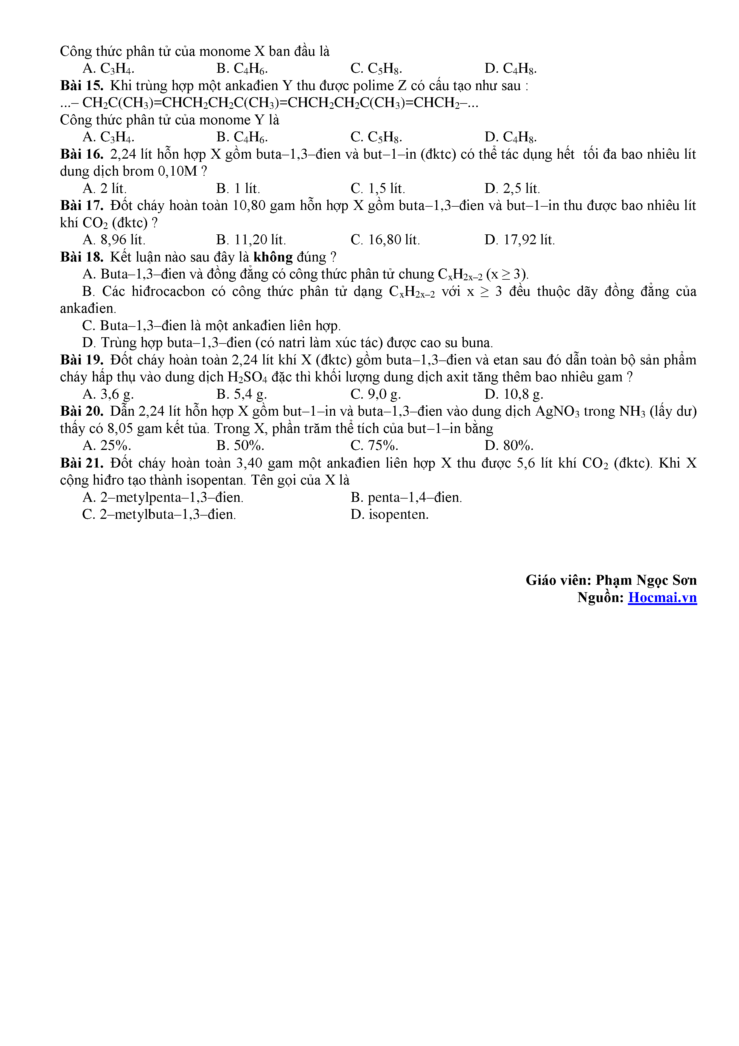 HỌC MÃI chia sẻ bộ tài liệu tổng hợp các dạng bài Ankadien (bao gồm cả lý thuyết và bài tập) giúp các em học sinh có thể ôn tập một cách trọn vẹn toàn bộ kiến thức về Ankadien.