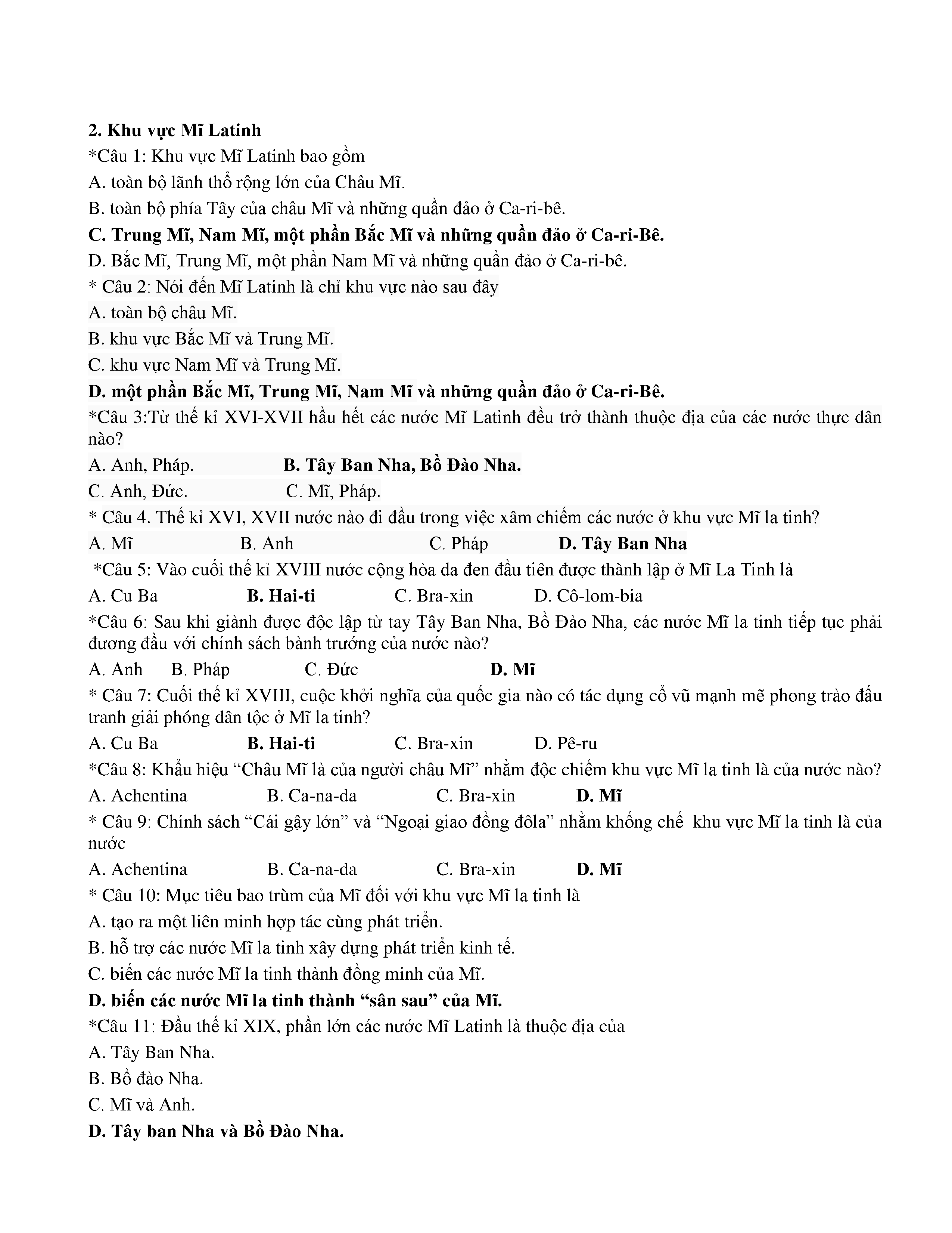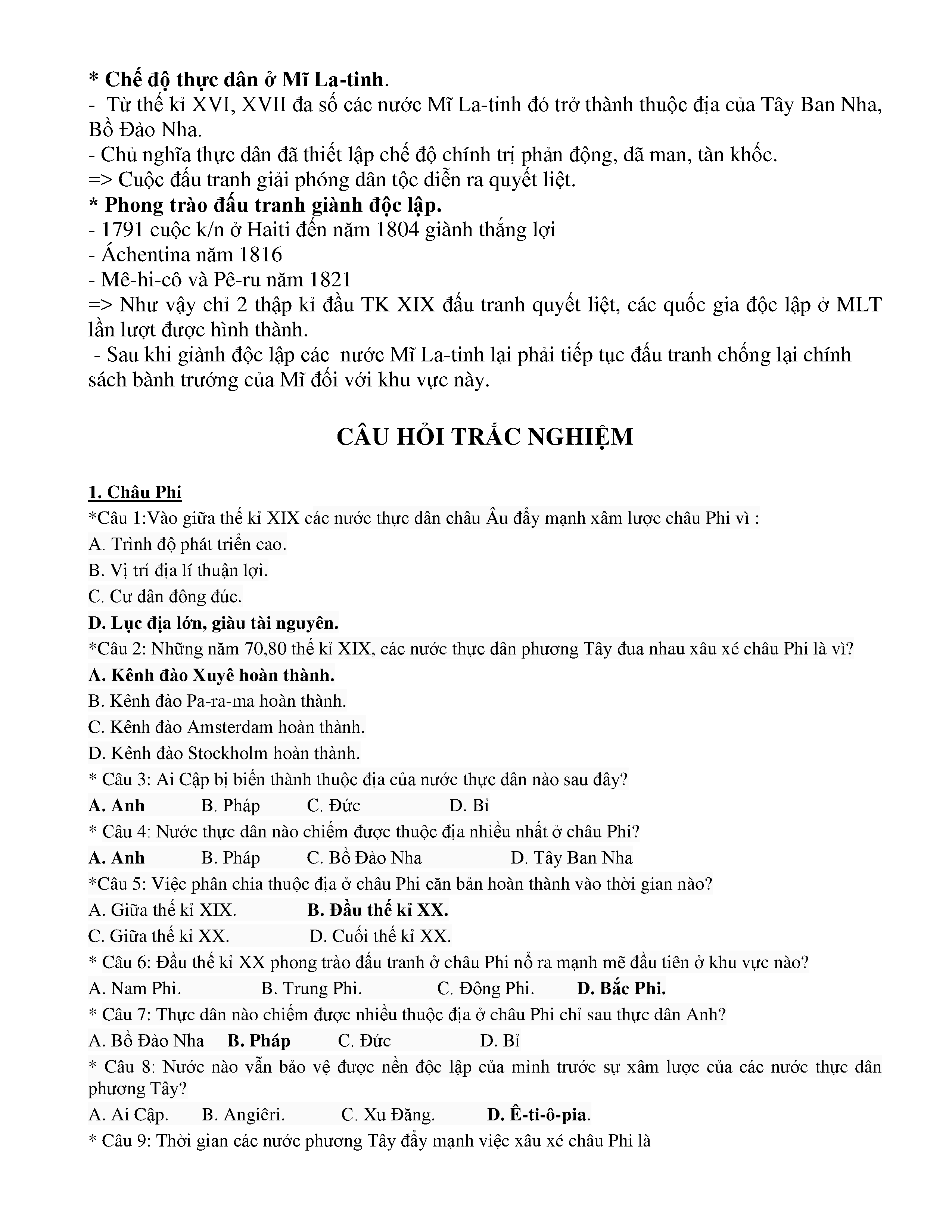 CHÂU PHI VÀ MĨ LA TINH - LỊCH SỬ - LỚP 11