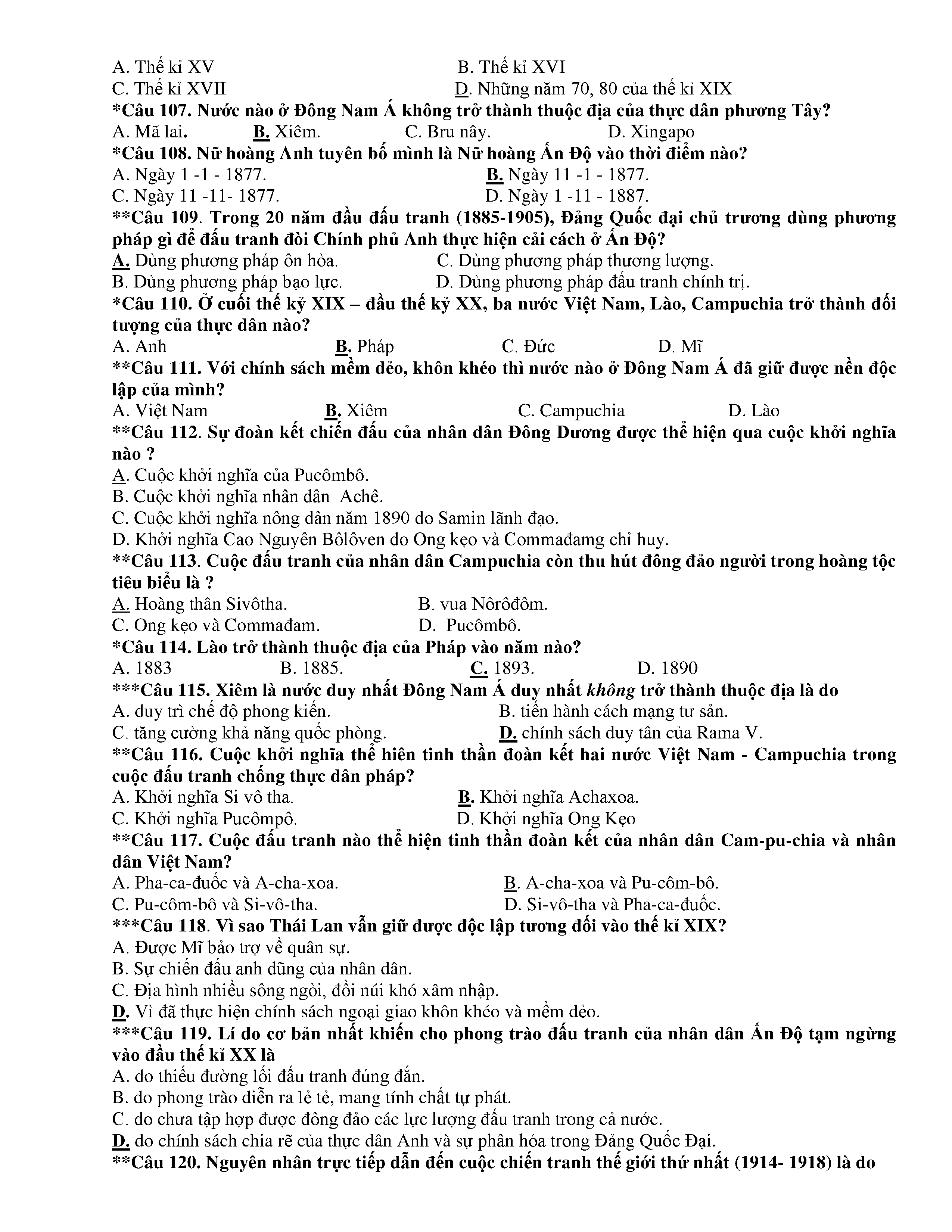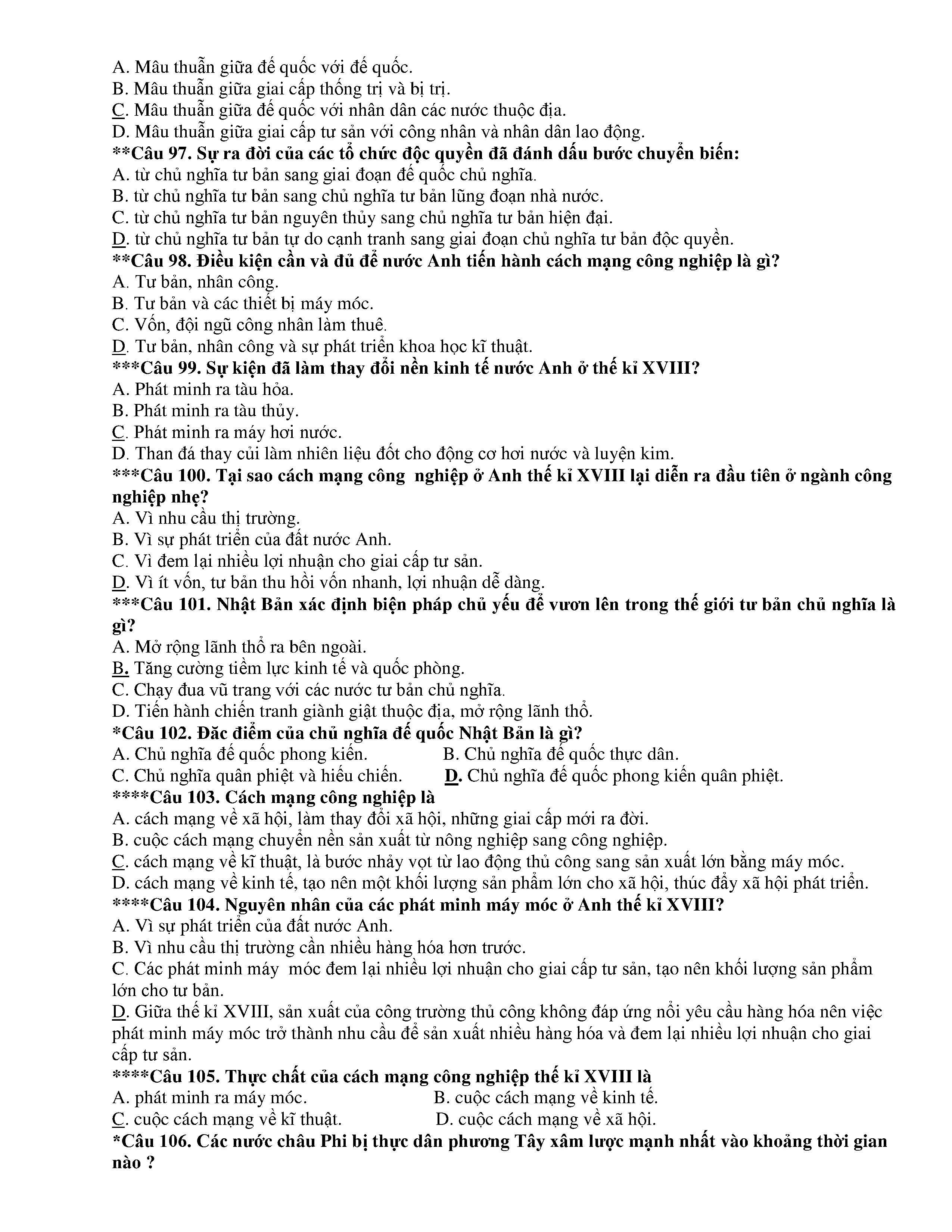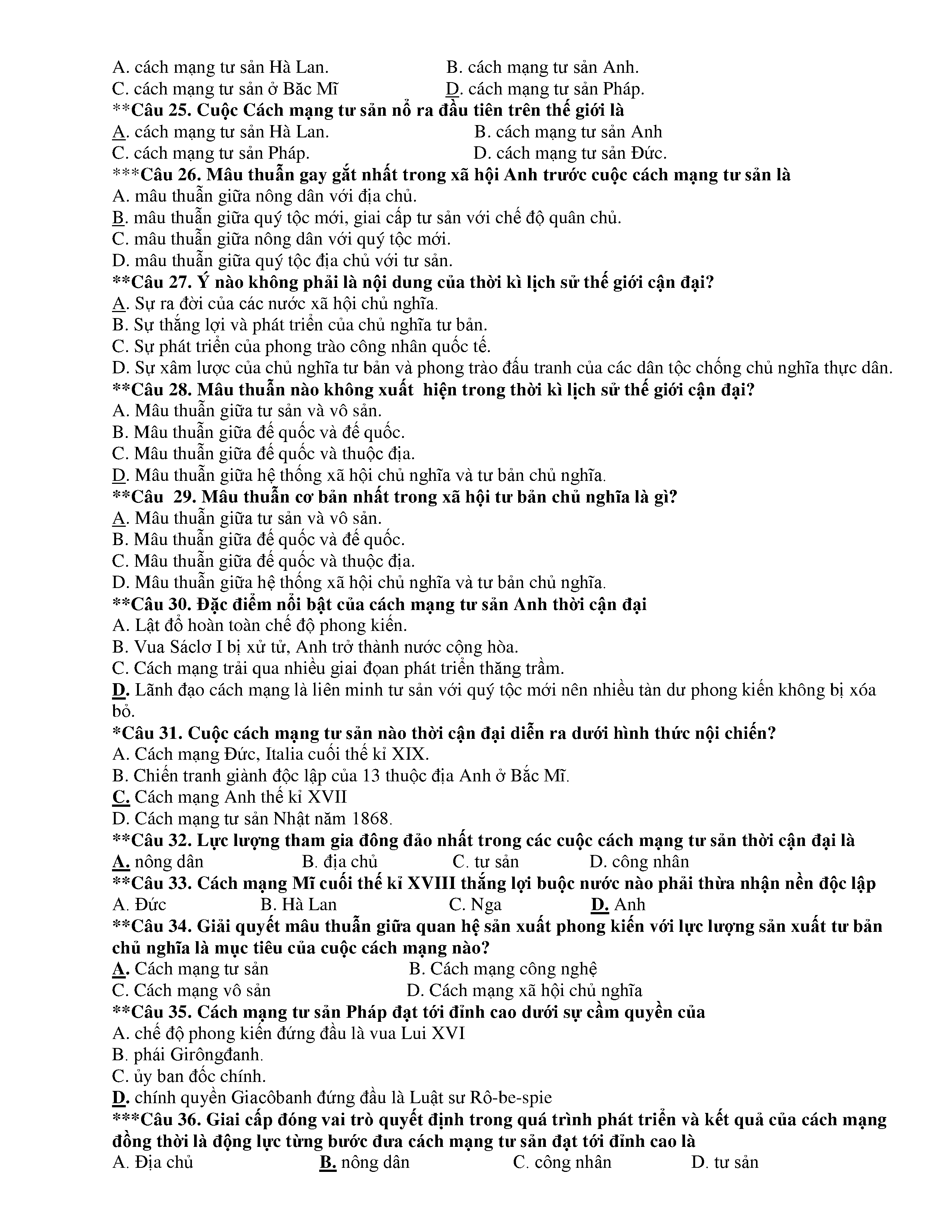 ÔN TẬP LSTG CẬN ĐẠI - LỊCH SỬ - LỚP 11