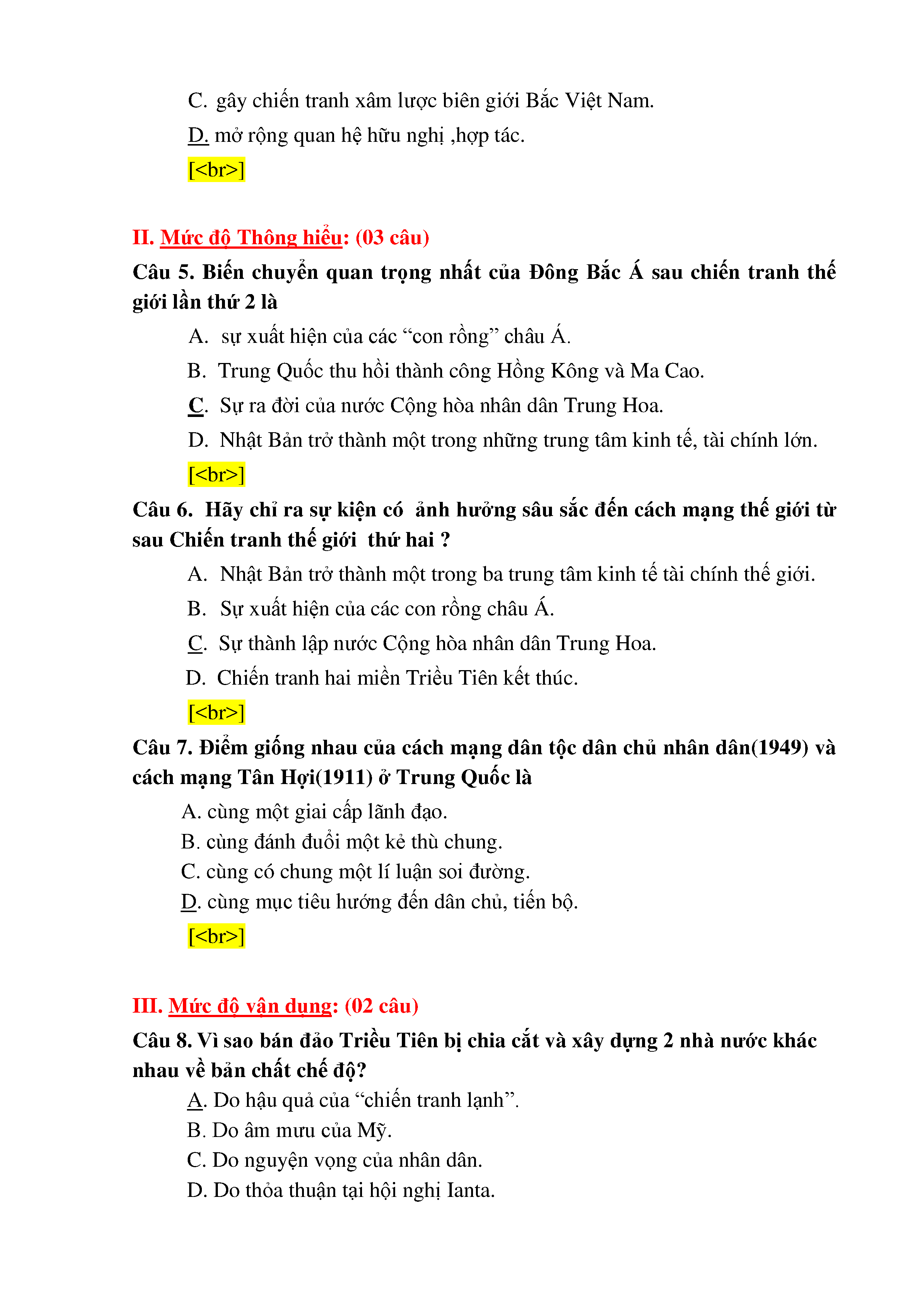 CÁC NƯỚC ĐÔNG BẮC Á - LỊCH SỬ - LỚP 12