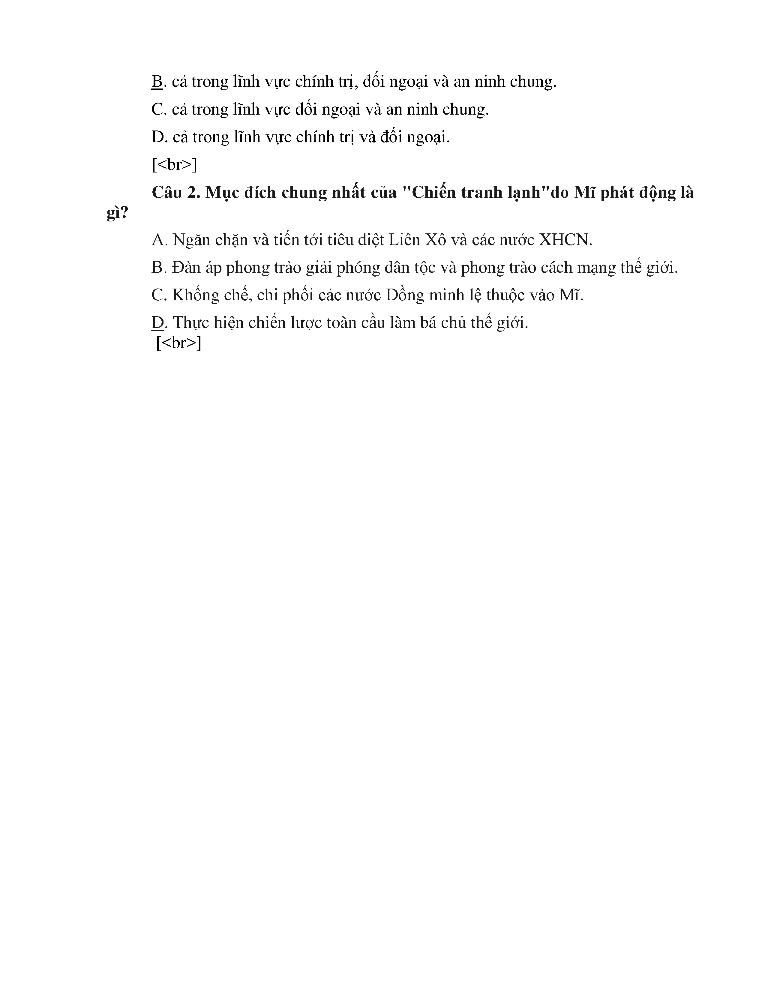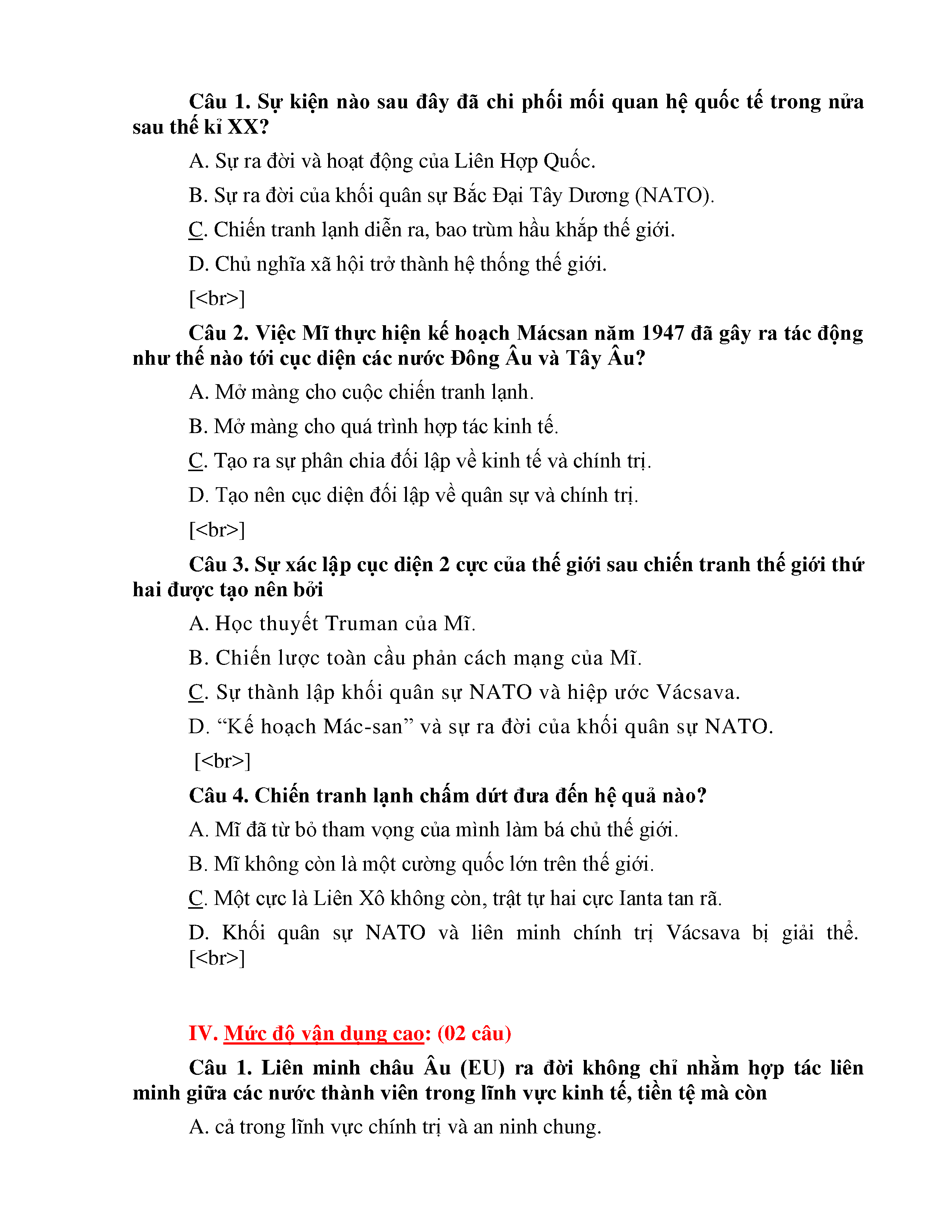QHQT TRONG VÀ SAU THỜI KÌ CHIẾN TRANH LẠNH - LỊCH SỬ - LỚP 12