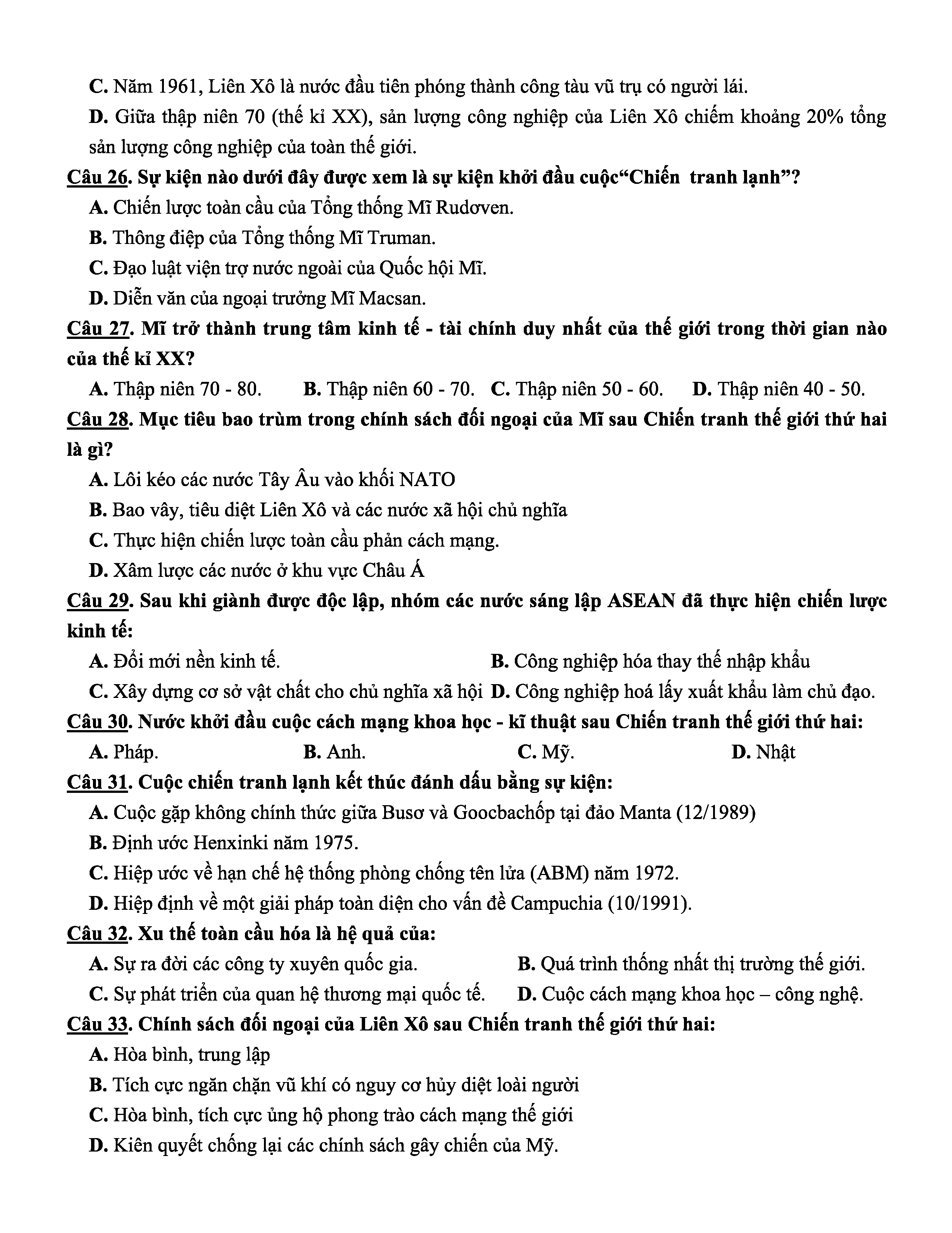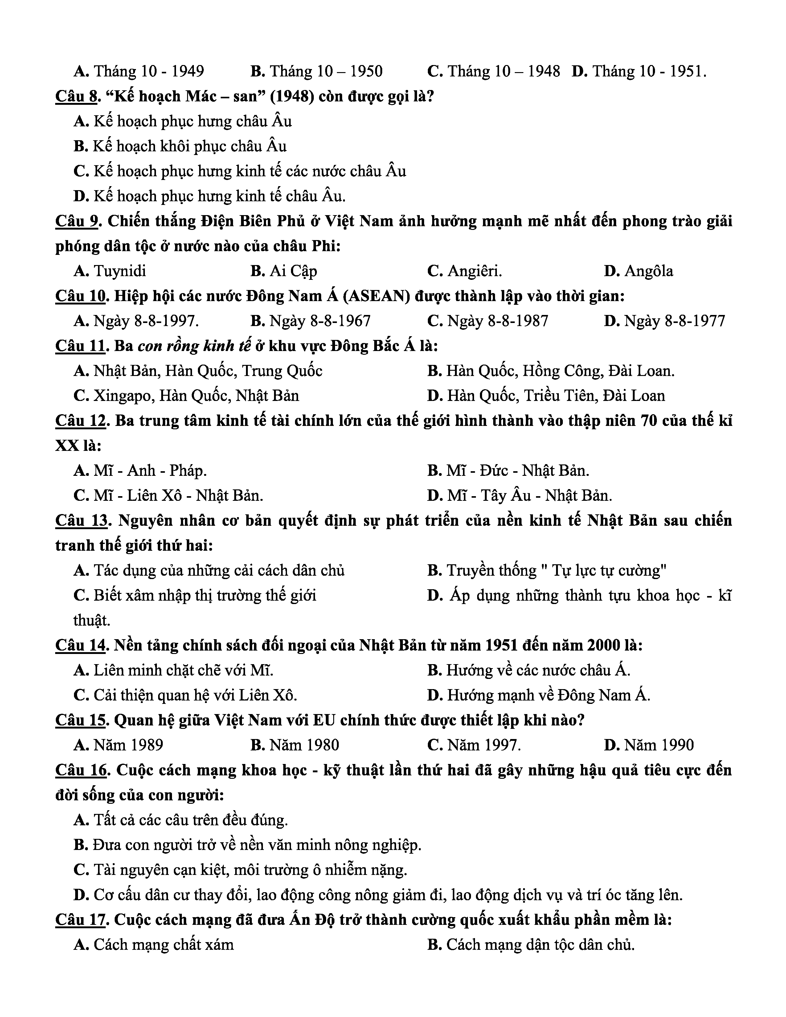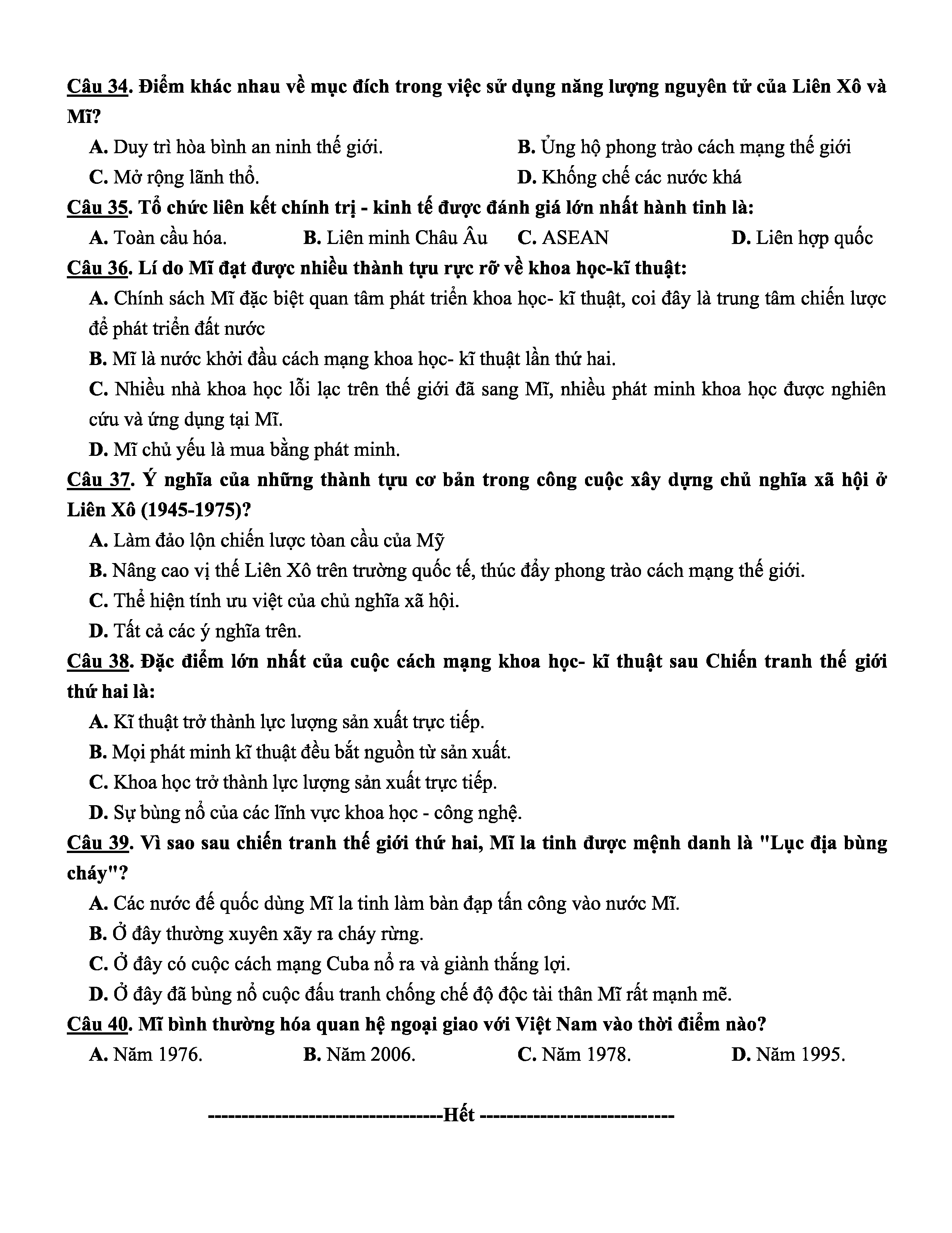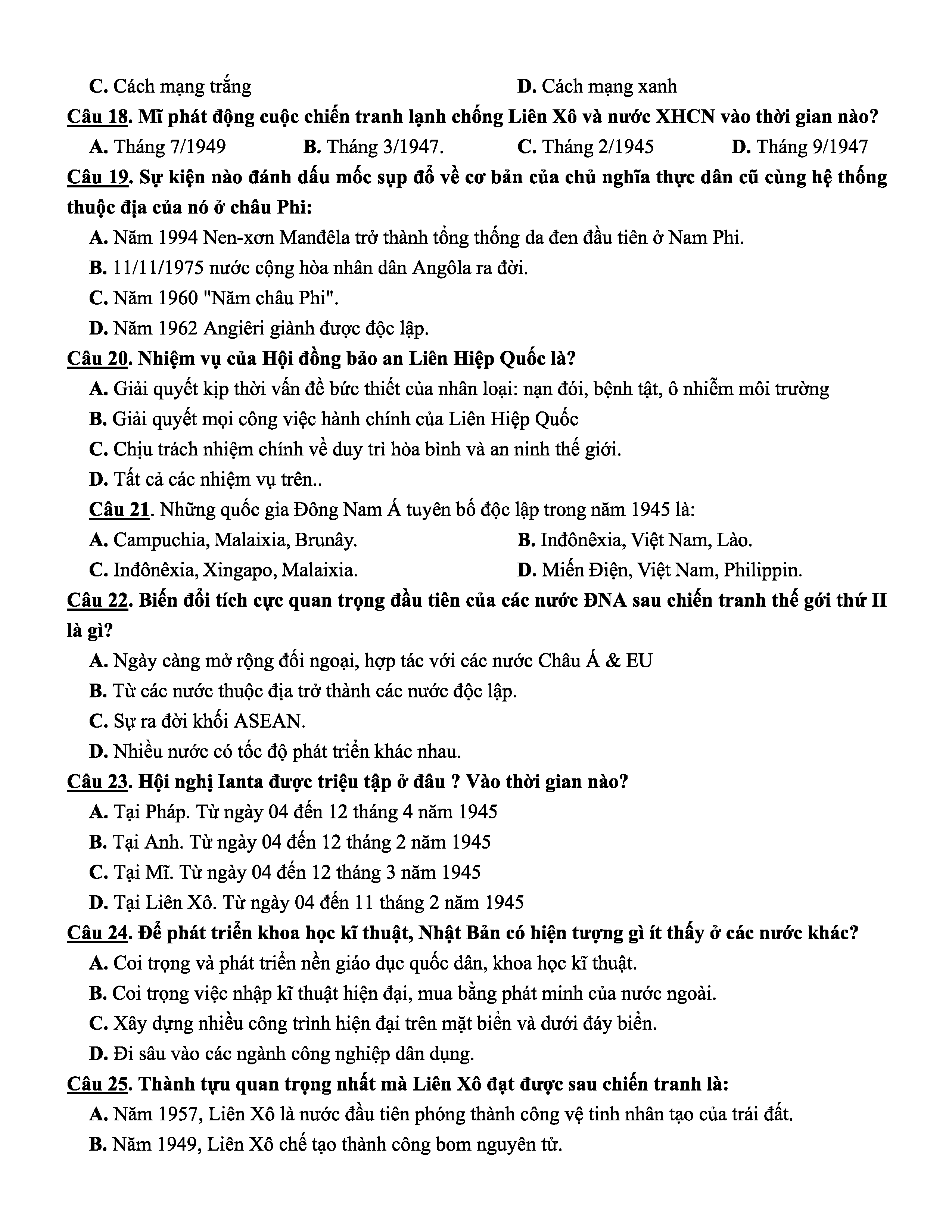 ĐỀ KIỂM TRA 45 PHÚT SỐ 3 - LỊCH SỬ - LỚP 12
