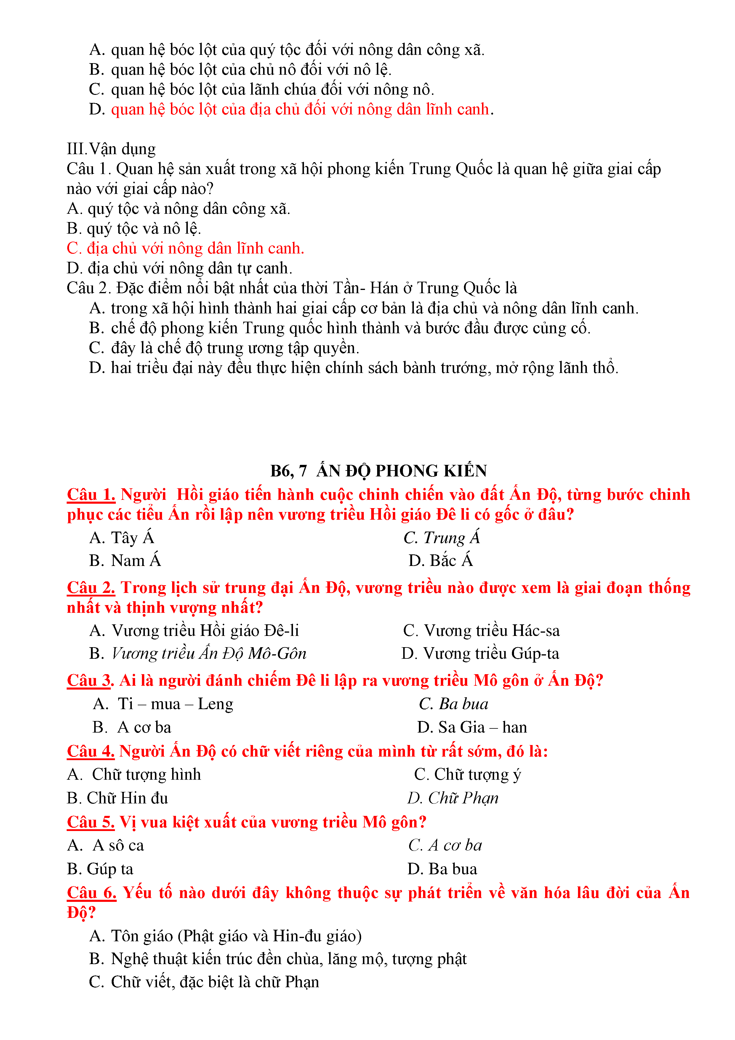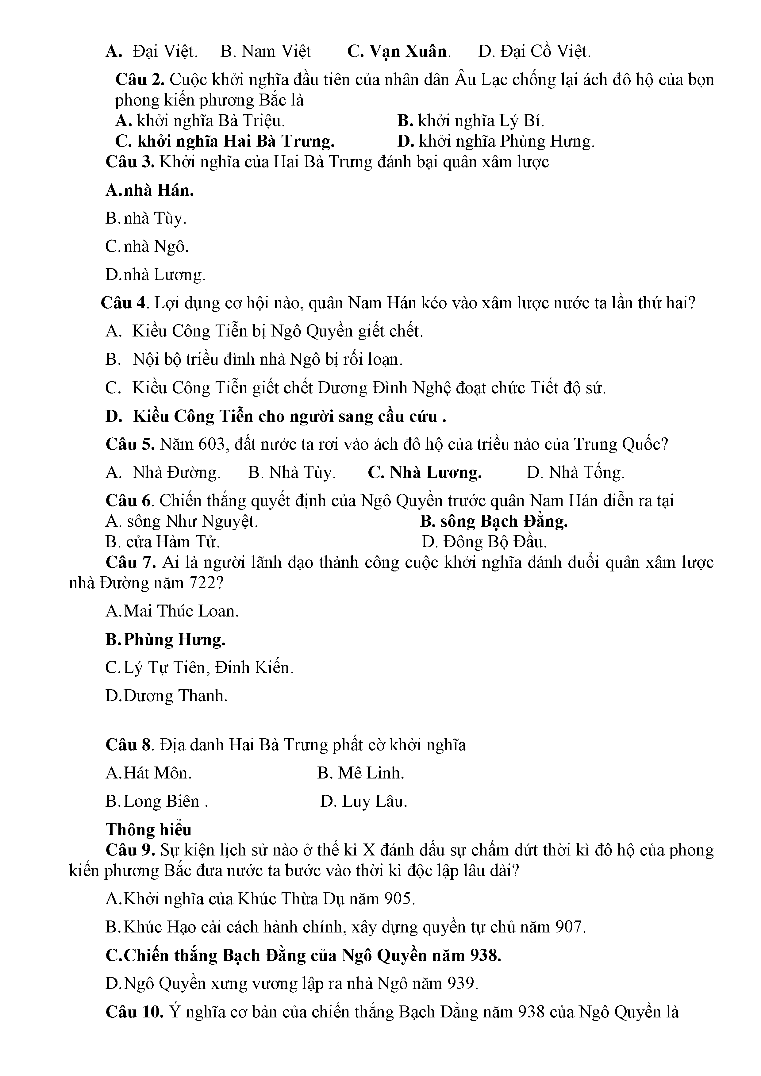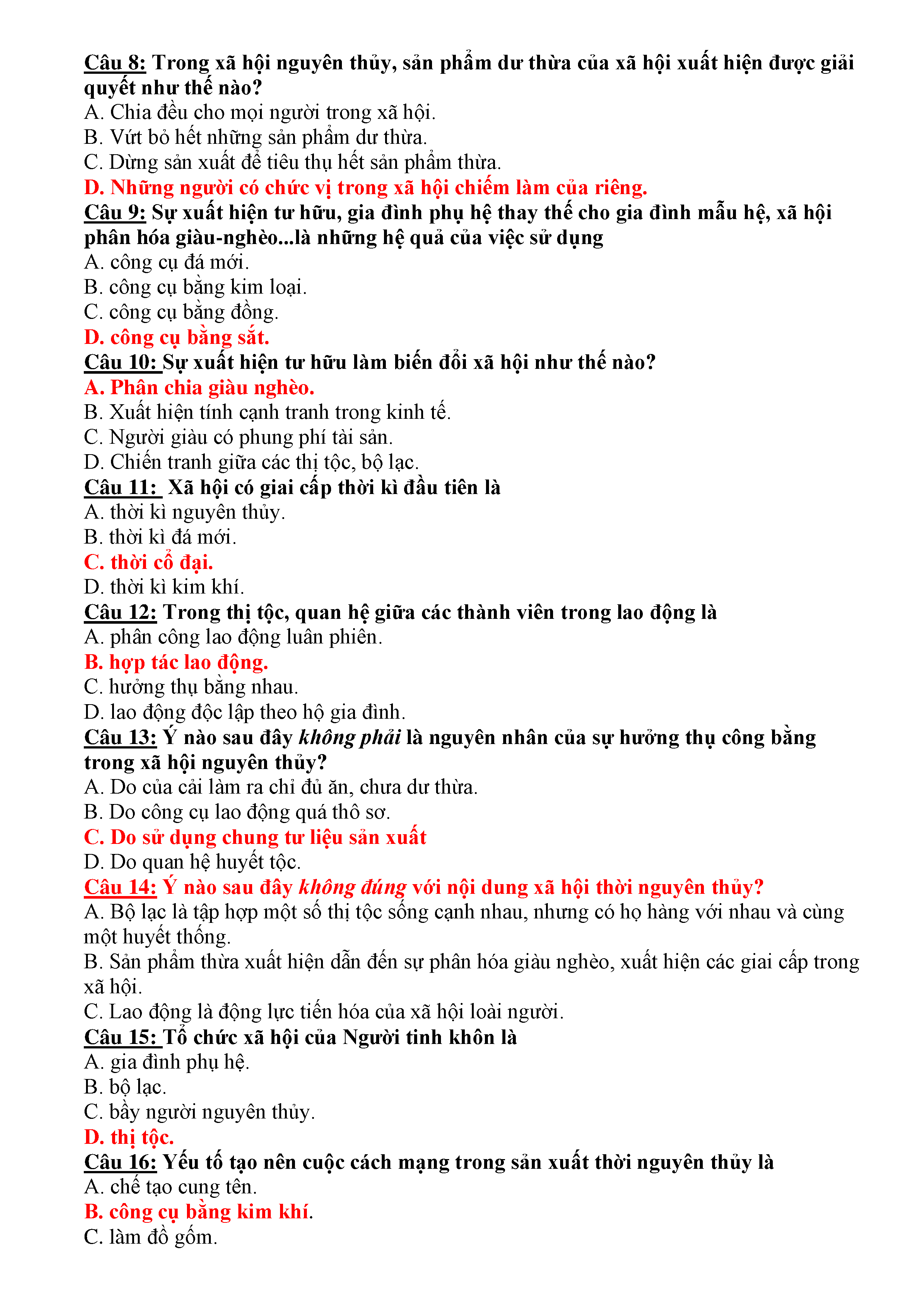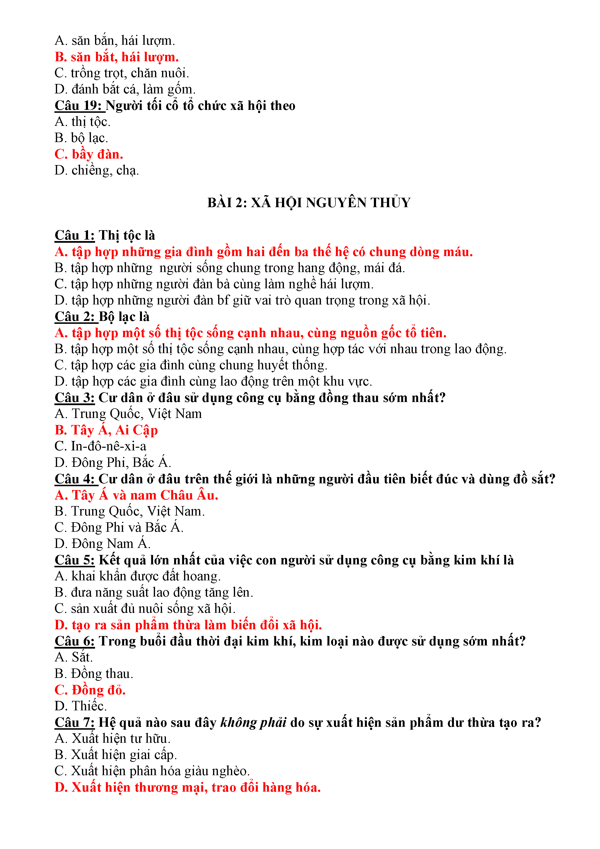 550 câu trắc nghiệm ôn tập Sử 10 (cả năm) - có đáp án