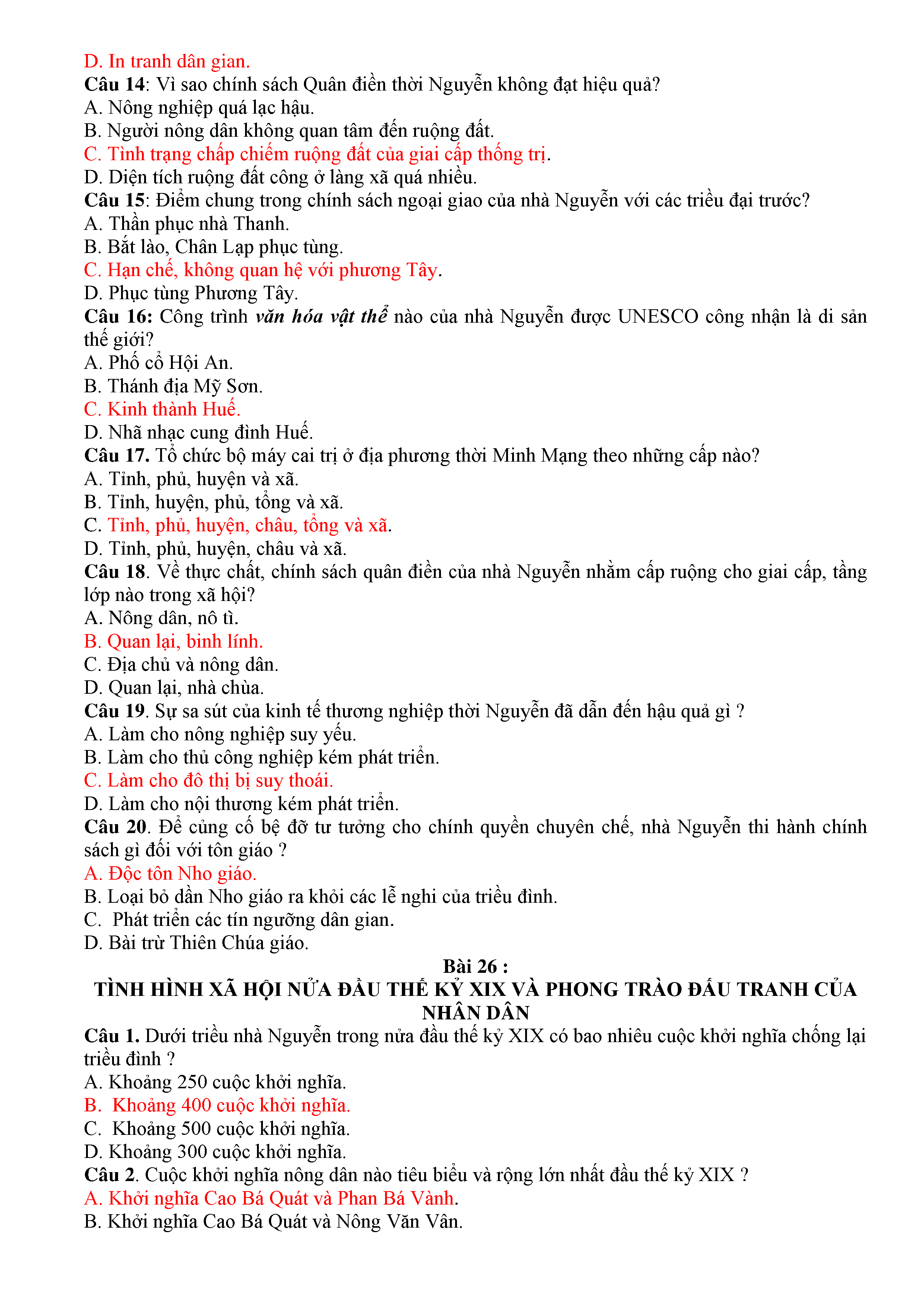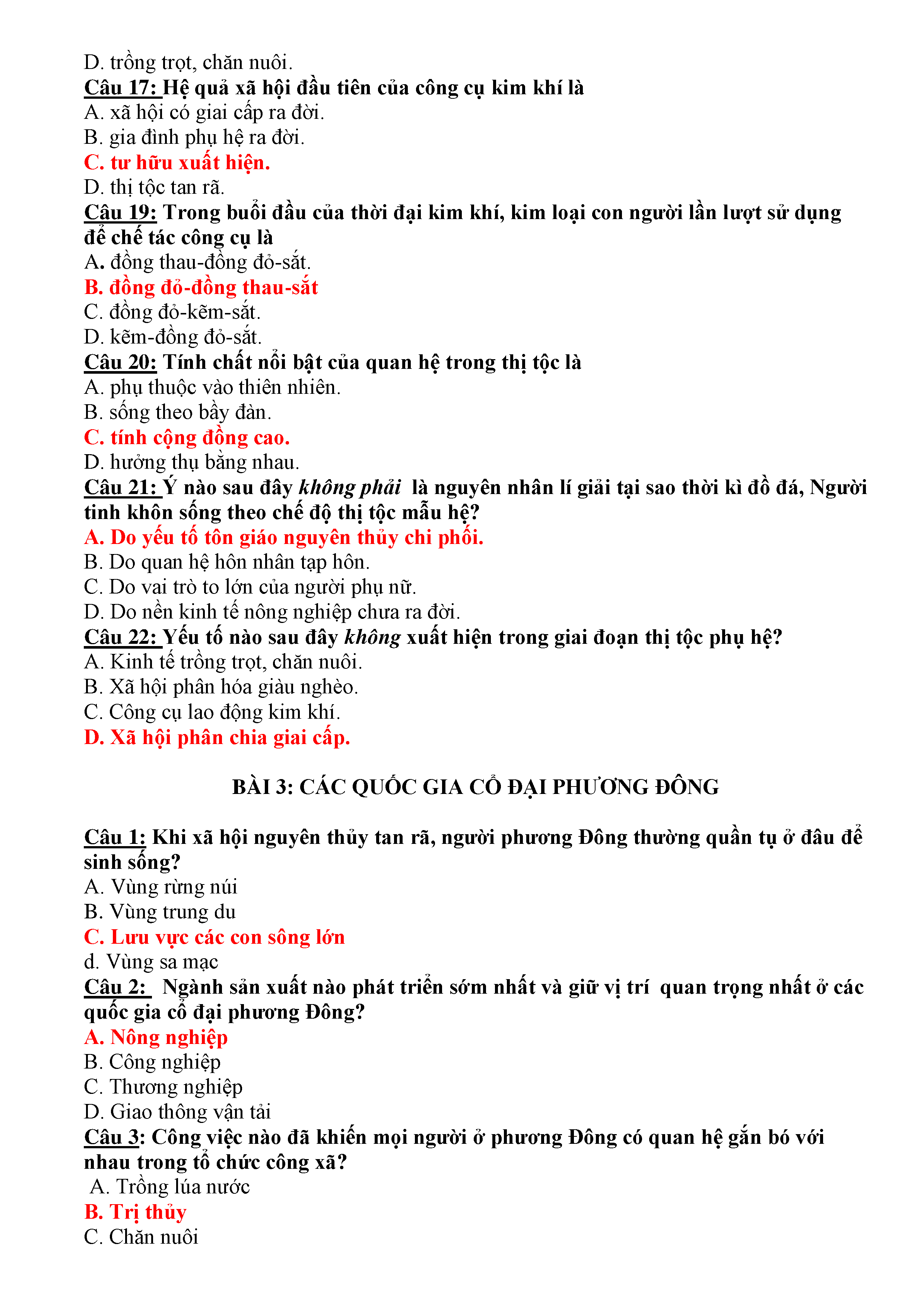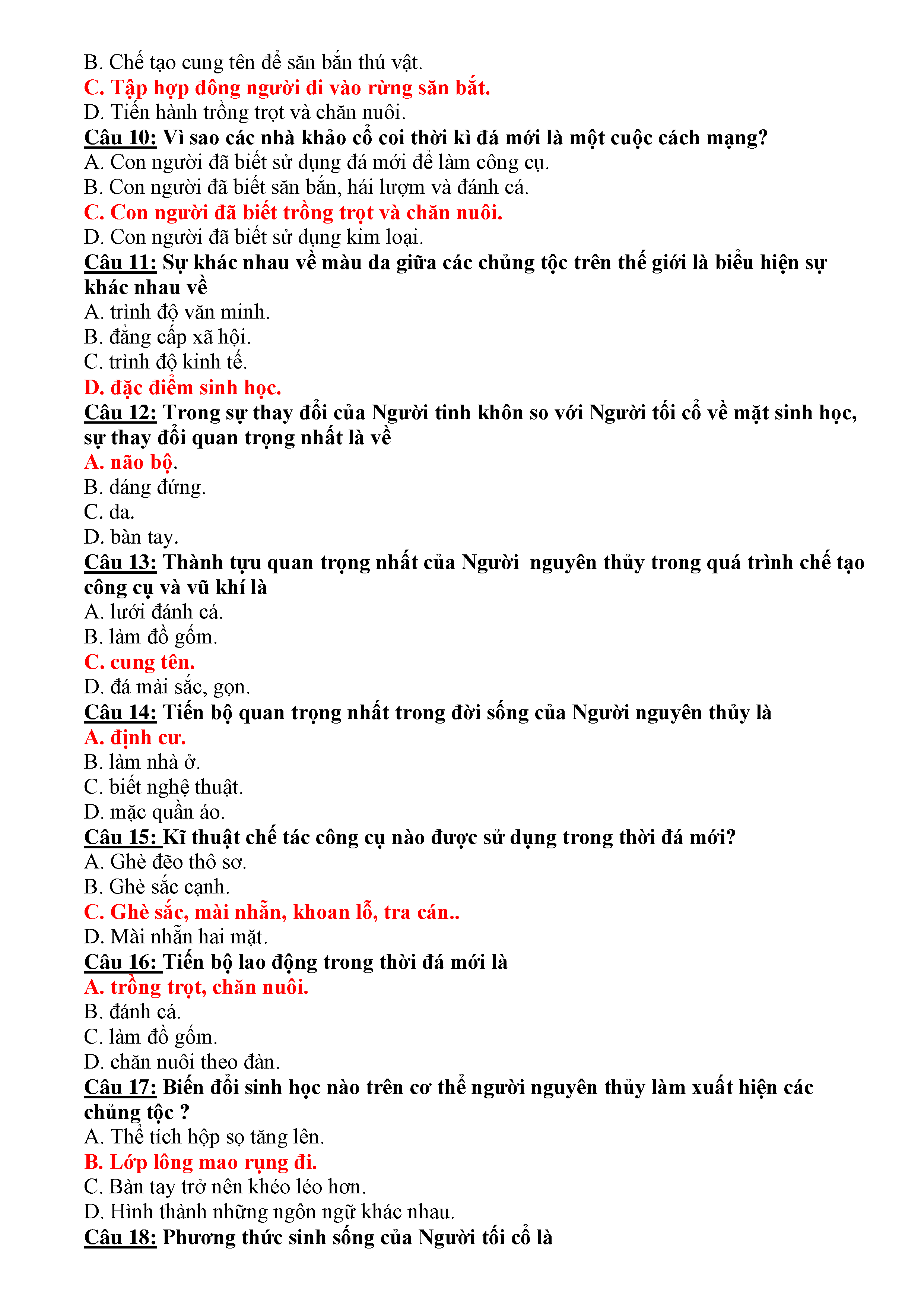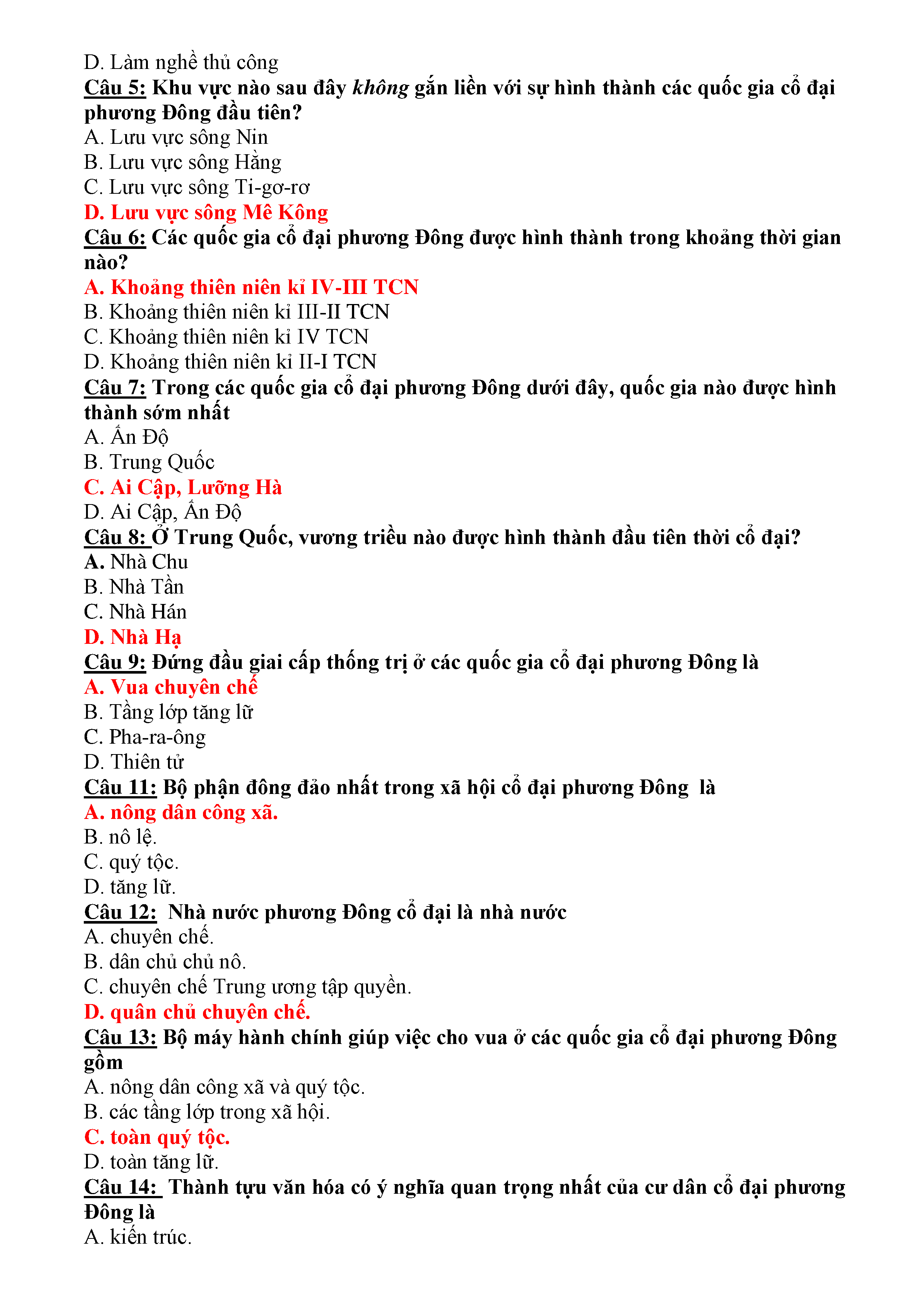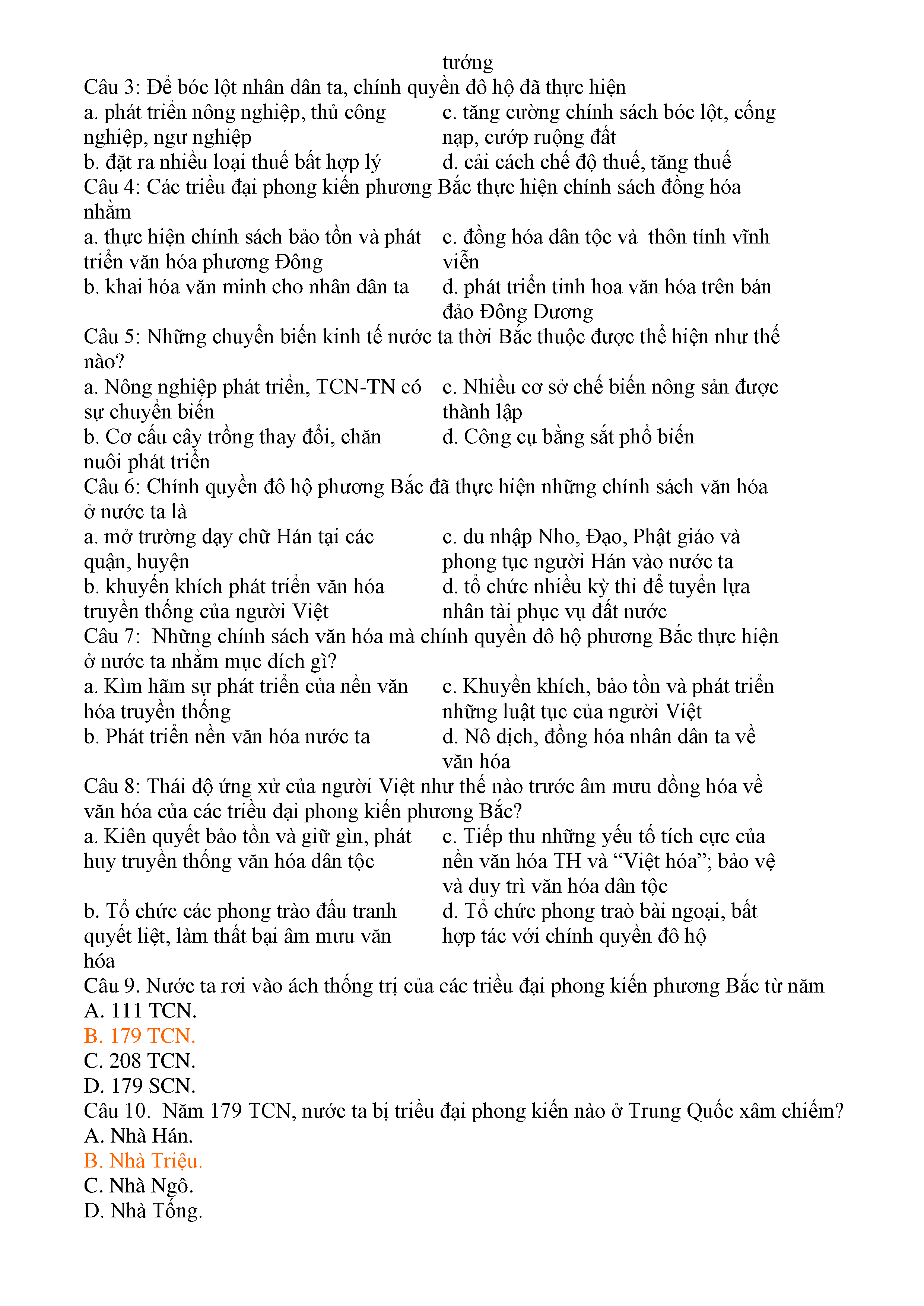 550 câu trắc nghiệm ôn tập Sử 10 (cả năm) - có đáp án