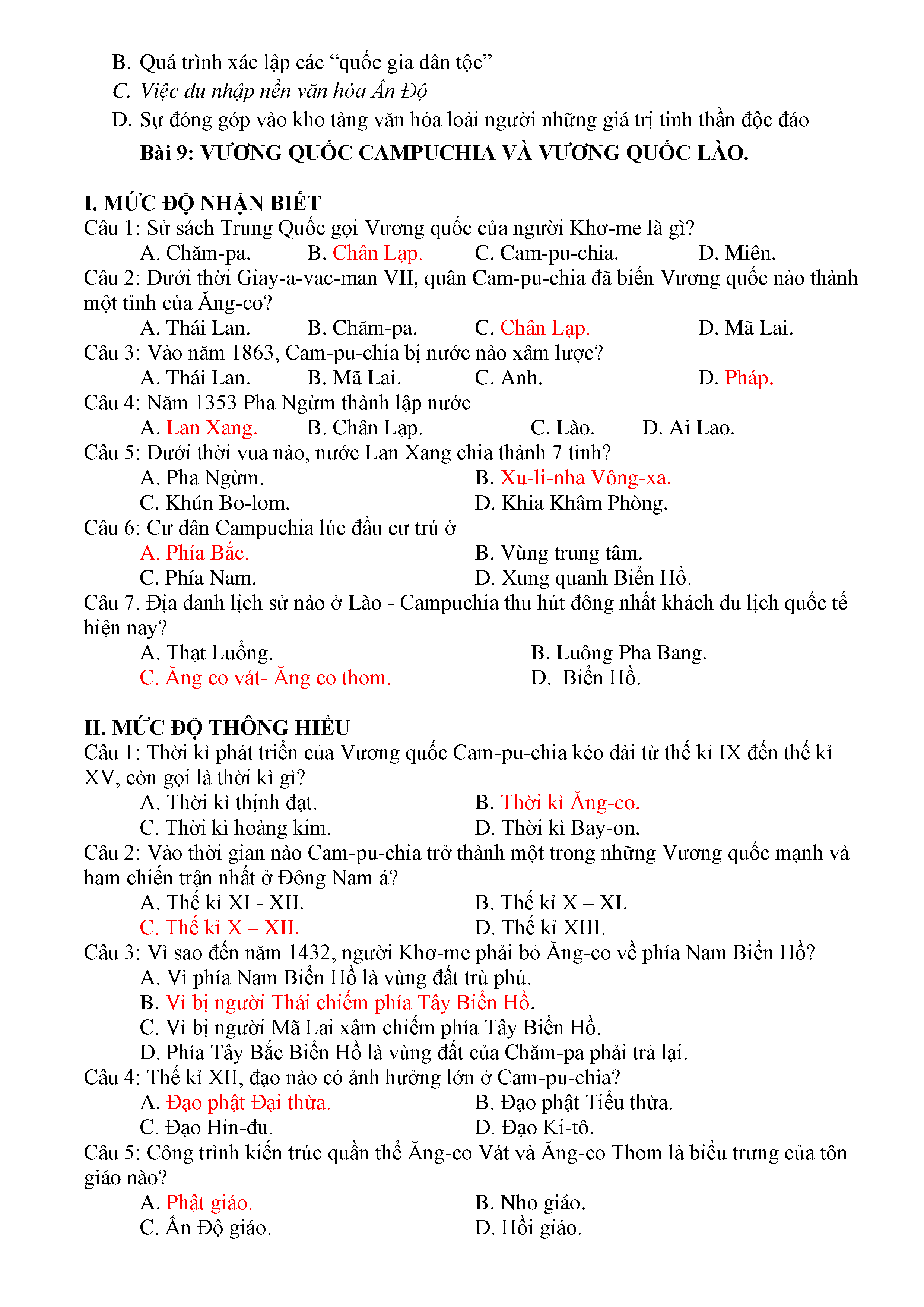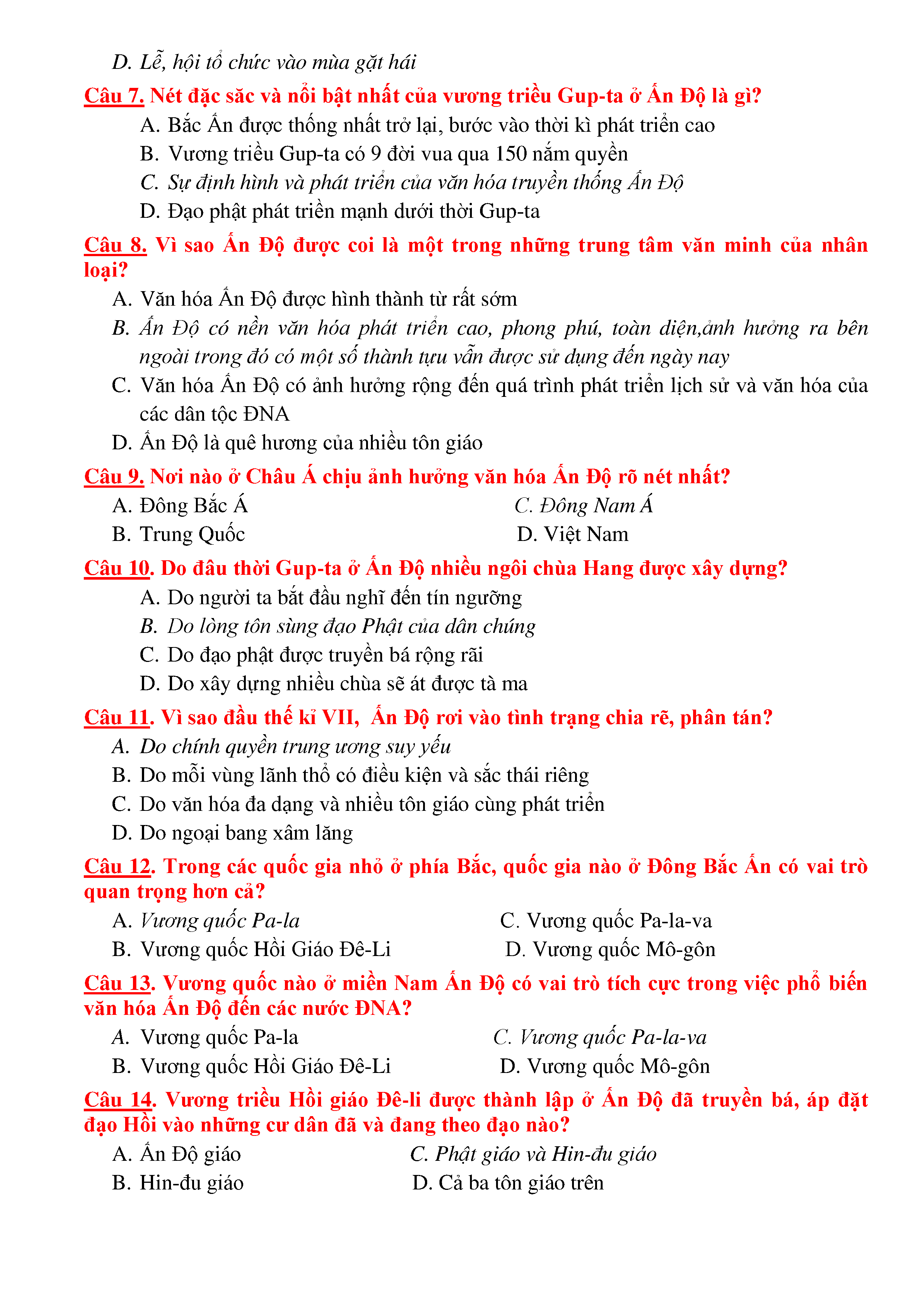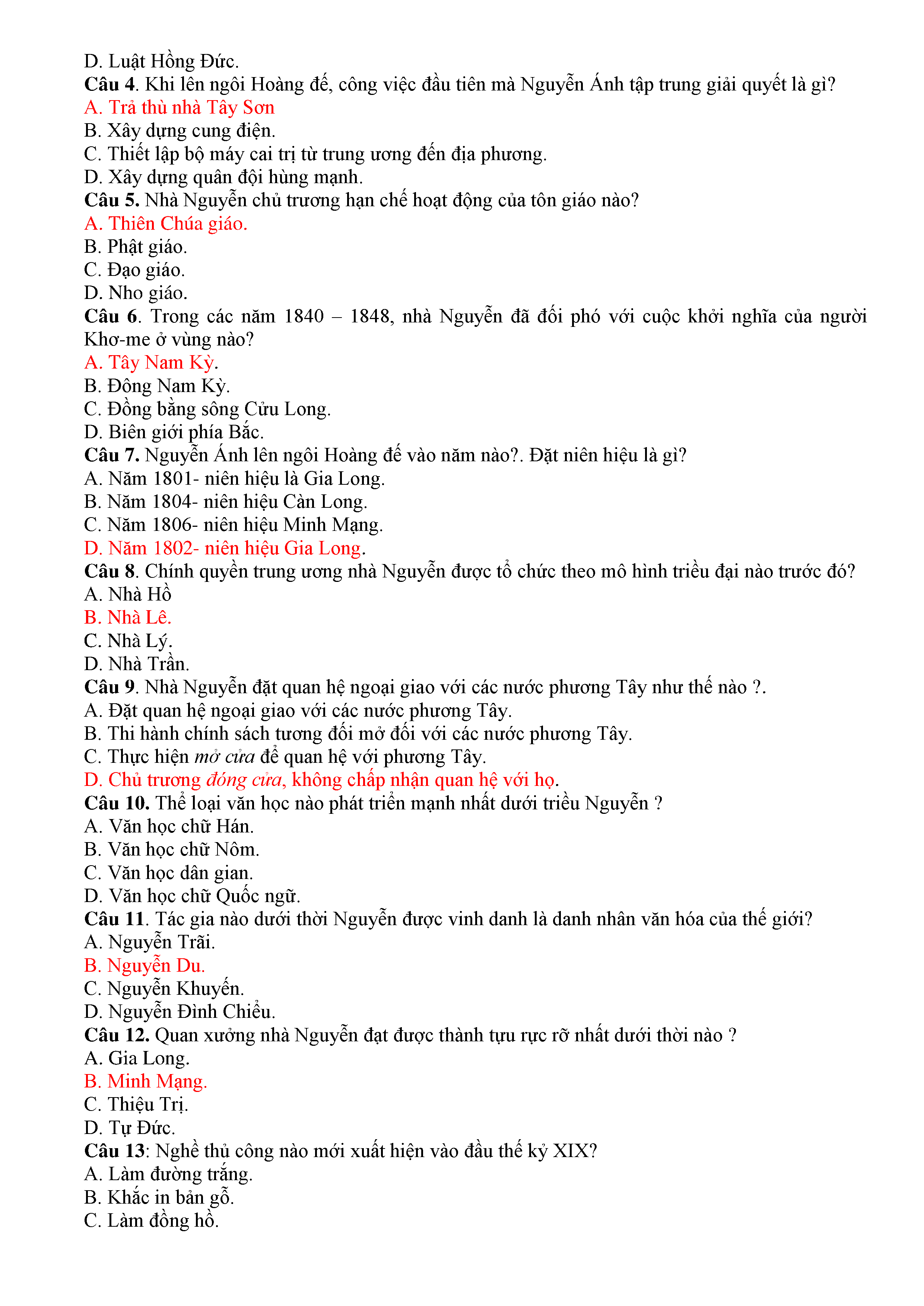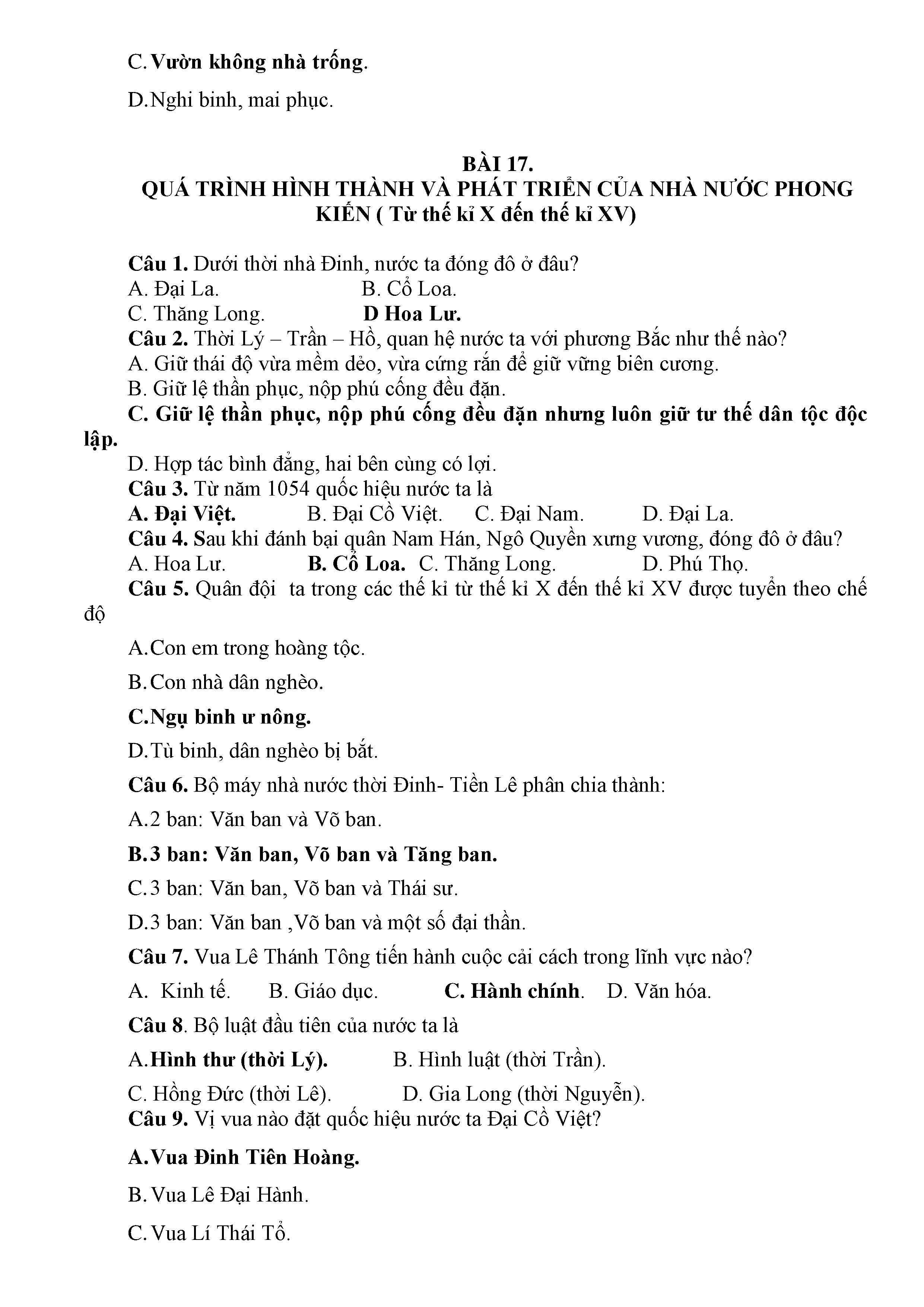 550 câu trắc nghiệm ôn tập Sử 10 (cả năm) - có đáp án