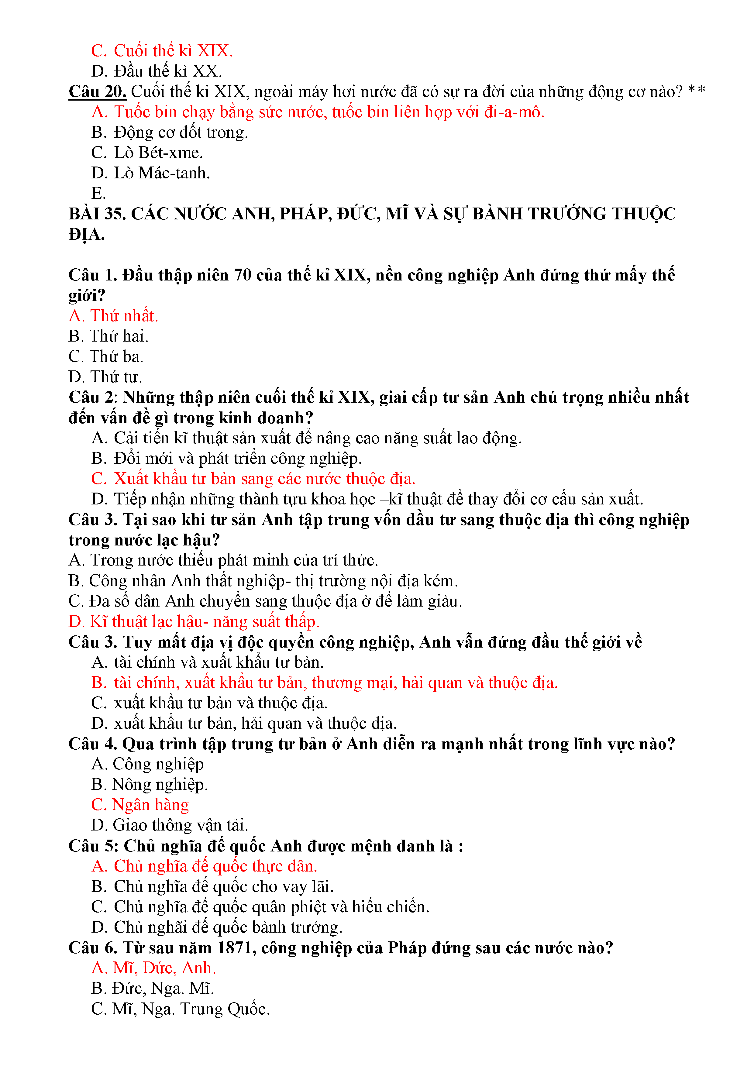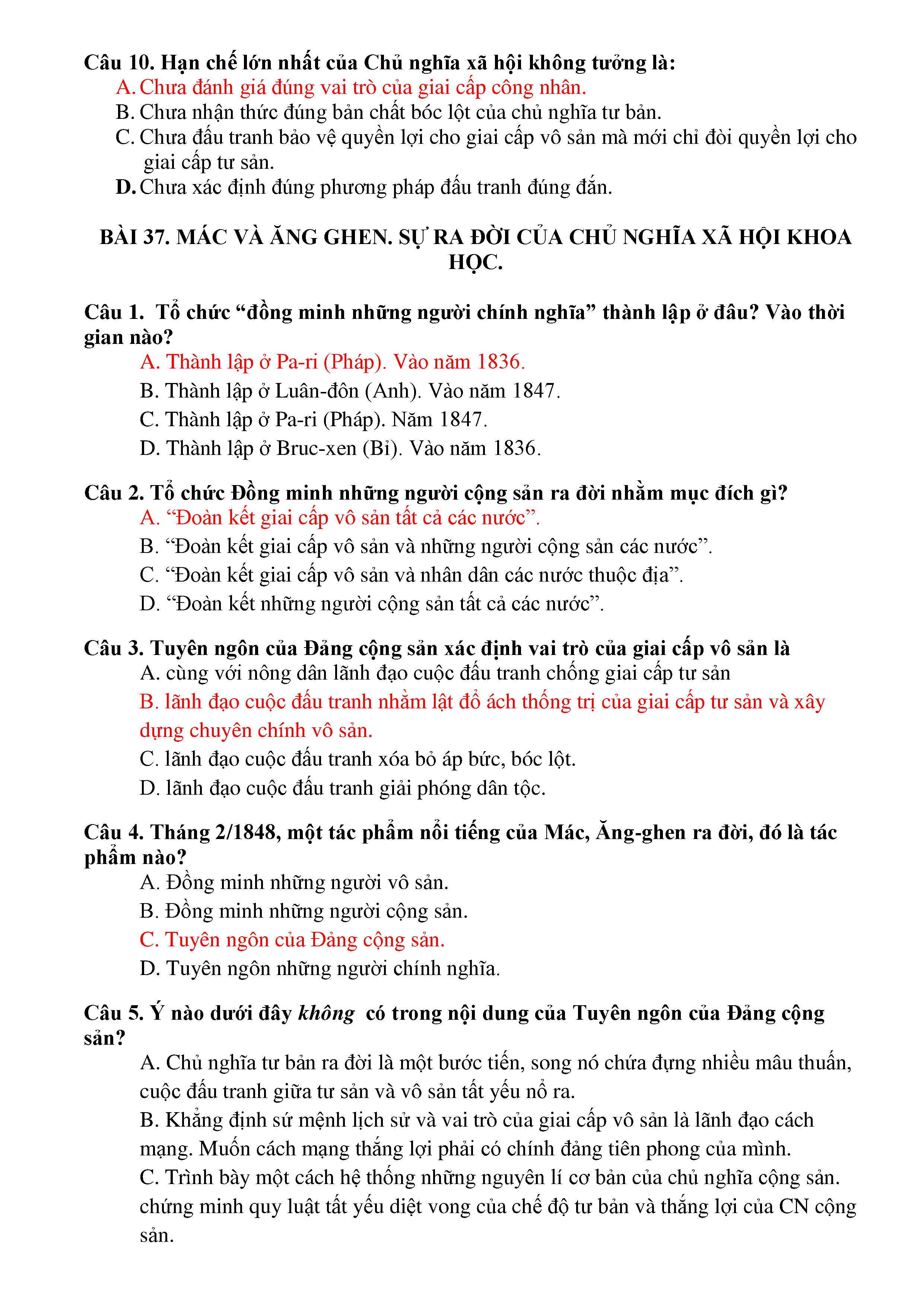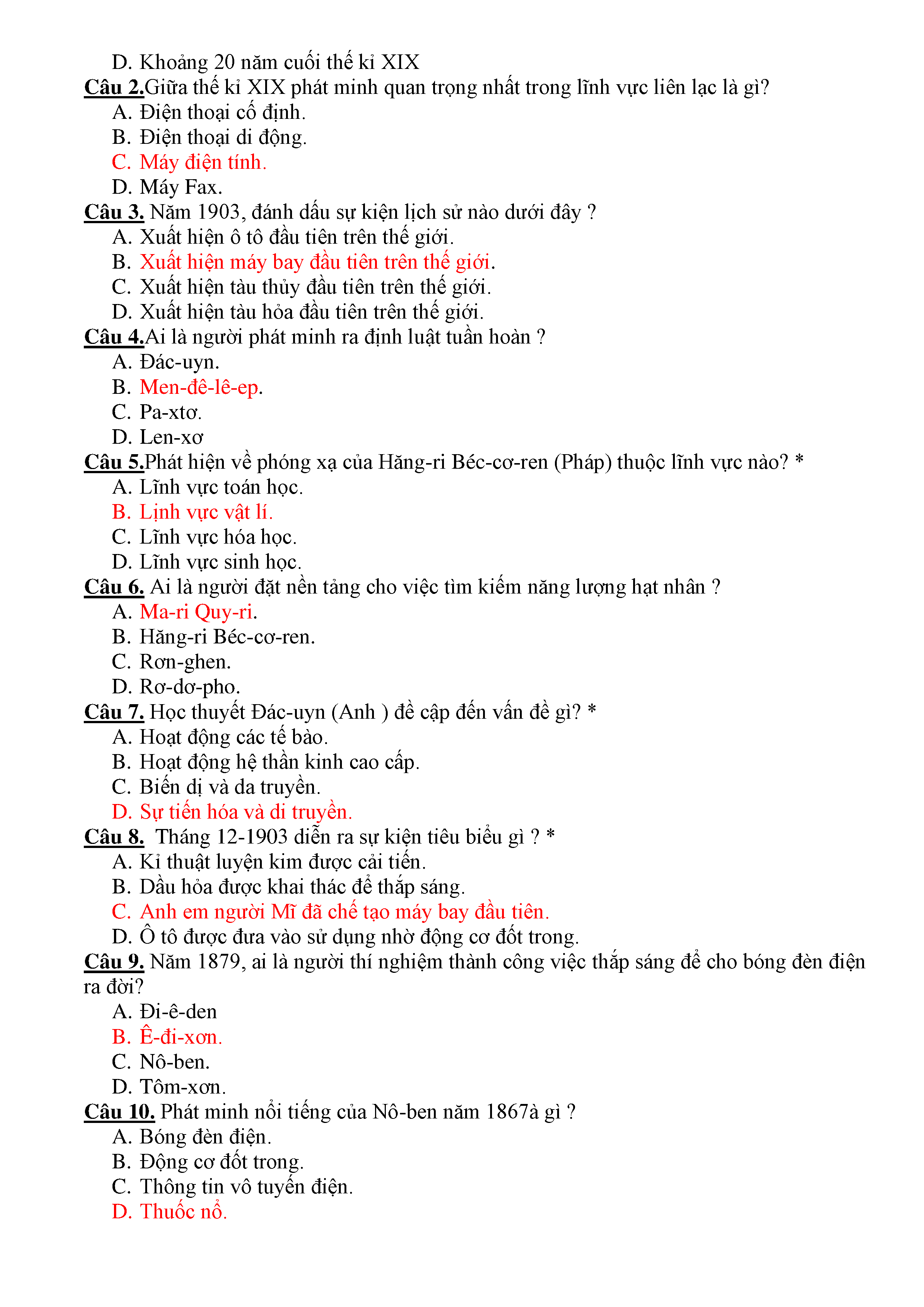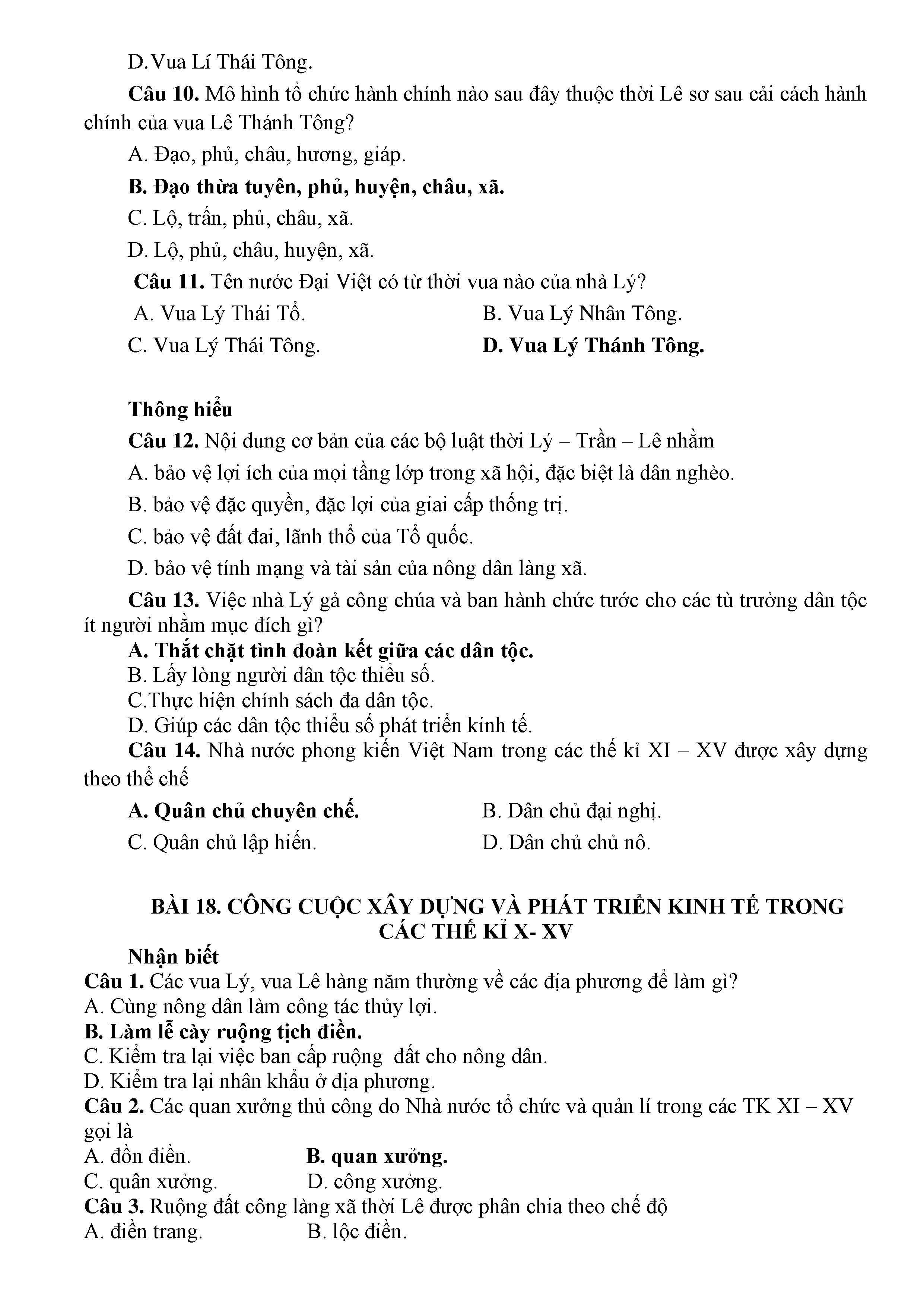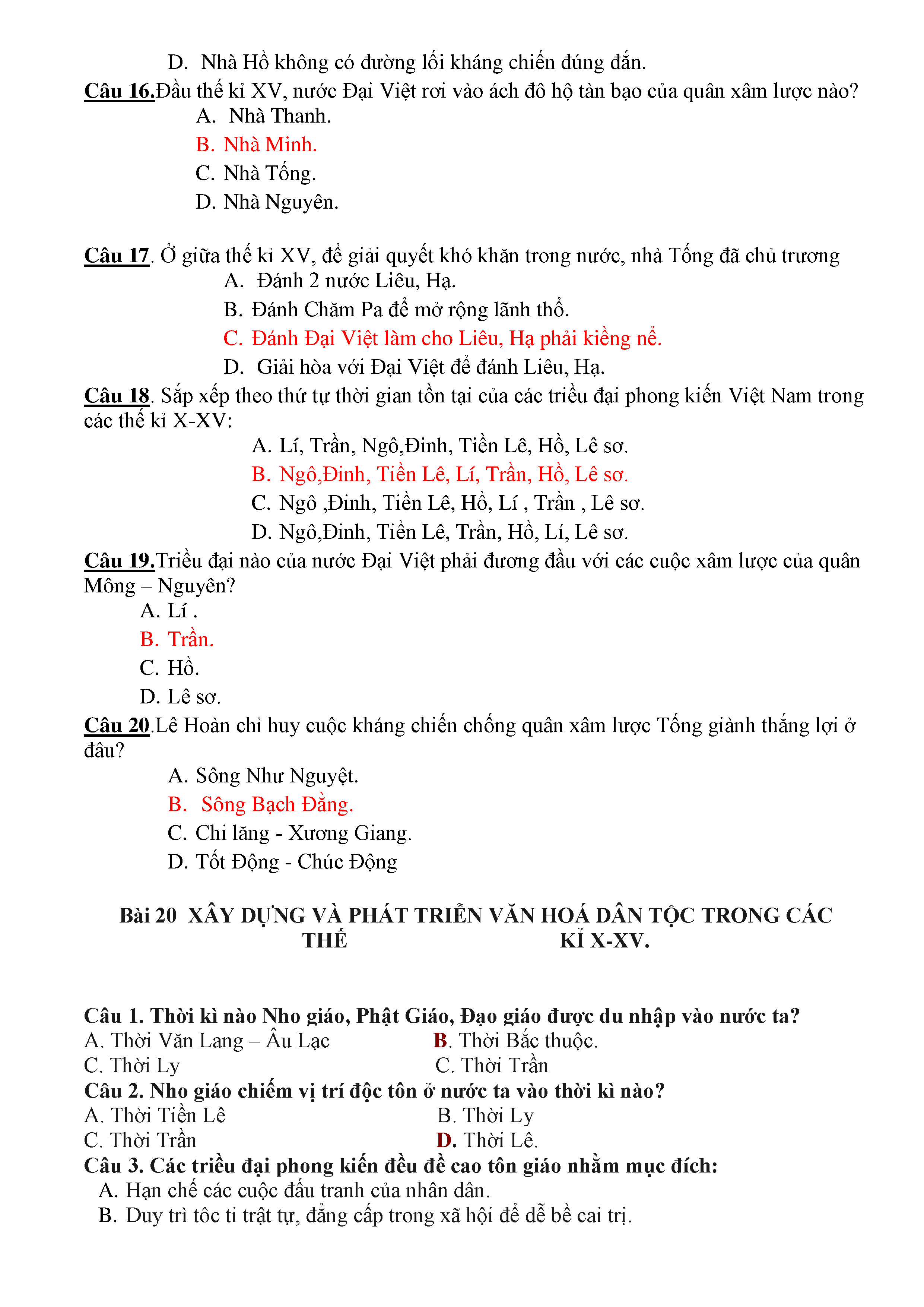 550 câu trắc nghiệm ôn tập Sử 10 (cả năm) - có đáp án