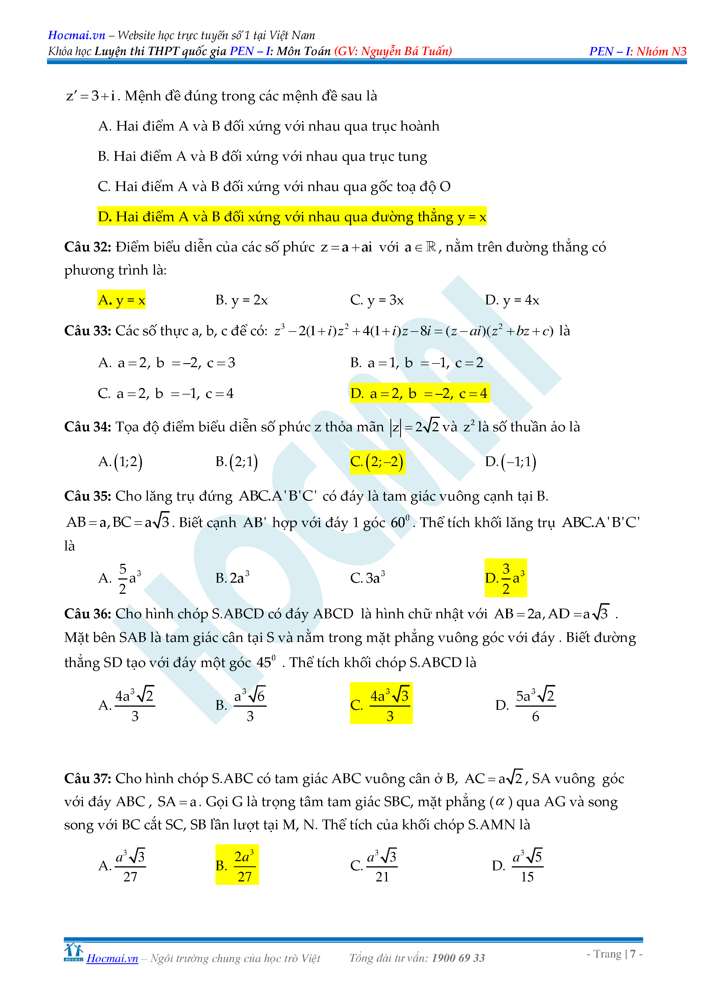 Đáp án đề luyện thi THPTQG môn Toán - đề 1 - thầy Nguyễn Bá Tuấn