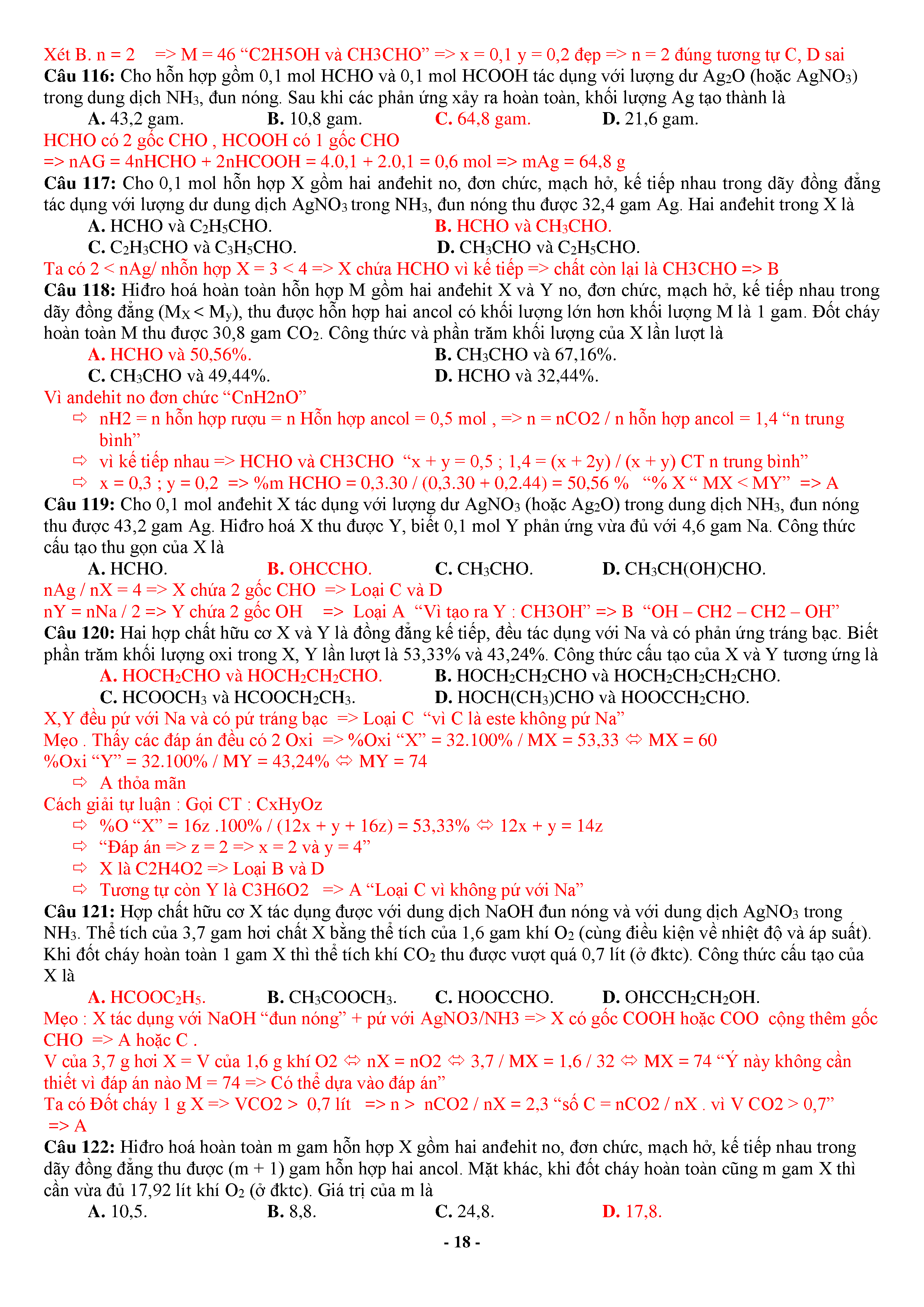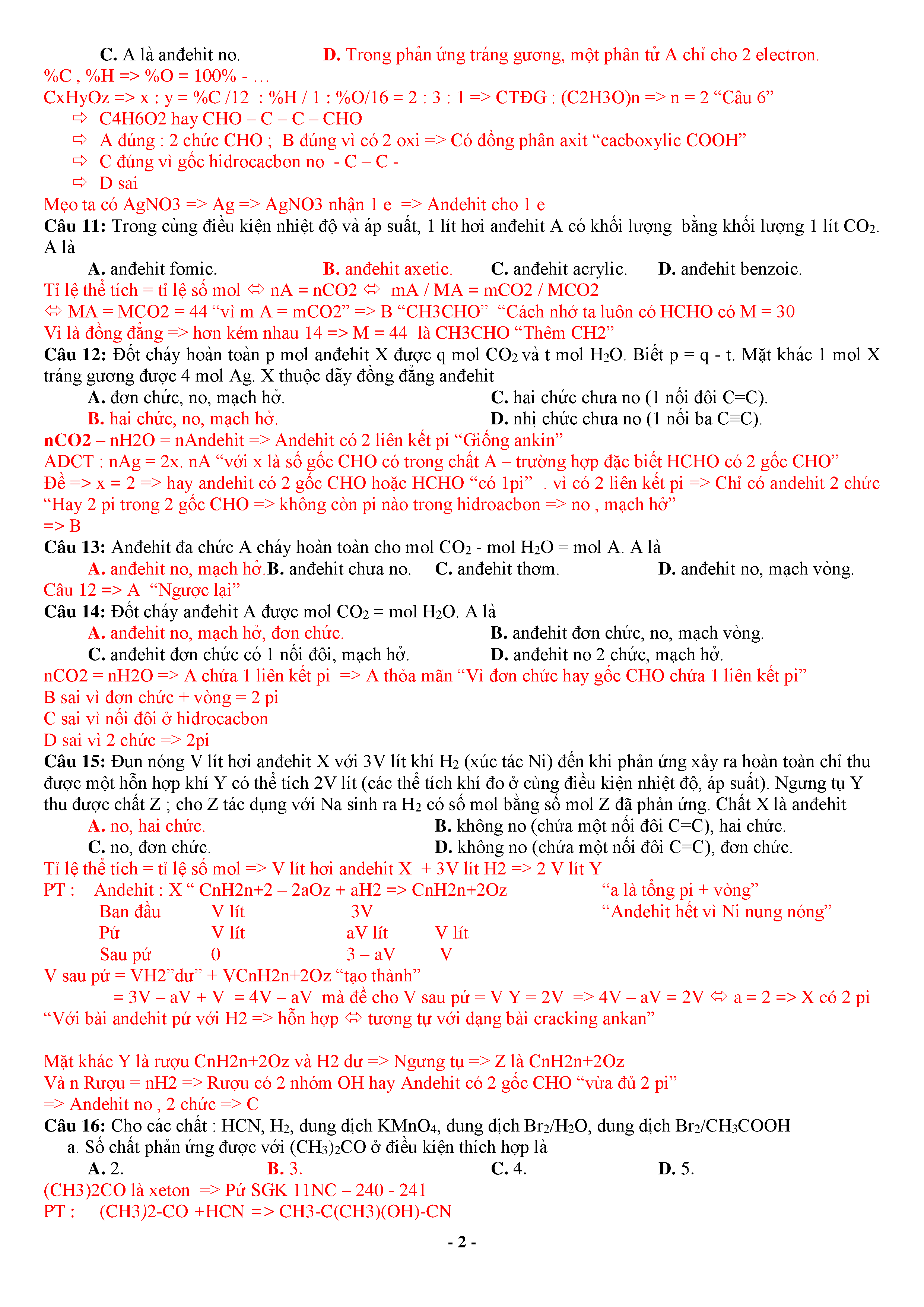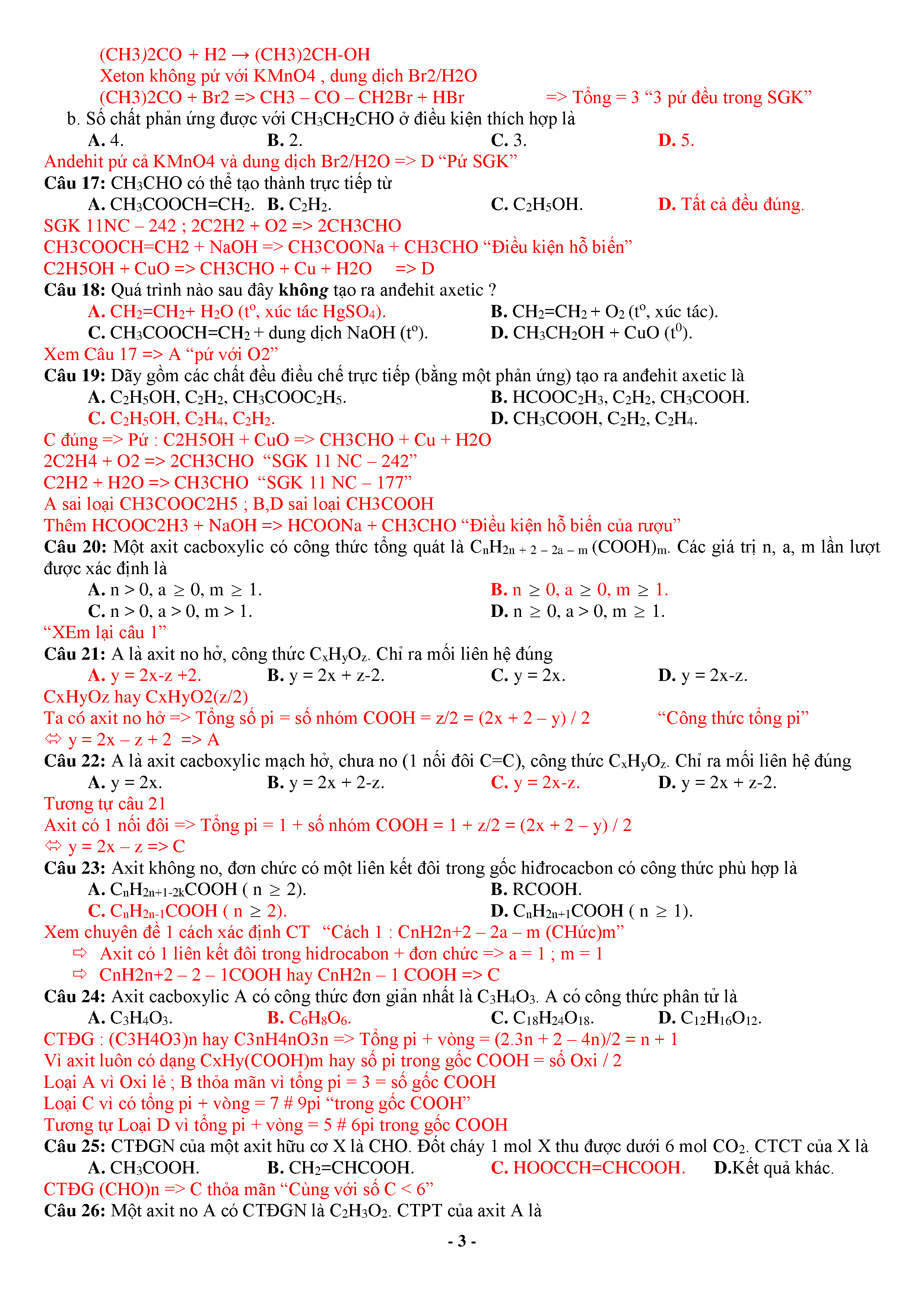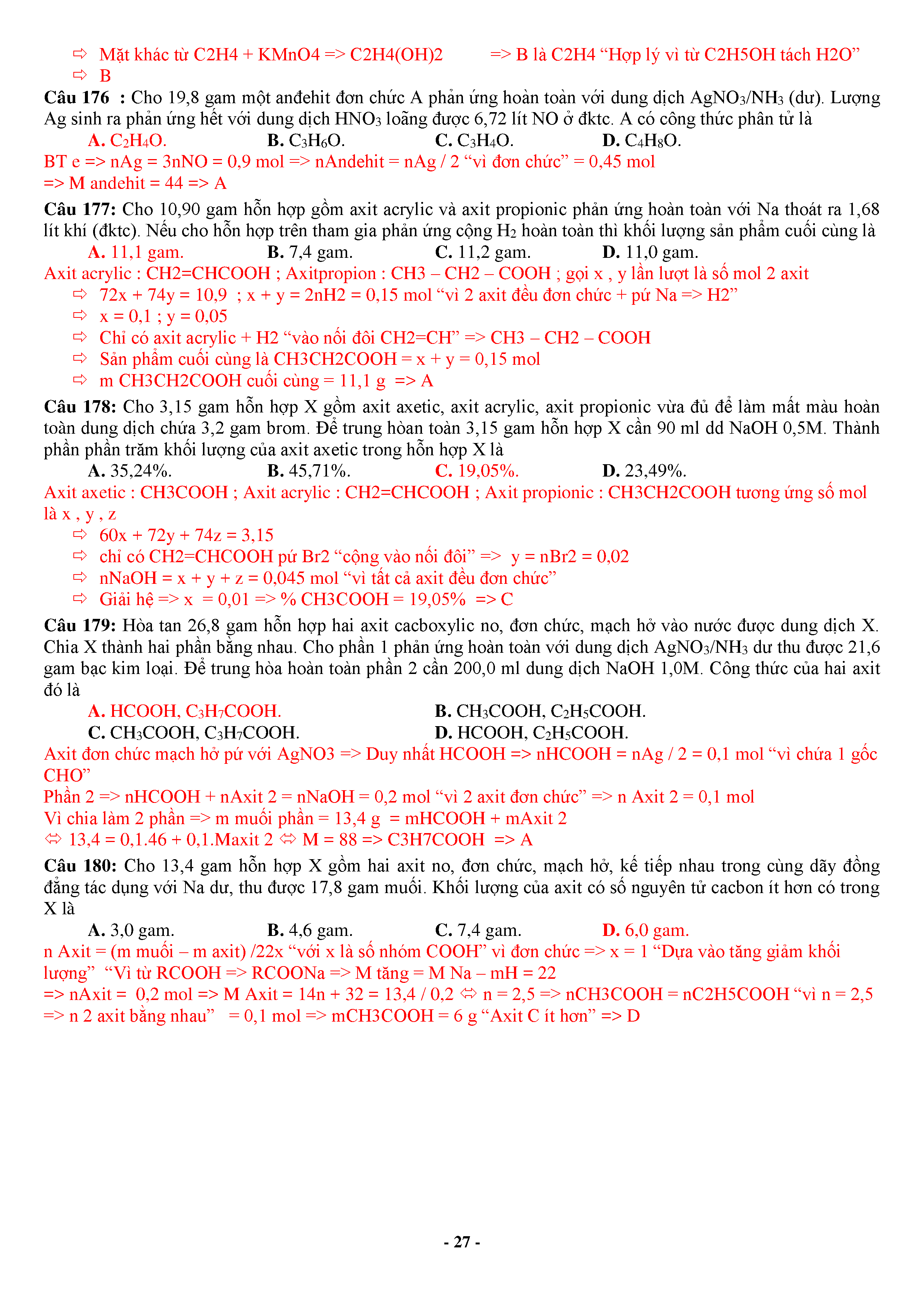 180 câu trắc nghiệm Anđêhit - Axit cacboxylic - có đáp án