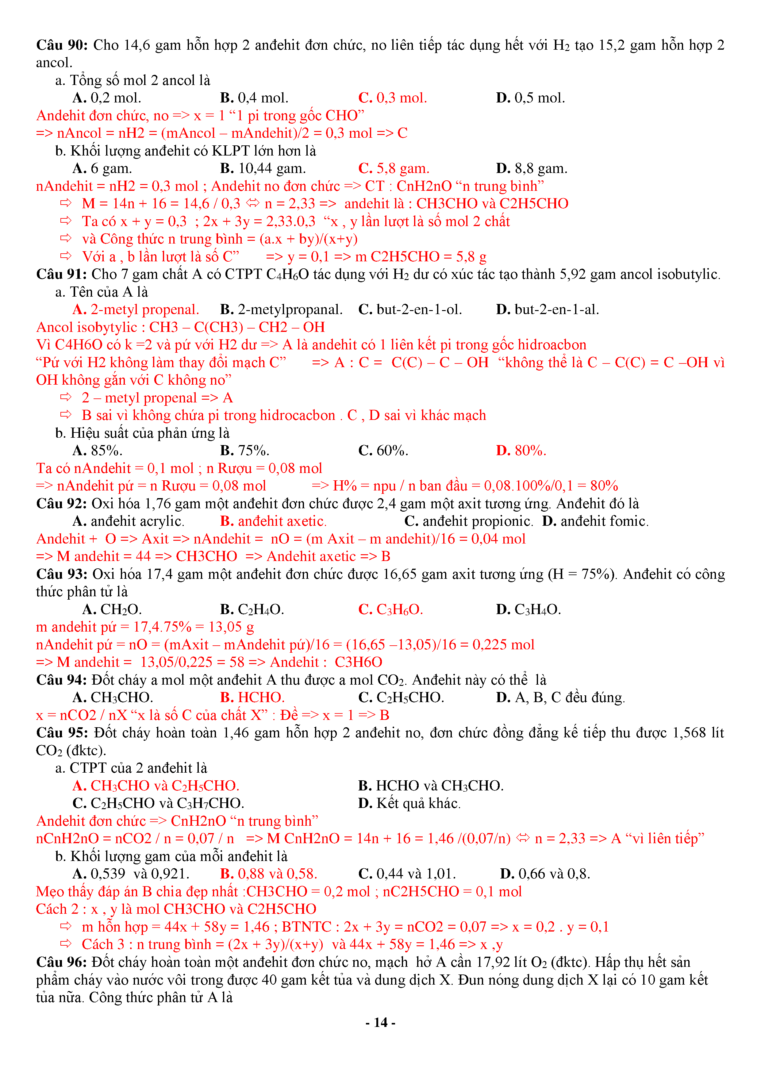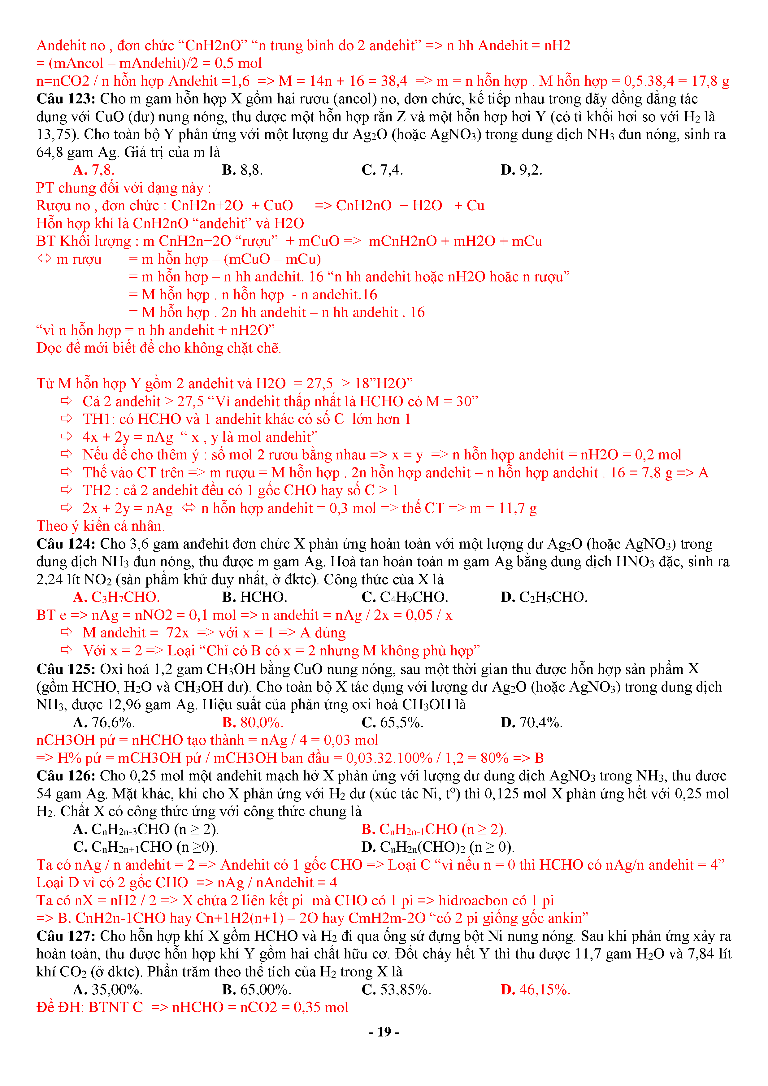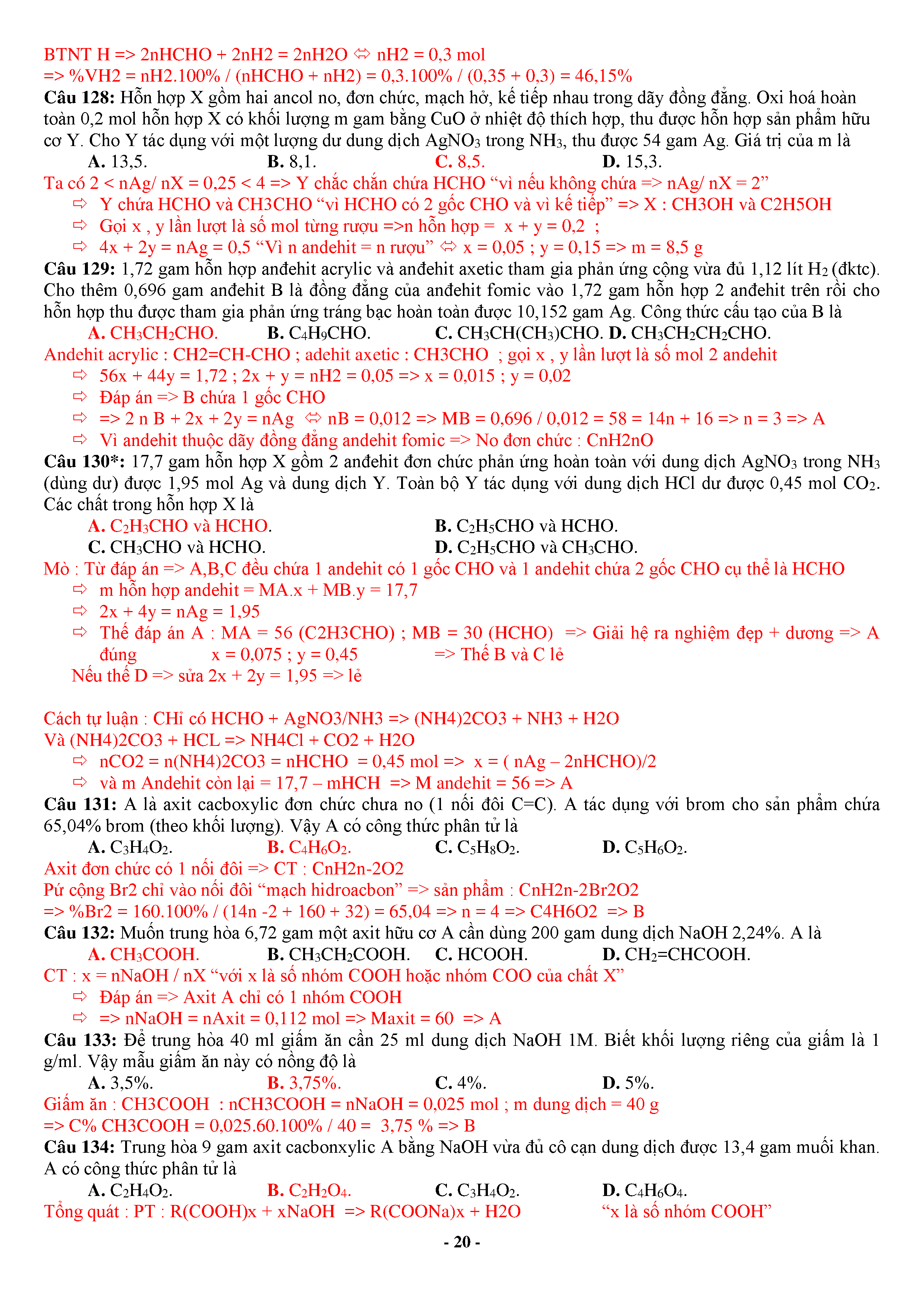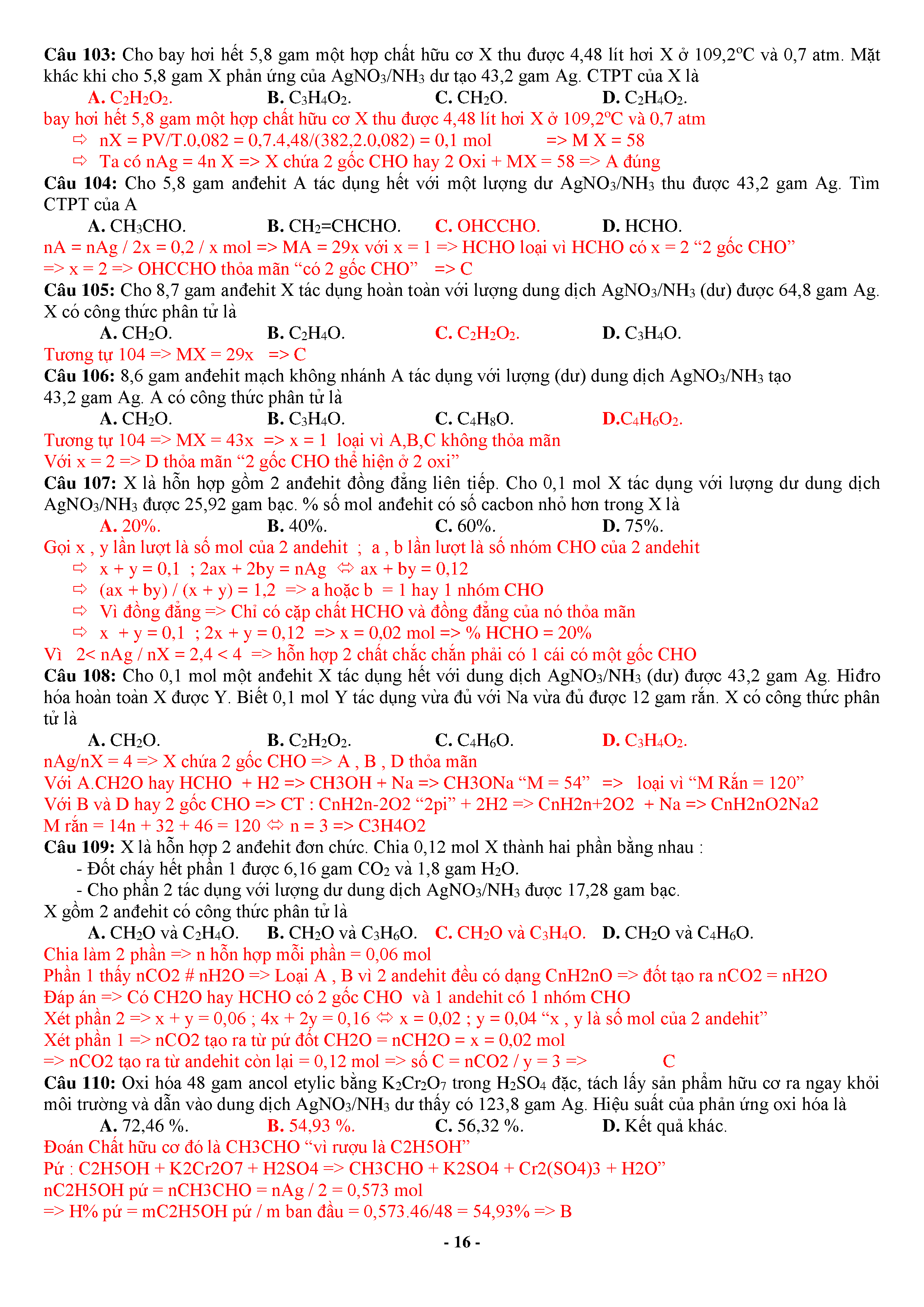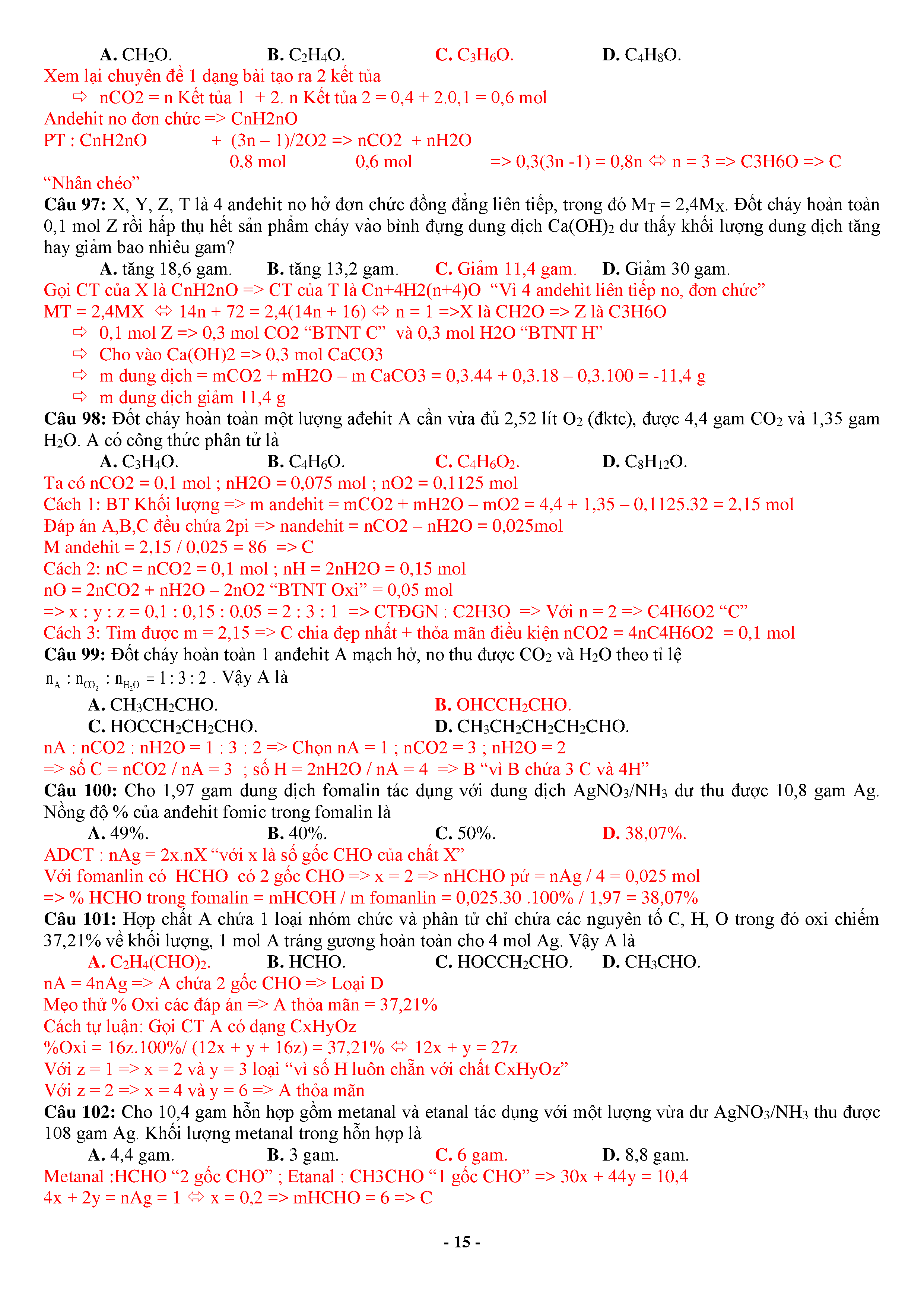 180 câu trắc nghiệm Anđêhit - Axit cacboxylic - có đáp án