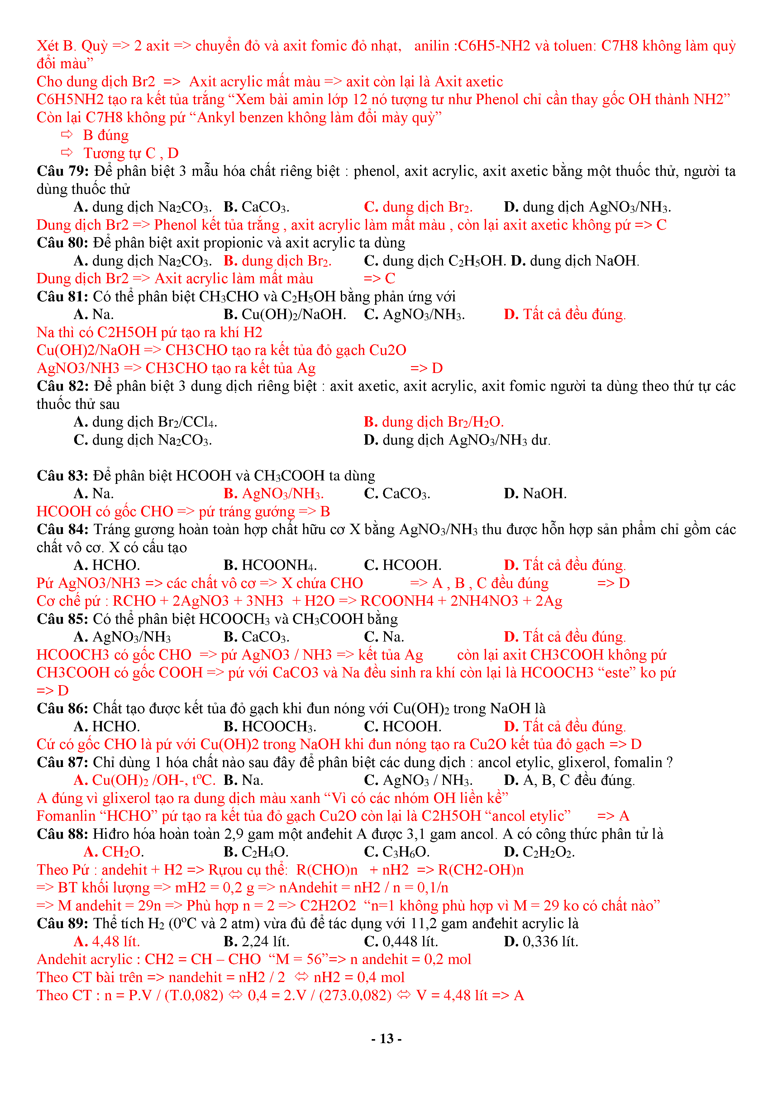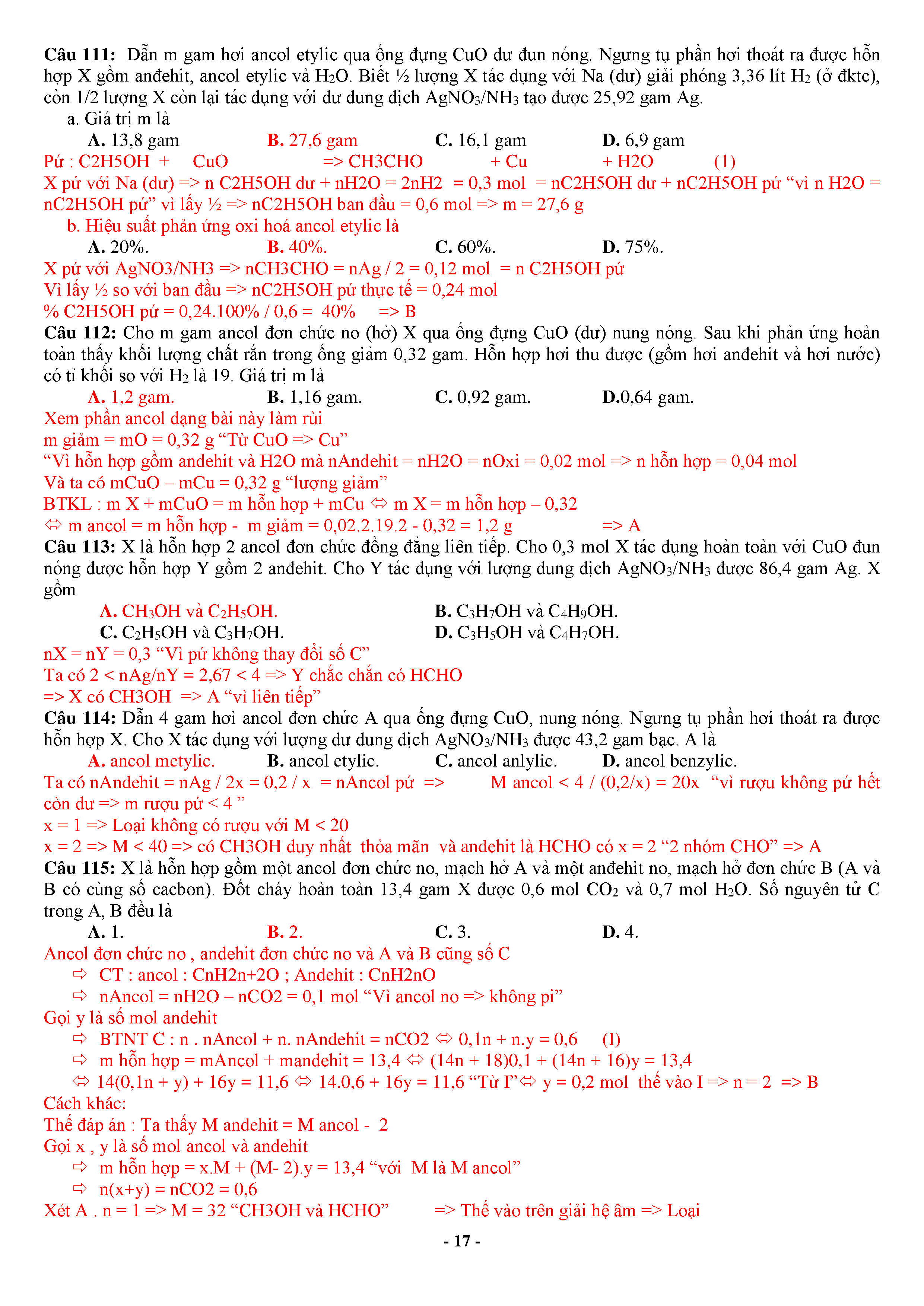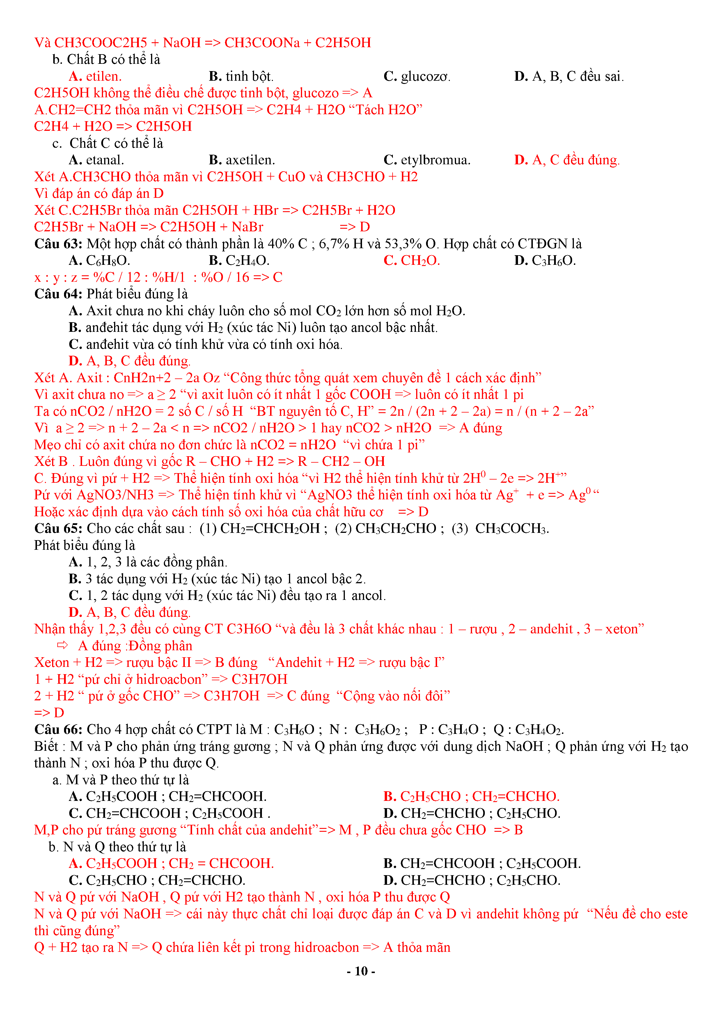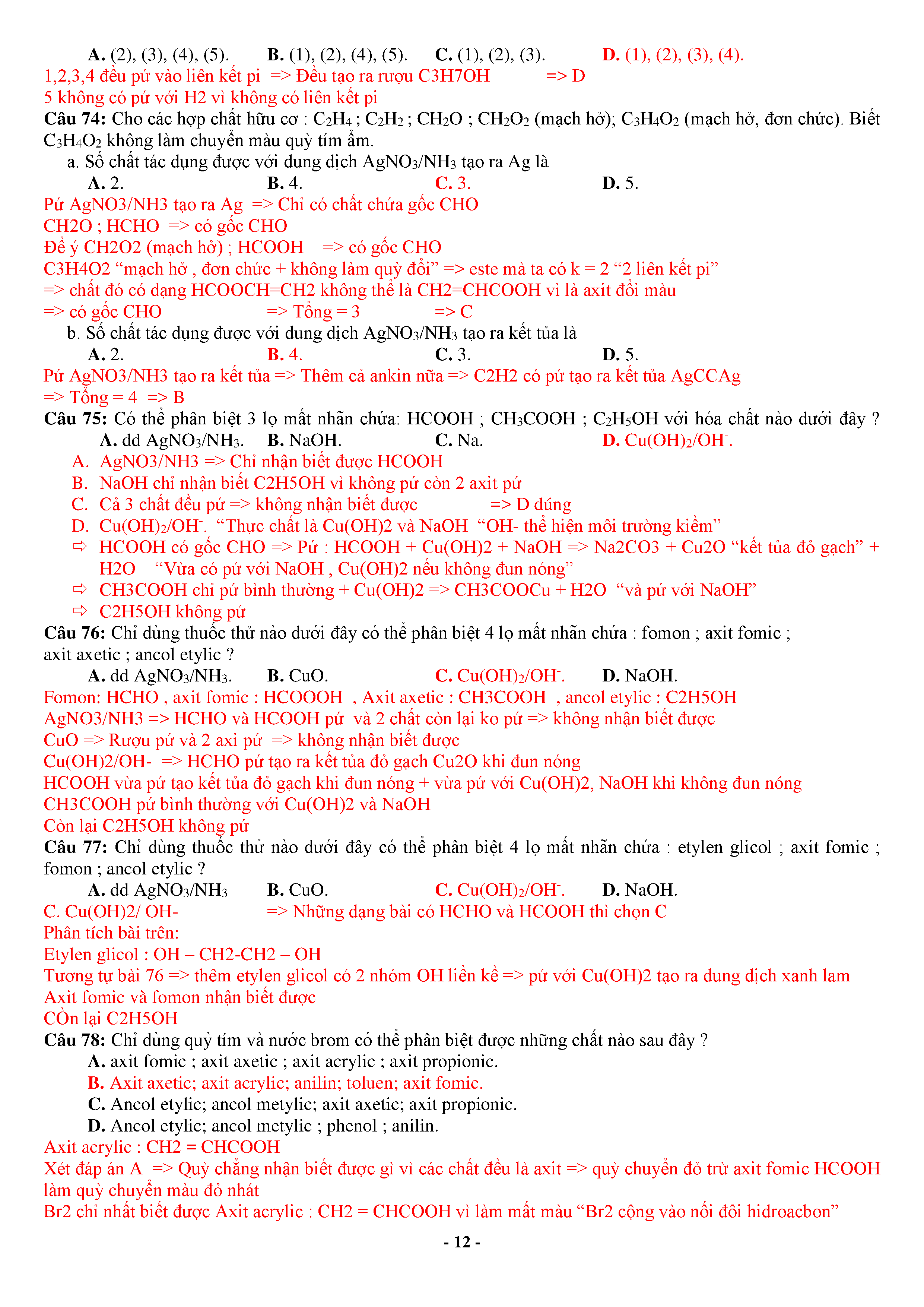 180 câu trắc nghiệm Anđêhit - Axit cacboxylic - có đáp án