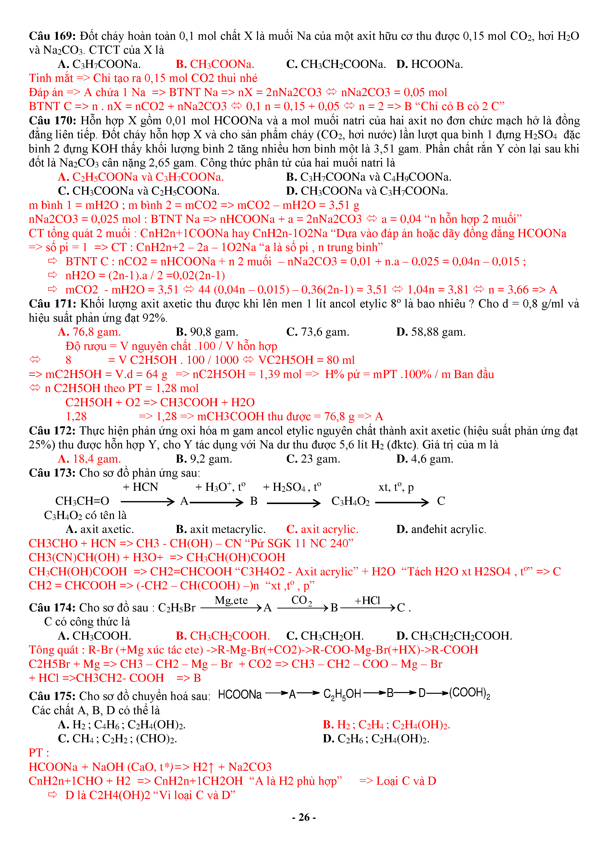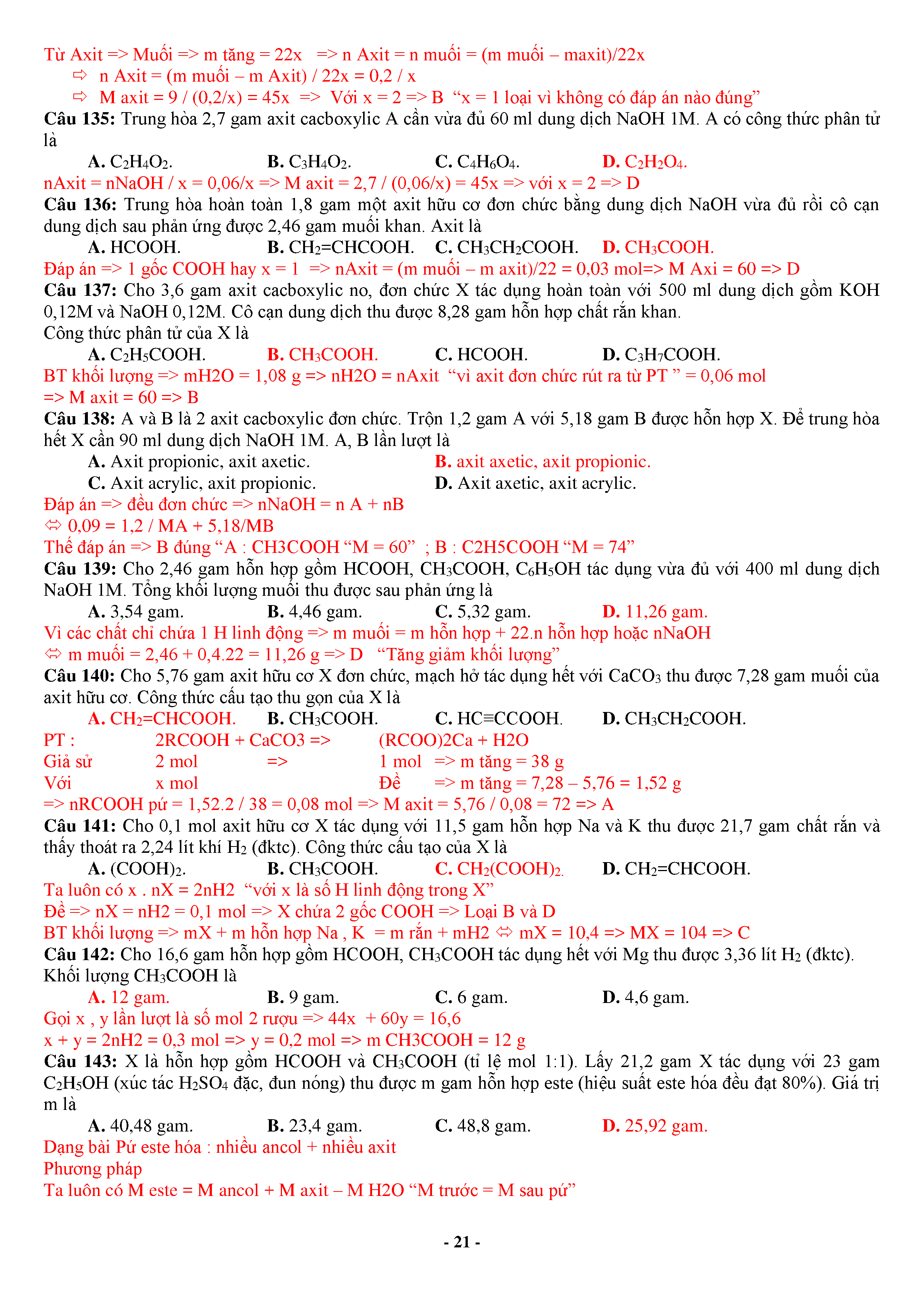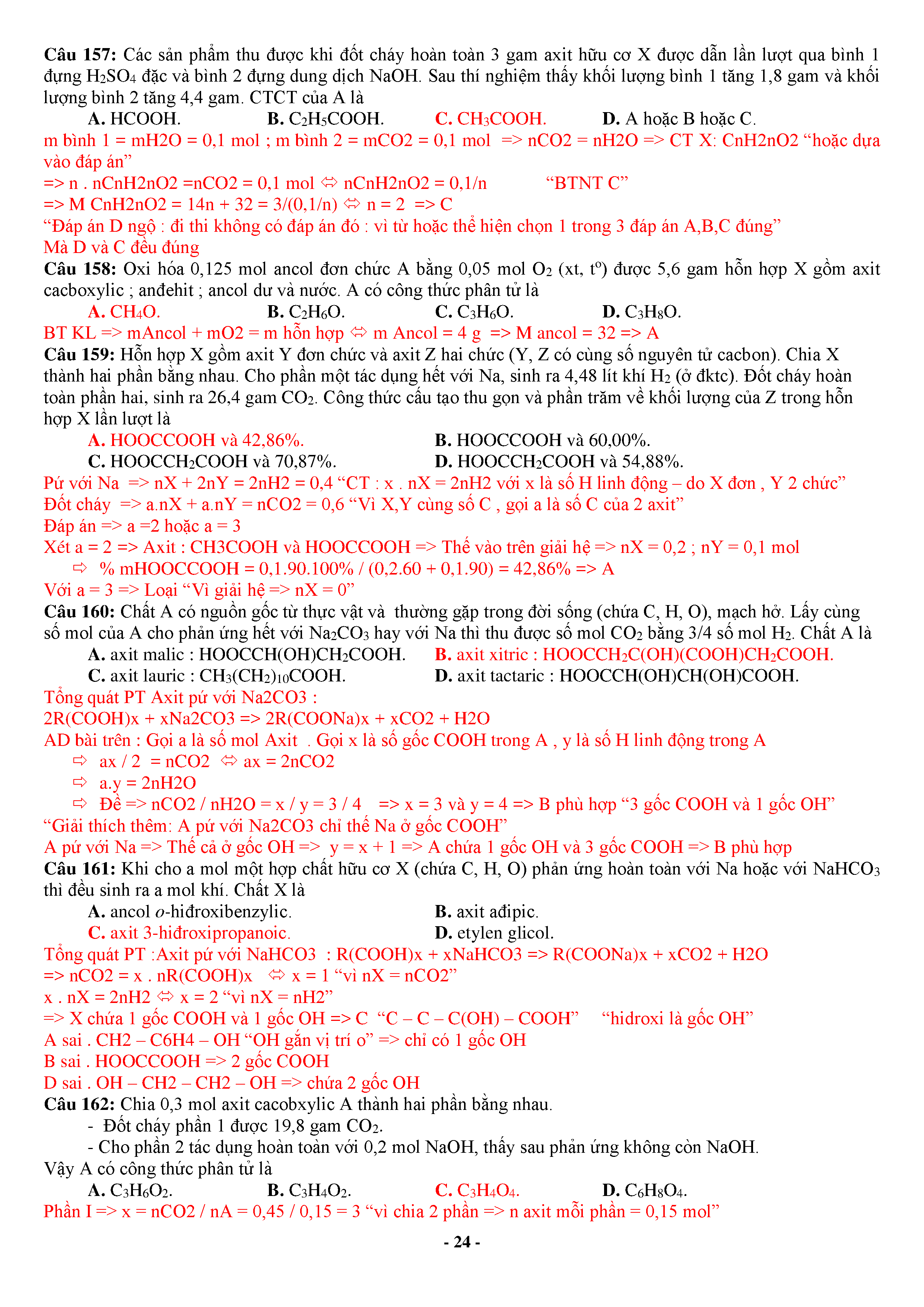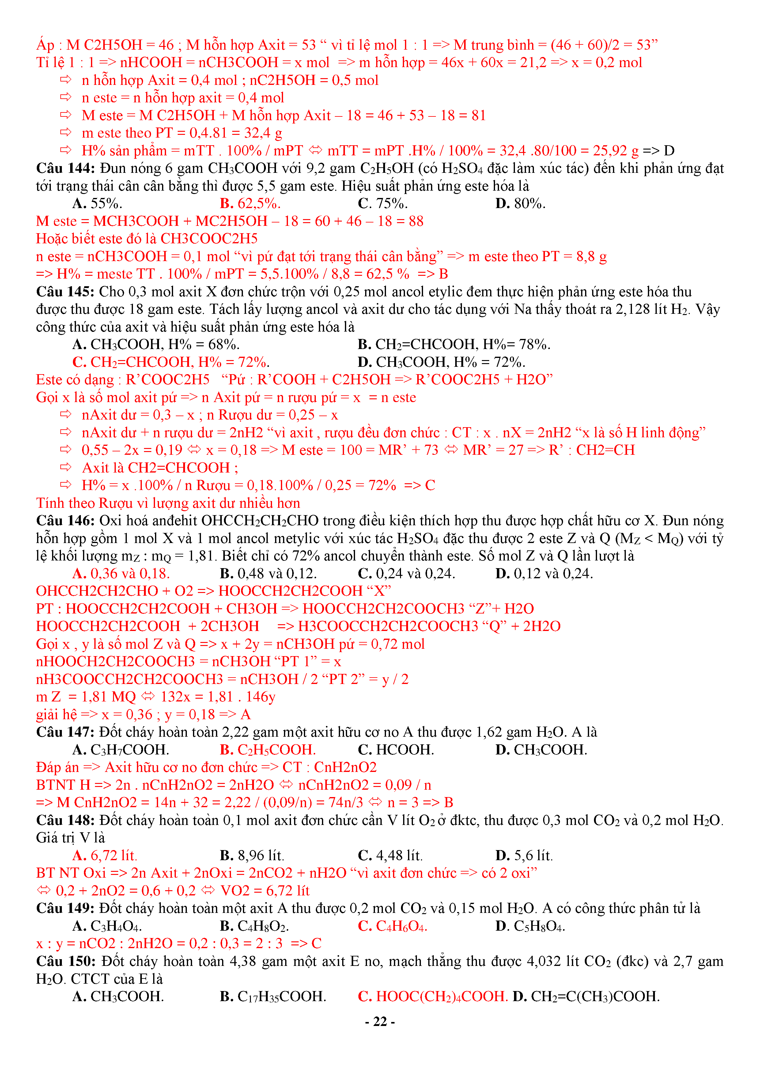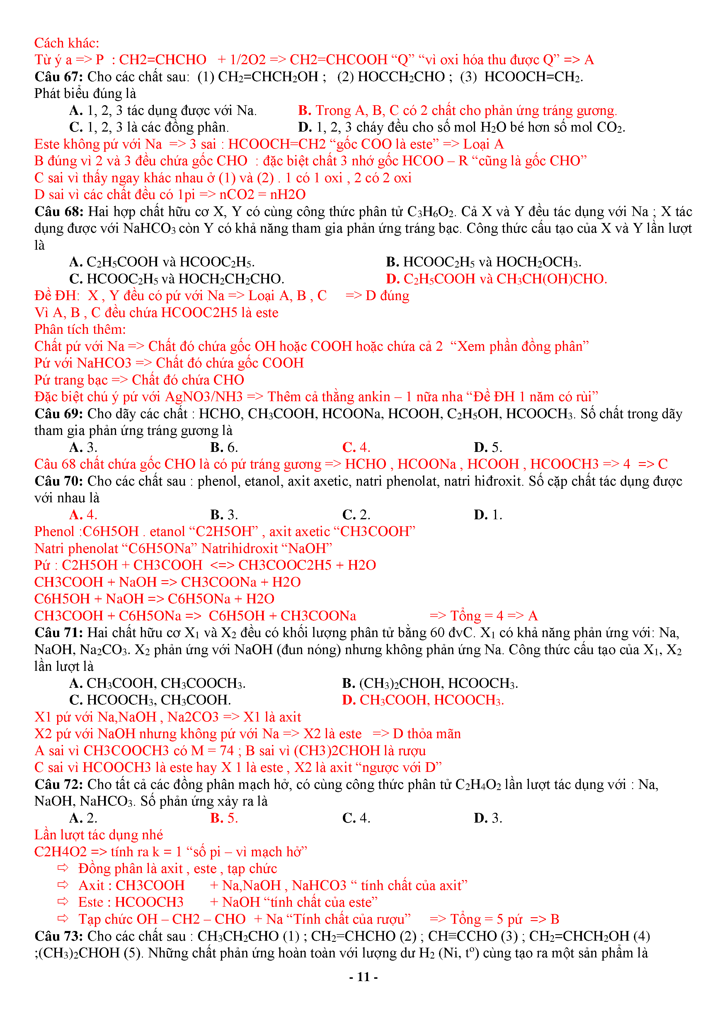 180 câu trắc nghiệm Anđêhit - Axit cacboxylic - có đáp án