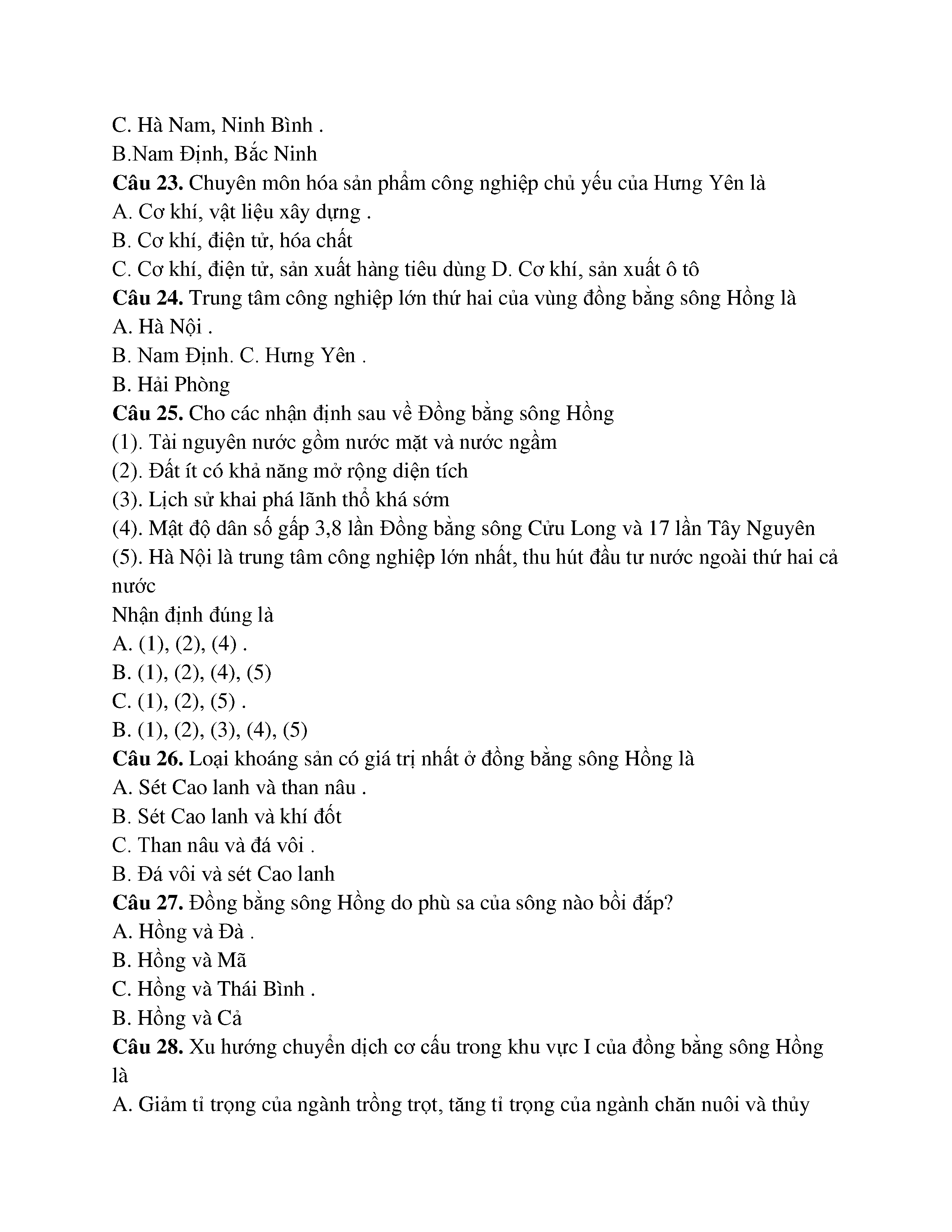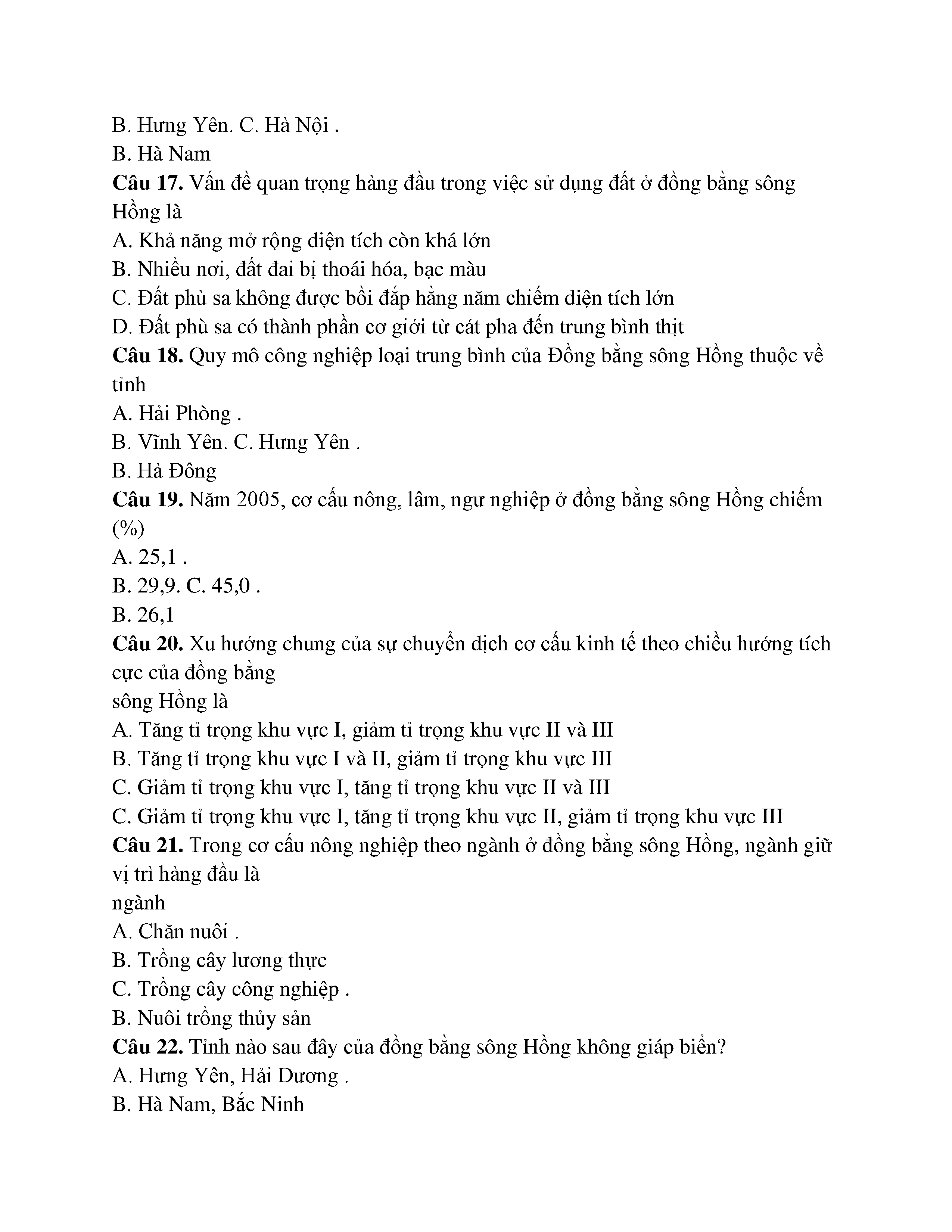 CHUYỂN DỊCH CƠ CẤU KINH TẾ Ở ĐỒNG BẰNG SÔNG HỒNG - ĐỊA LÍ -LỚP 12
