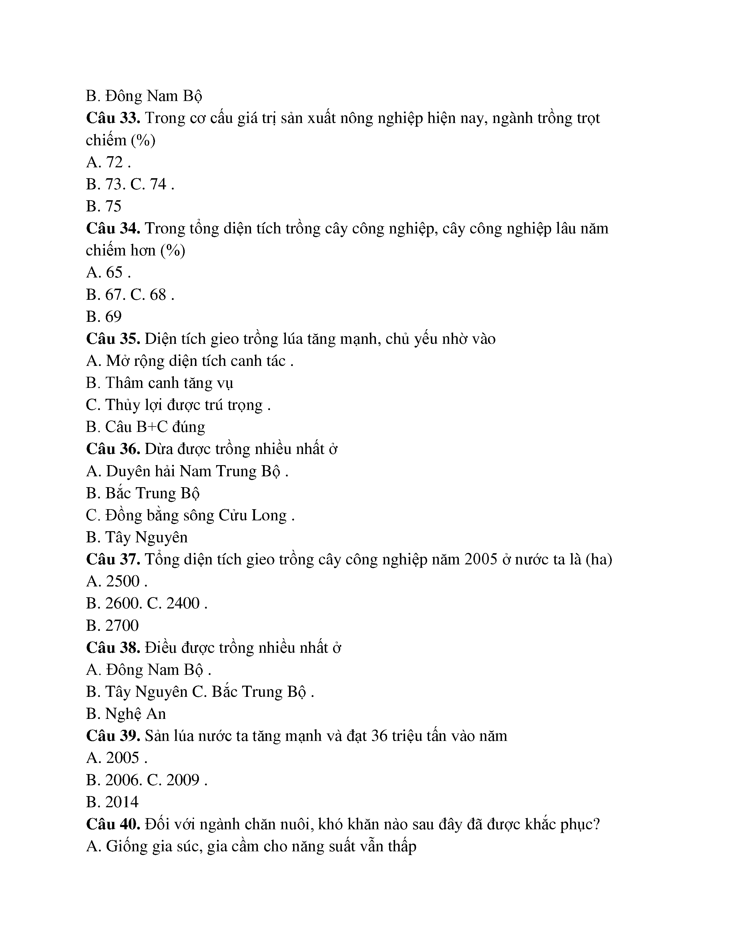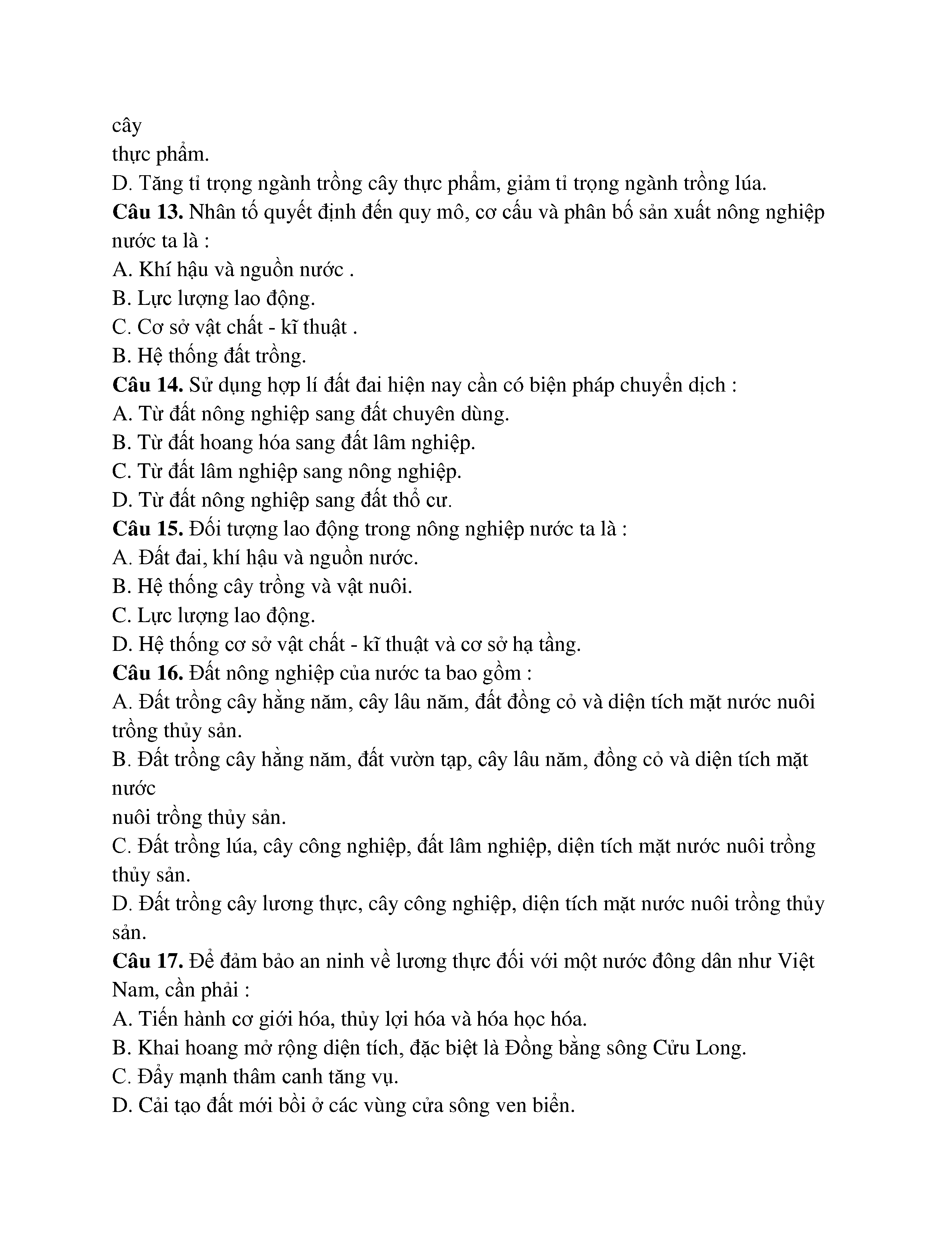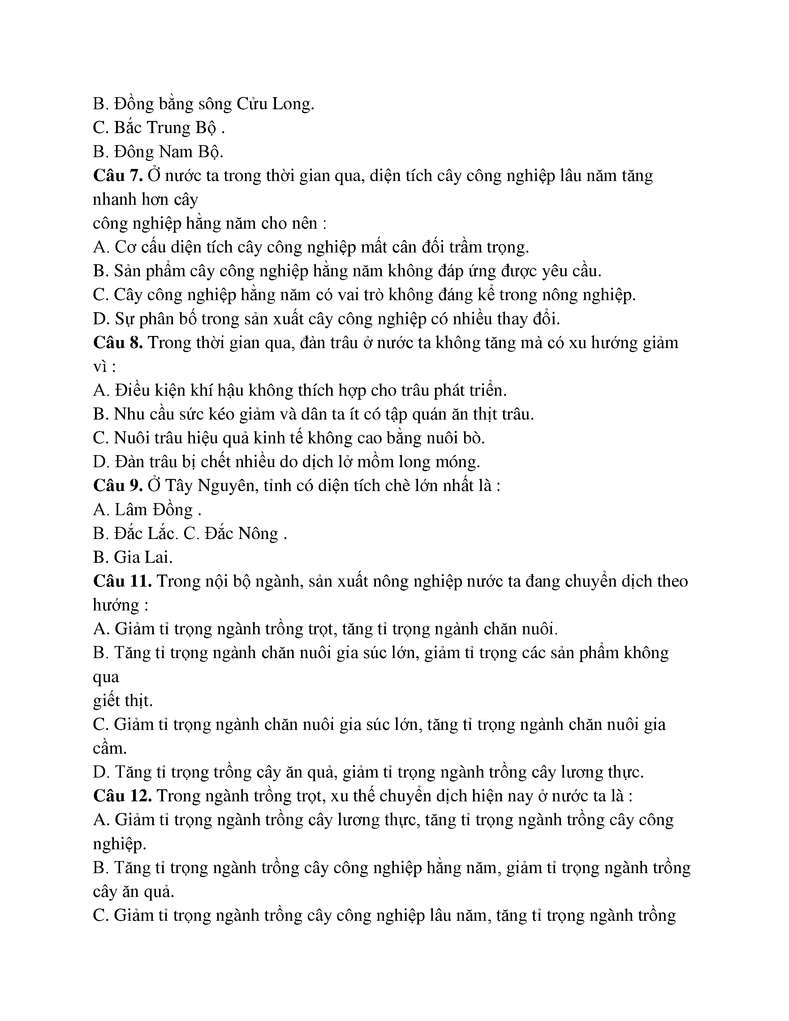 CƠ CẤU NGÀNH NÔNG NGHIỆP - ĐỊA LÍ -LỚP 12