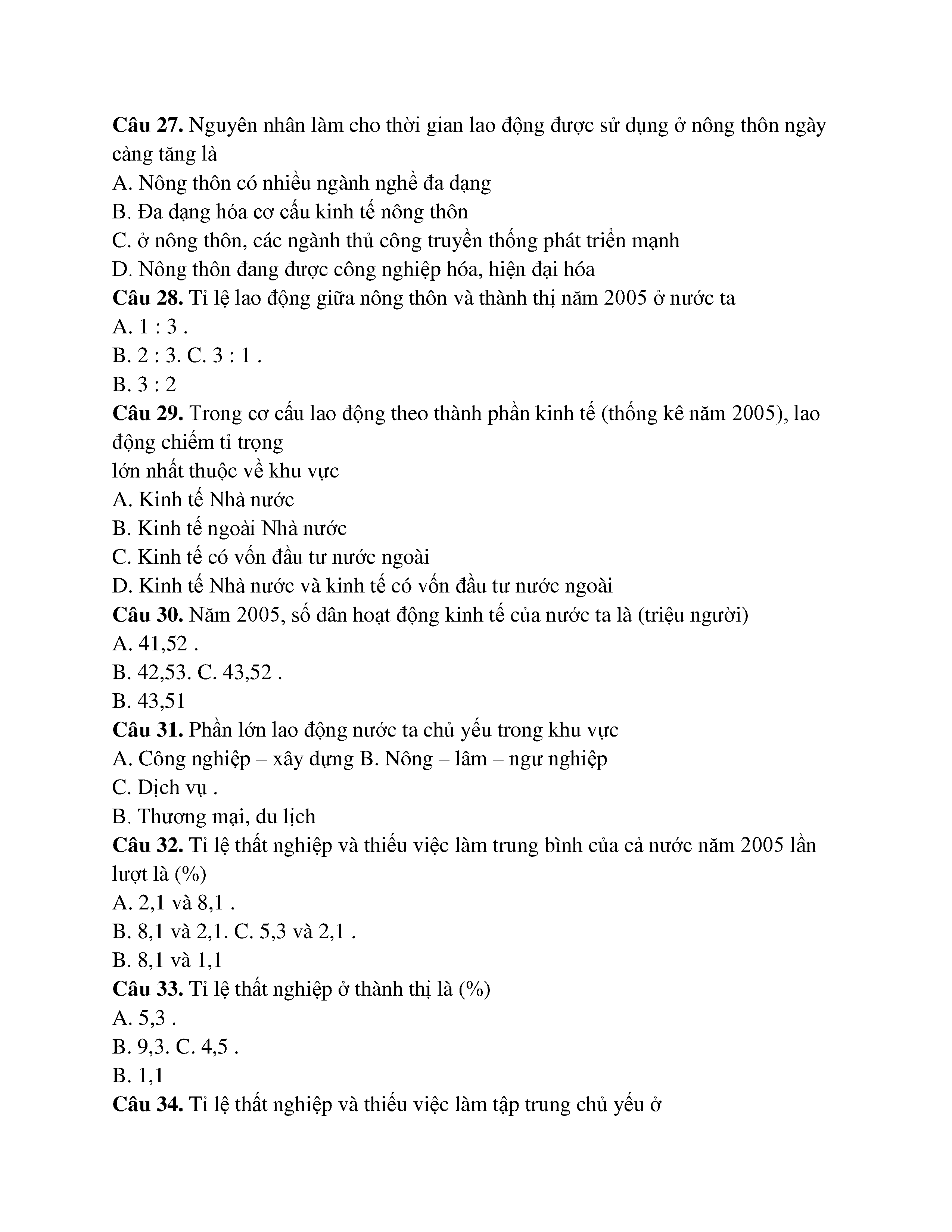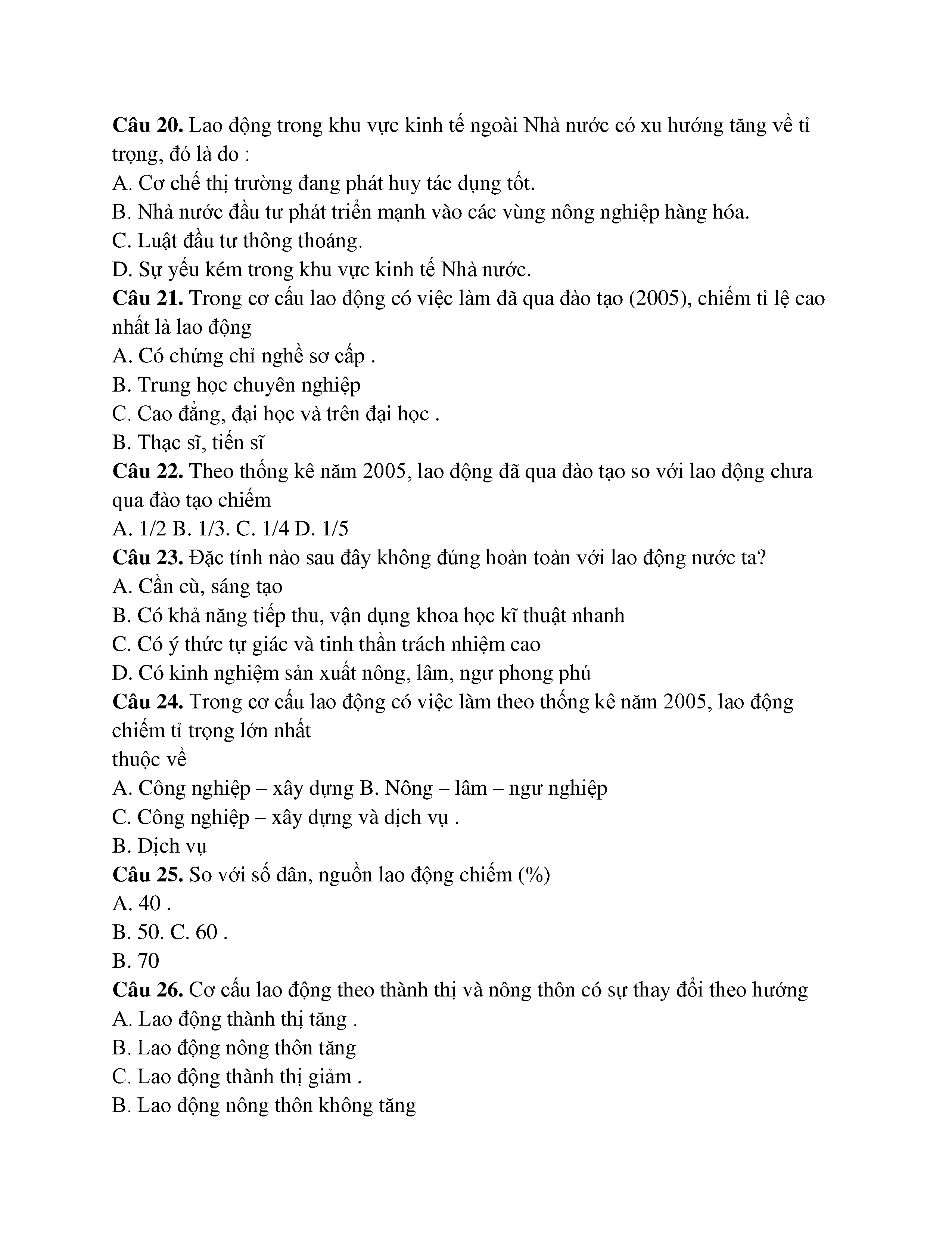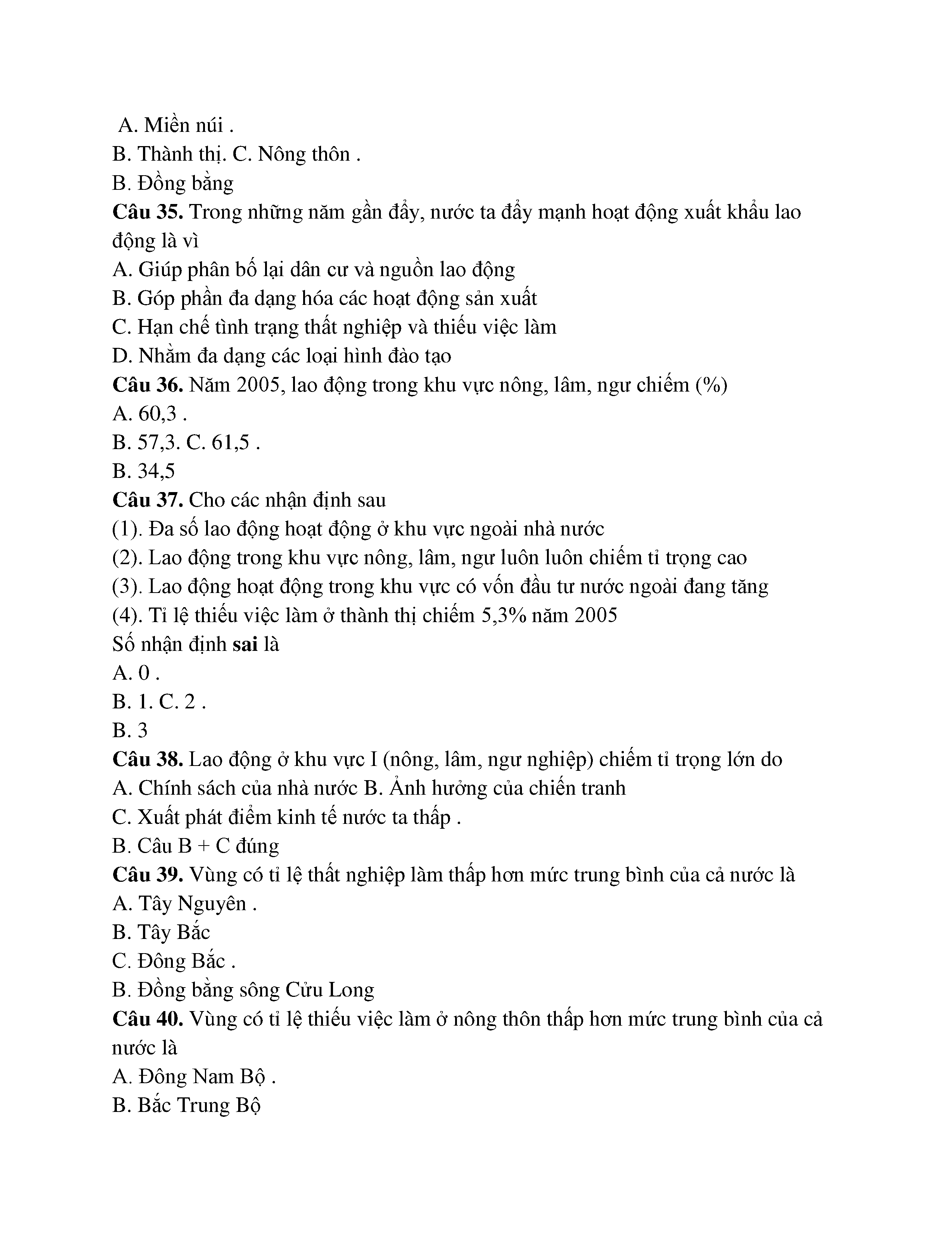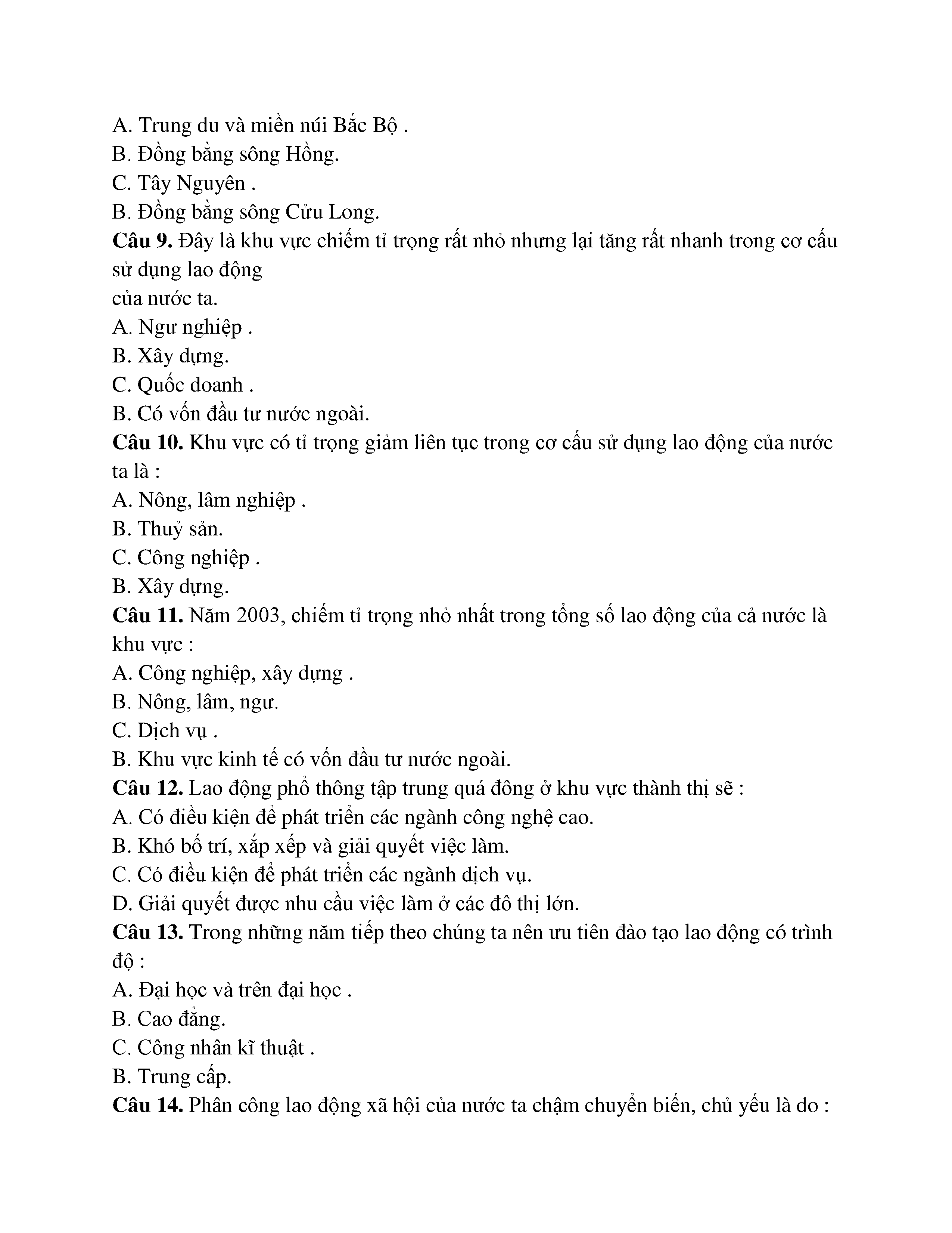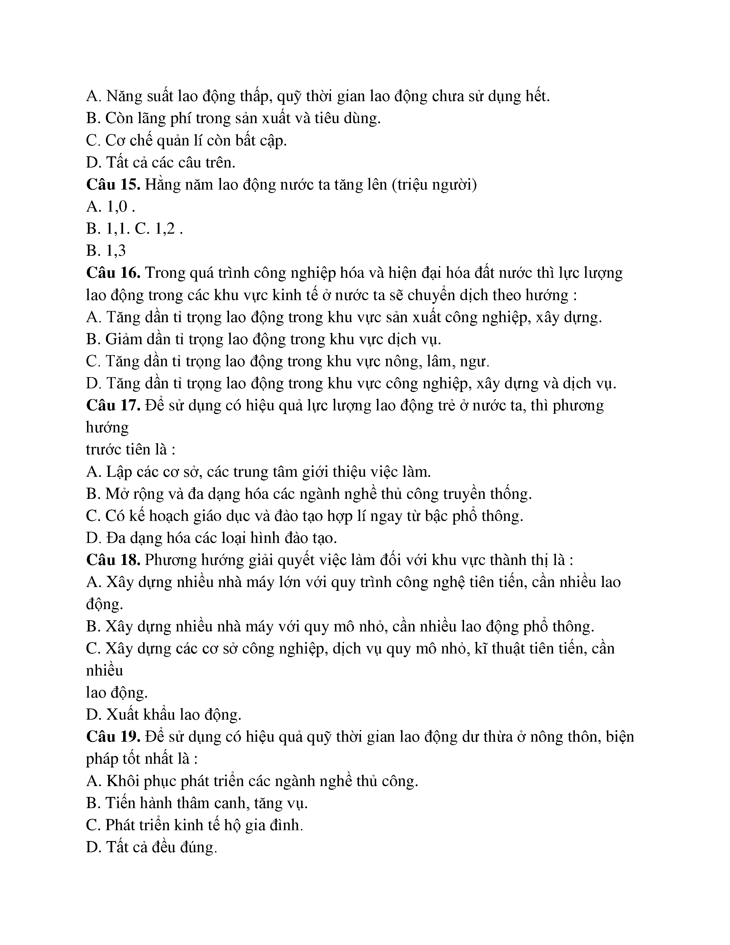 LAO ĐỘNG VÀ VIỆC LÀM - ĐỊA LÍ -LỚP 12