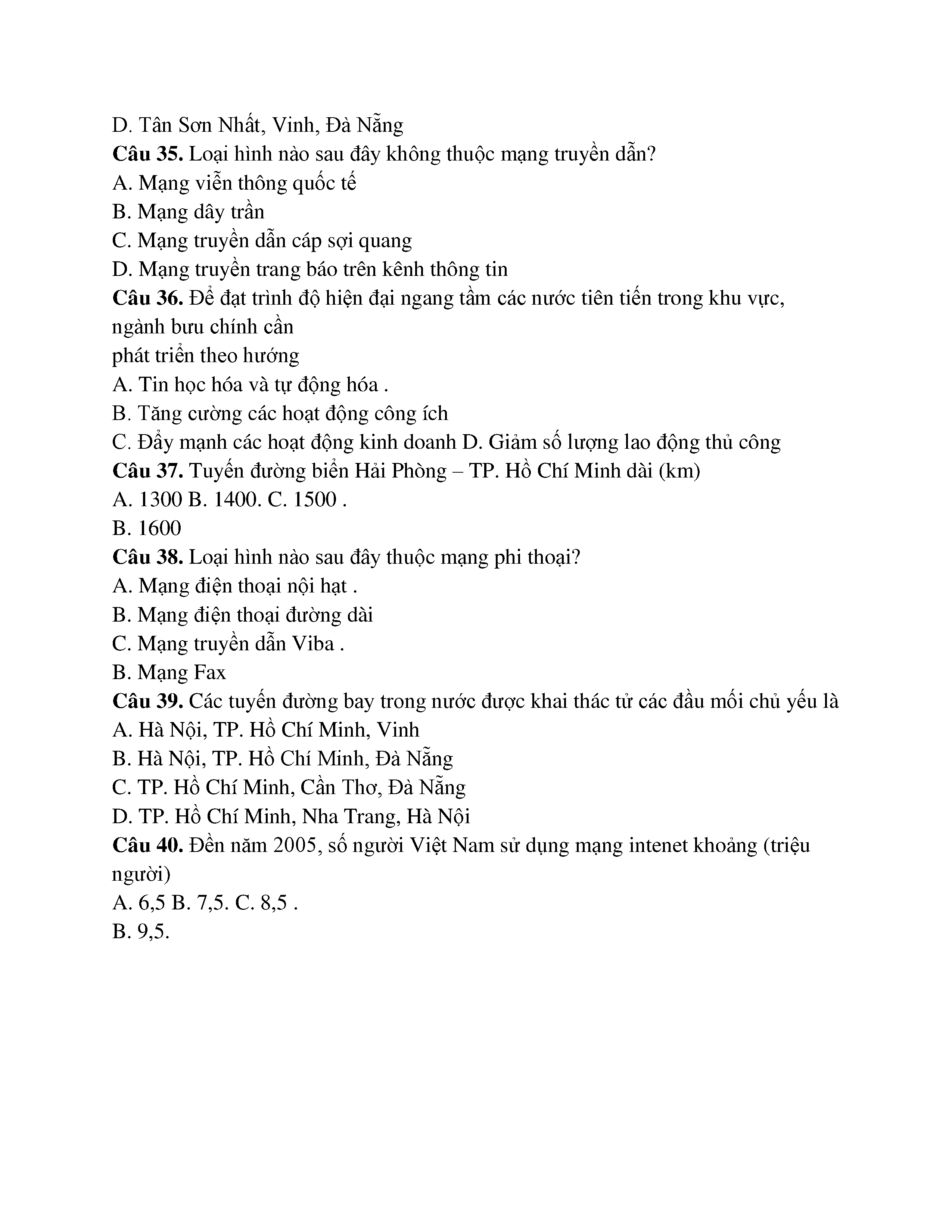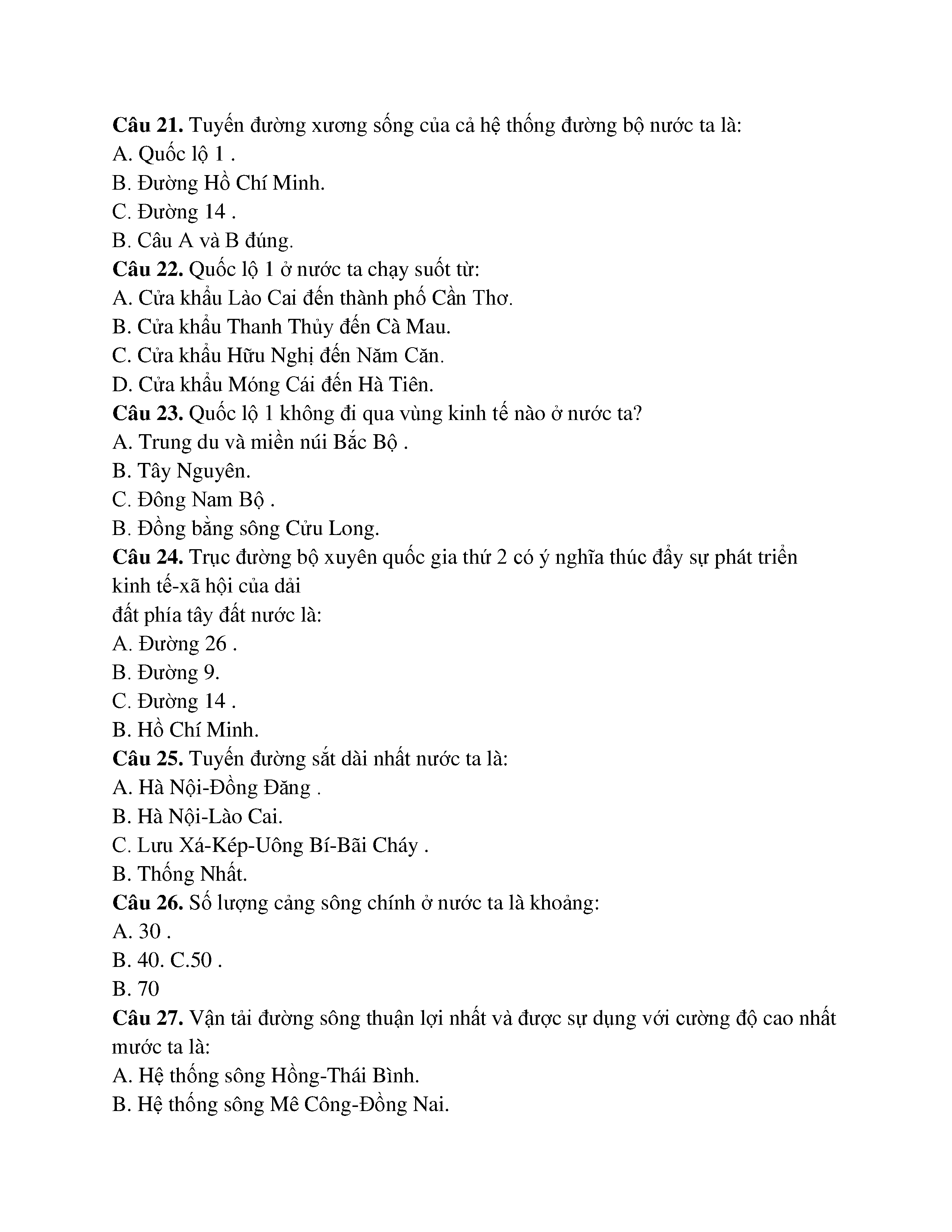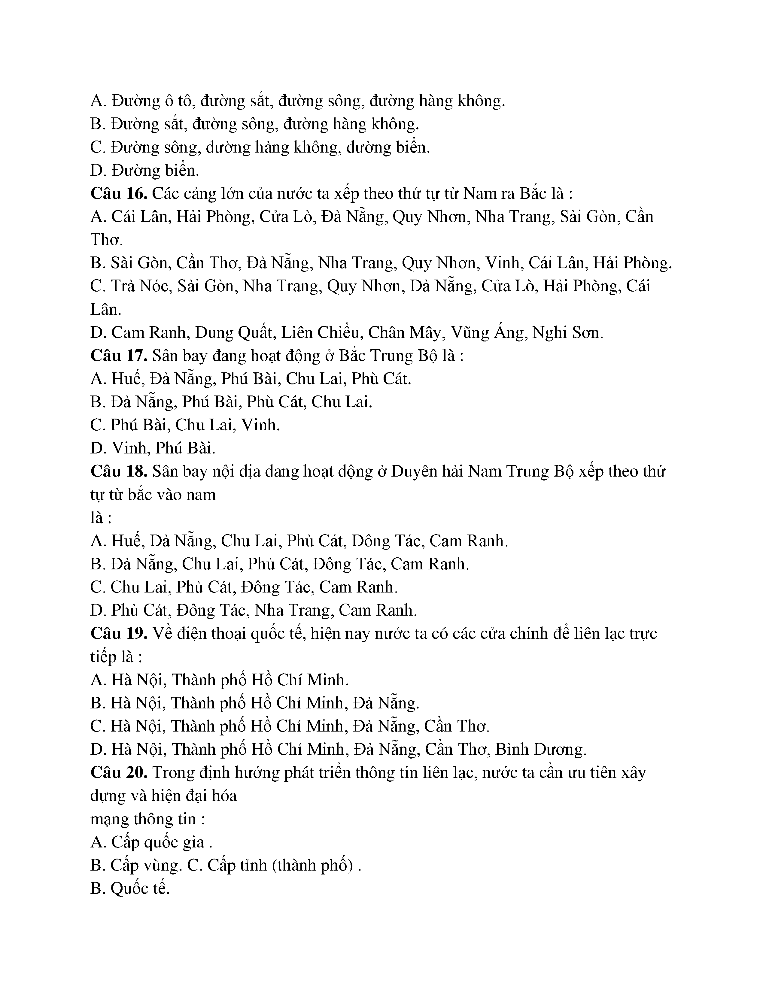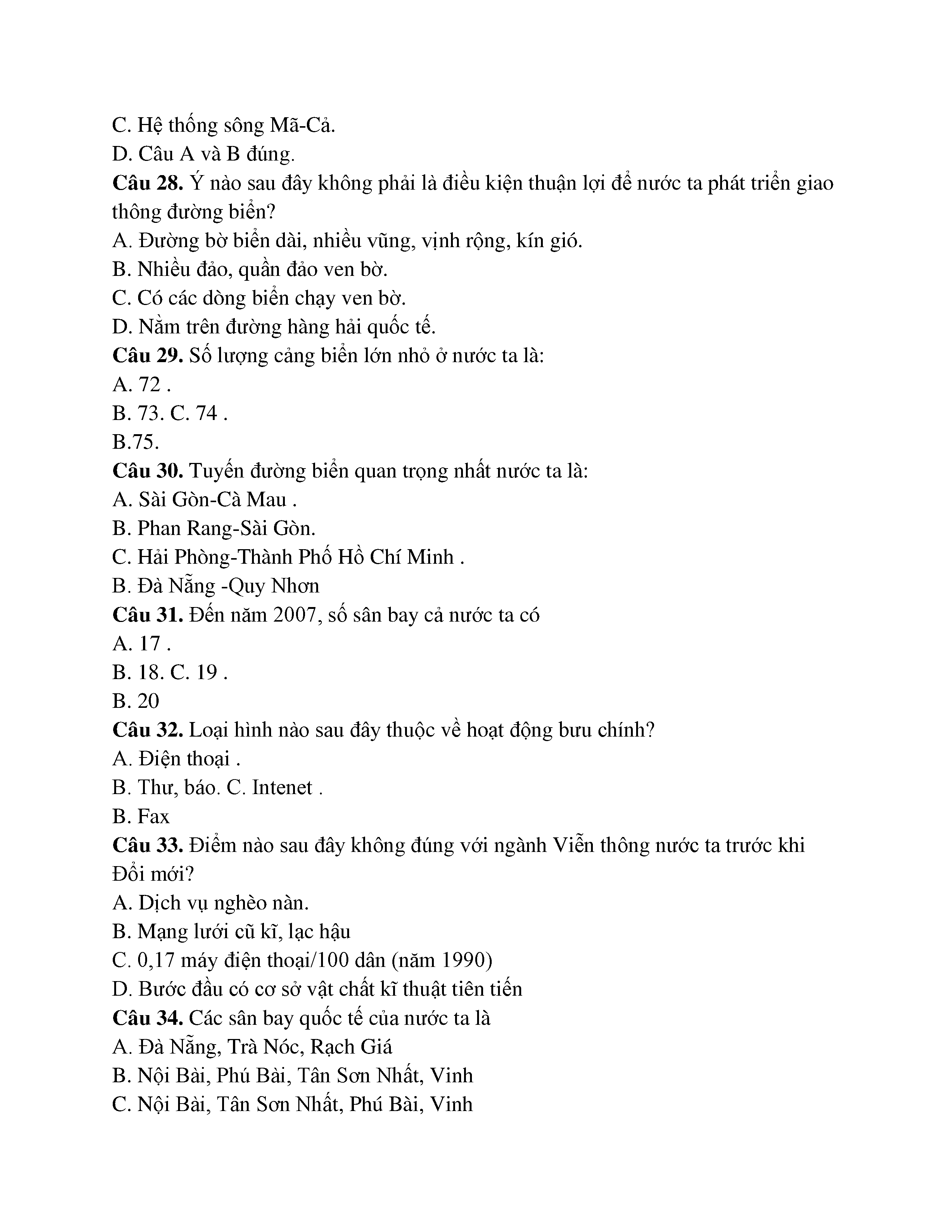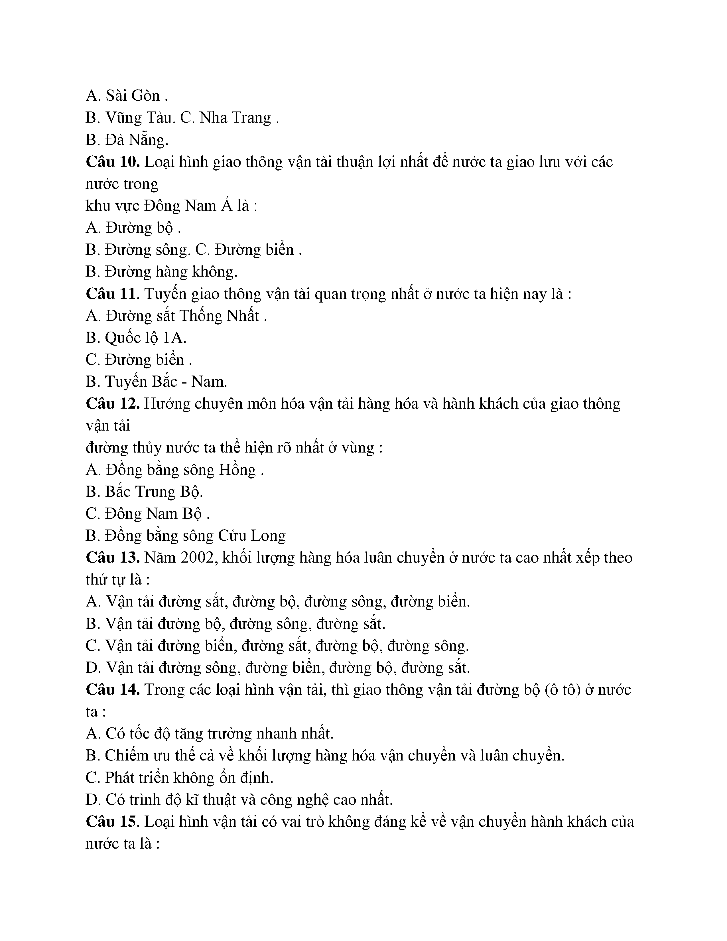 VẤN ĐỀ PHÁT TRIỂN NGÀNH GIAO THÔNG VẬN TẢI VÀ THÔNG TIN LIÊN - ĐỊA LÍ -LỚP 12