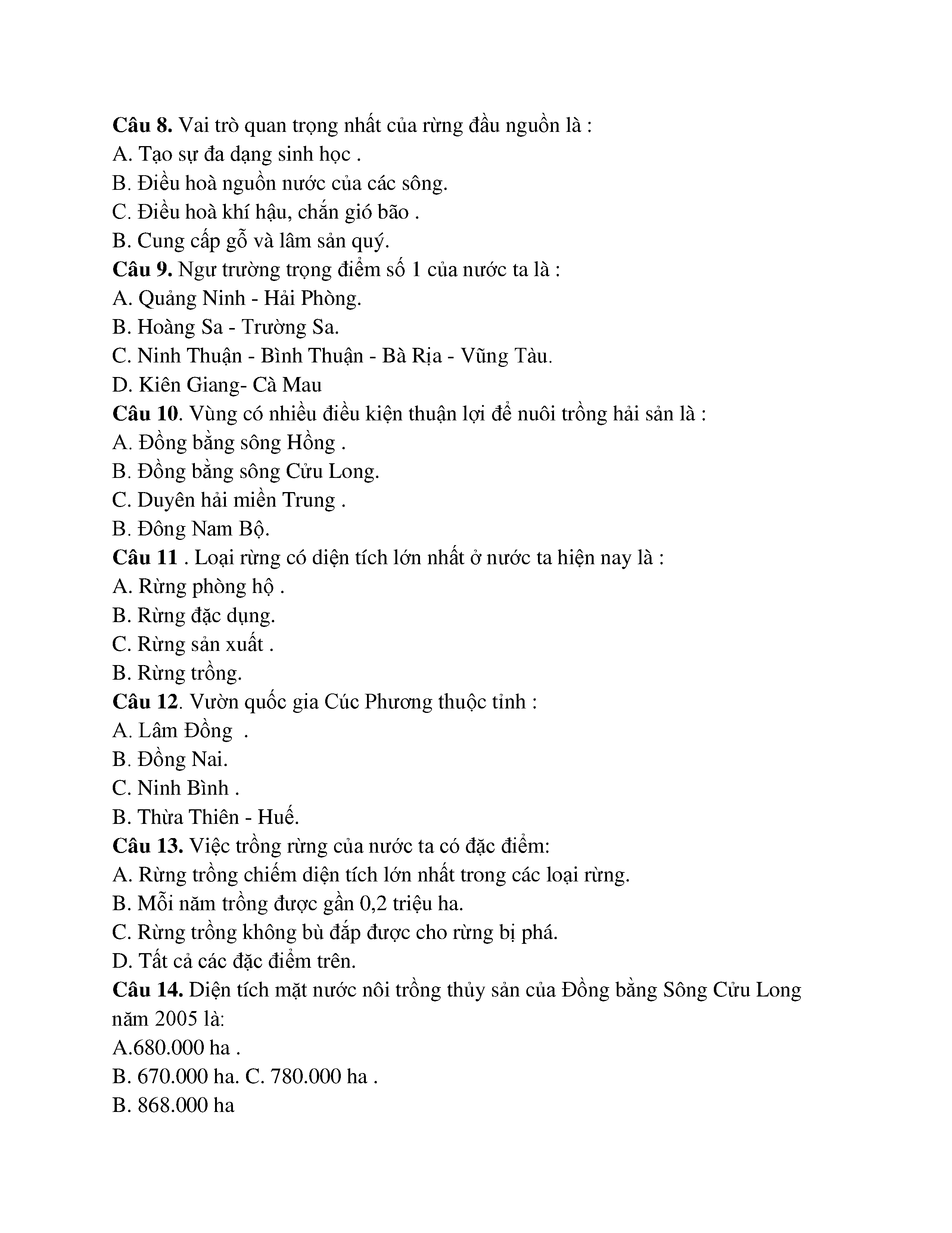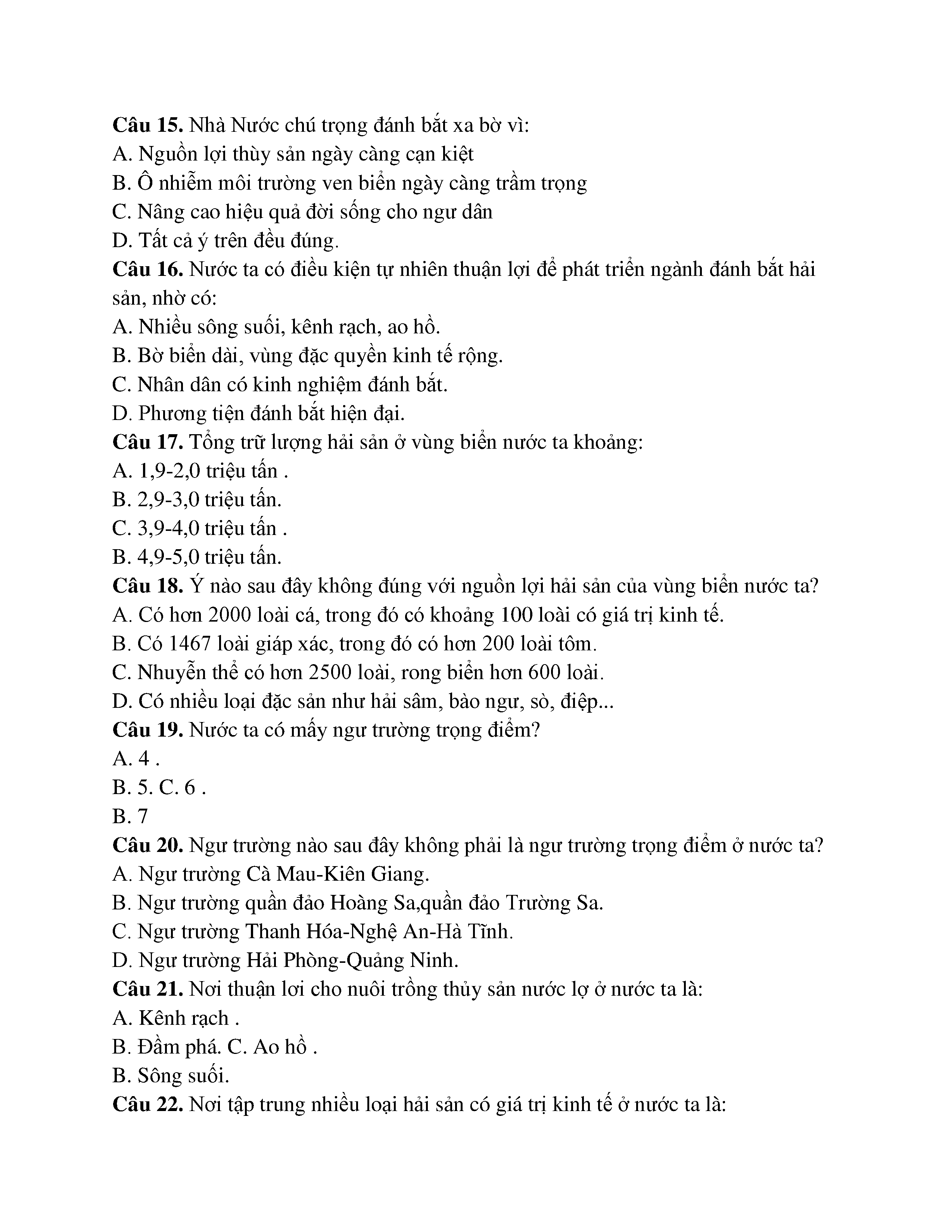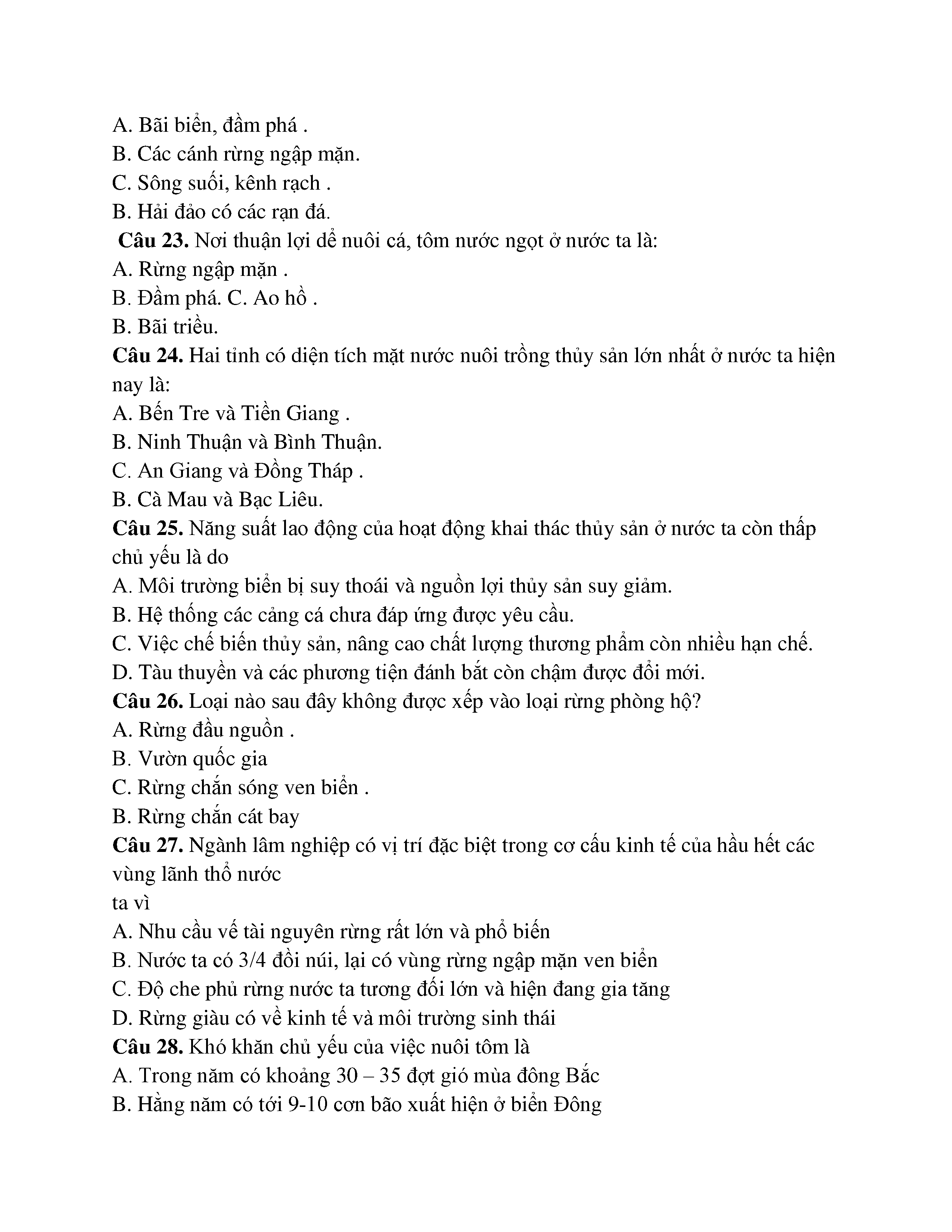 VẤN ĐỀ PHÁT TRIỂN THỦY SẢN VÀ LÂM NGHIỆP - ĐỊA LÍ -LỚP 12