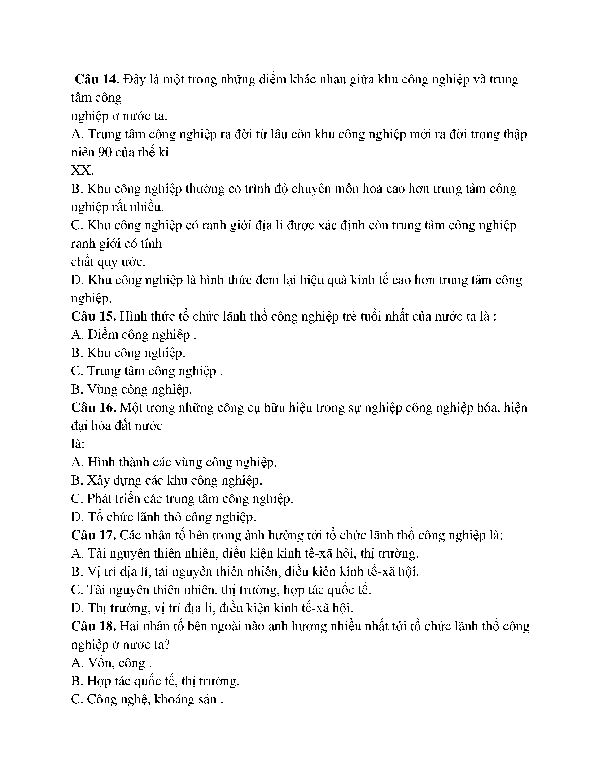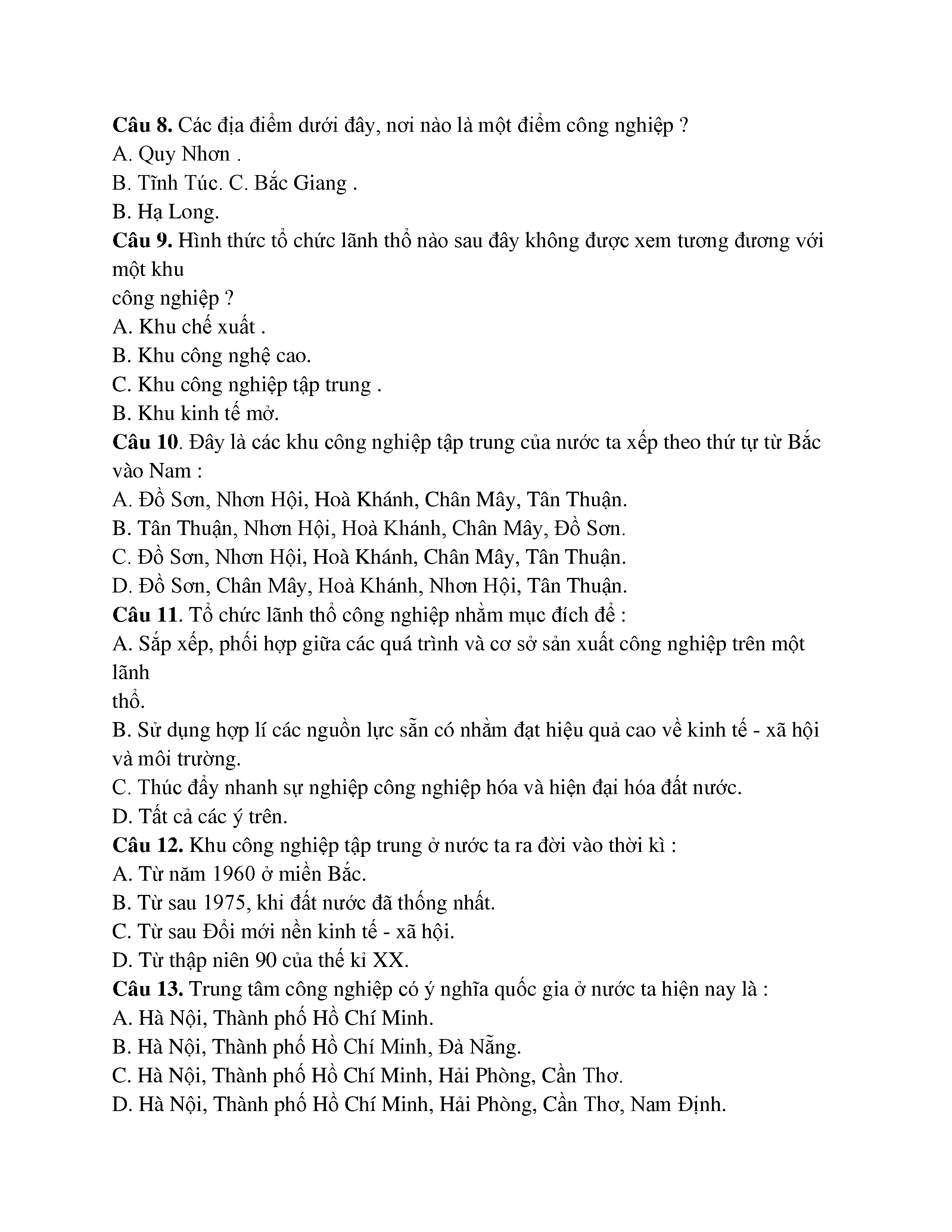 VẤN ĐỀ TỔ CHỨC LÃNH THỔ CÔNG NGHIỆP - ĐỊA LÍ -LỚP 12