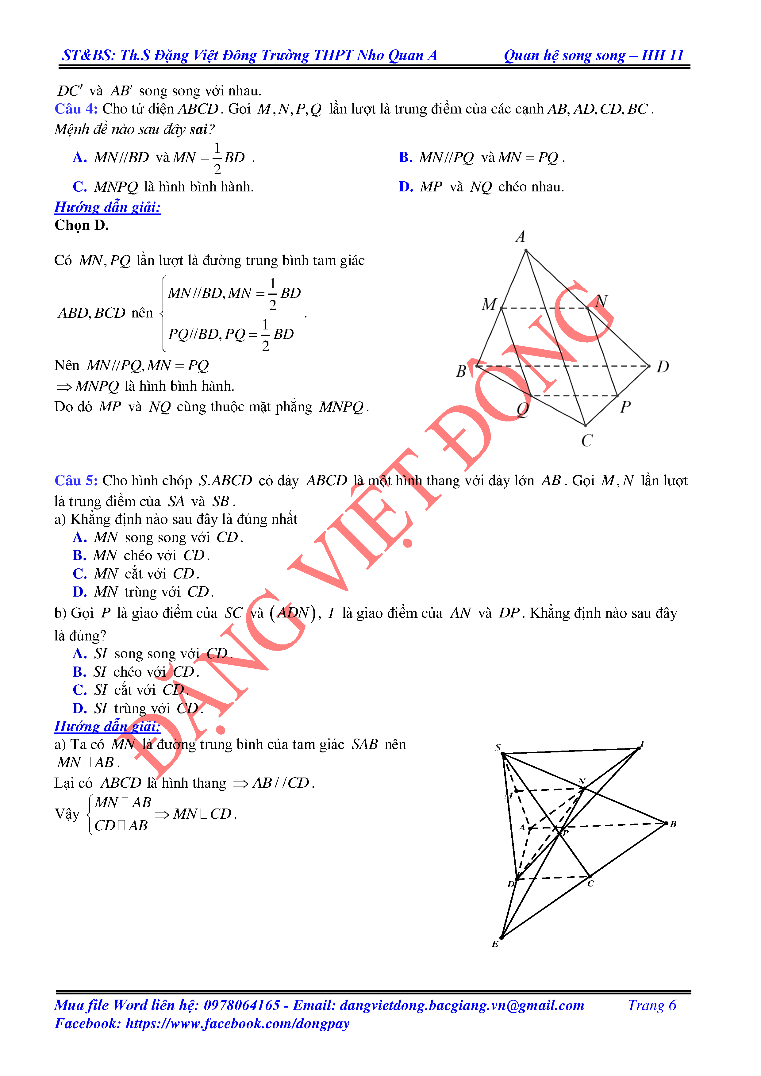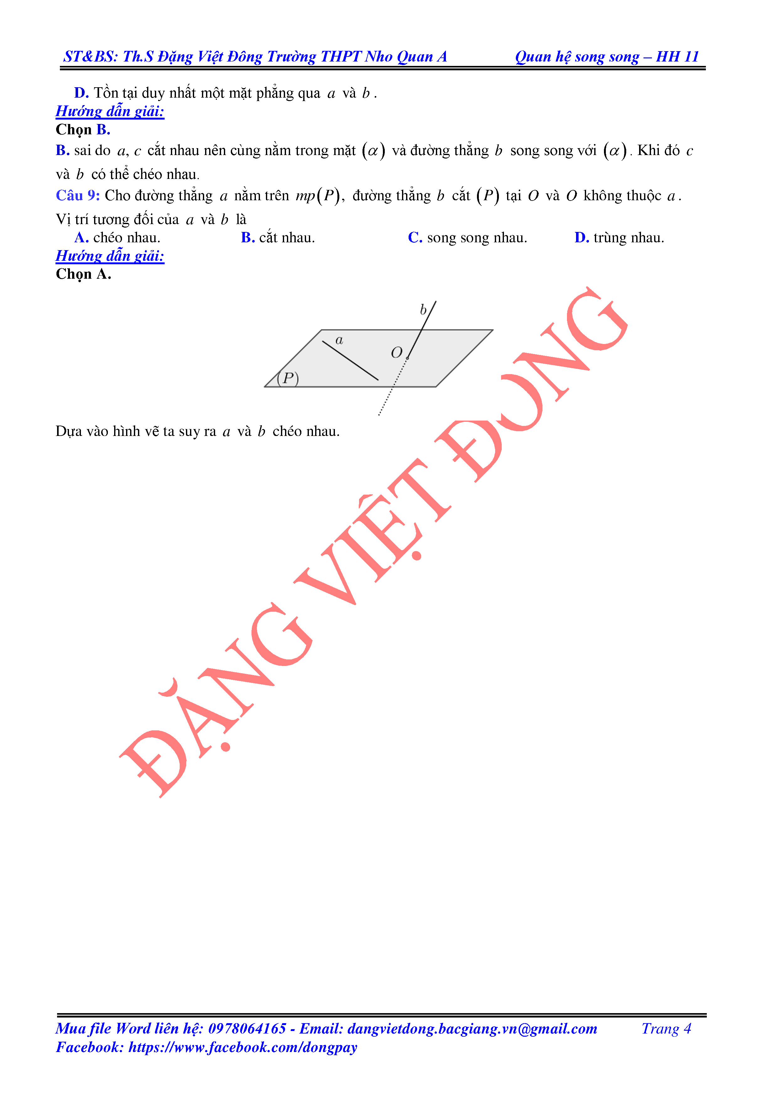 HAI ĐƯỜNG THẲNG CHÉO NHAU VÀ HAI ĐƯỜNG THẲNG SONG SONG