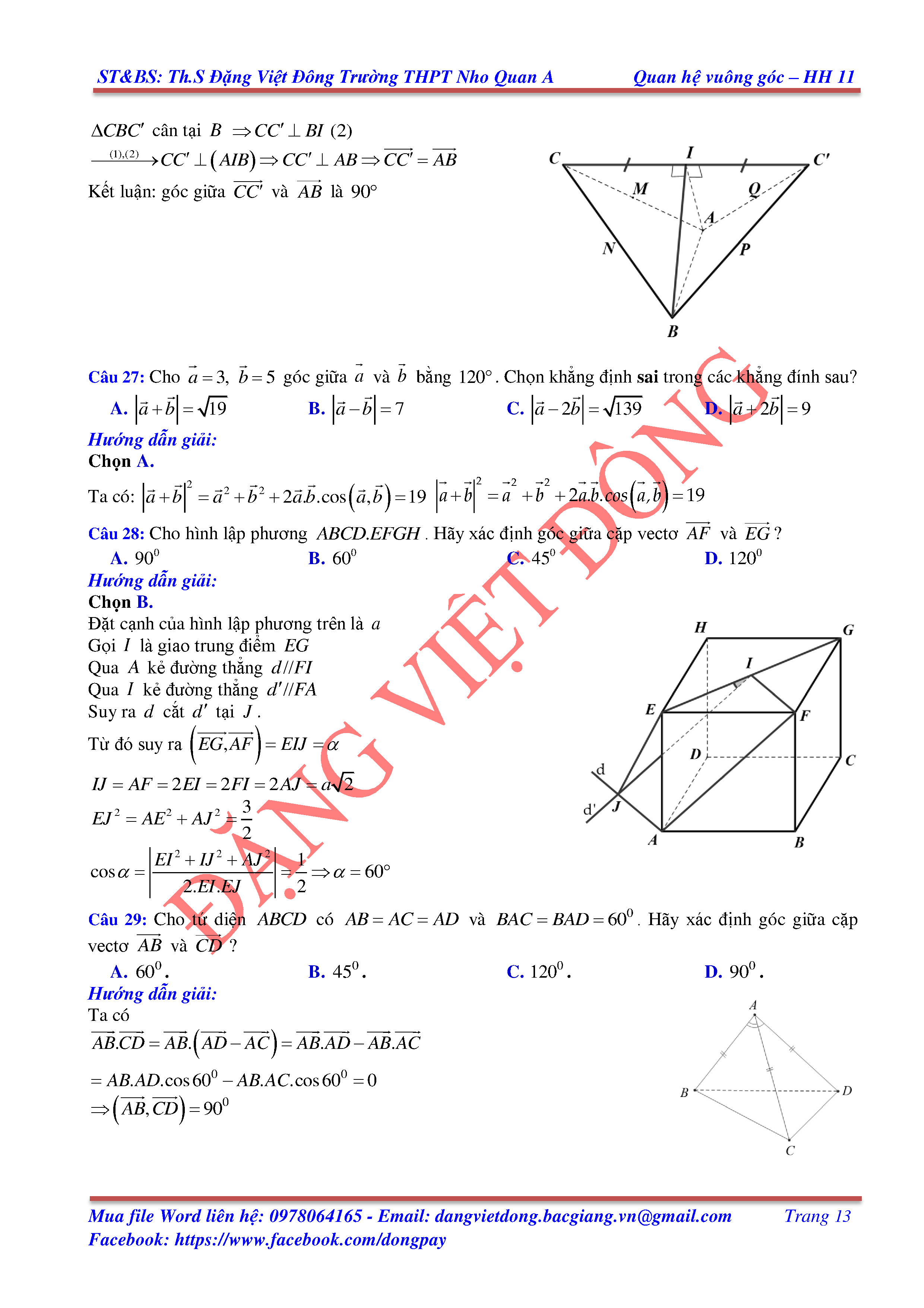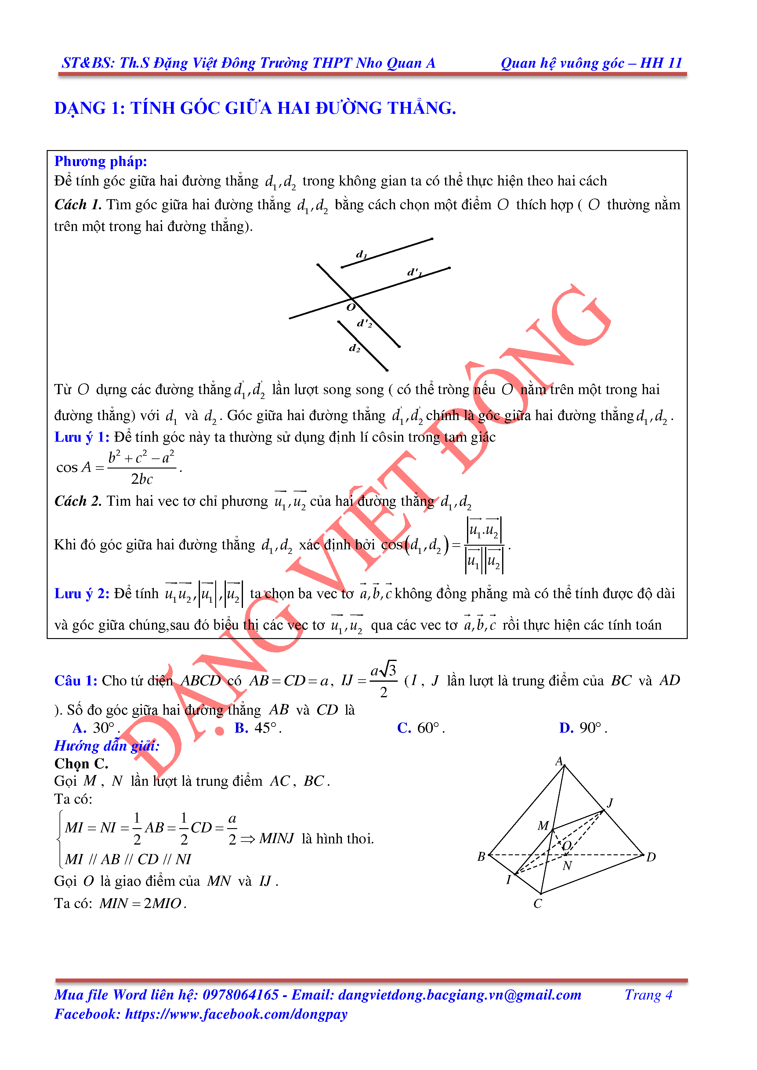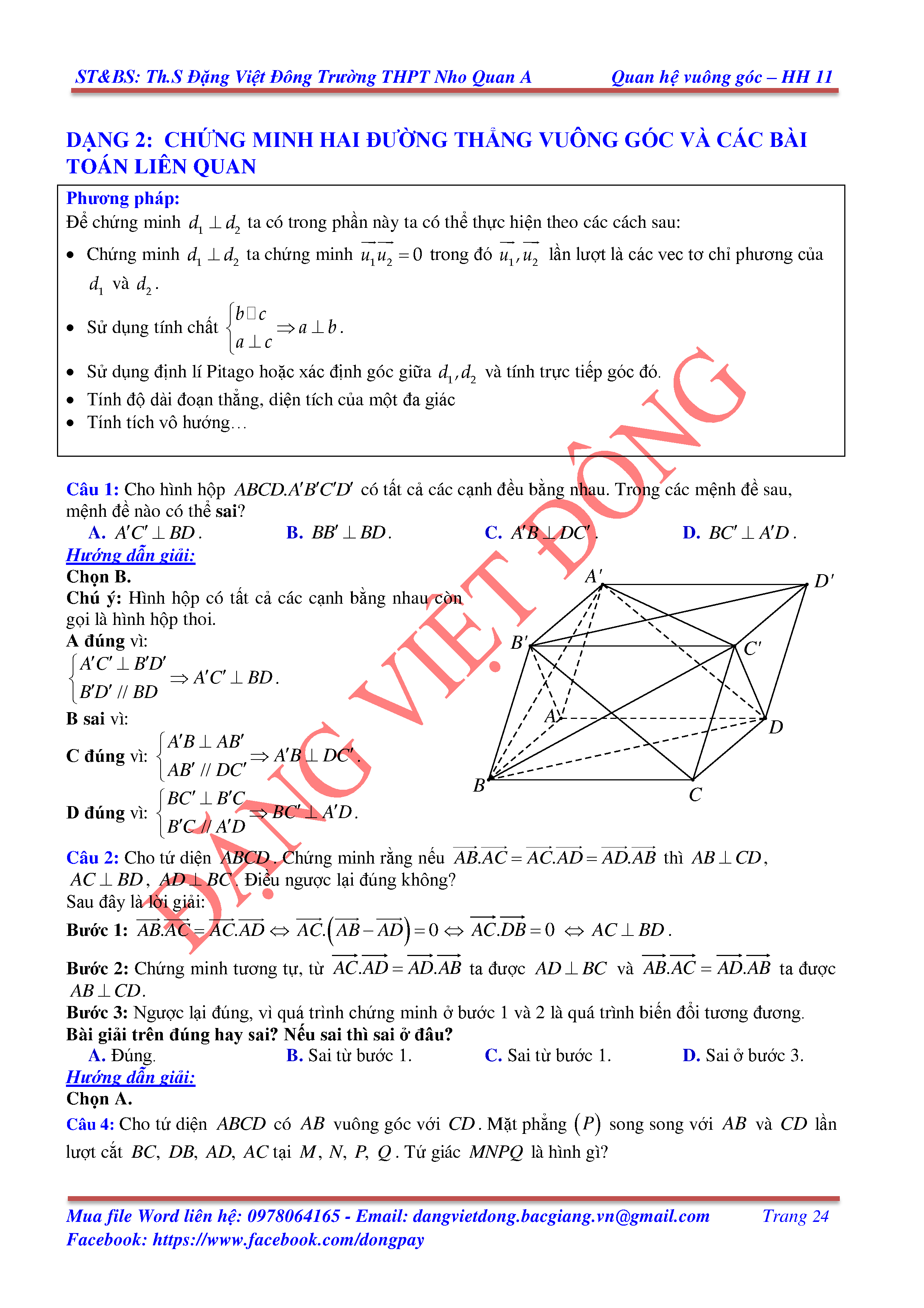 HAI ĐƯỜNG THẲNG VUÔNG GÓC