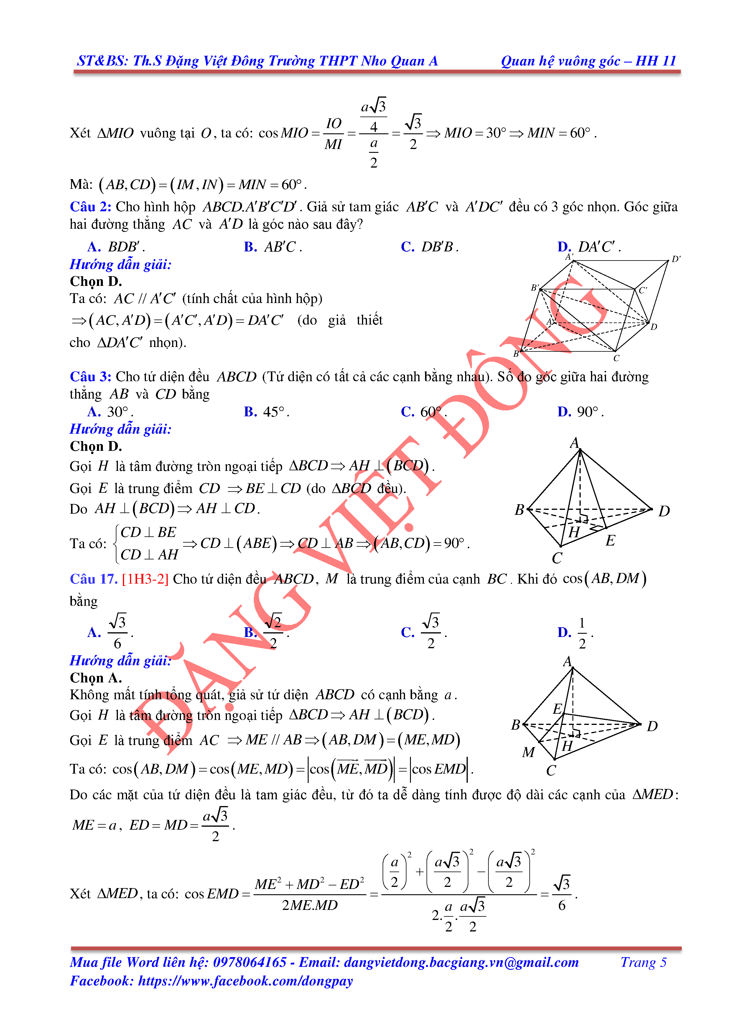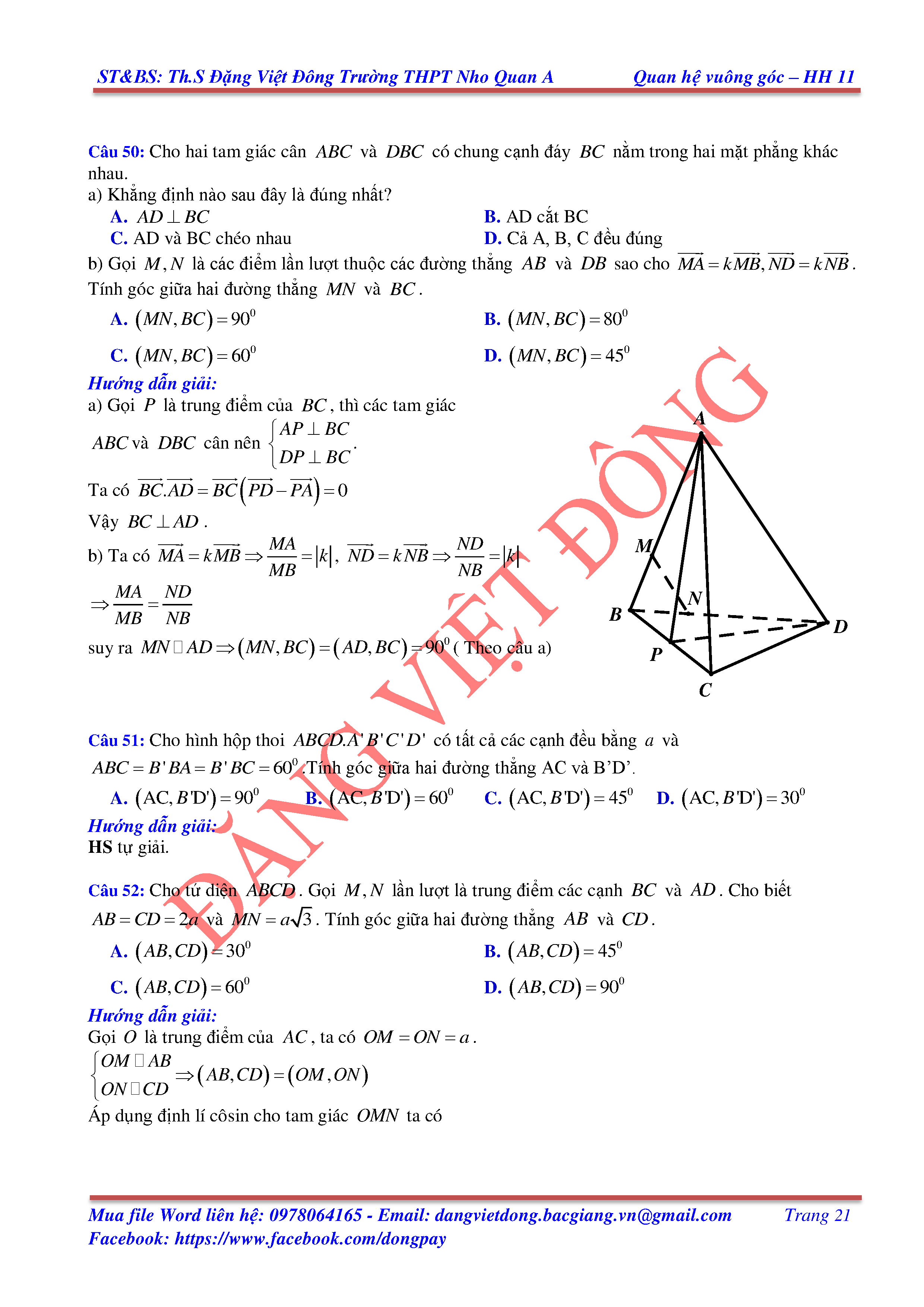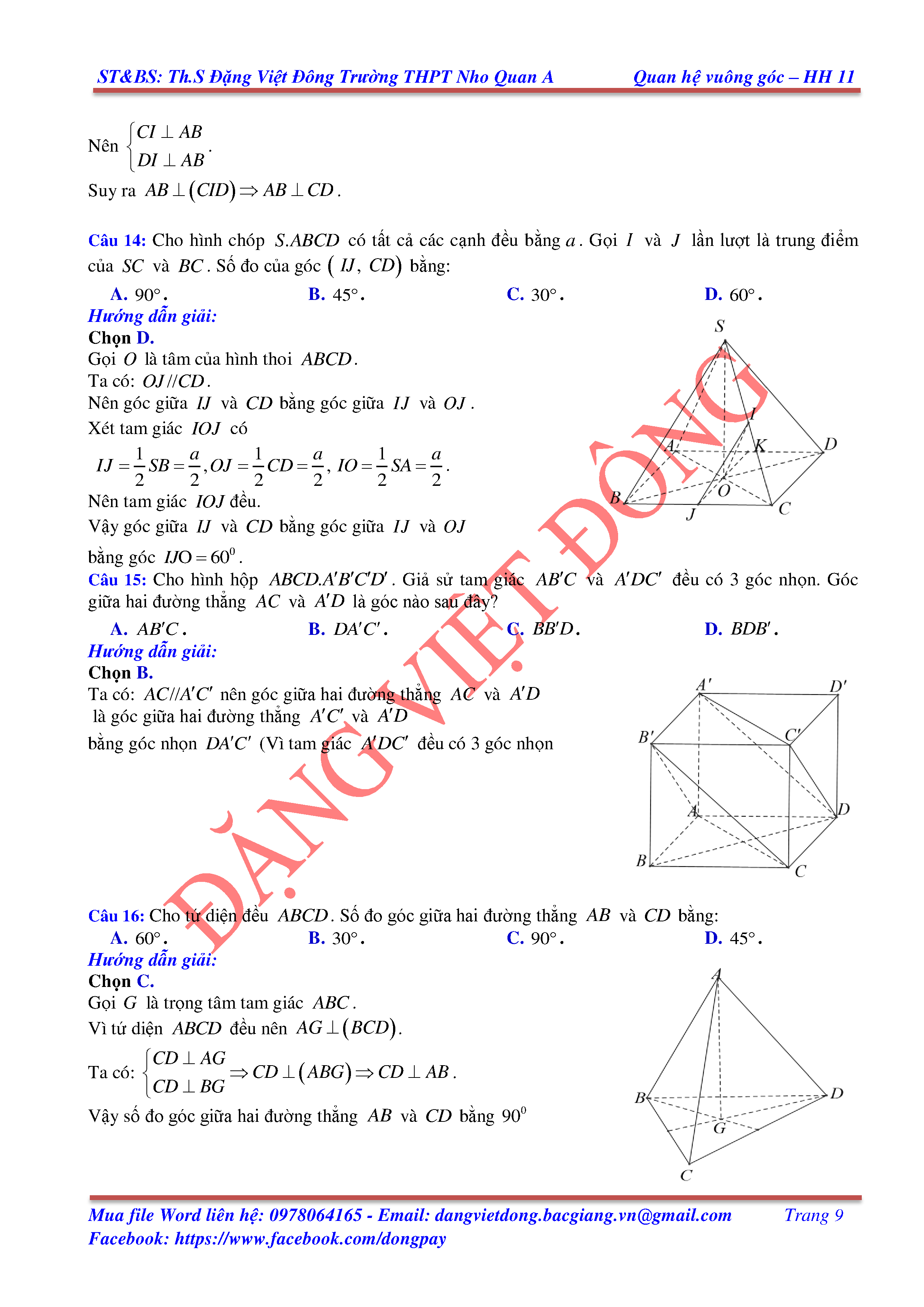 HAI ĐƯỜNG THẲNG VUÔNG GÓC