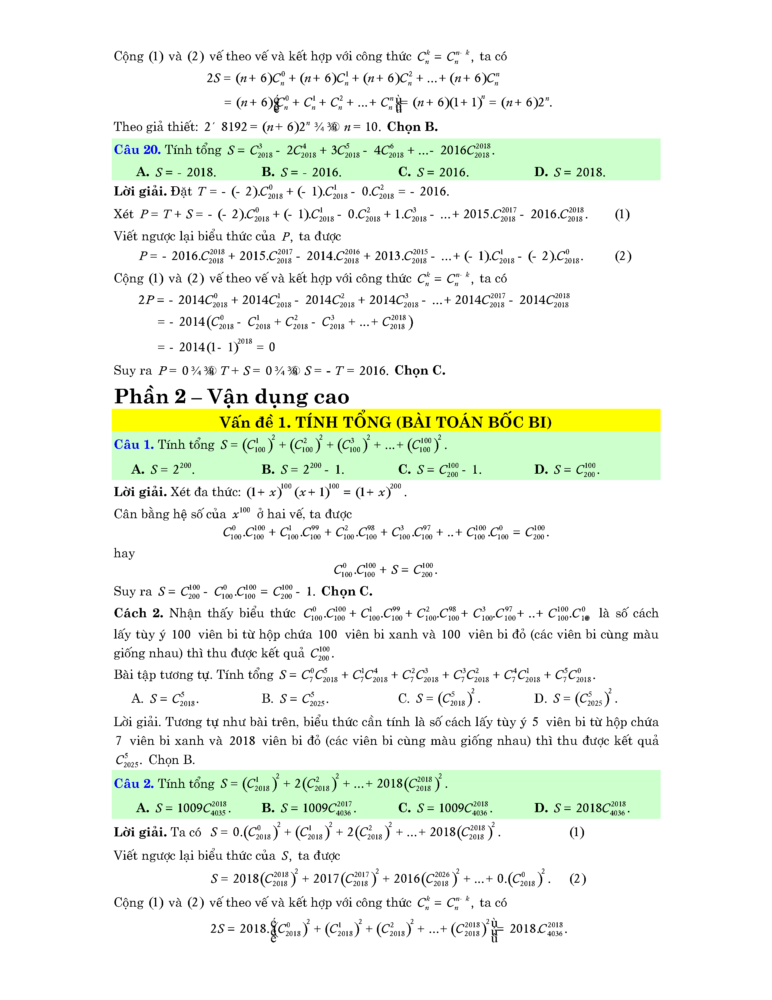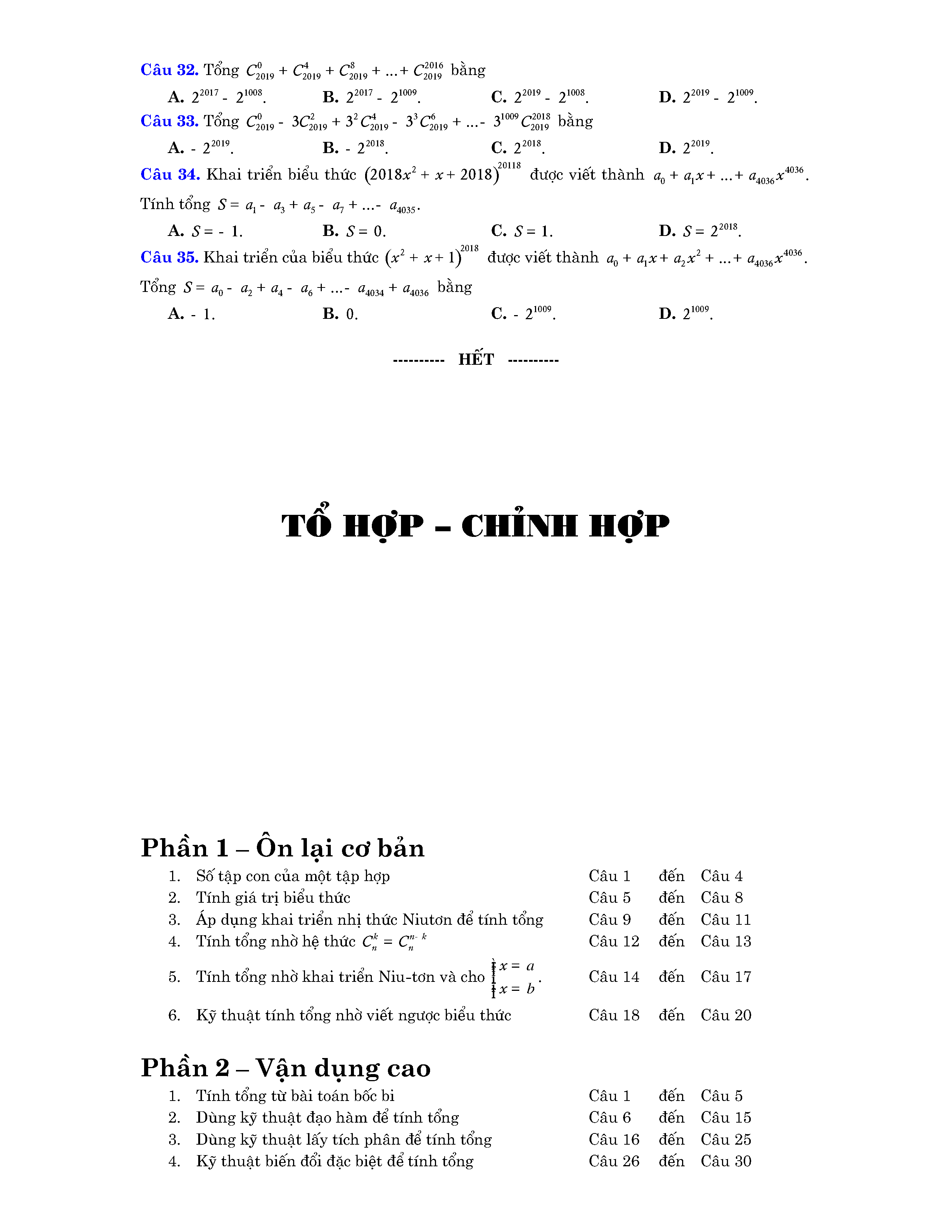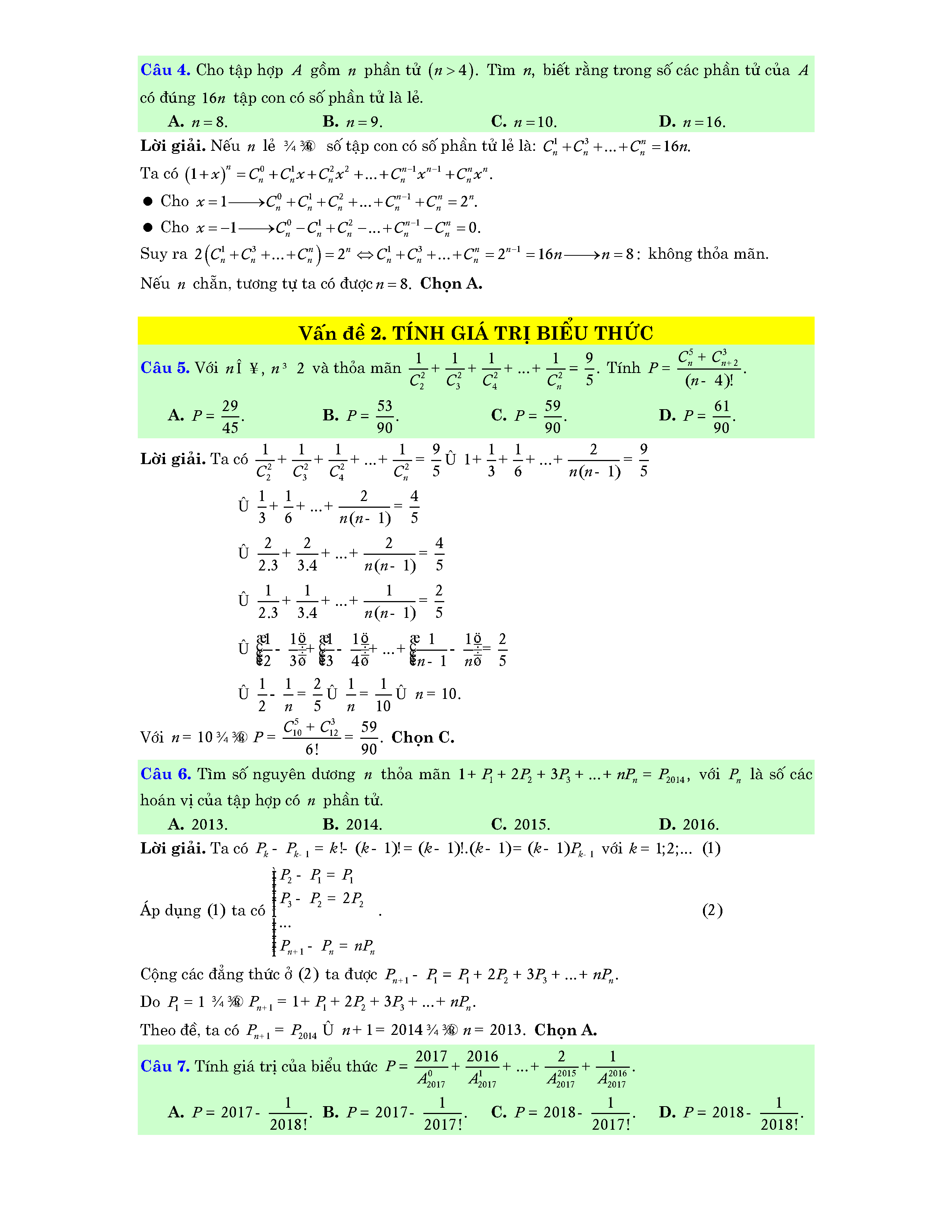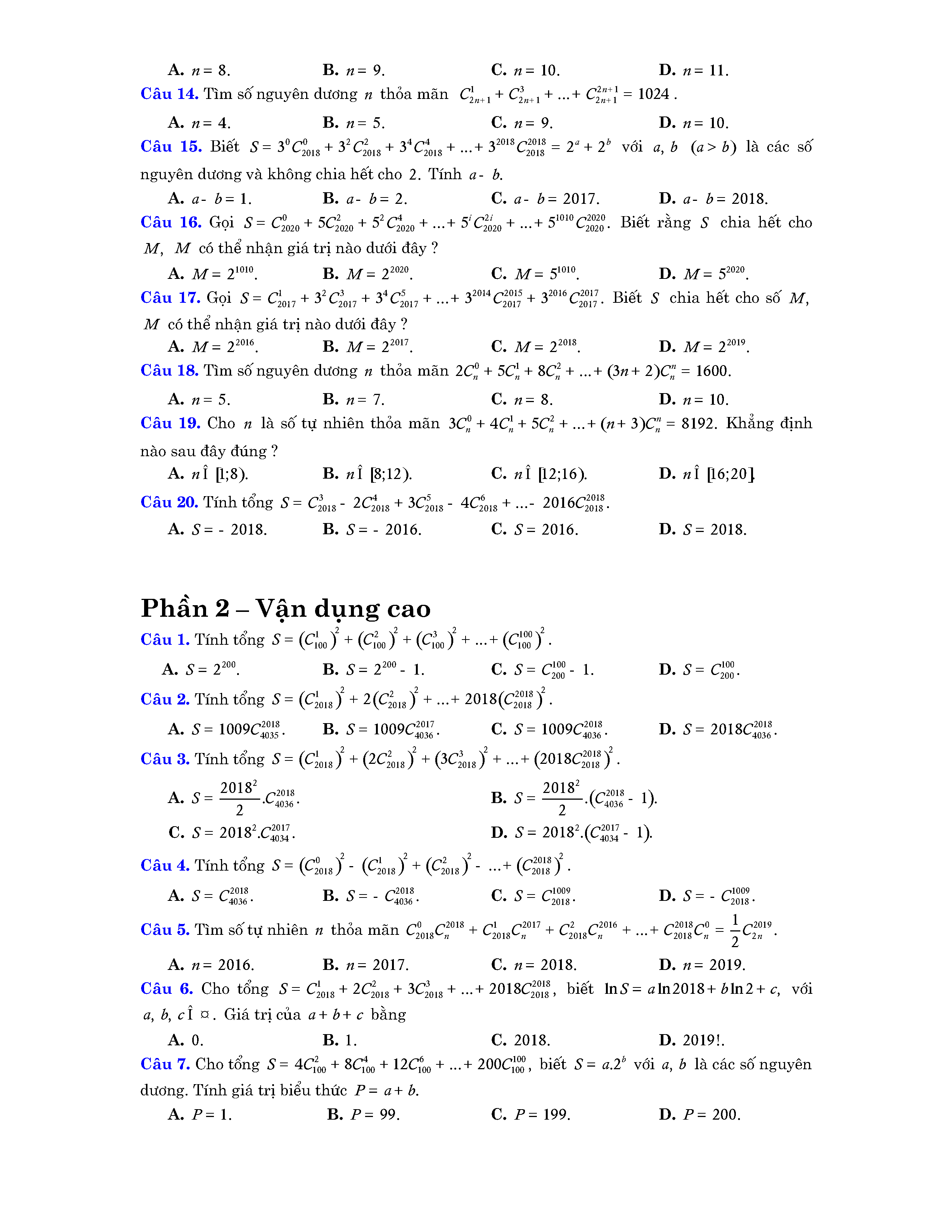 55 bài tập vận dụng cao về Tổ hợp - Chỉnh hợp