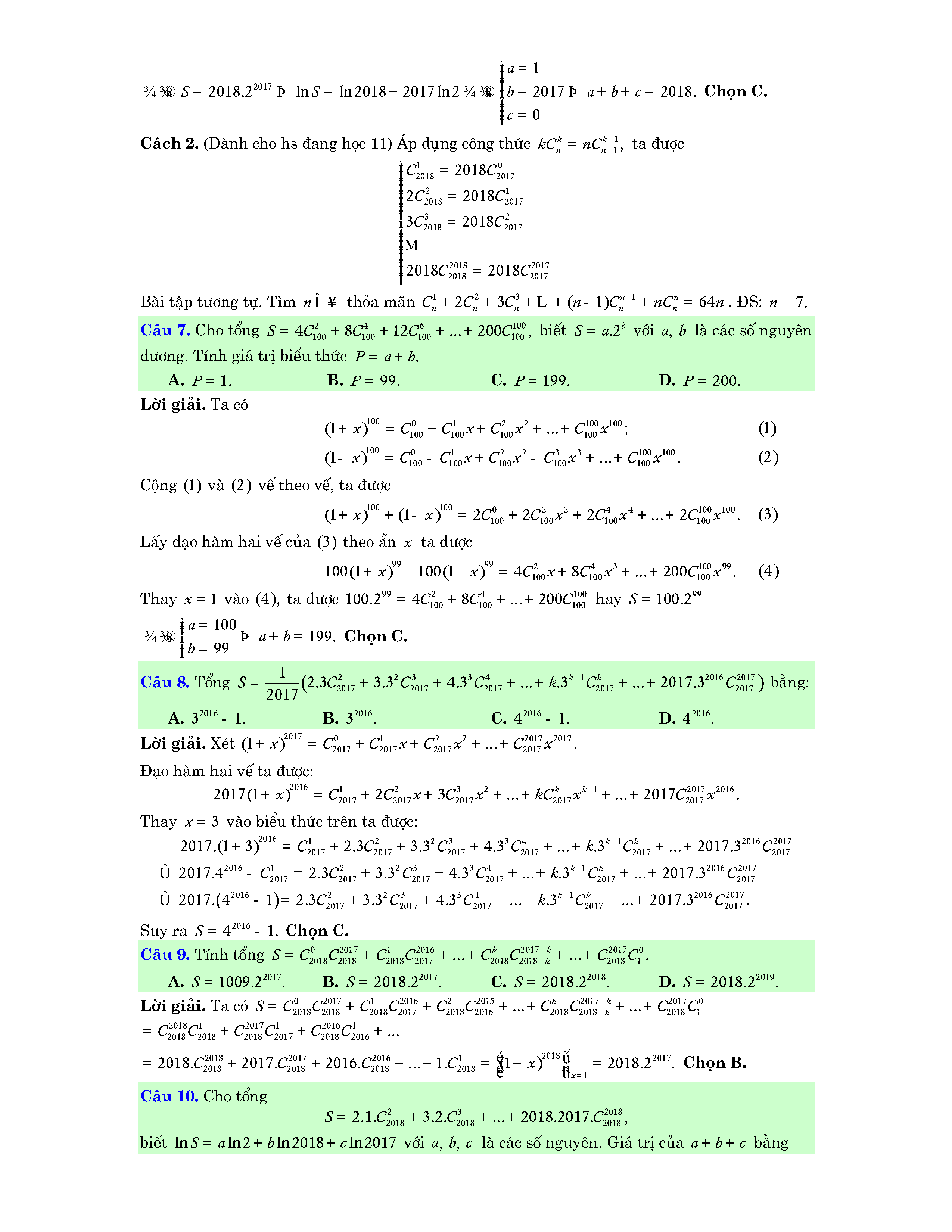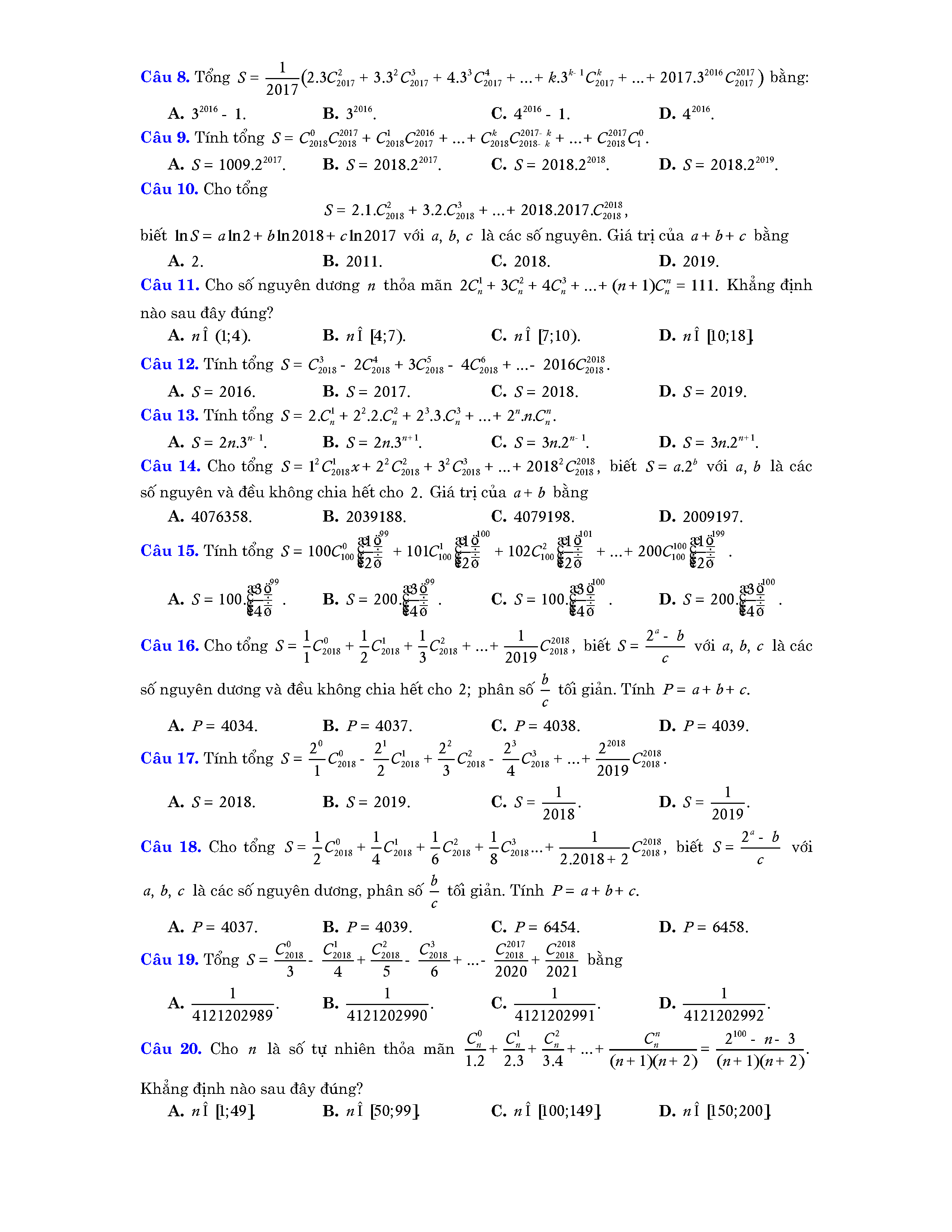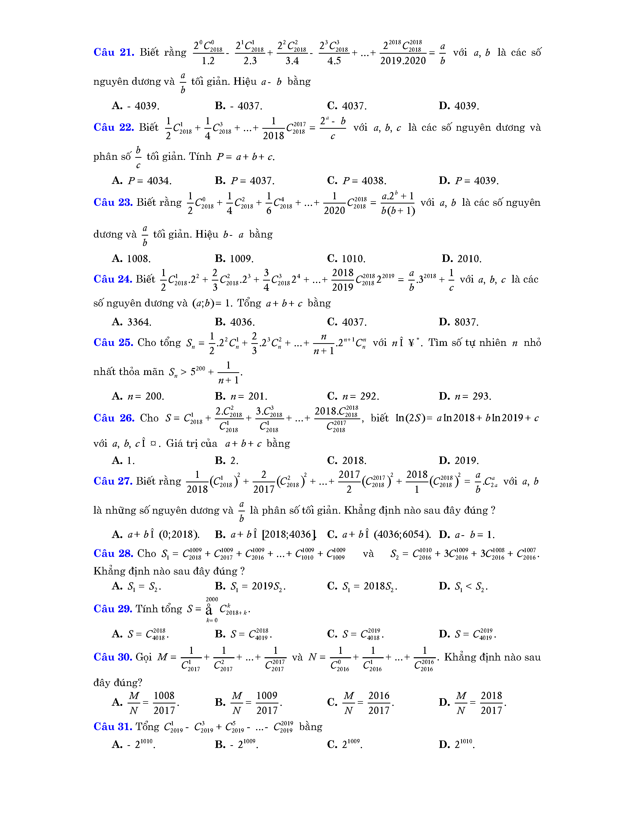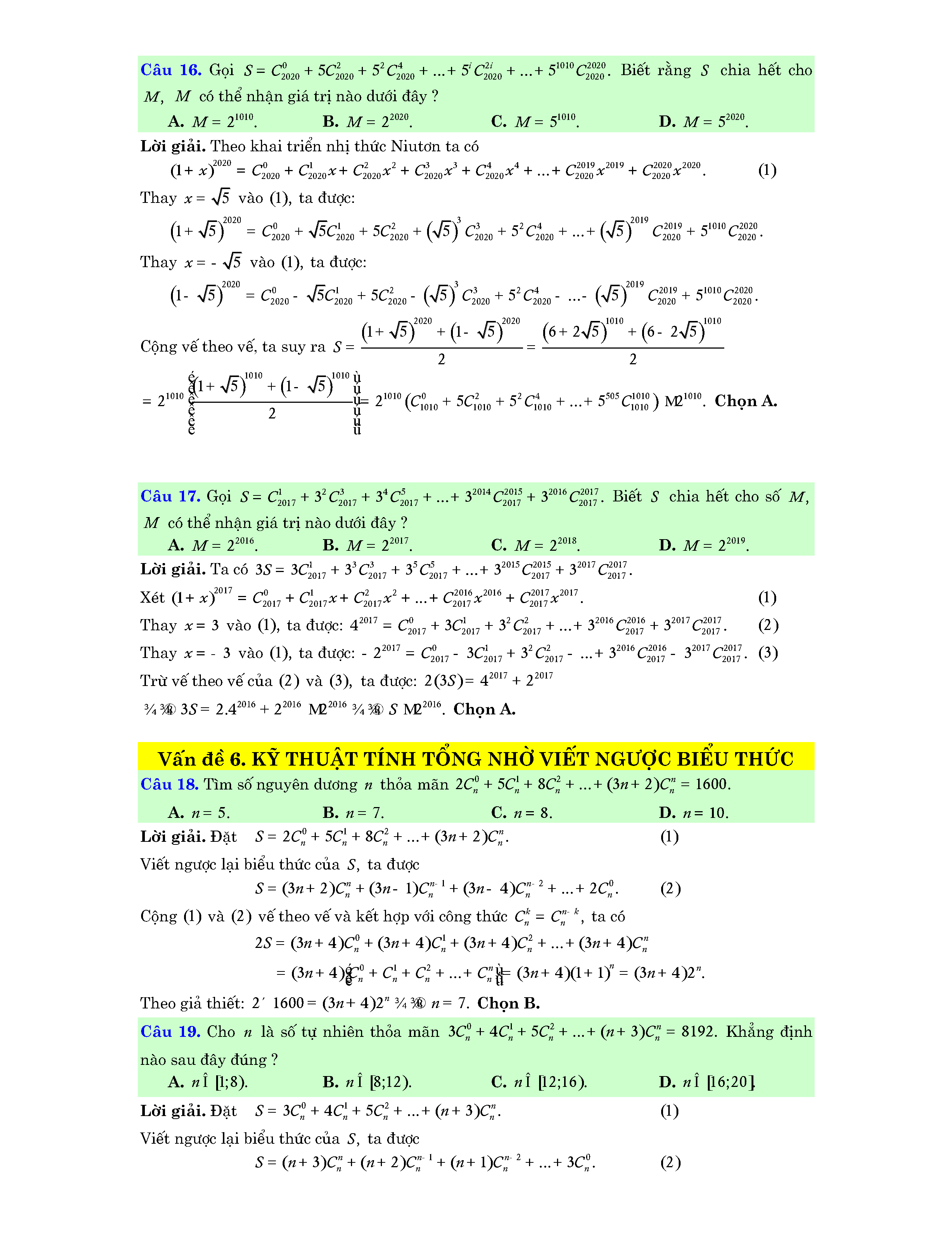 55 bài tập vận dụng cao về Tổ hợp - Chỉnh hợp