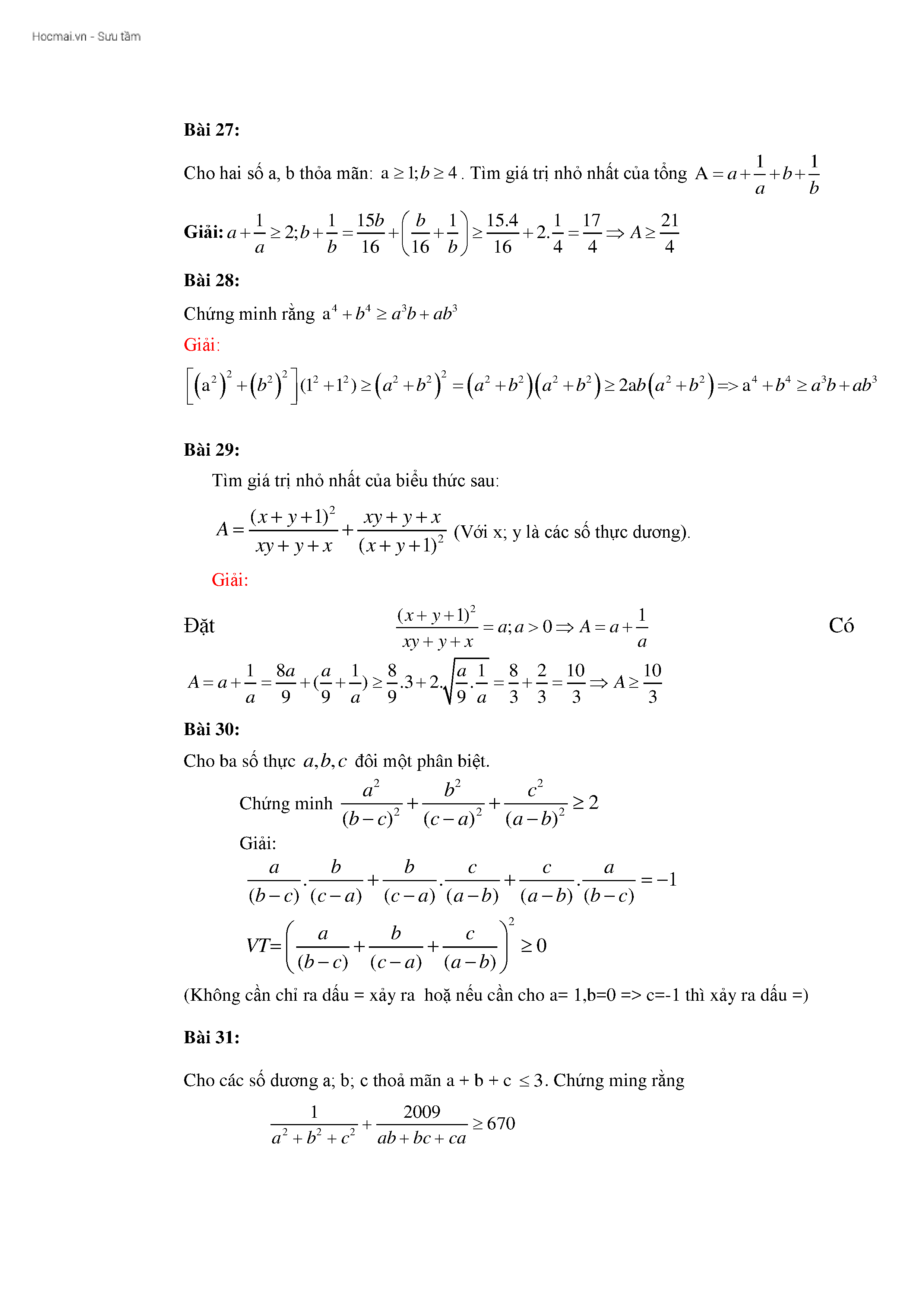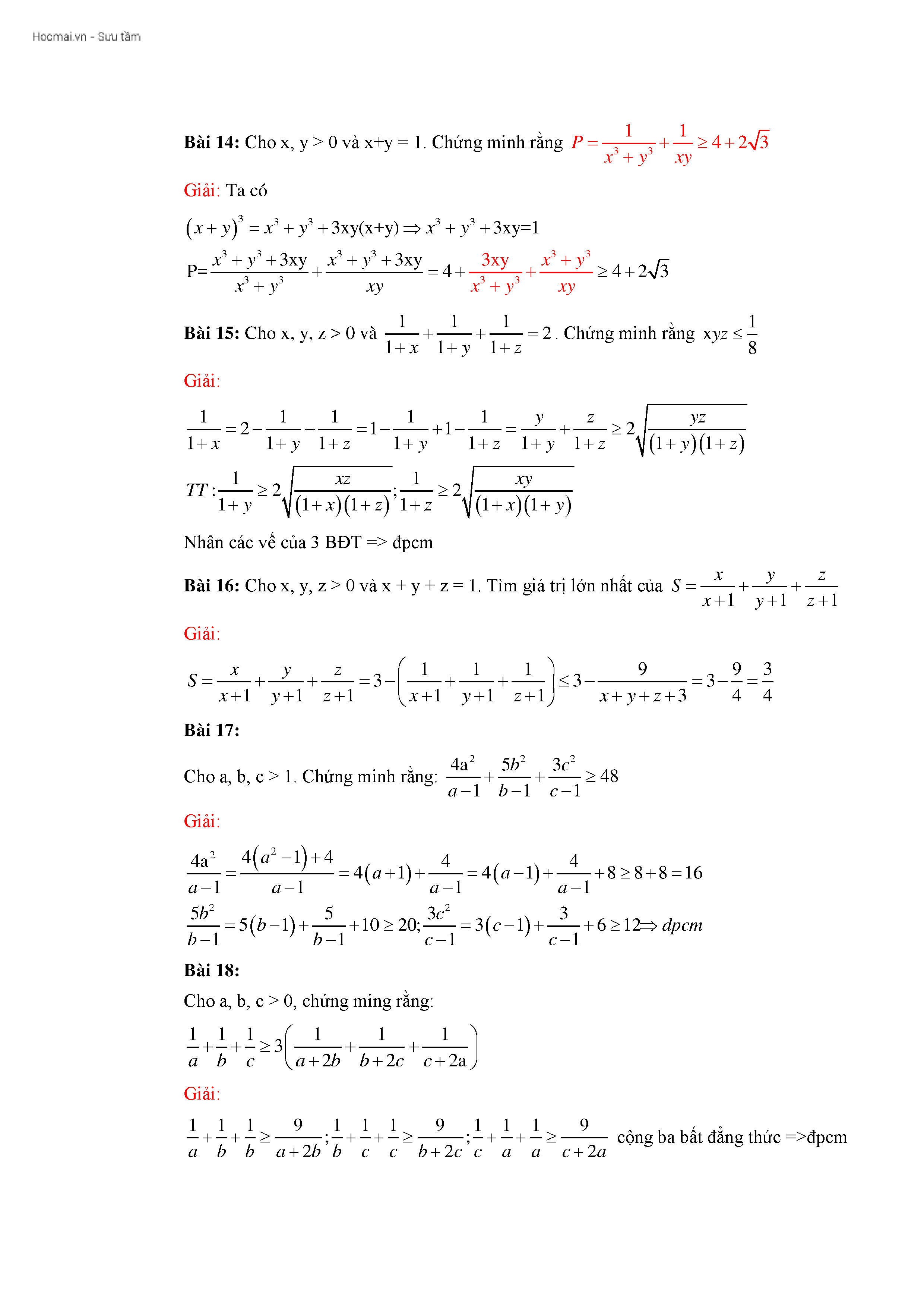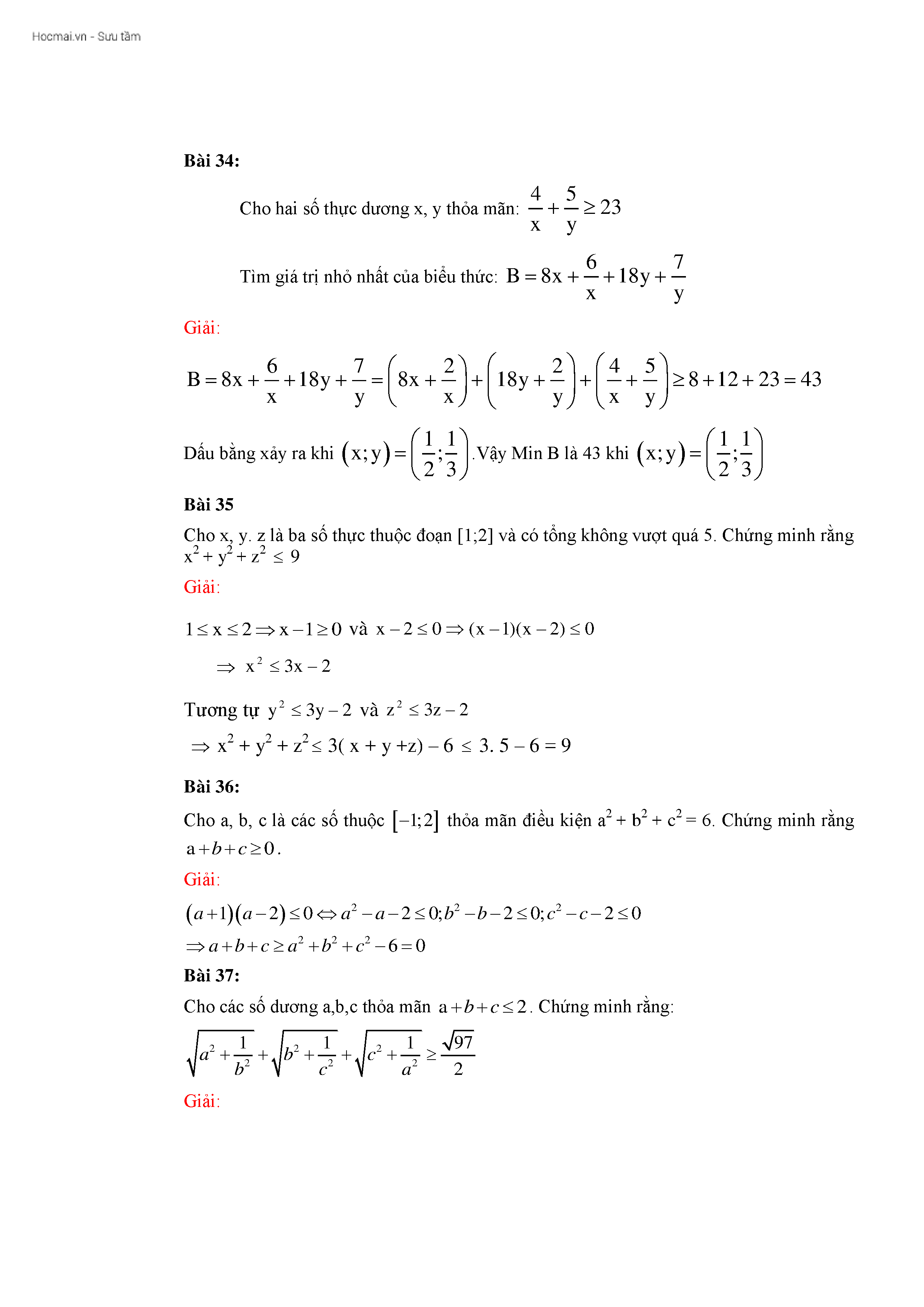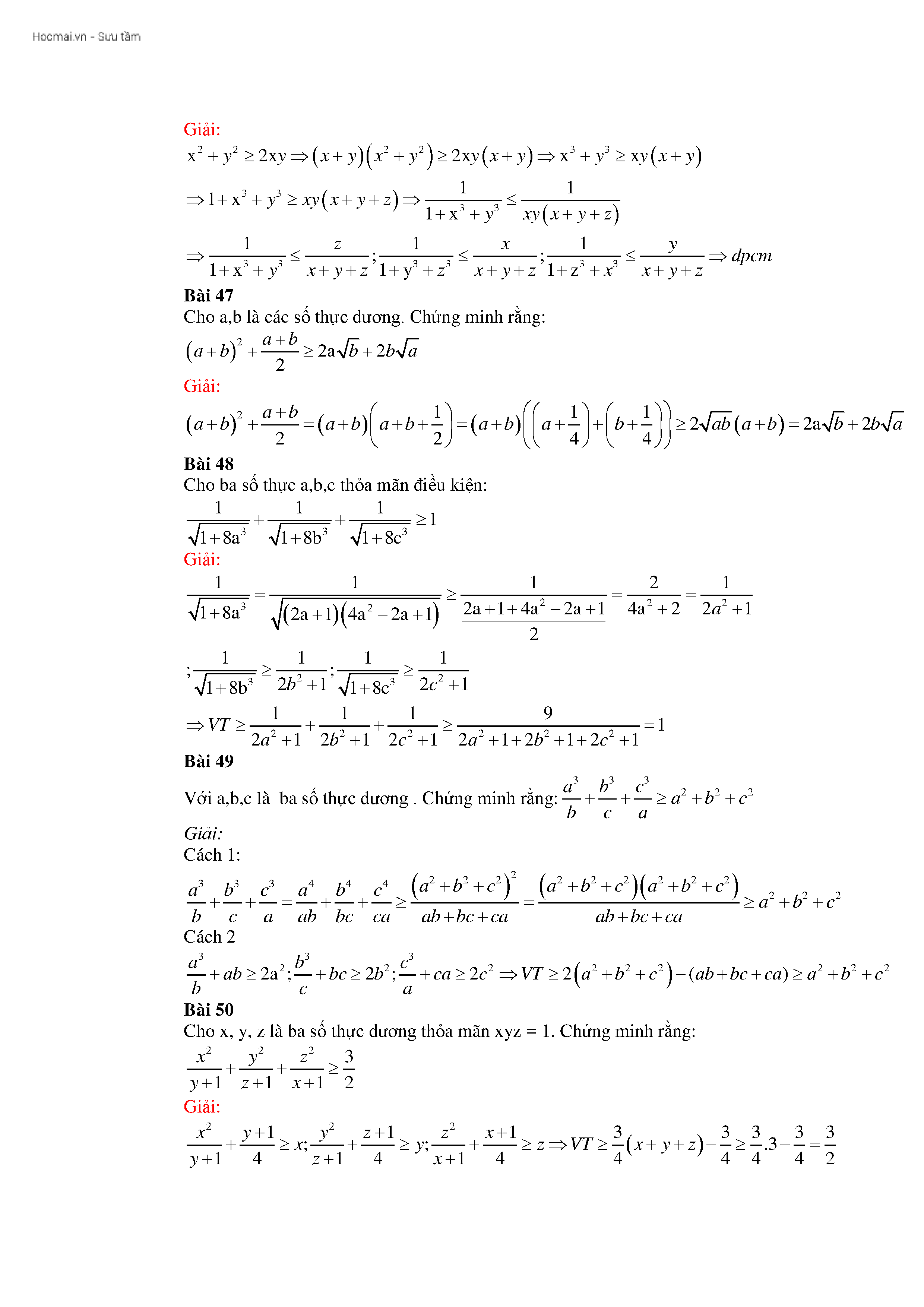 Tuyển tập 50 bài tập về bất đẳng thức có lời giải chi tiết lớp 10
